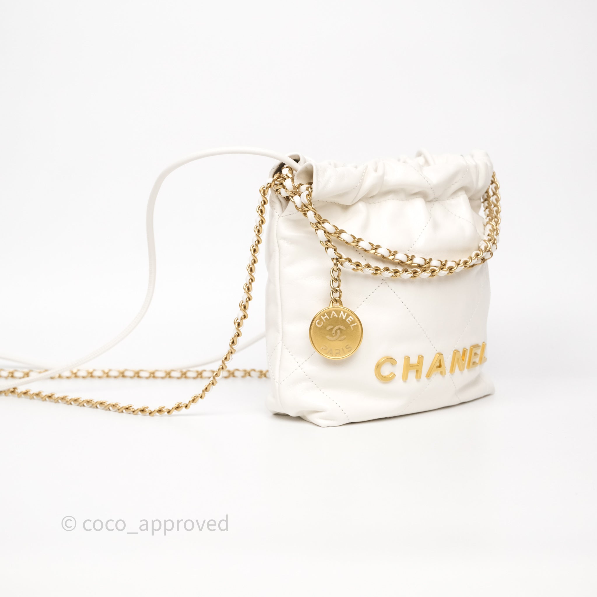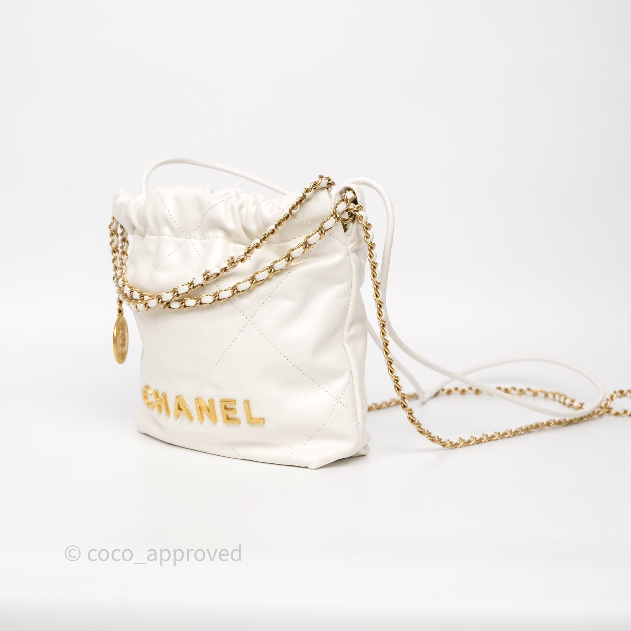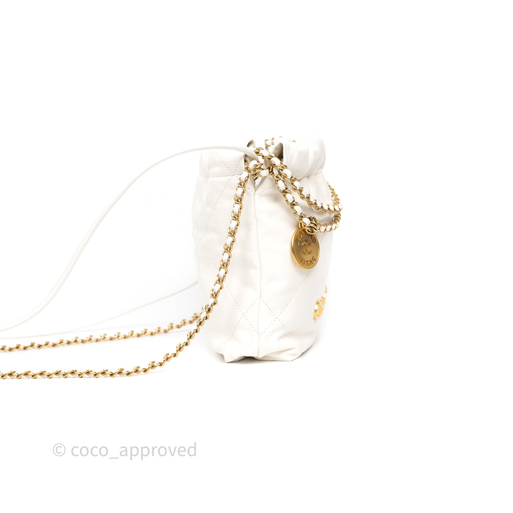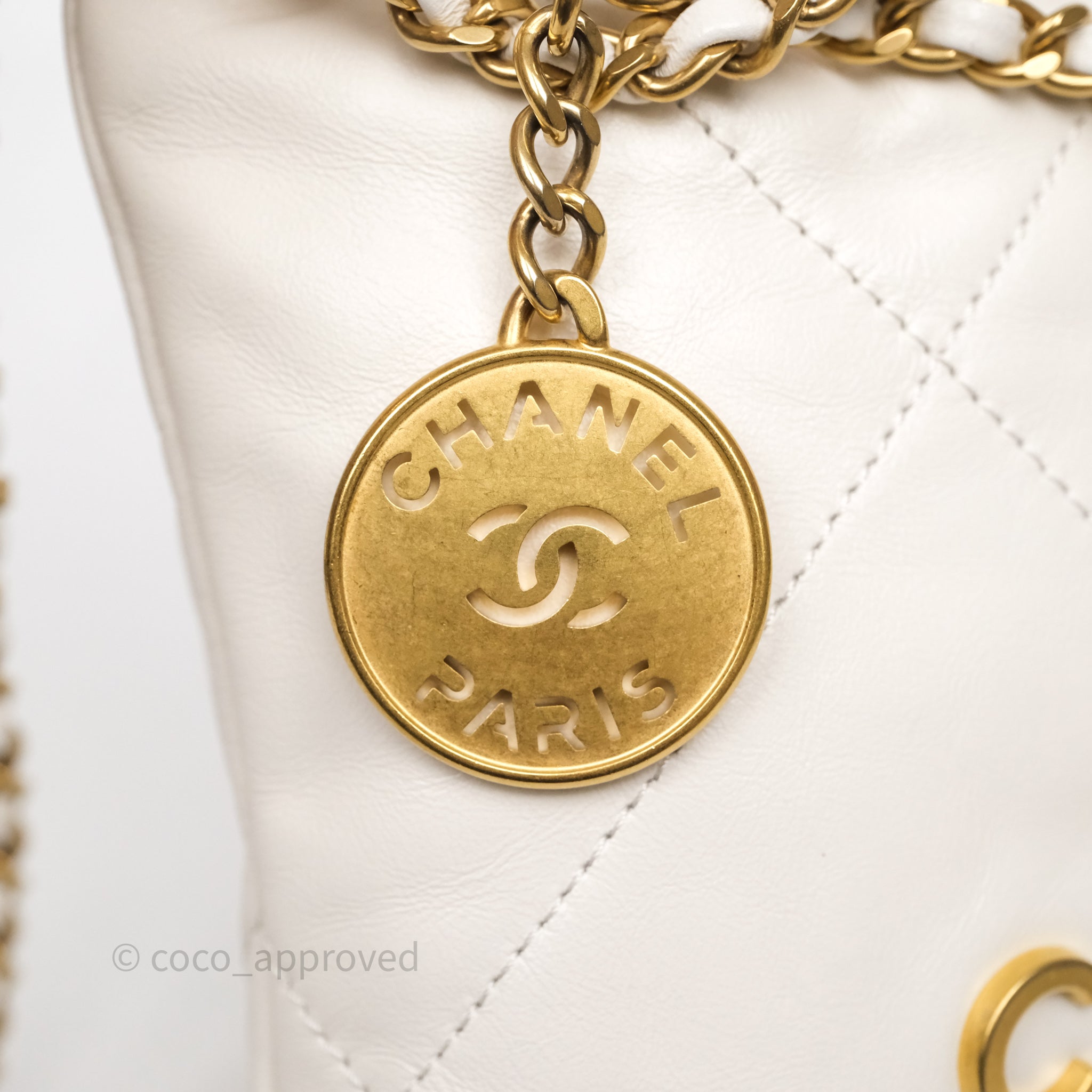 Chanel 22 Mini Bag White Calfskin Aged Gold Hardware