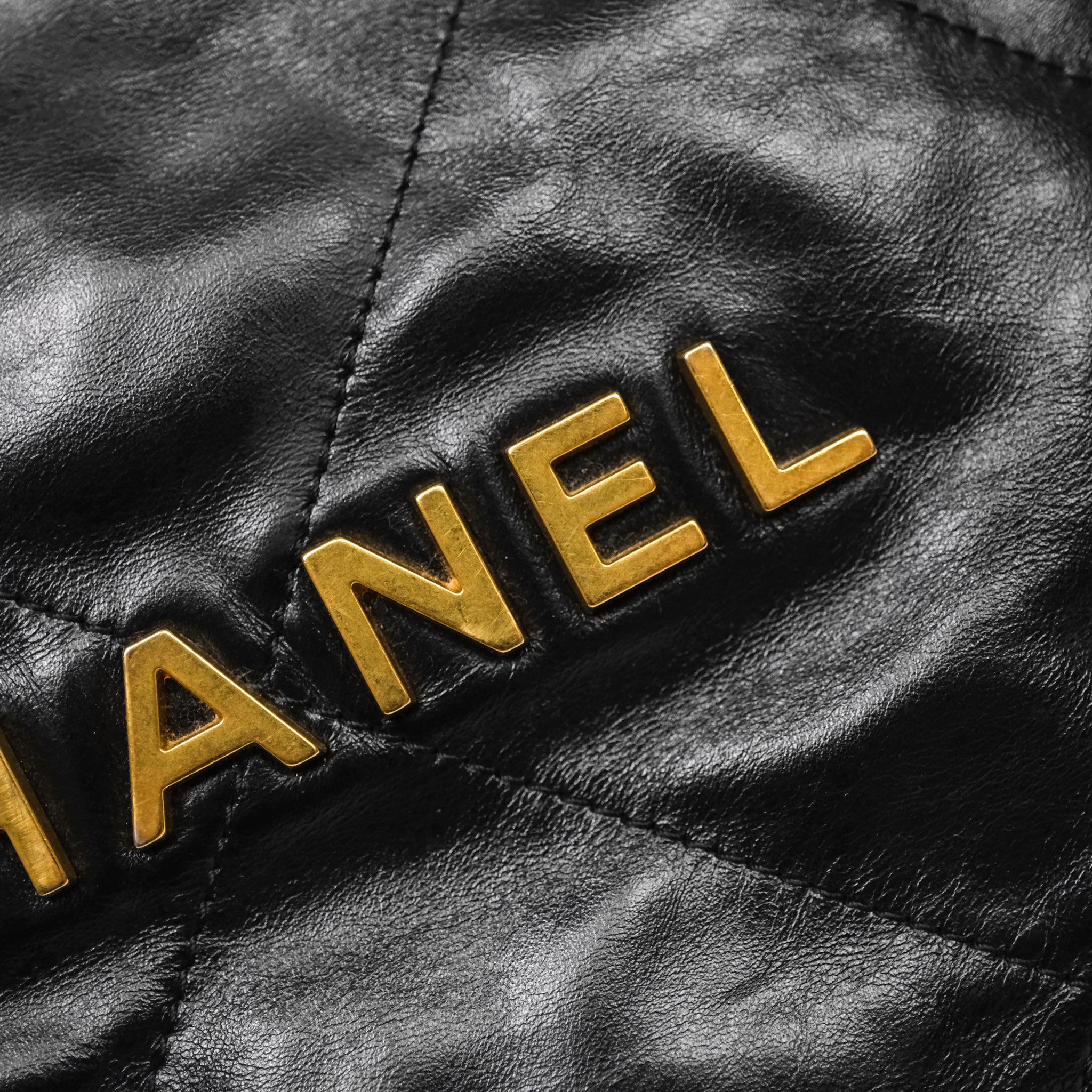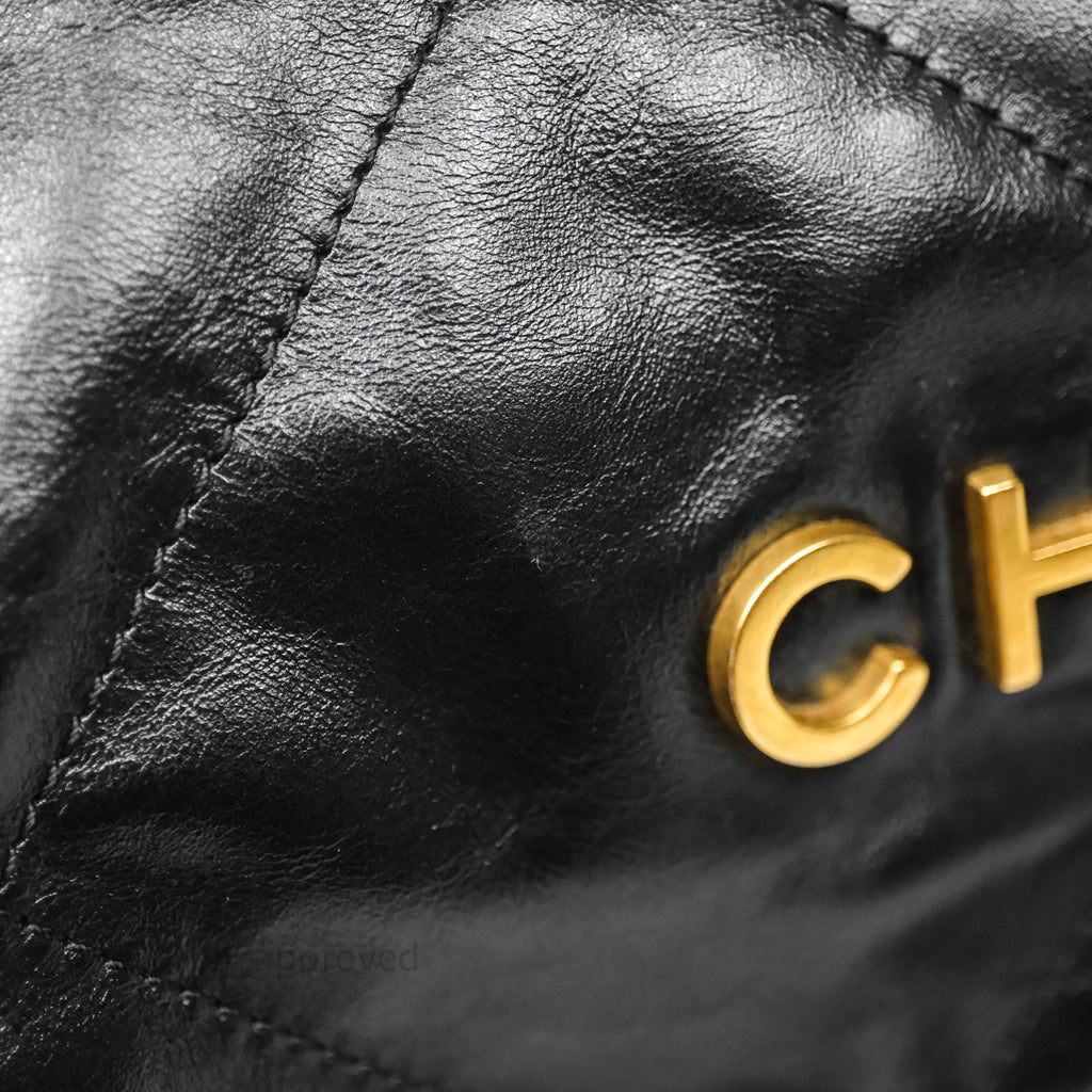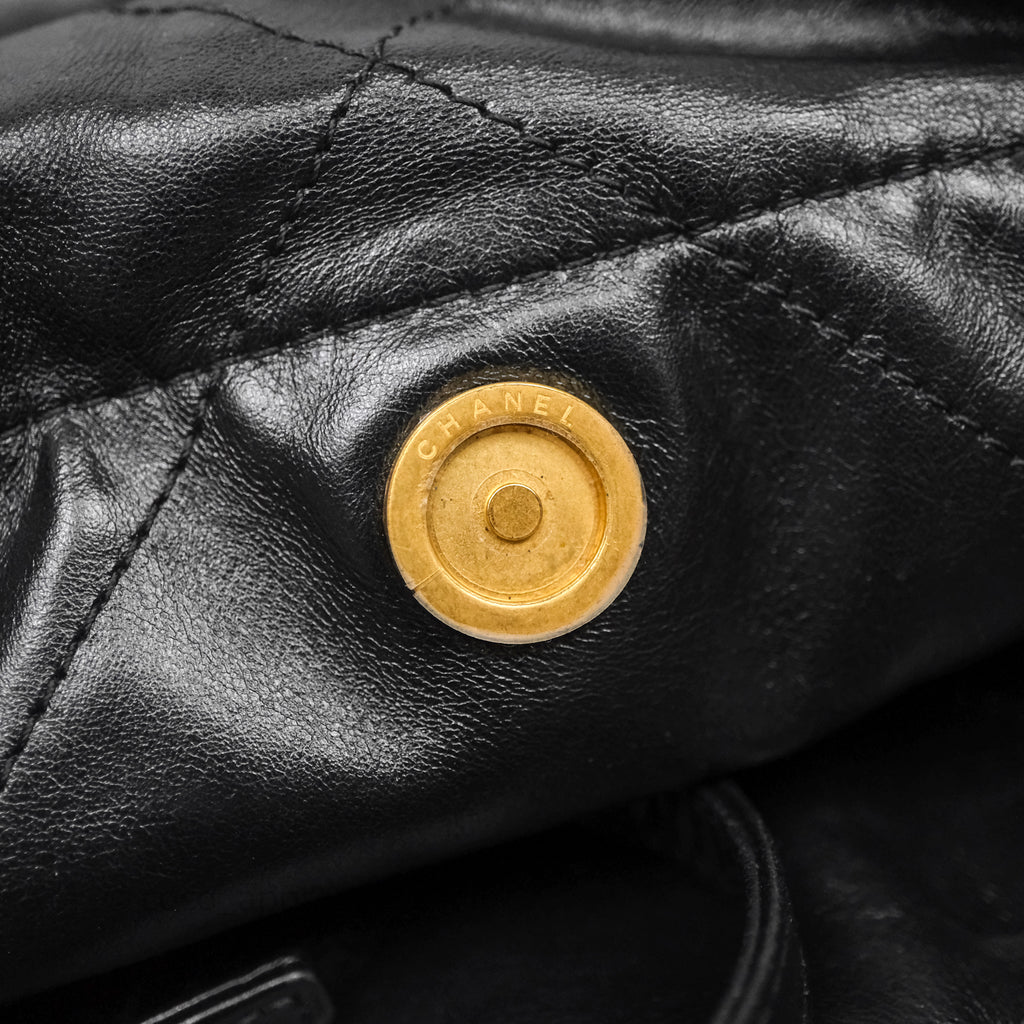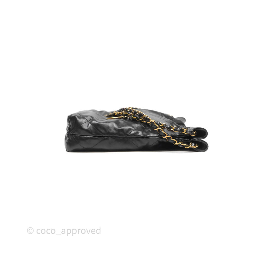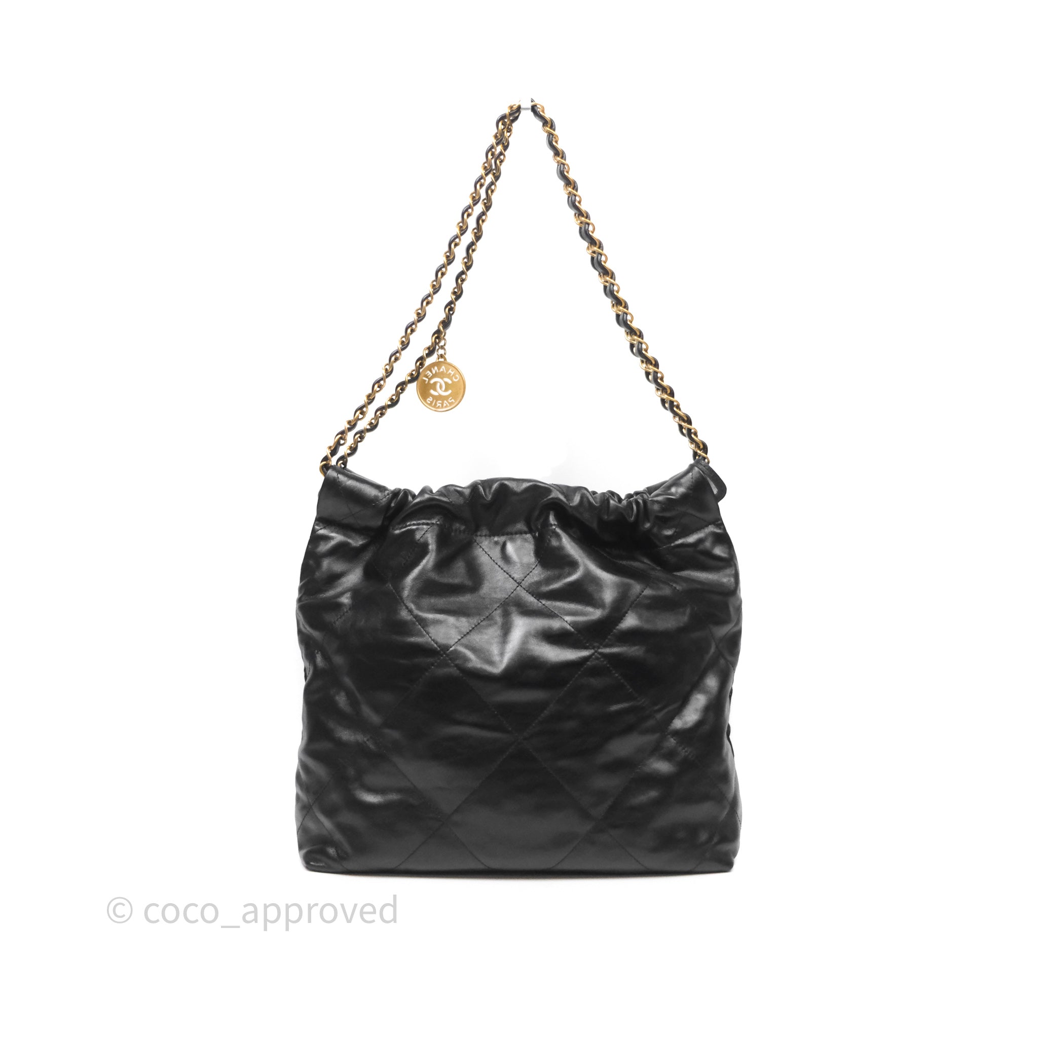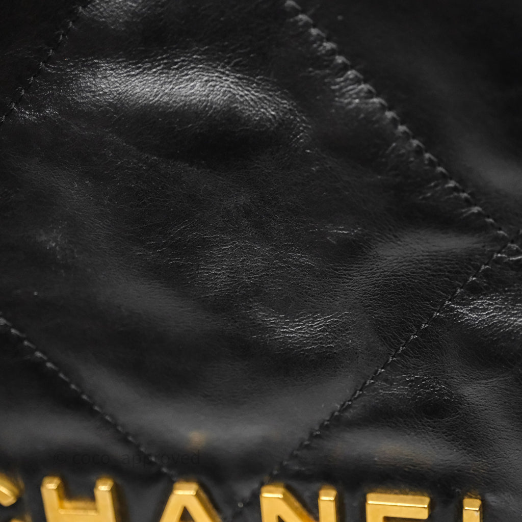 Chanel 22 Small Black Shiny Crumpled Calfskin Aged Gold Hardware