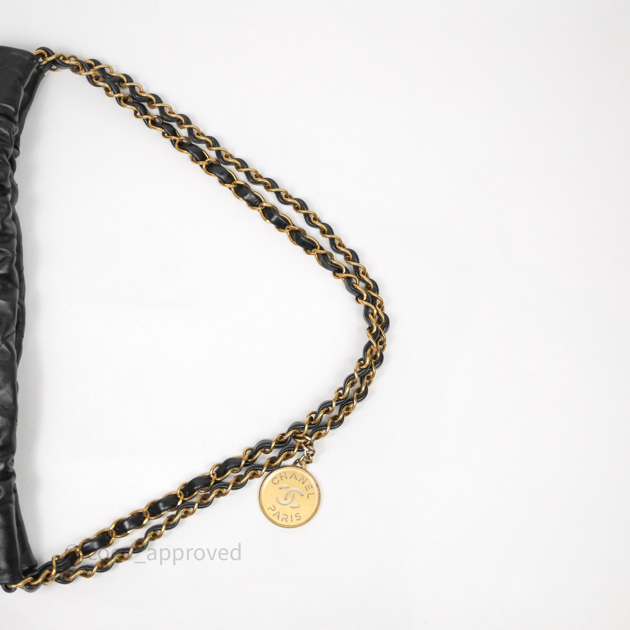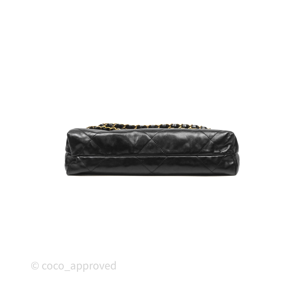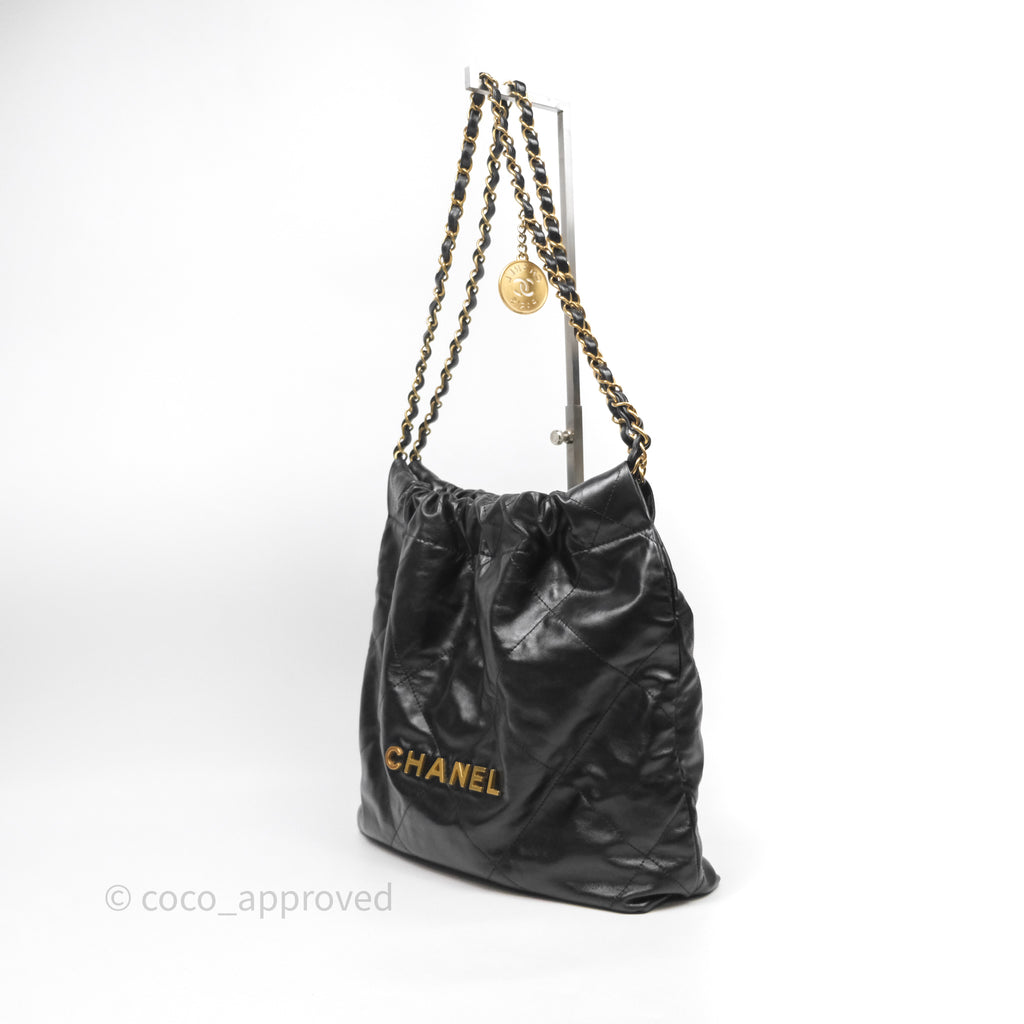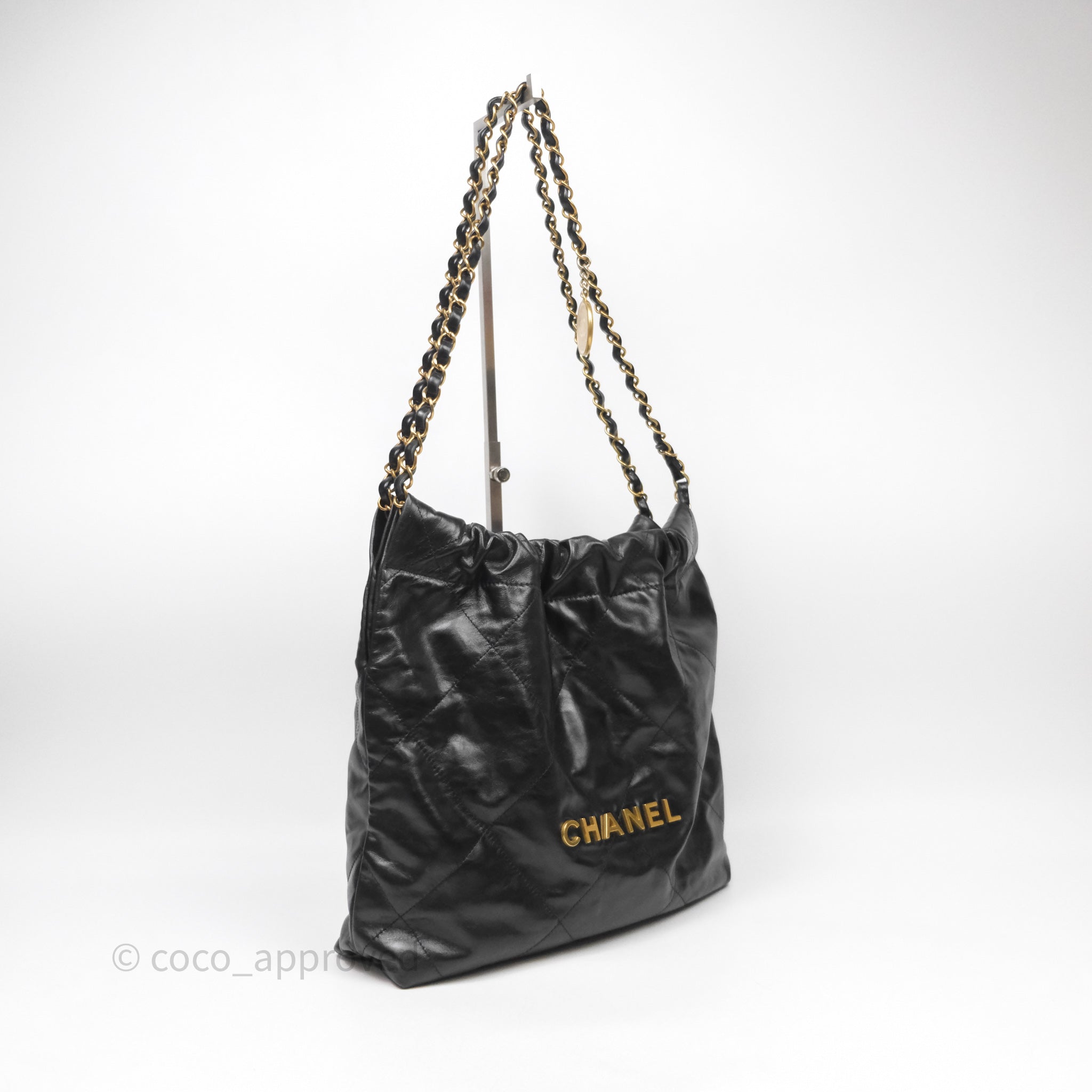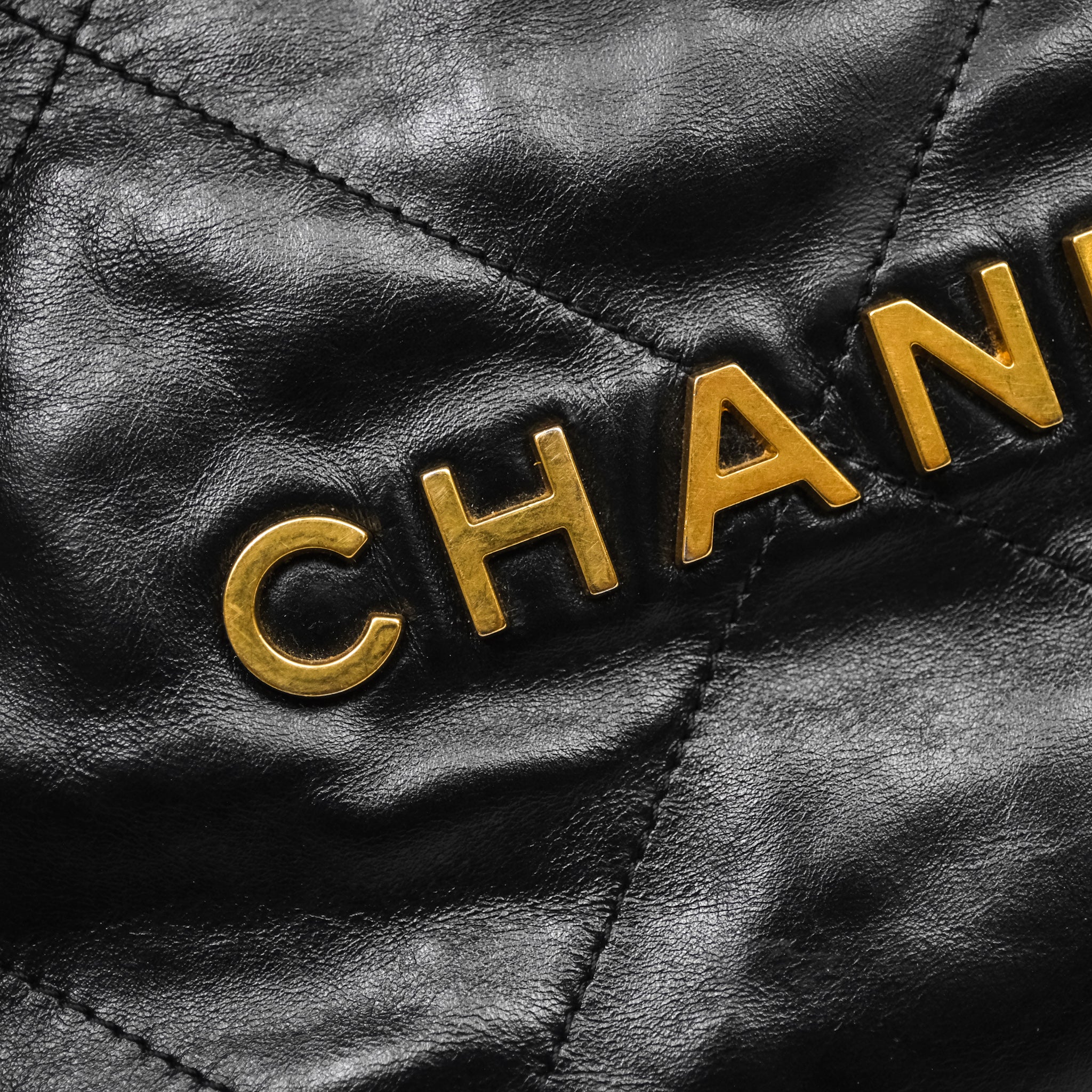 Chanel 22 Small Black Shiny Crumpled Calfskin Aged Gold Hardware