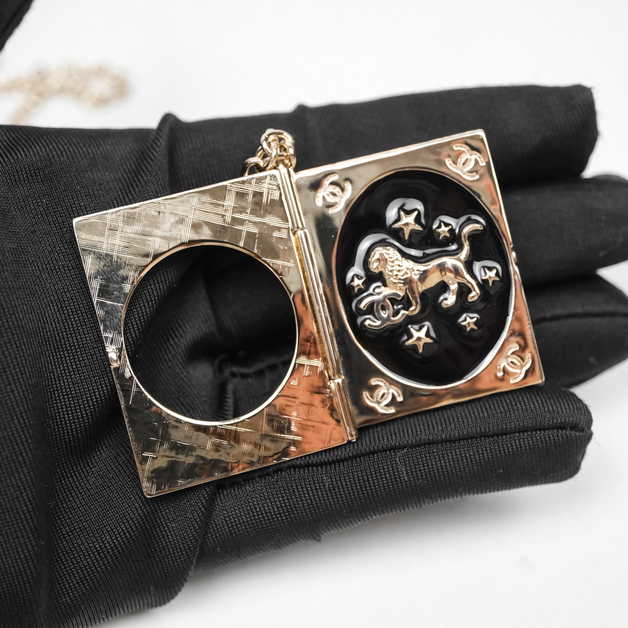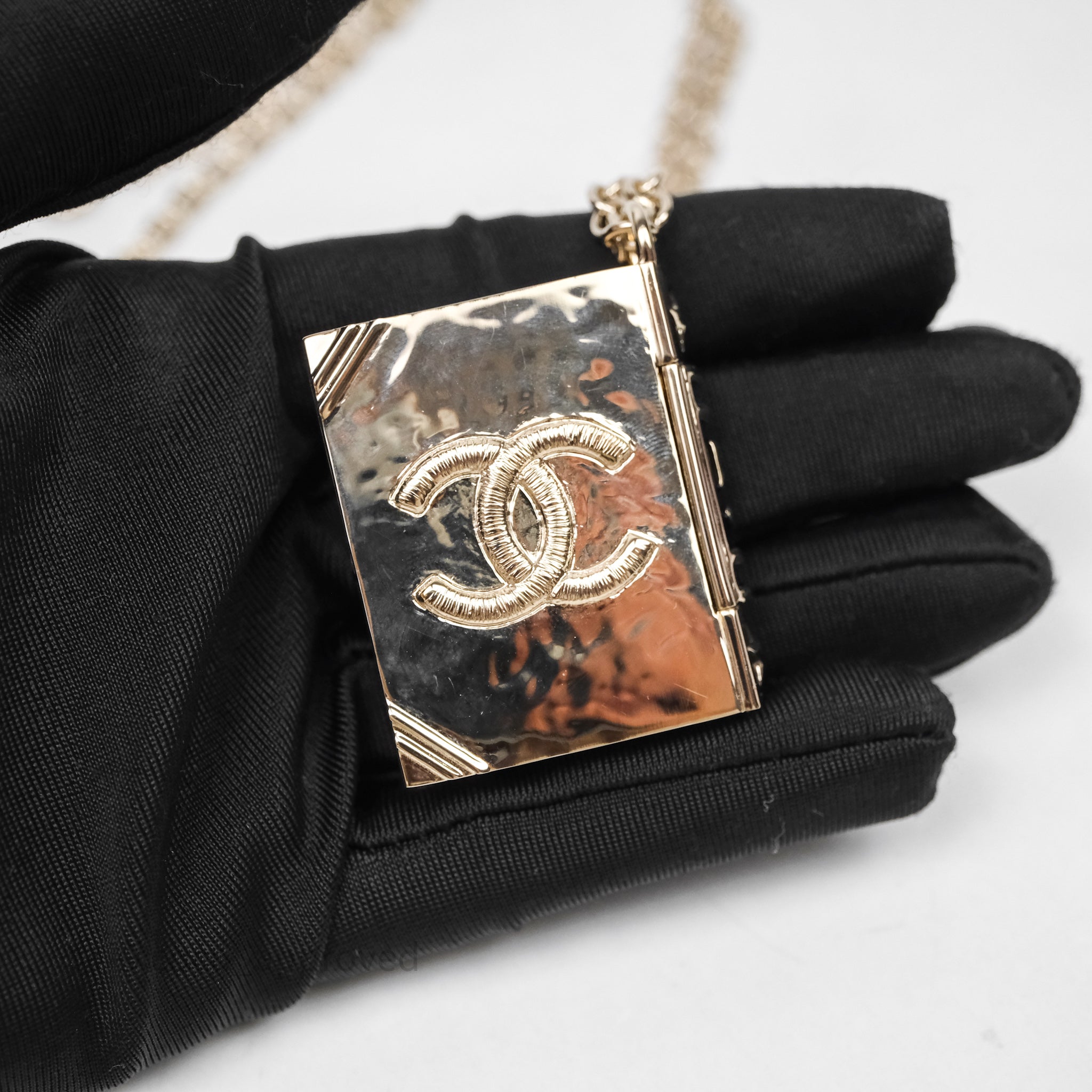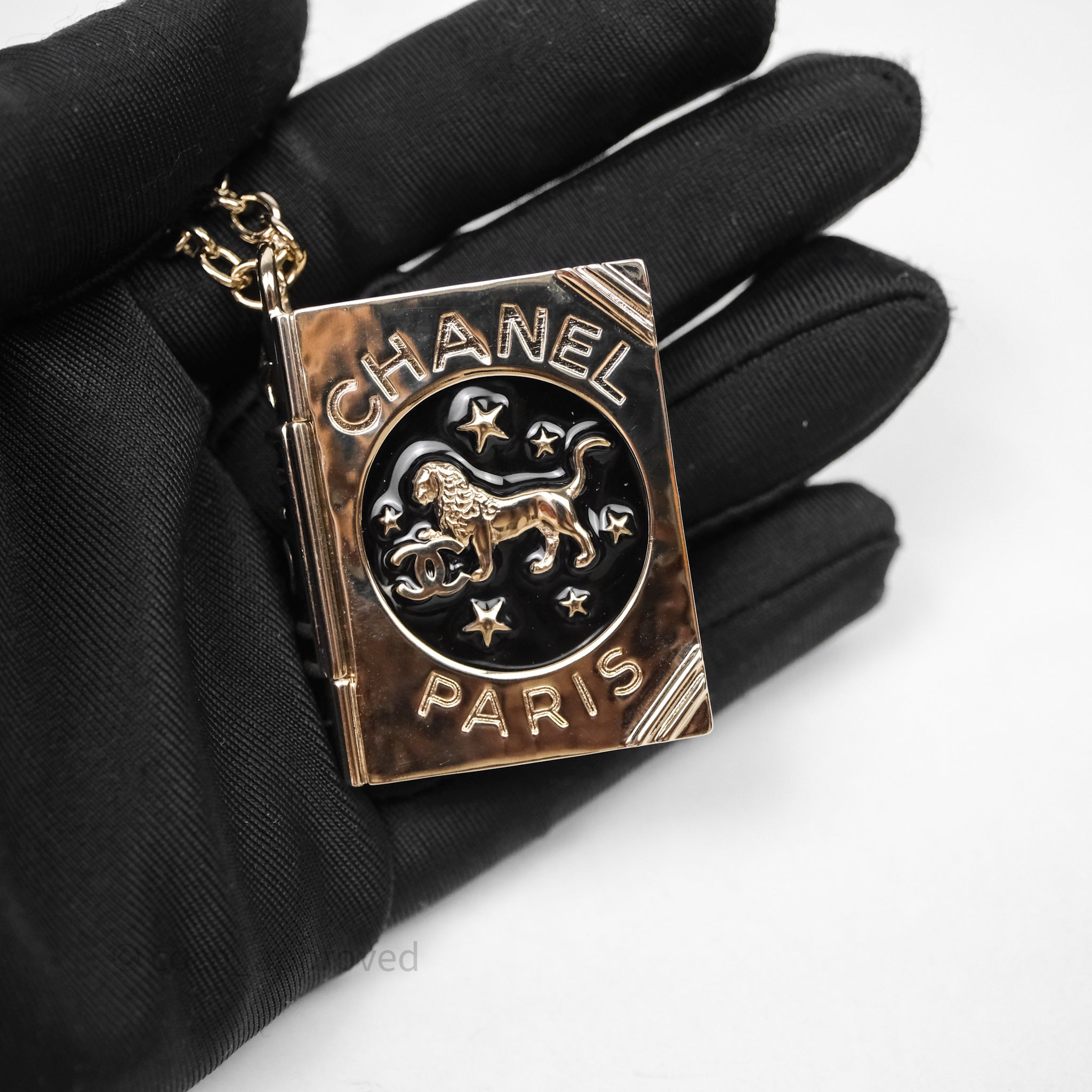Chanel CC Logo Lion Book Locket Black/Light Gold Necklace 22C