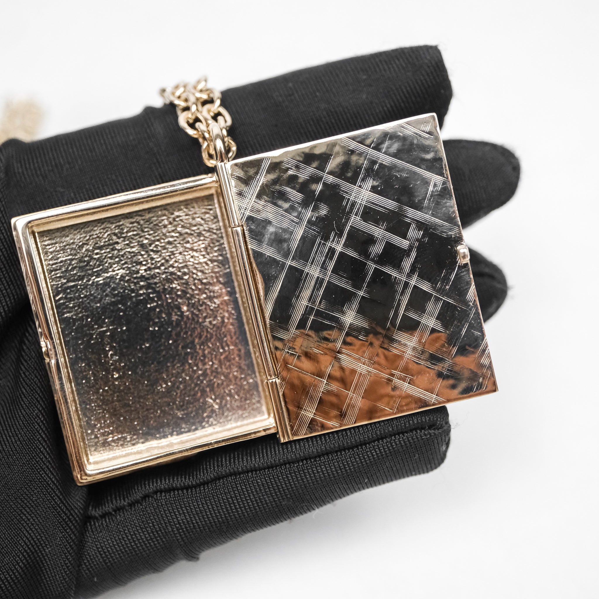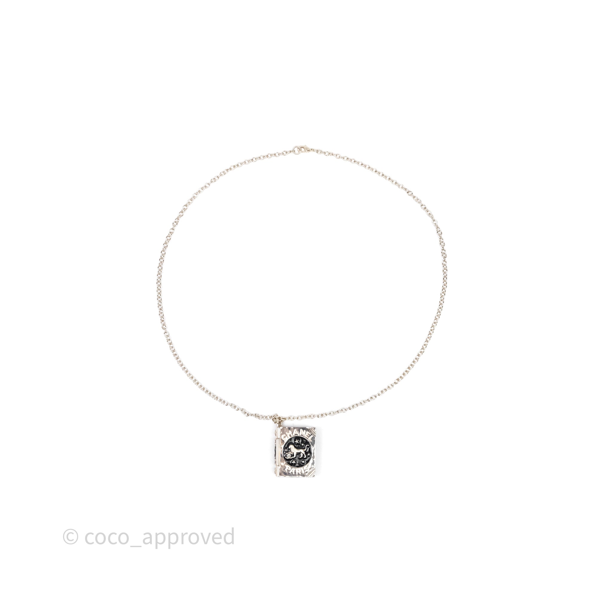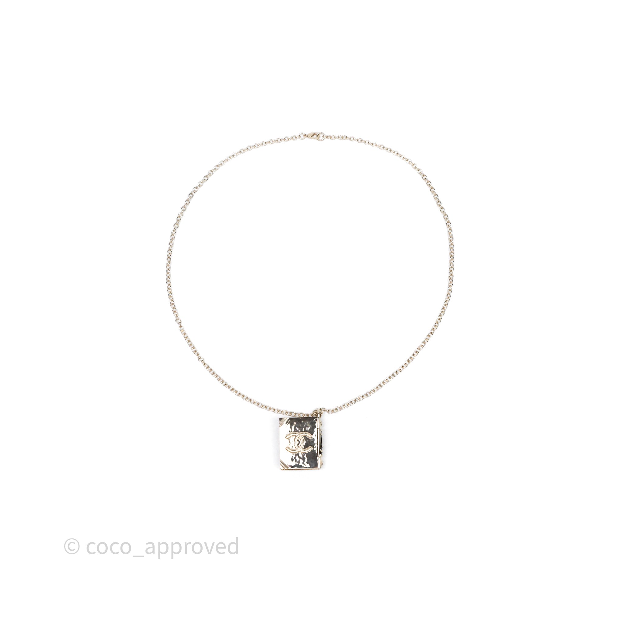 Chanel CC Logo Lion Book Locket Black/Light Gold Necklace 22C