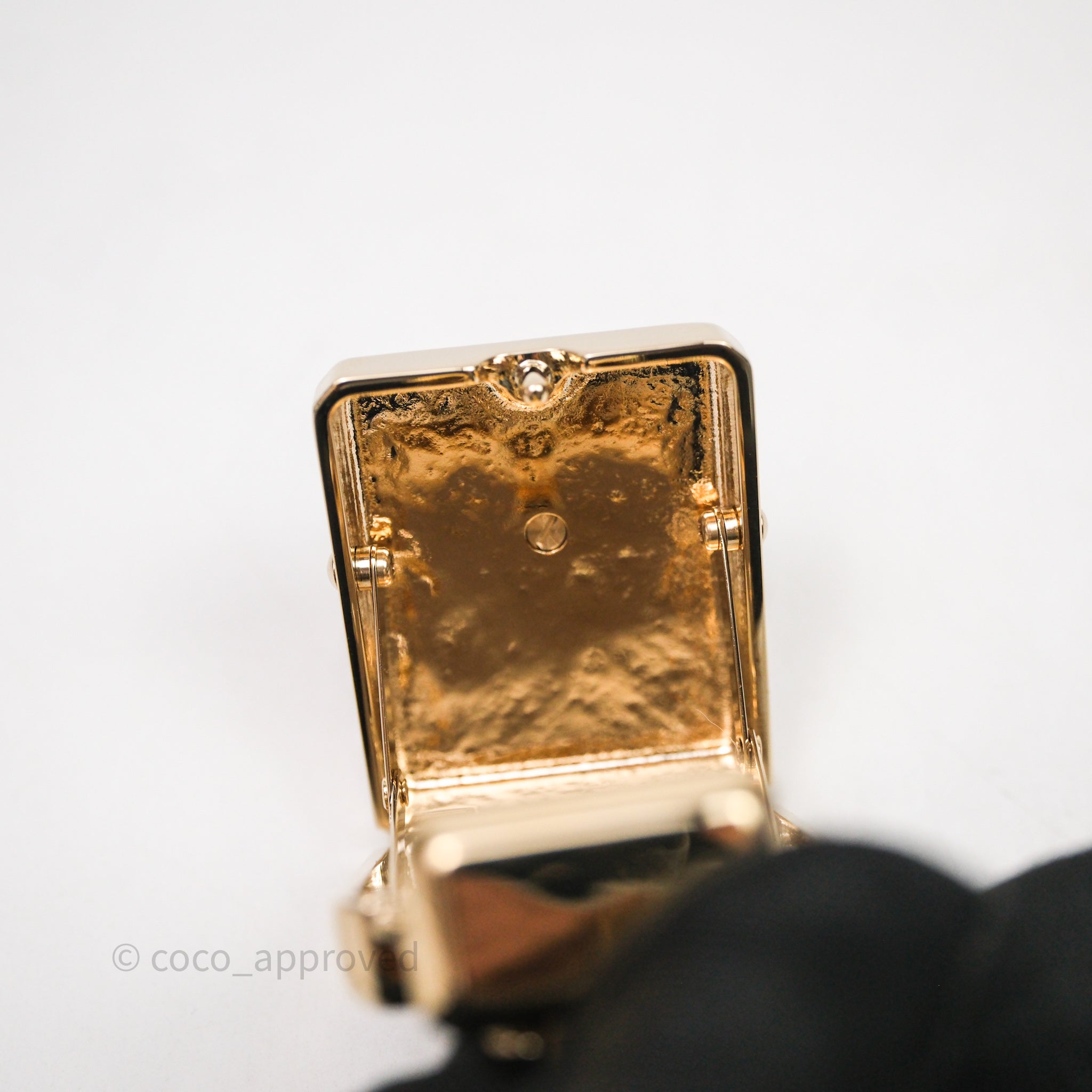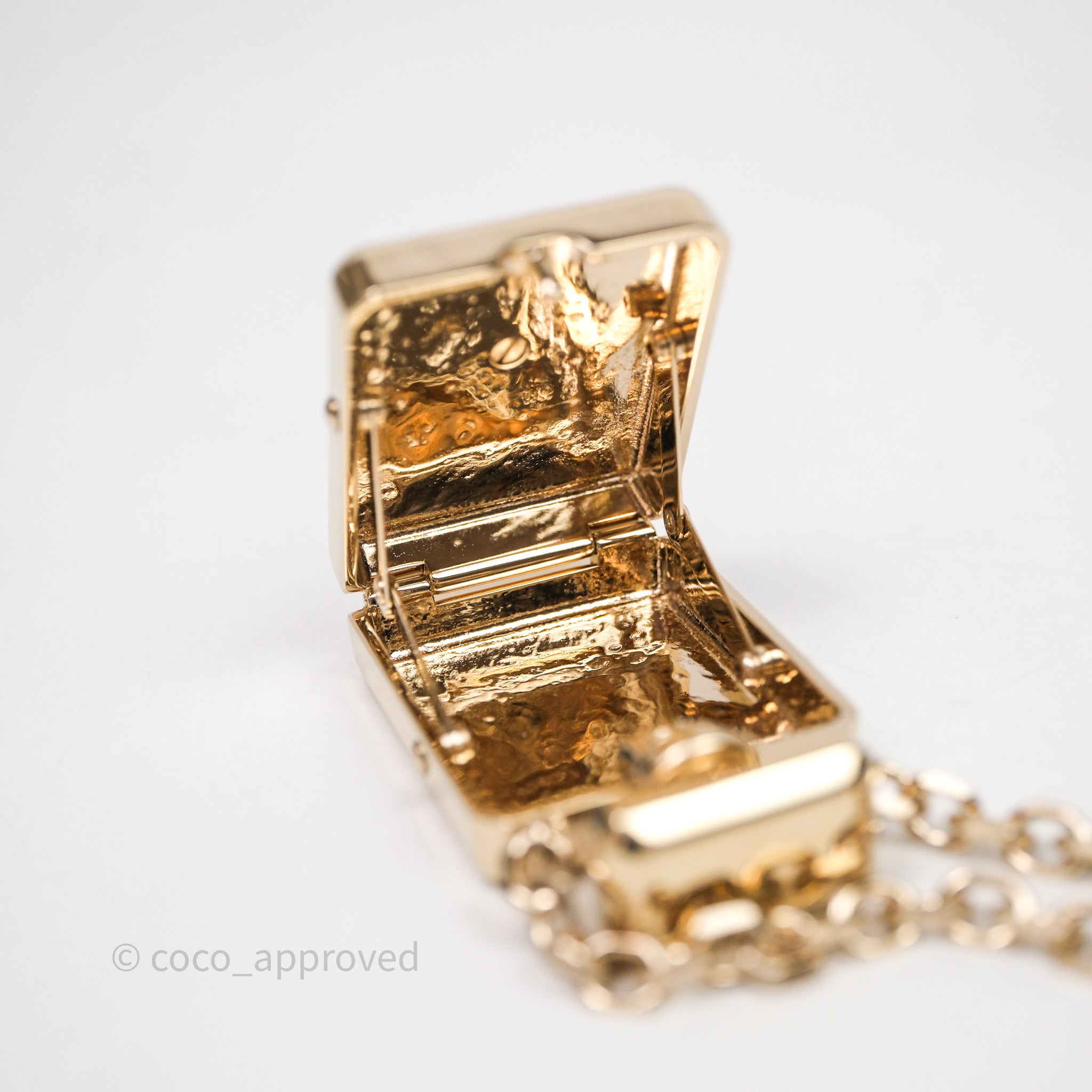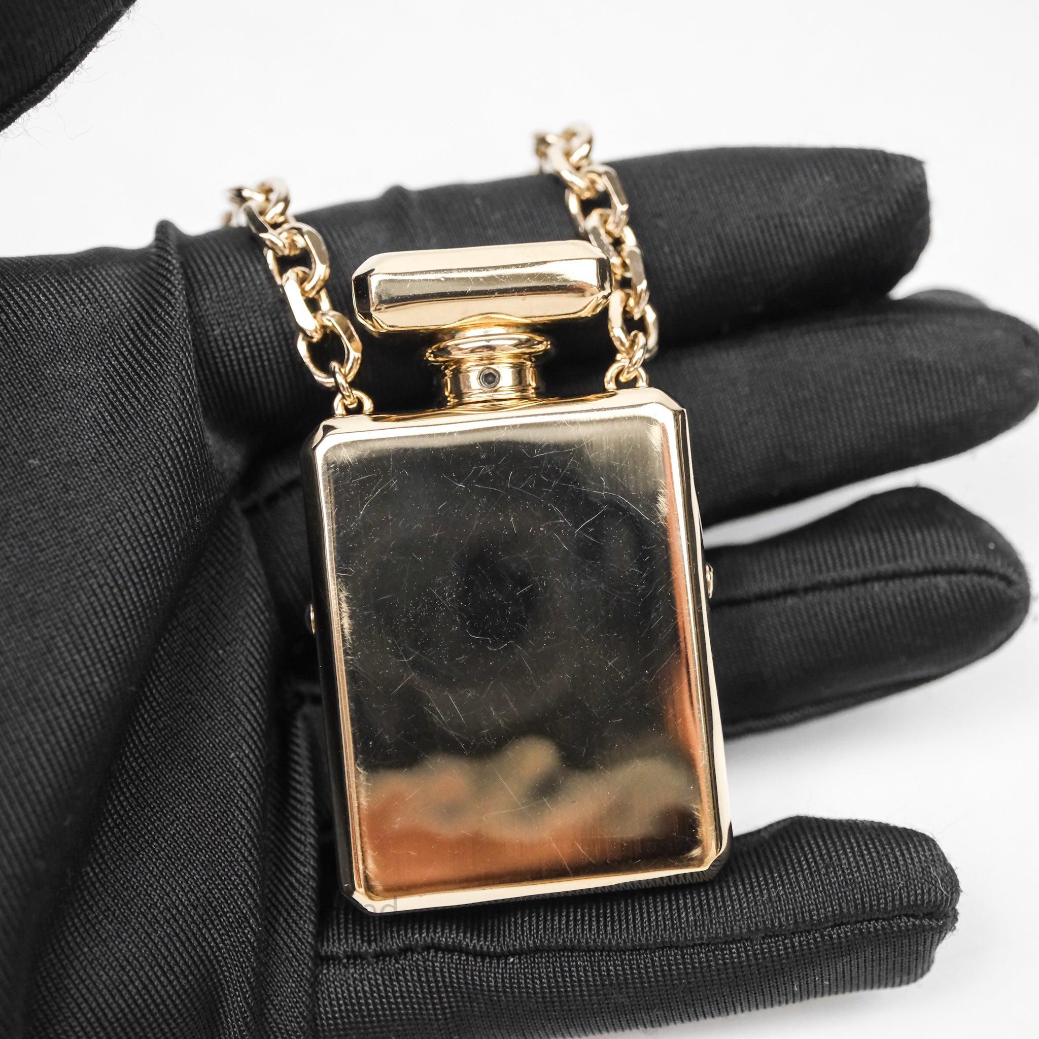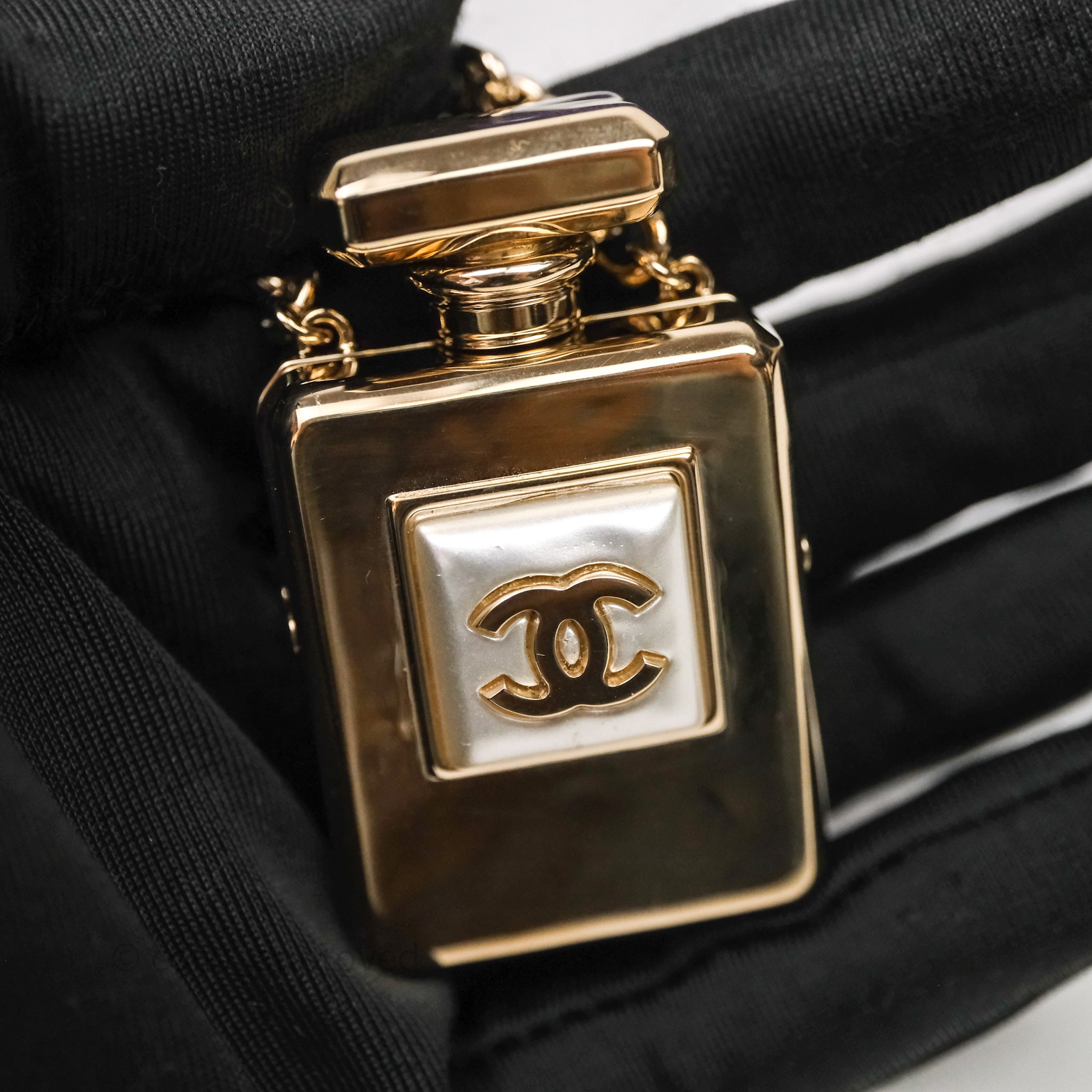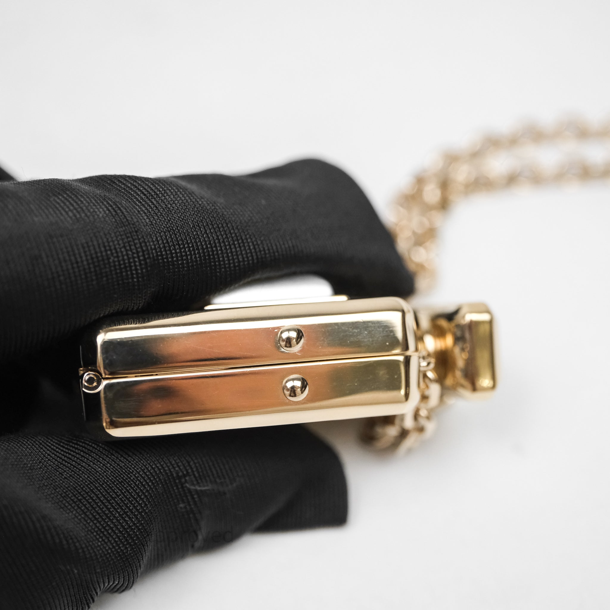 Chanel CC Pearl Perfume Bottle Locket Long Necklace Gold Tone 22S