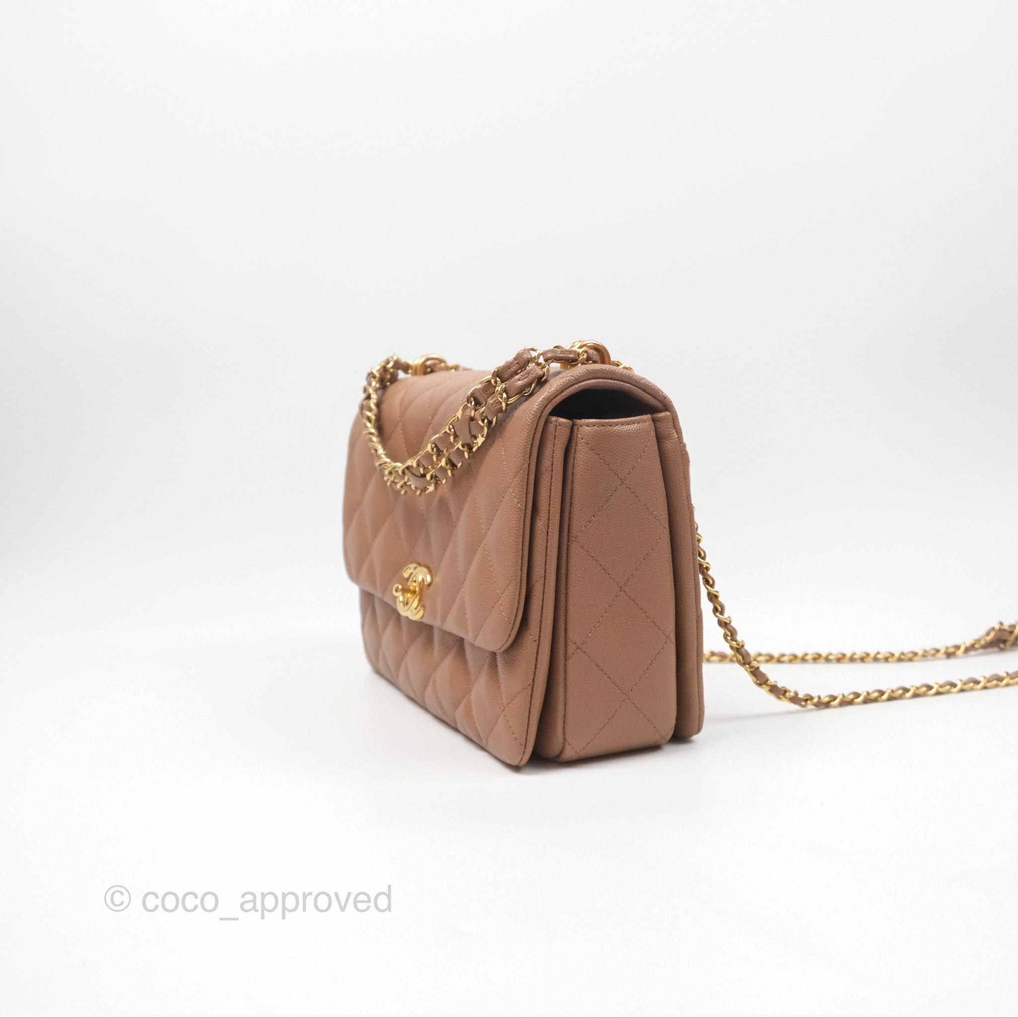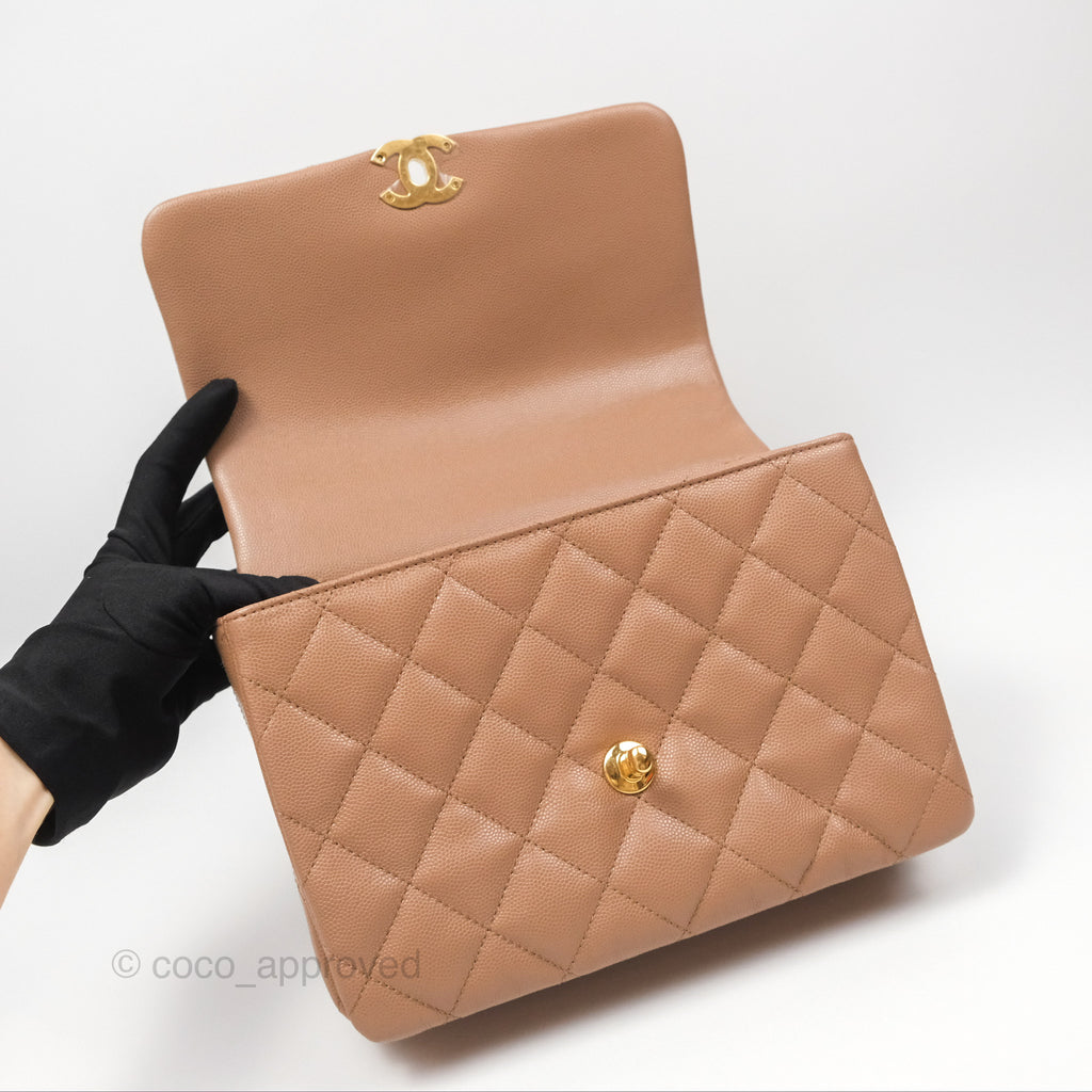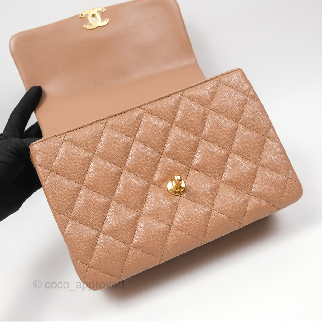 Chanel Coco First Dark Beige Flap Bag Caviar Gold Hardware 22K