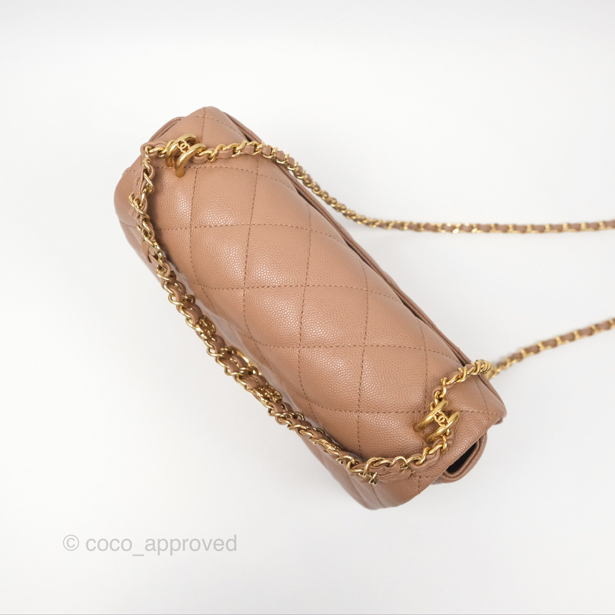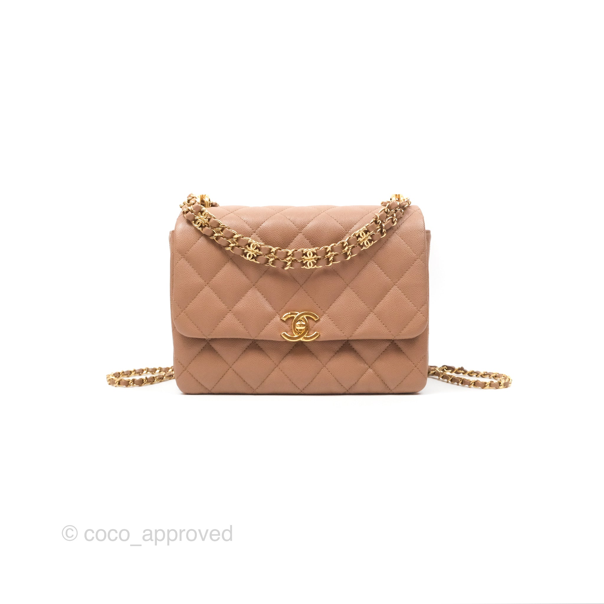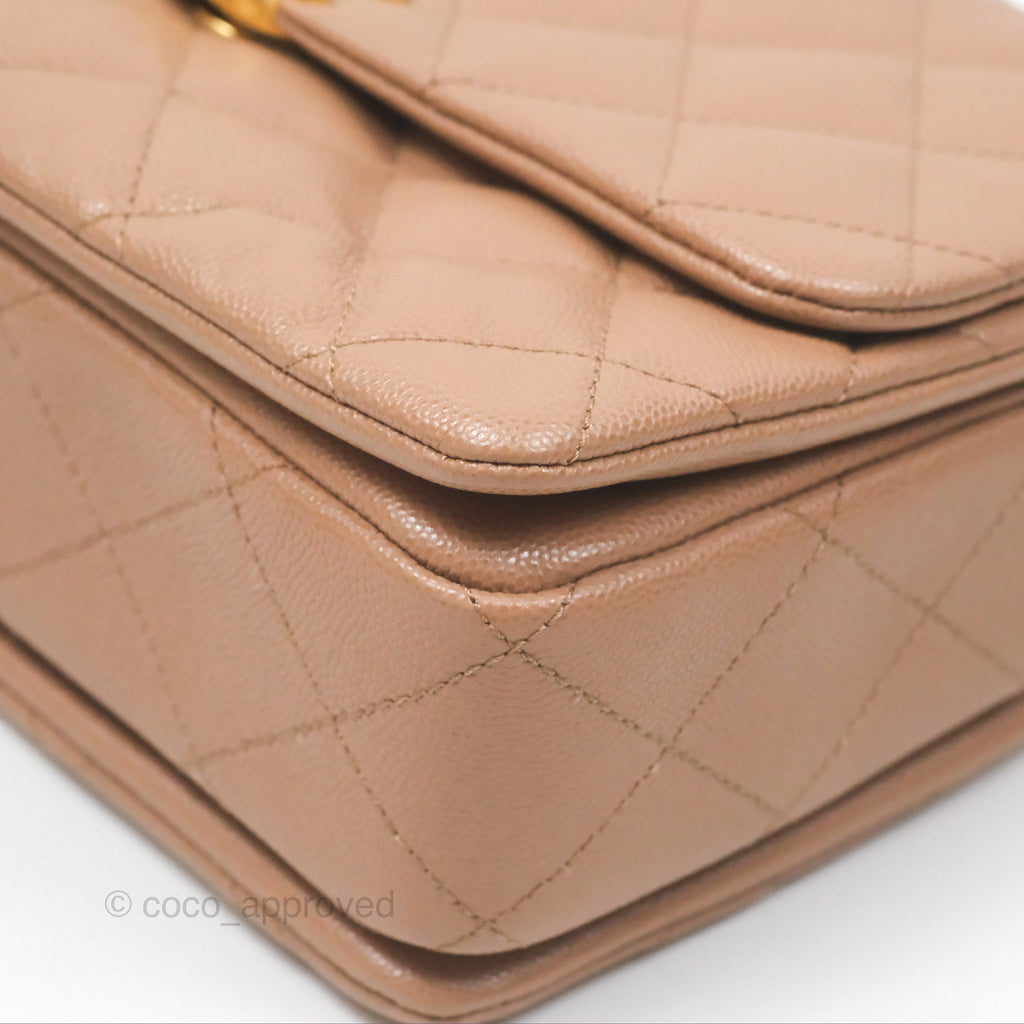 Chanel Coco First Dark Beige Flap Bag Caviar Gold Hardware 22K