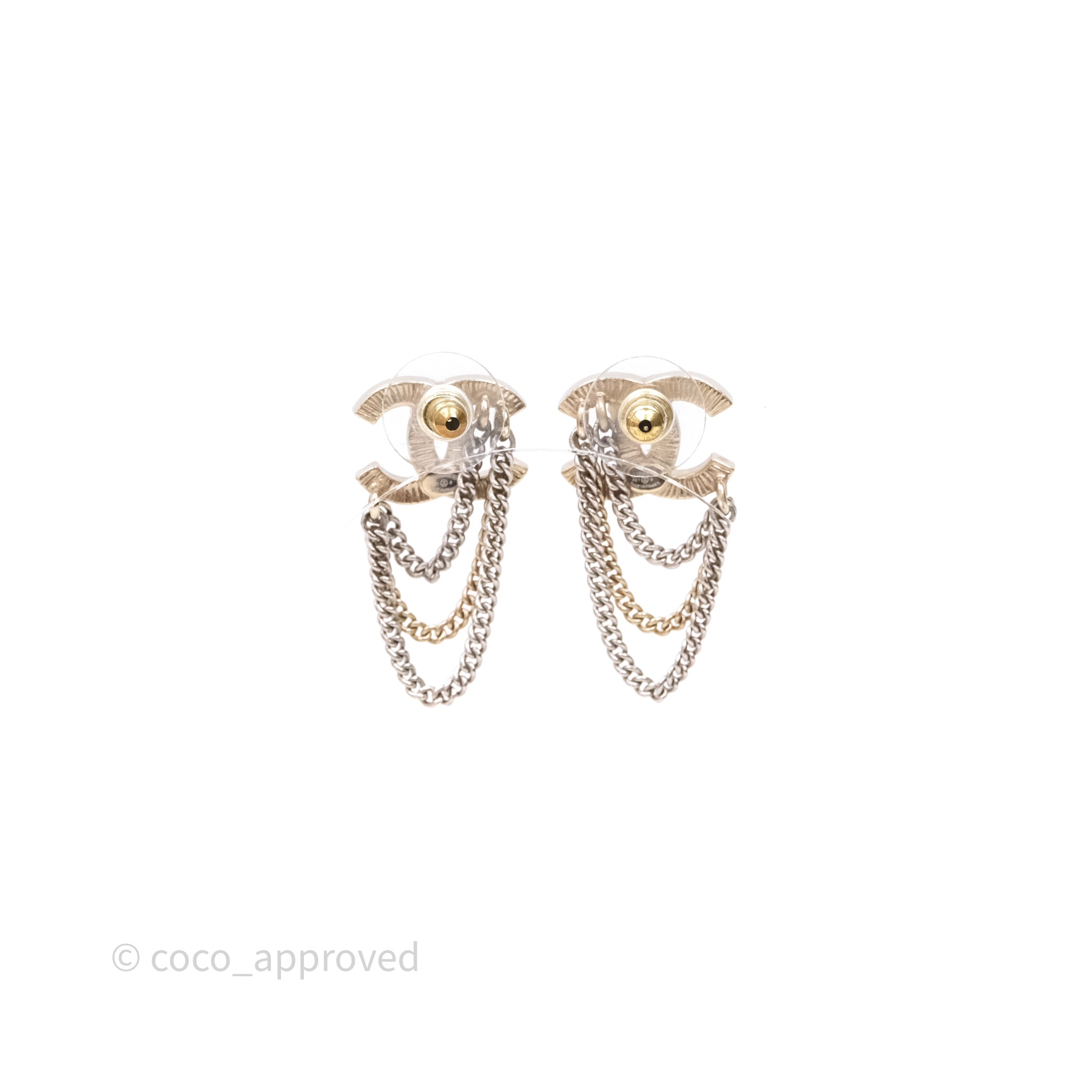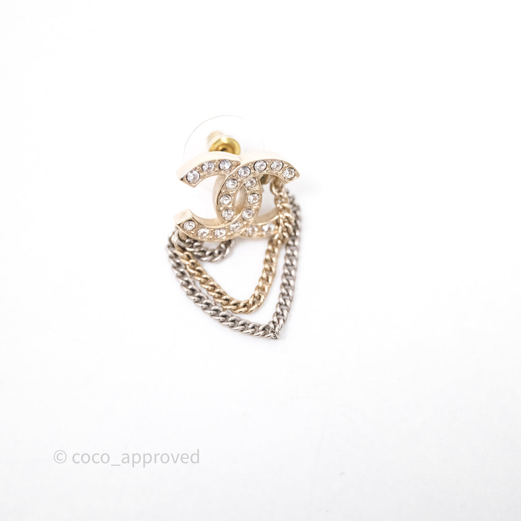 Chanel Crystal CC Chain Pendant Earrings 21B