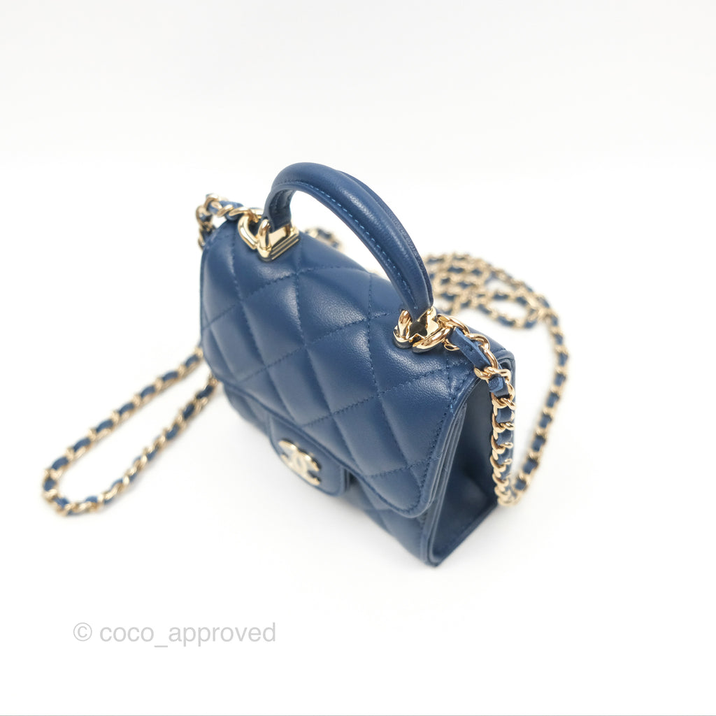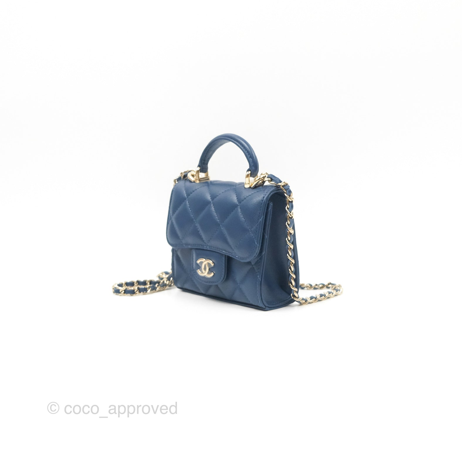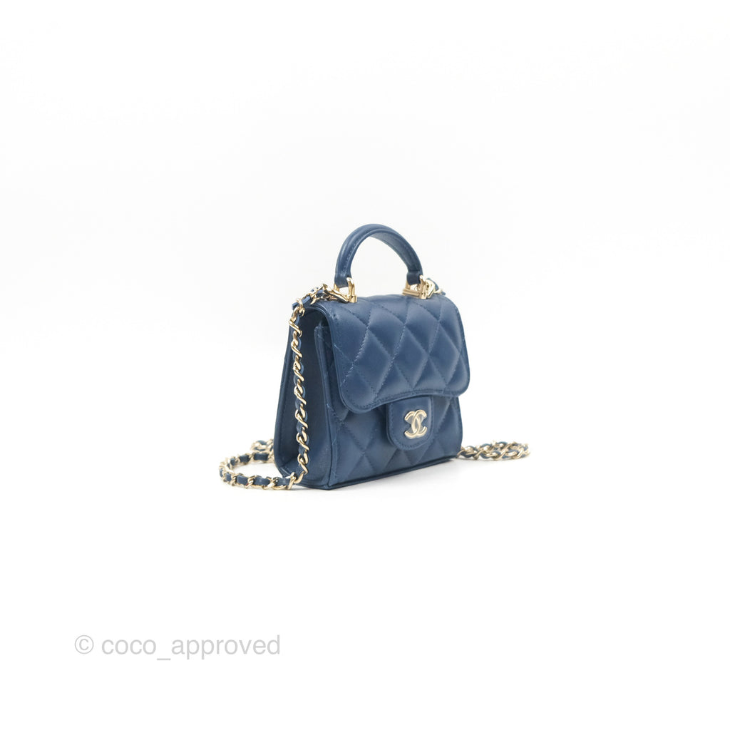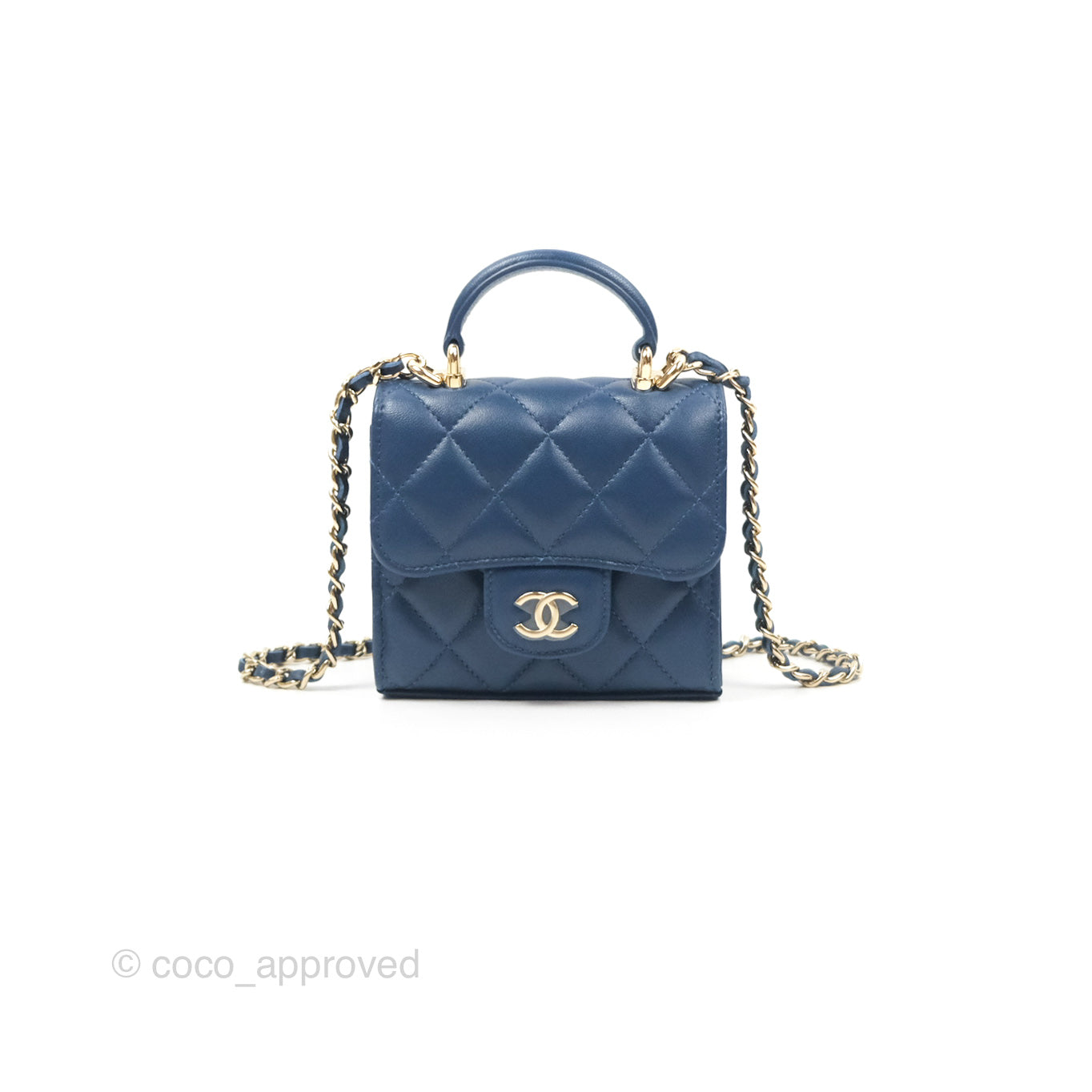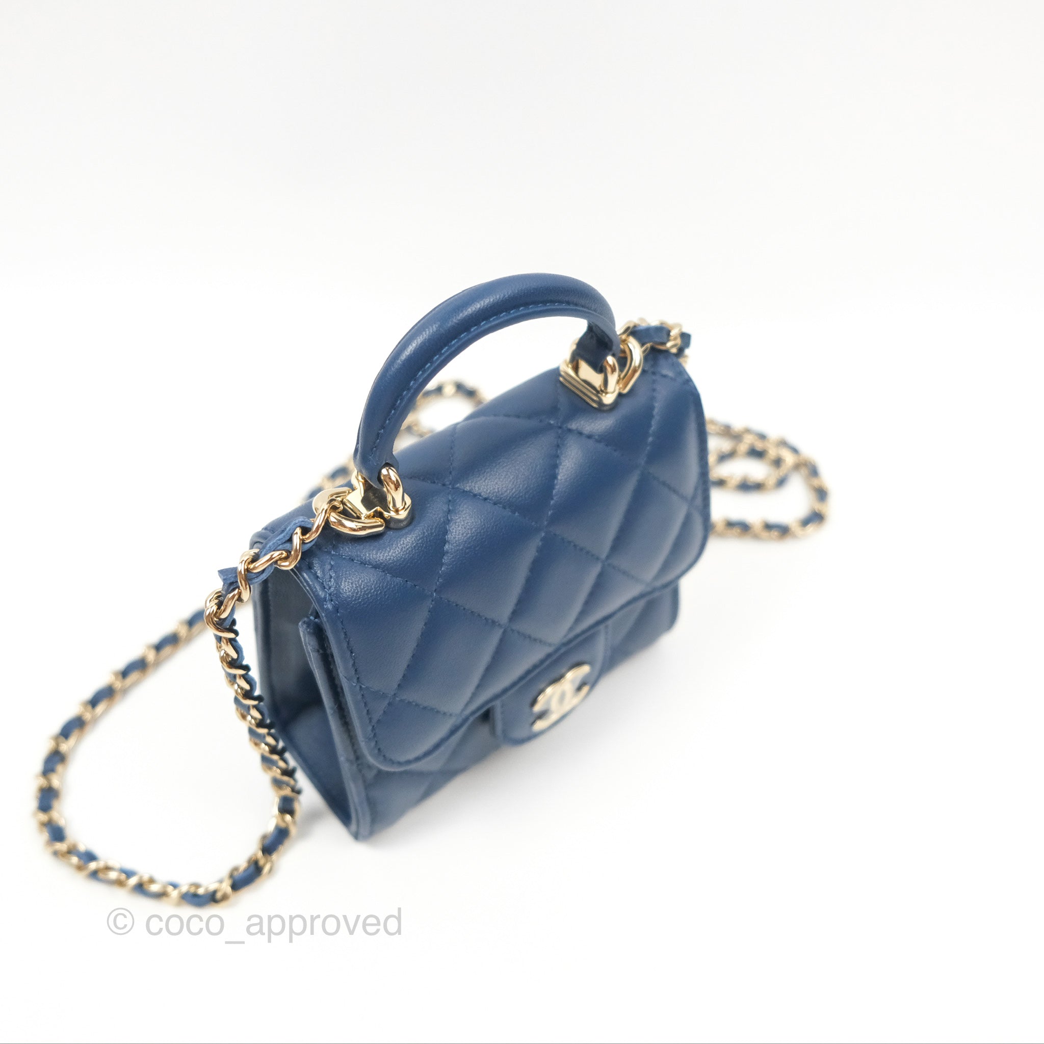 Chanel Mini Handle Clutch With Chain Navy Lambskin Gold Hardware