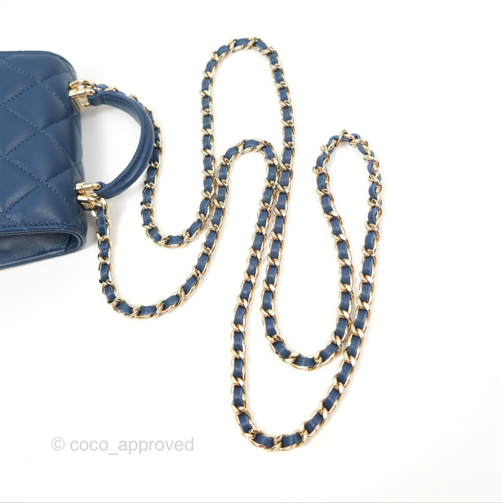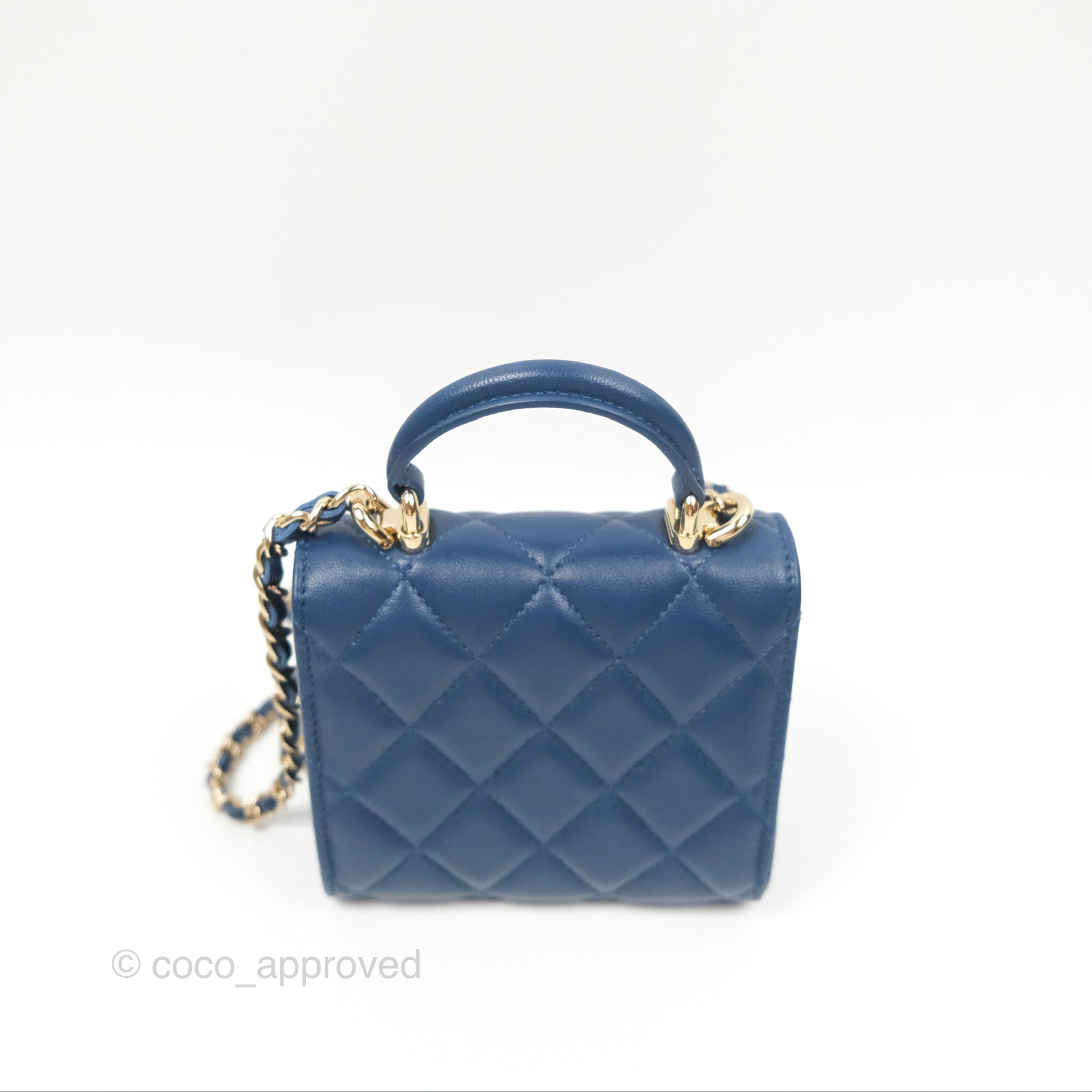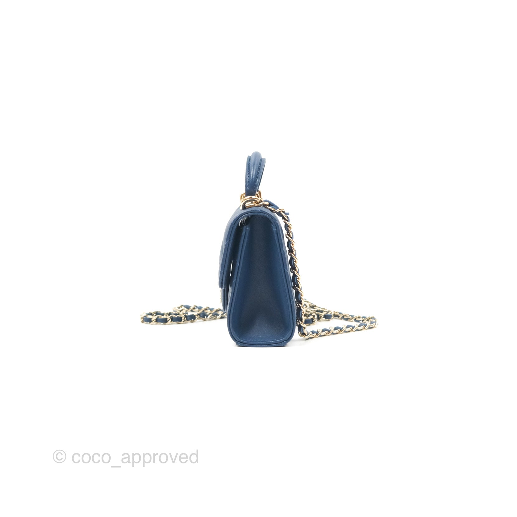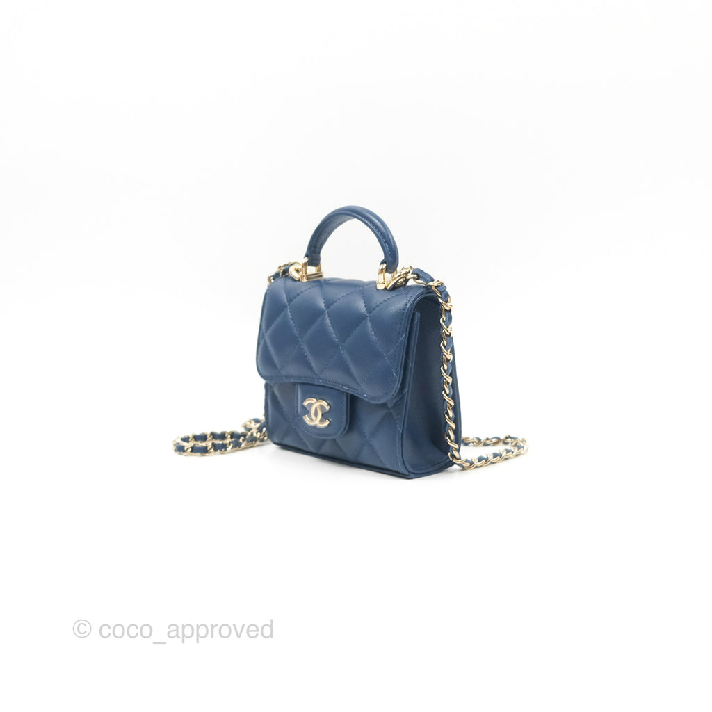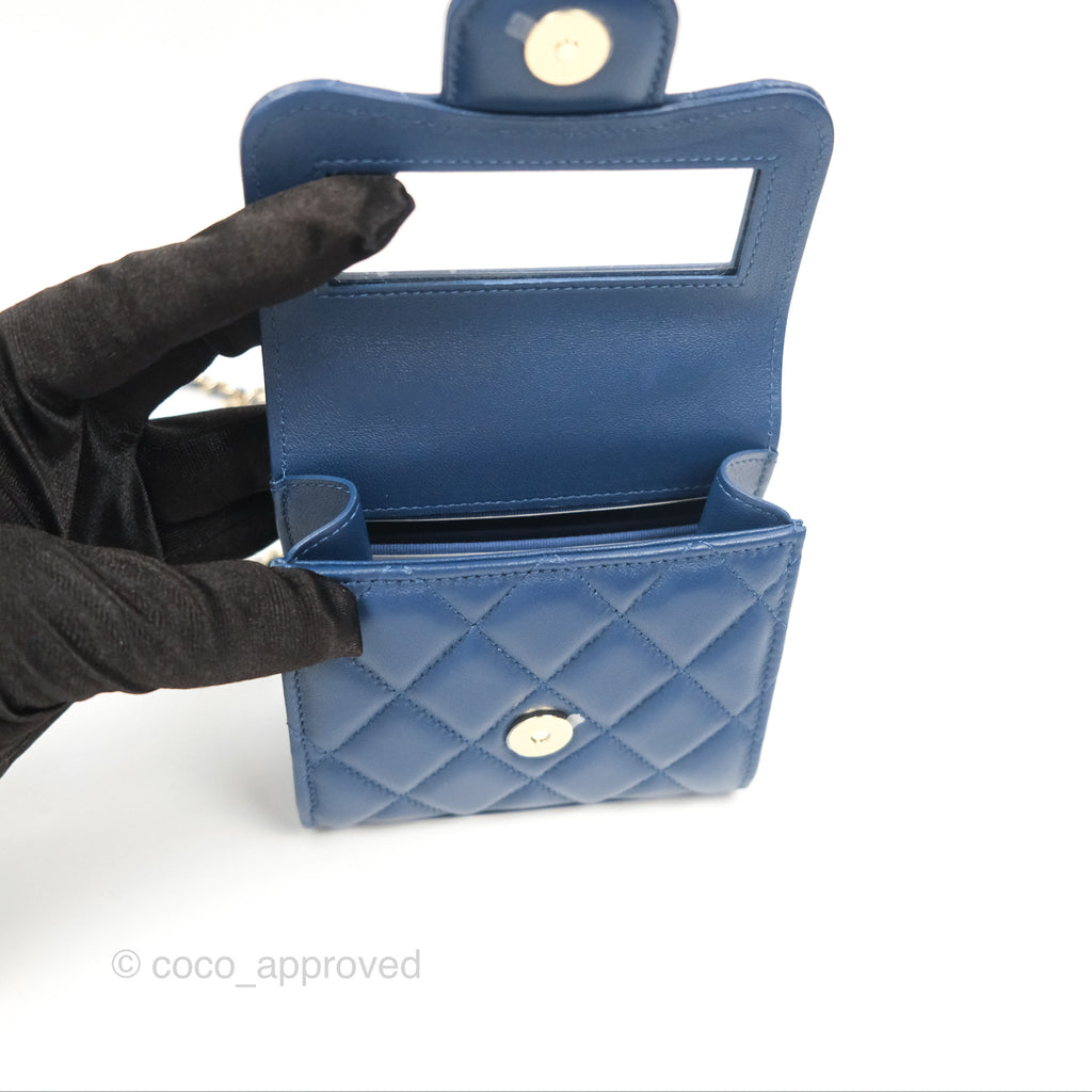 Chanel Mini Handle Clutch With Chain Navy Lambskin Gold Hardware
