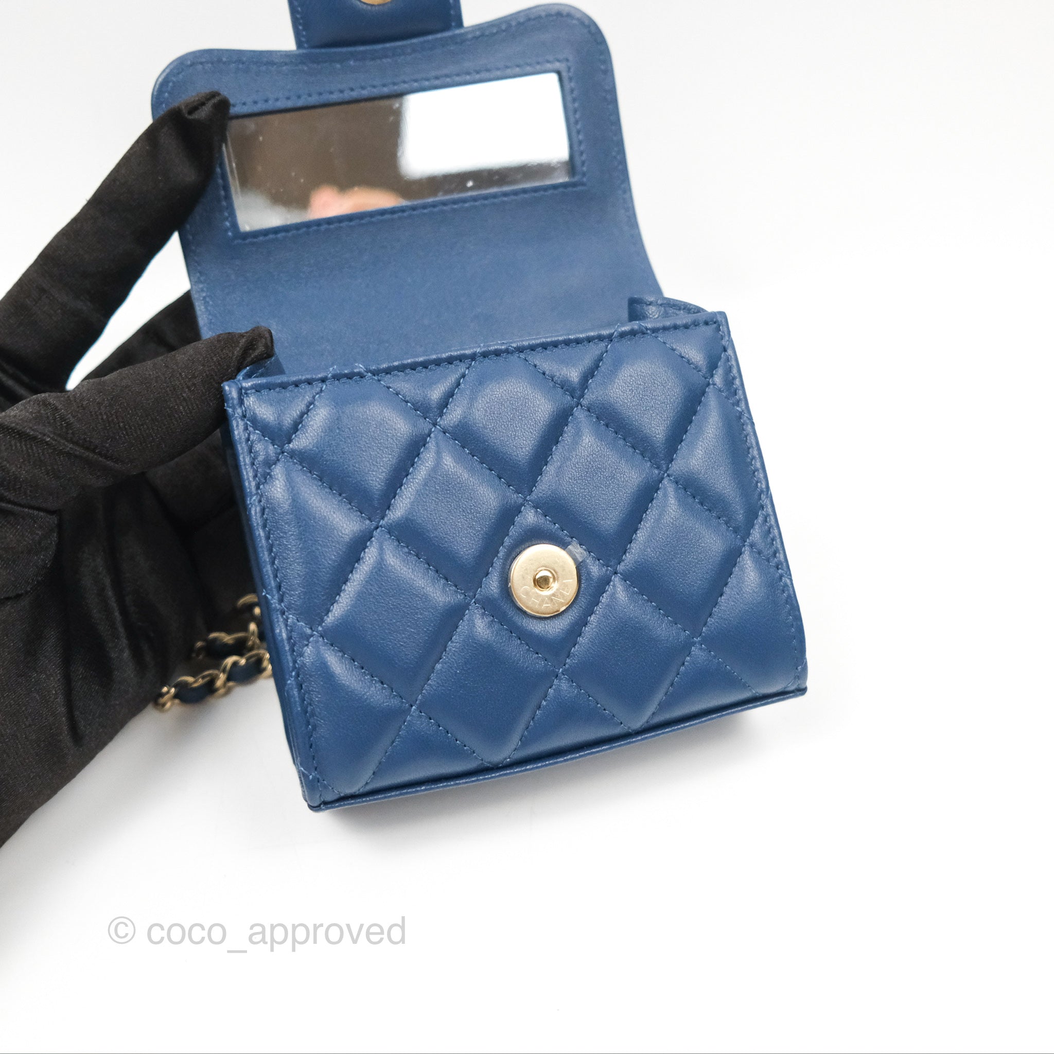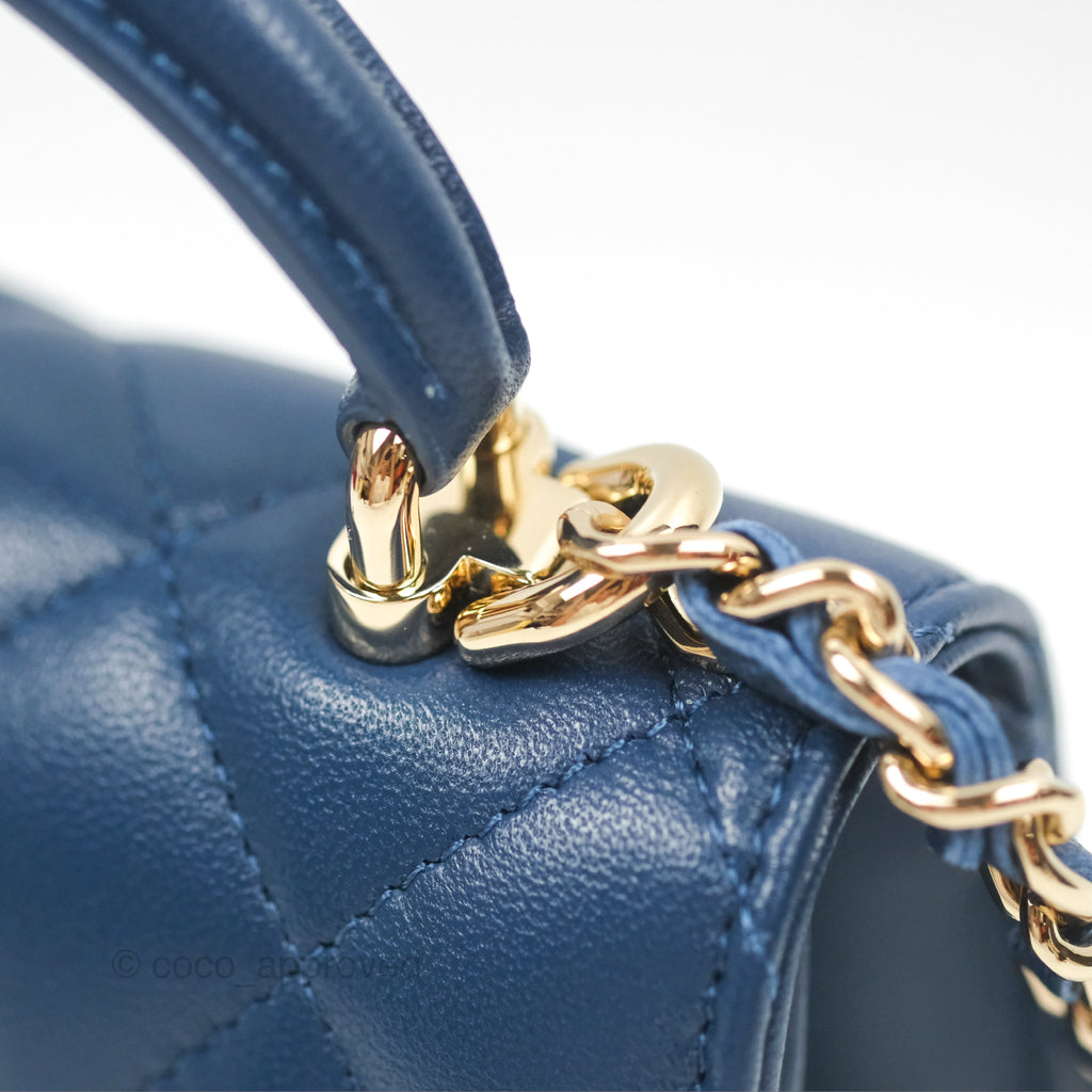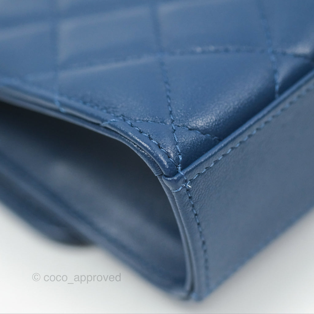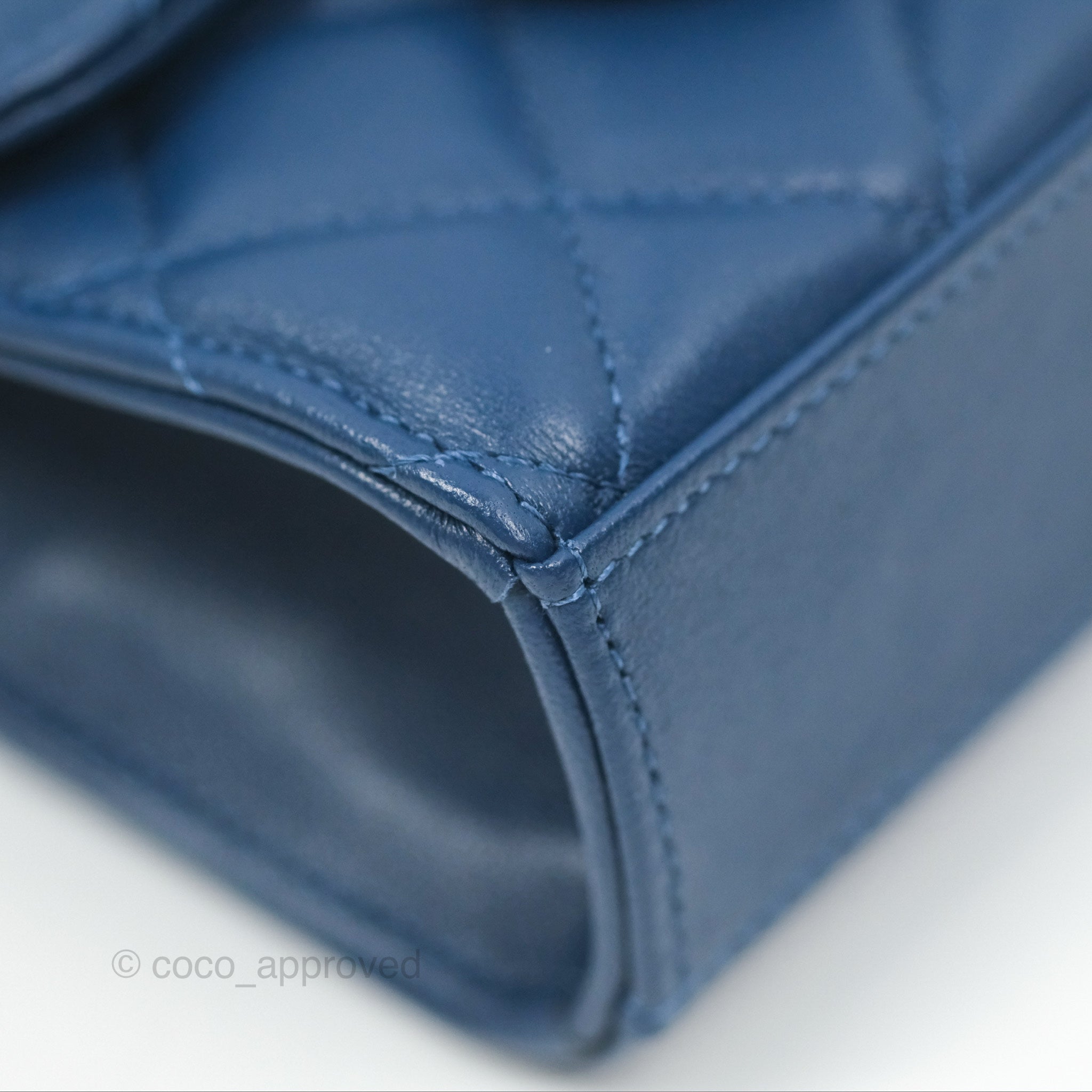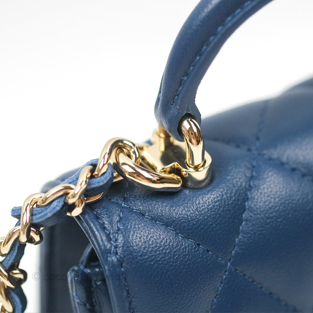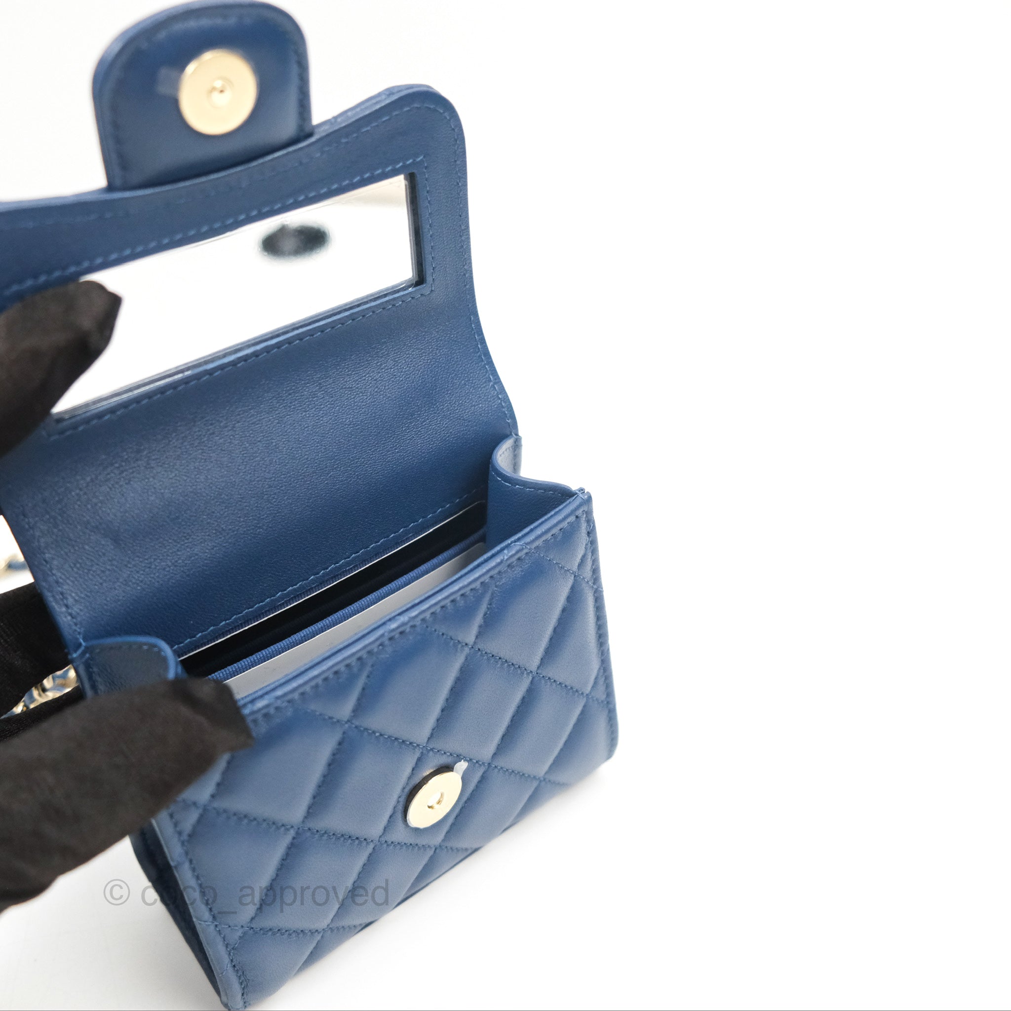 Chanel Mini Handle Clutch With Chain Navy Lambskin Gold Hardware
