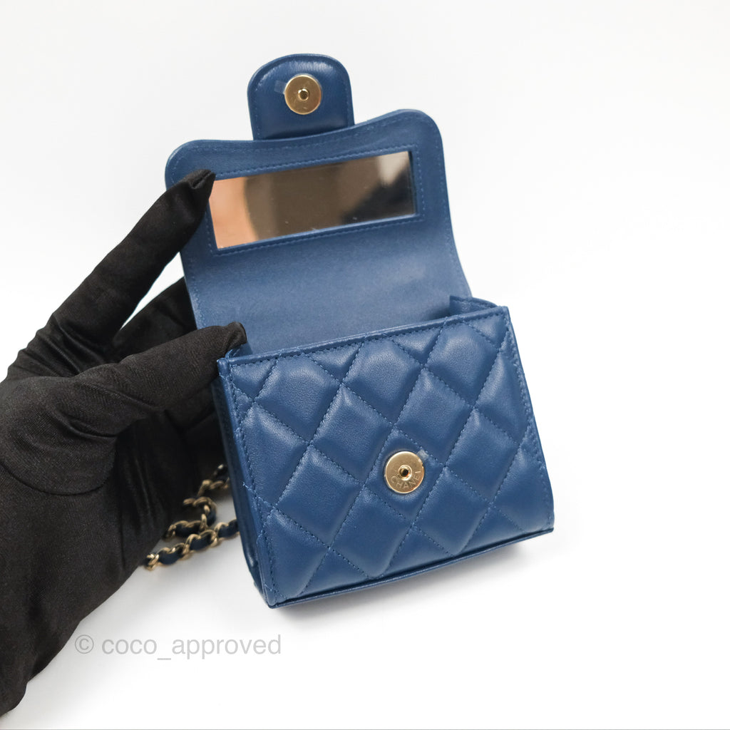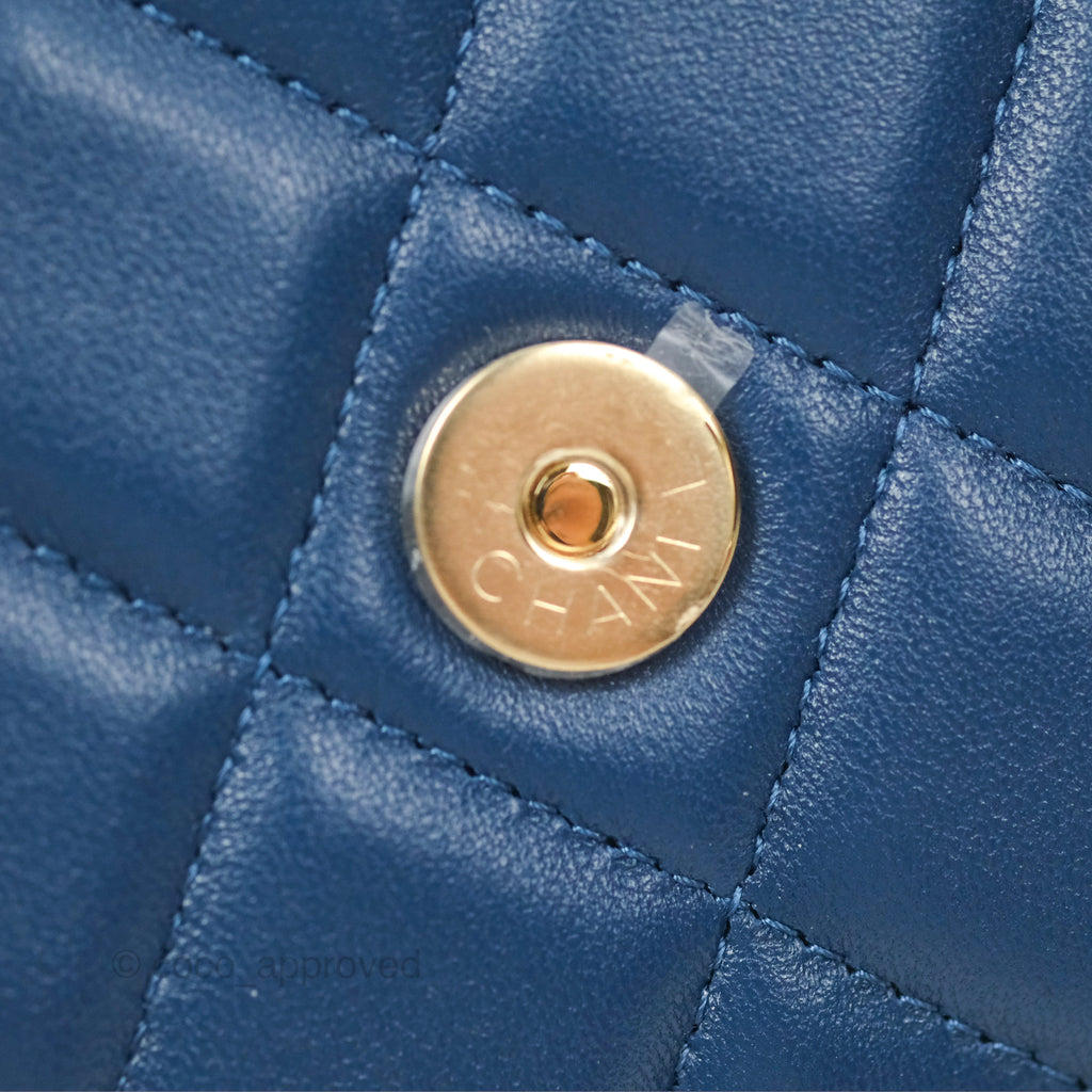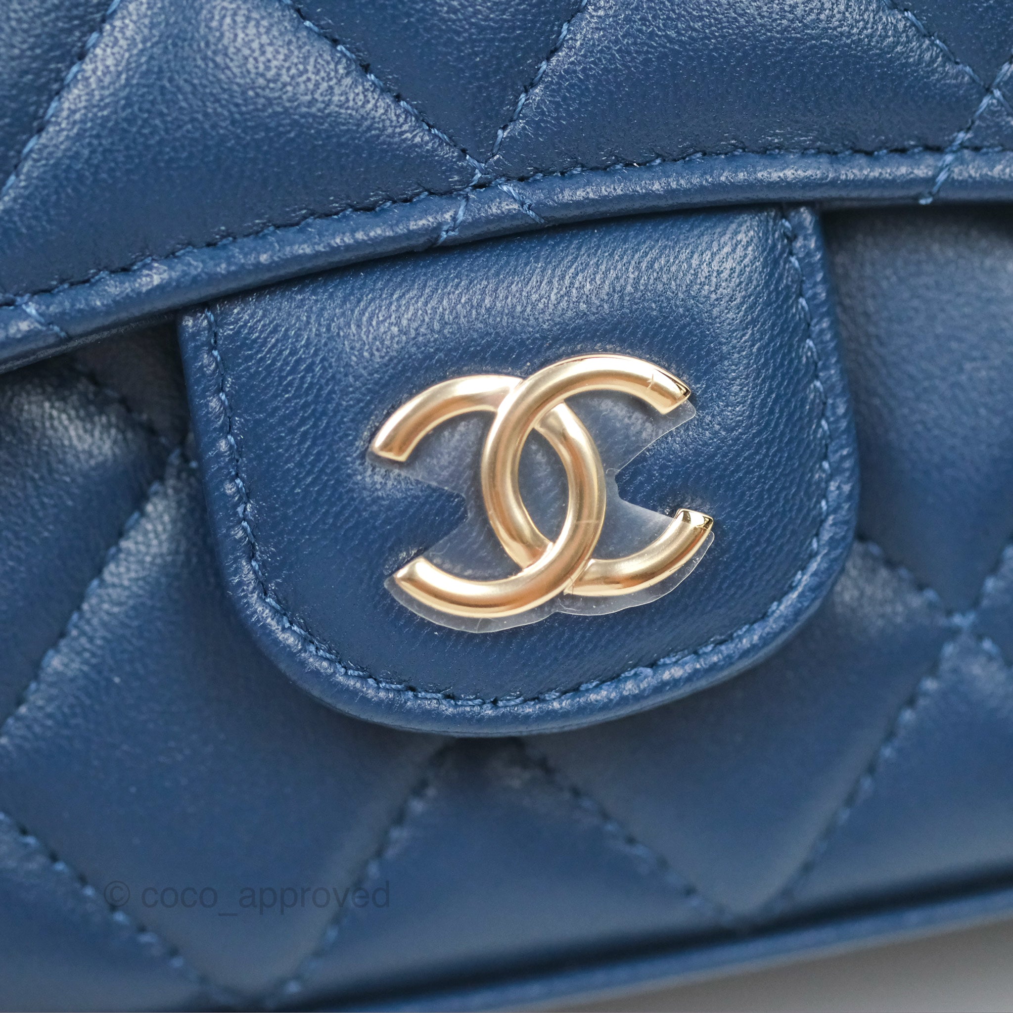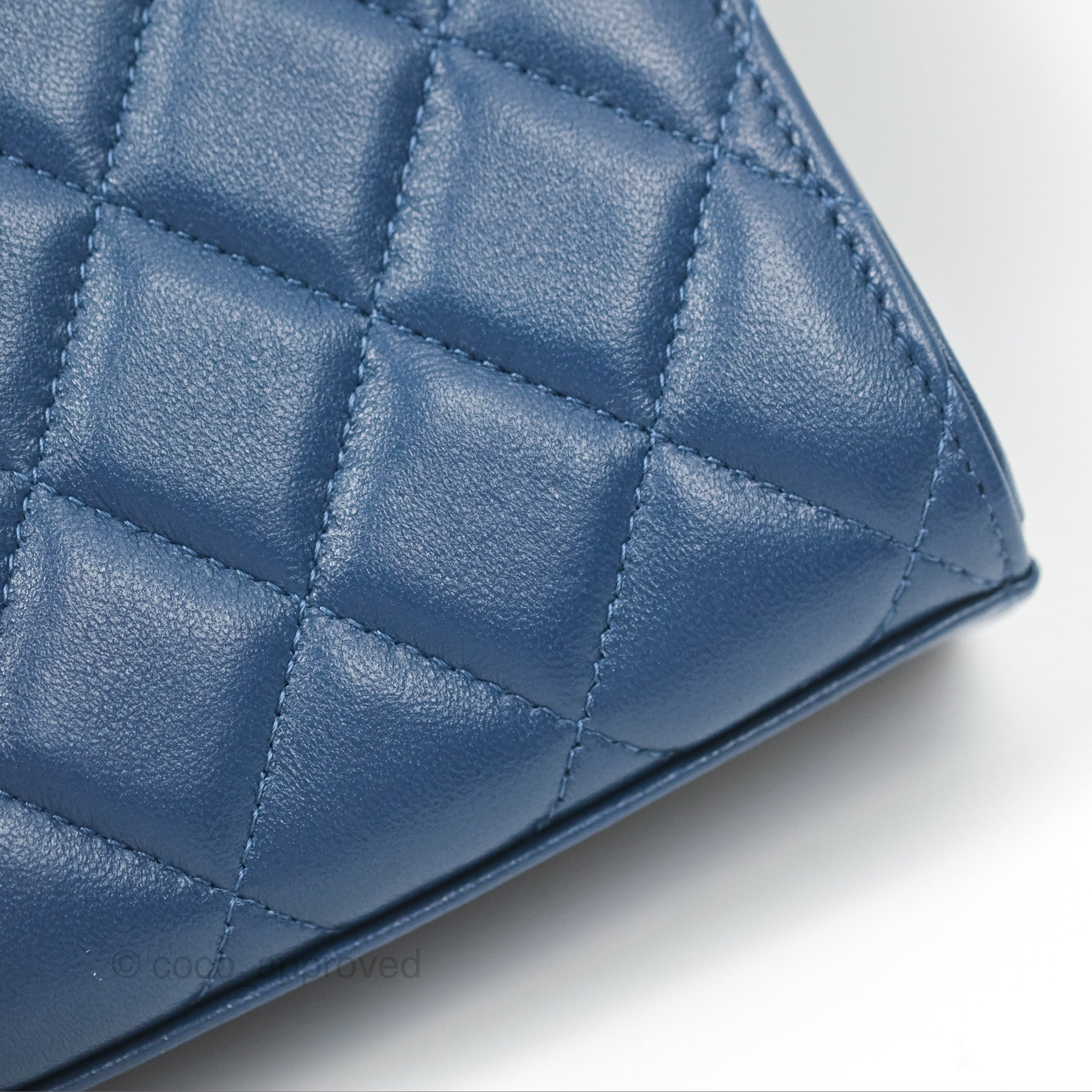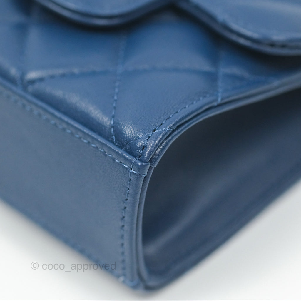 Chanel Mini Handle Clutch With Chain Navy Lambskin Gold Hardware