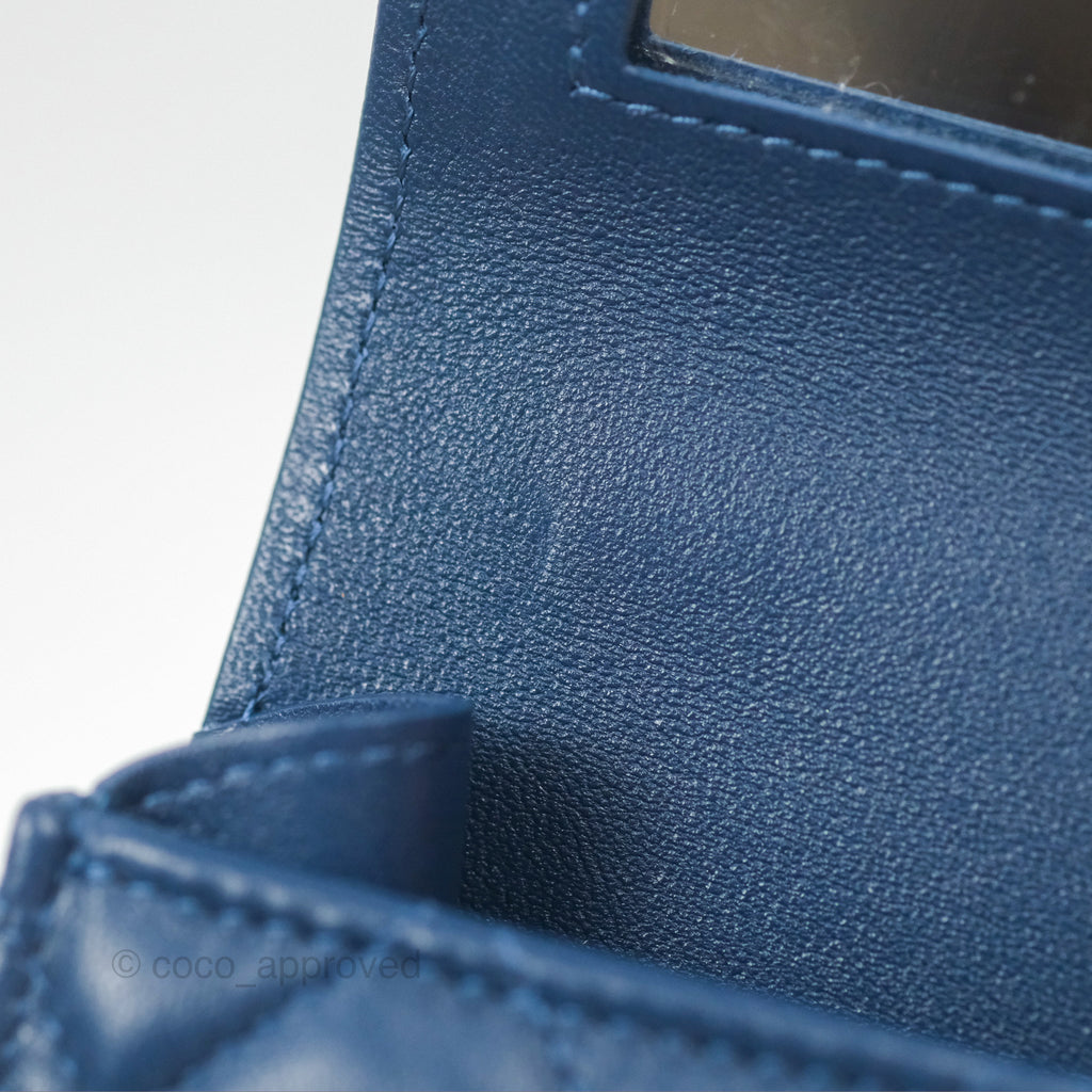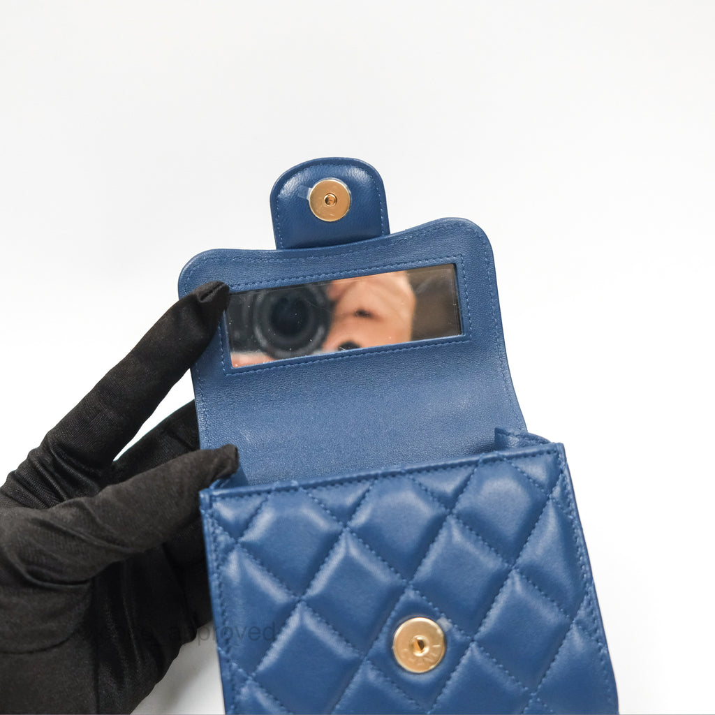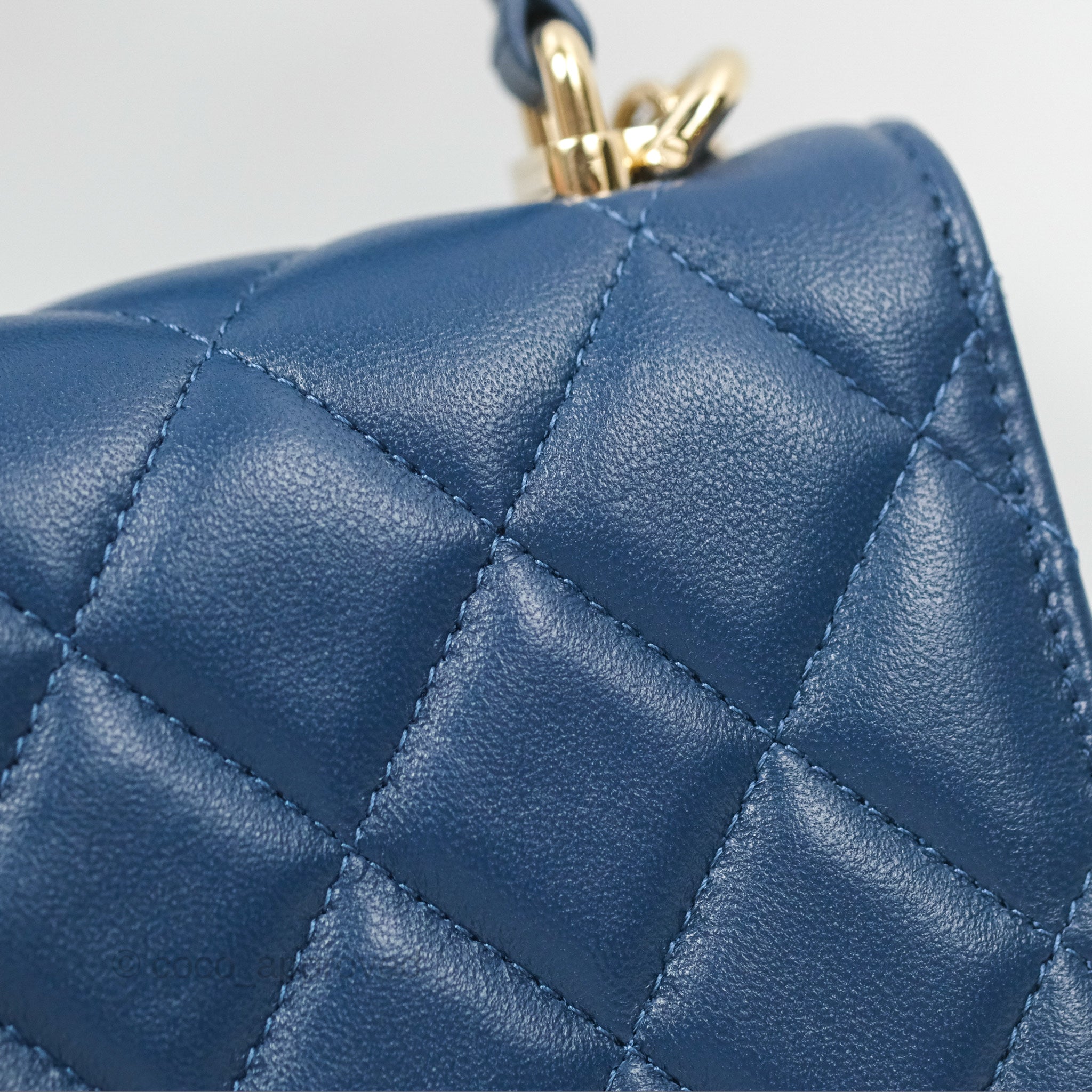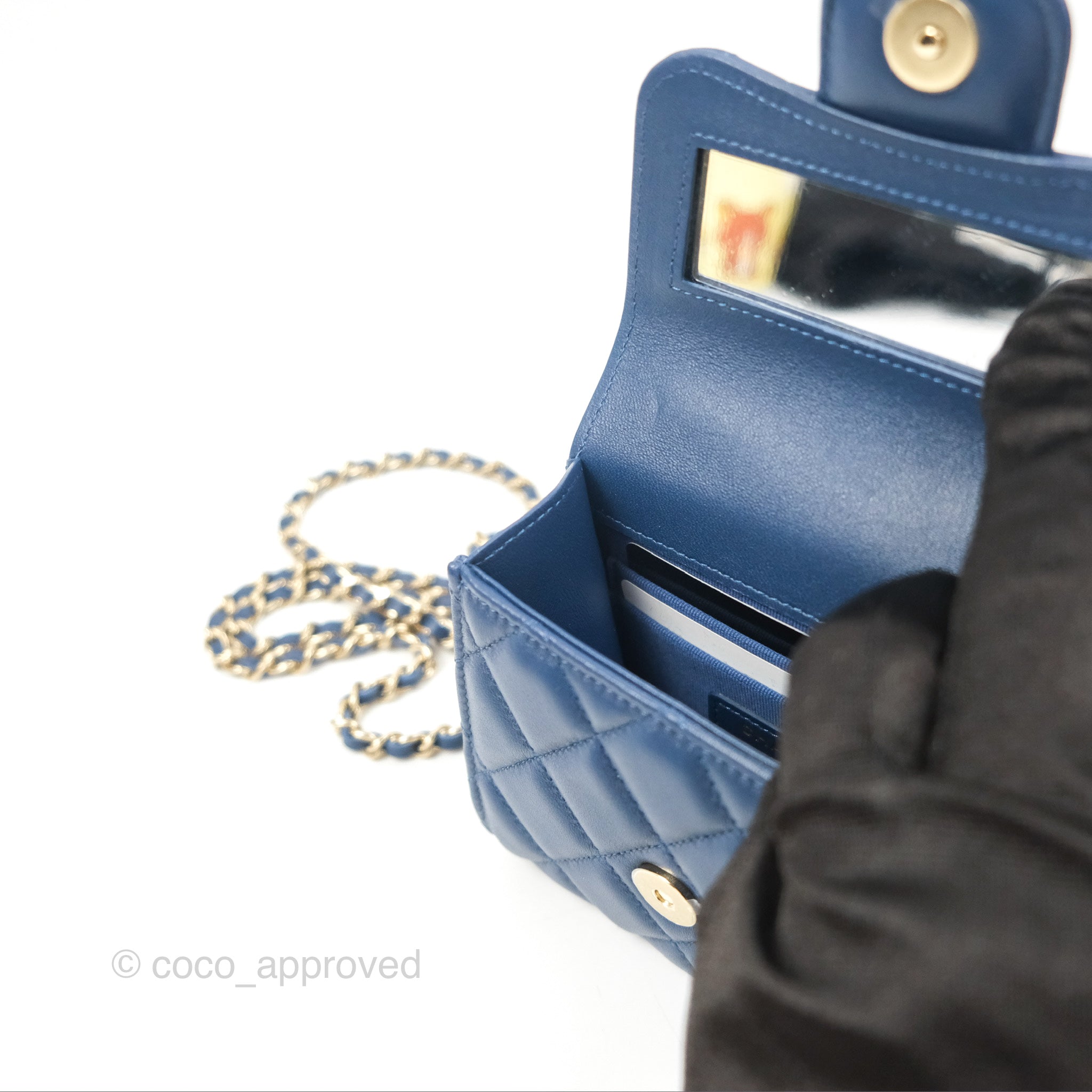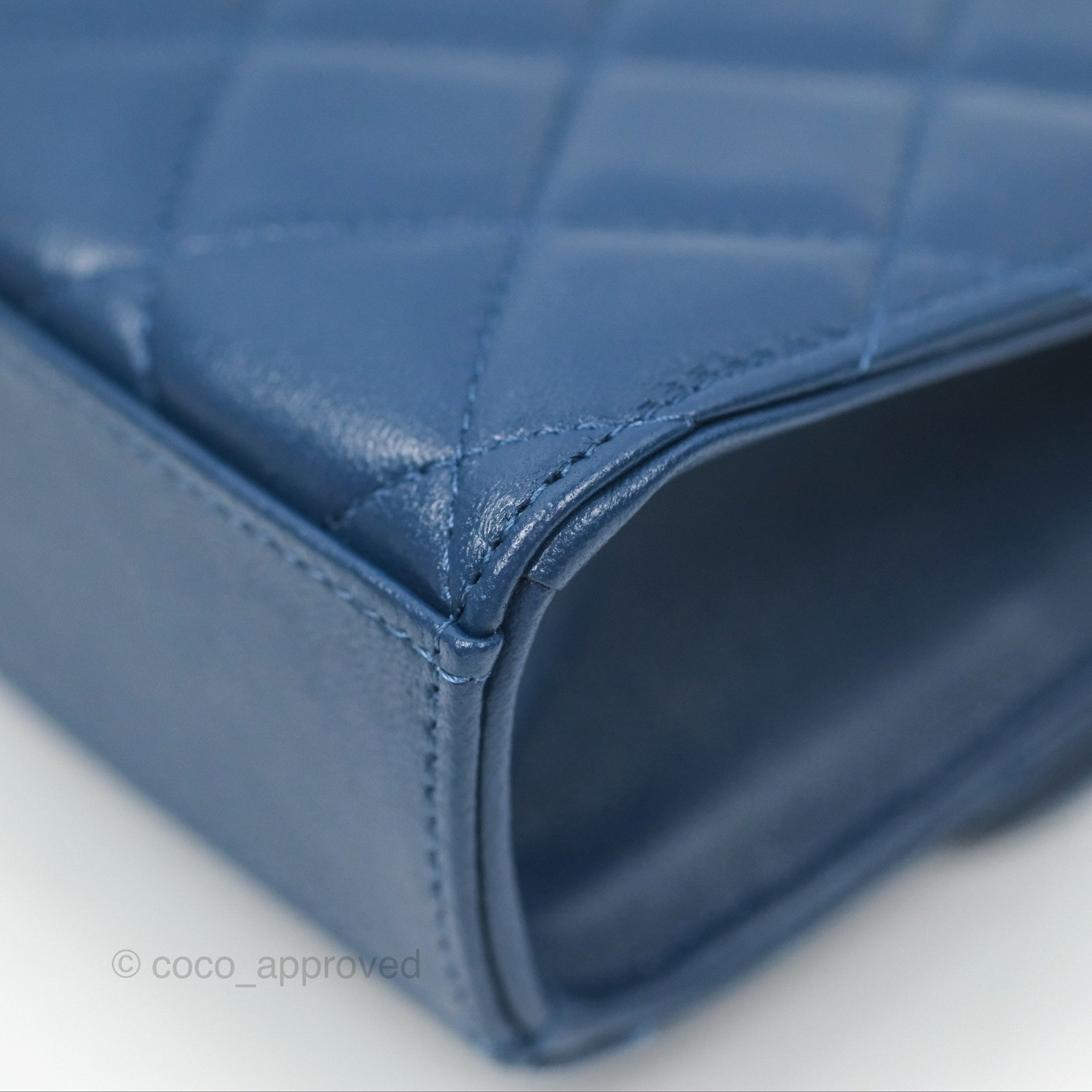 Chanel Mini Handle Clutch With Chain Navy Lambskin Gold Hardware