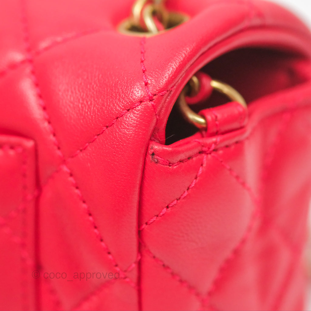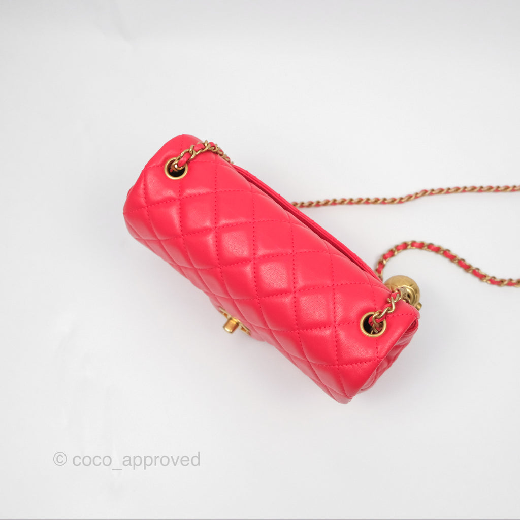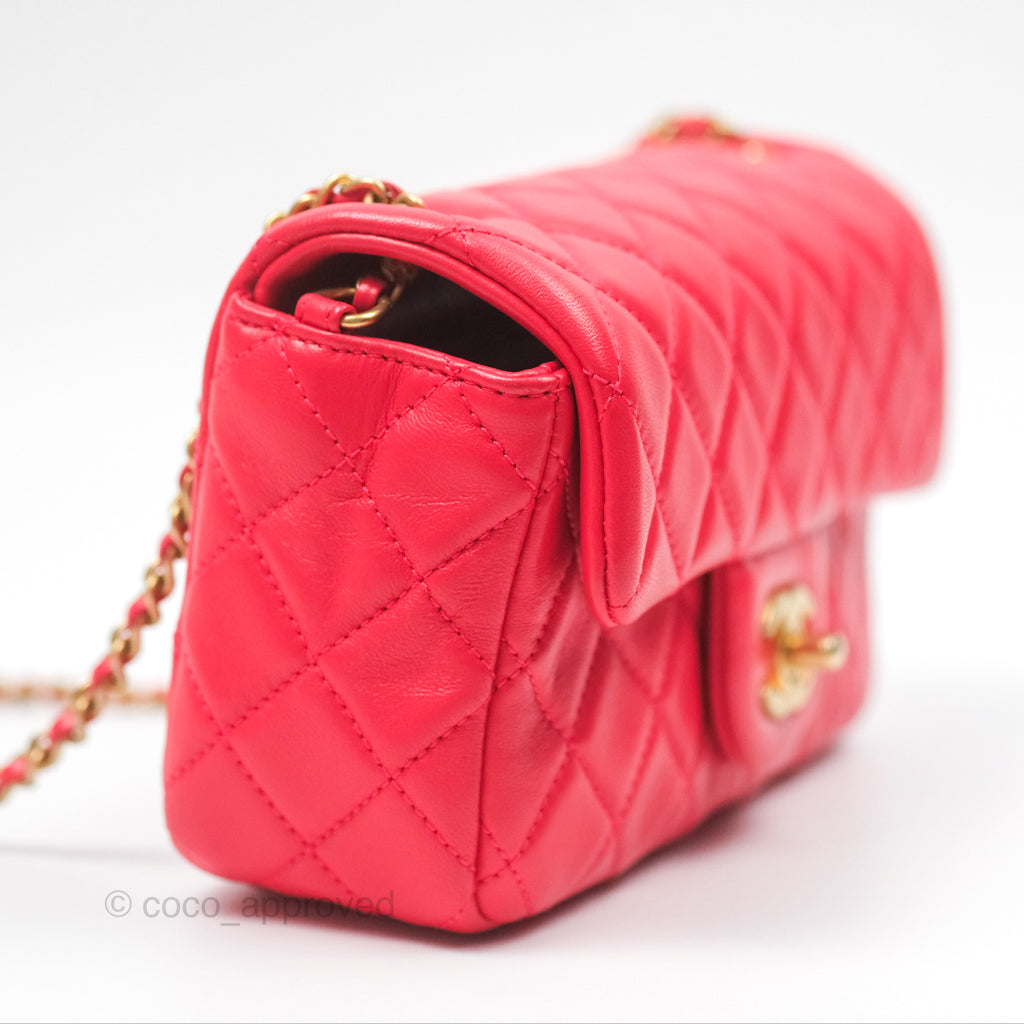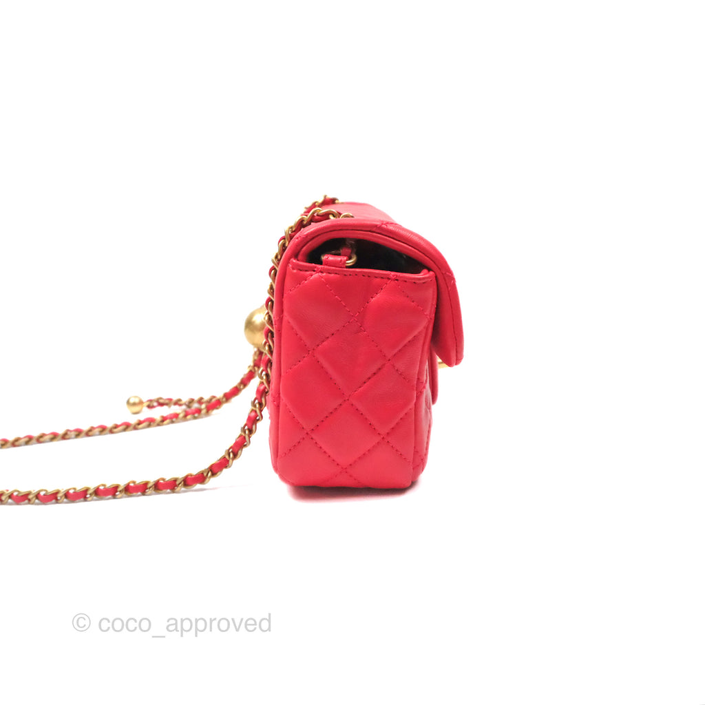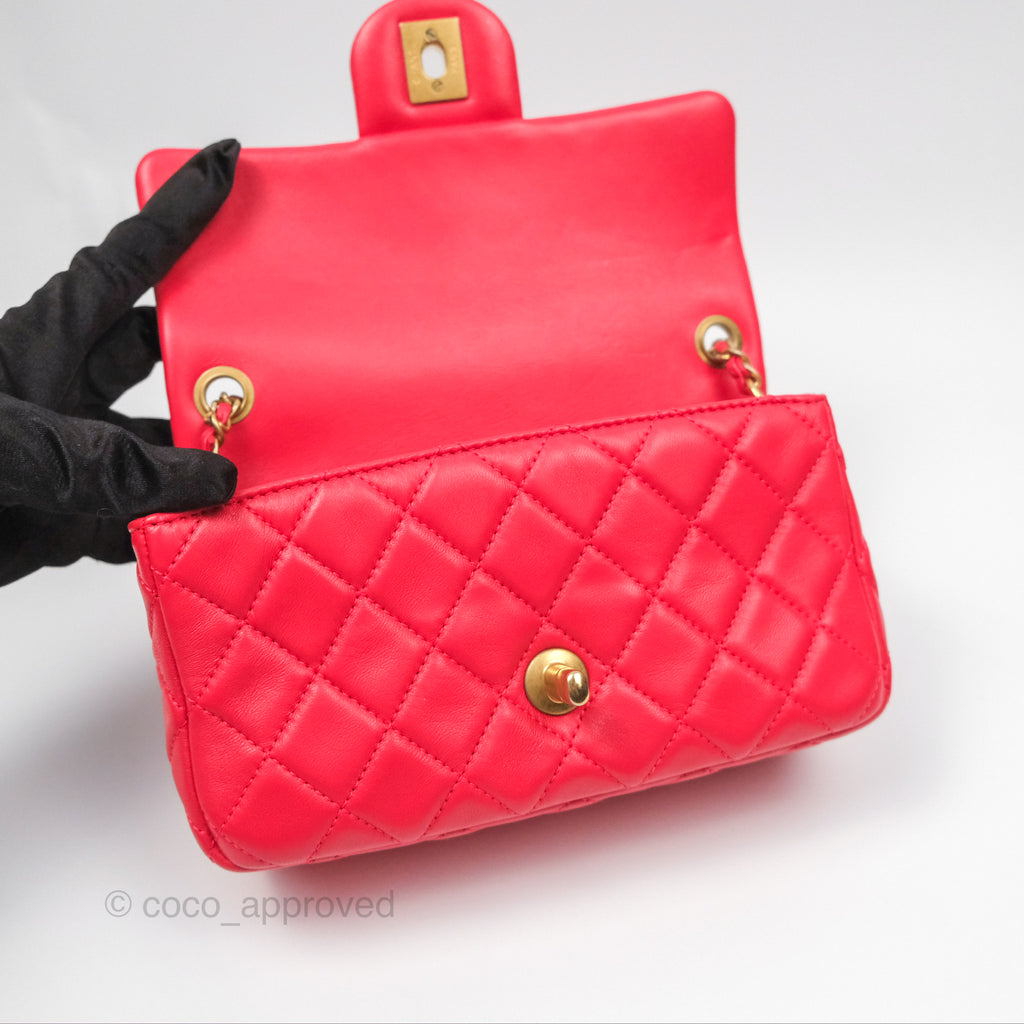 Chanel Mini Rectangular Pearl Crush Chilli Red Lambskin Aged Gold Hardware
