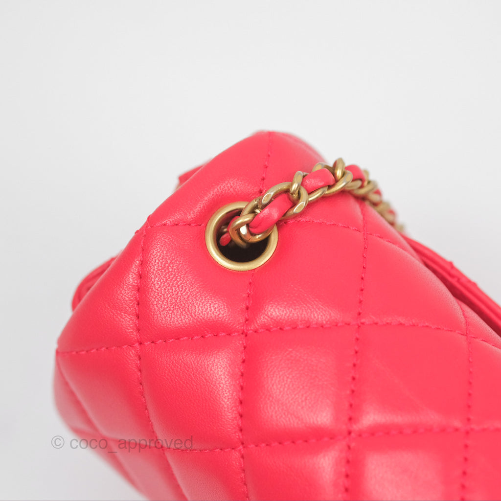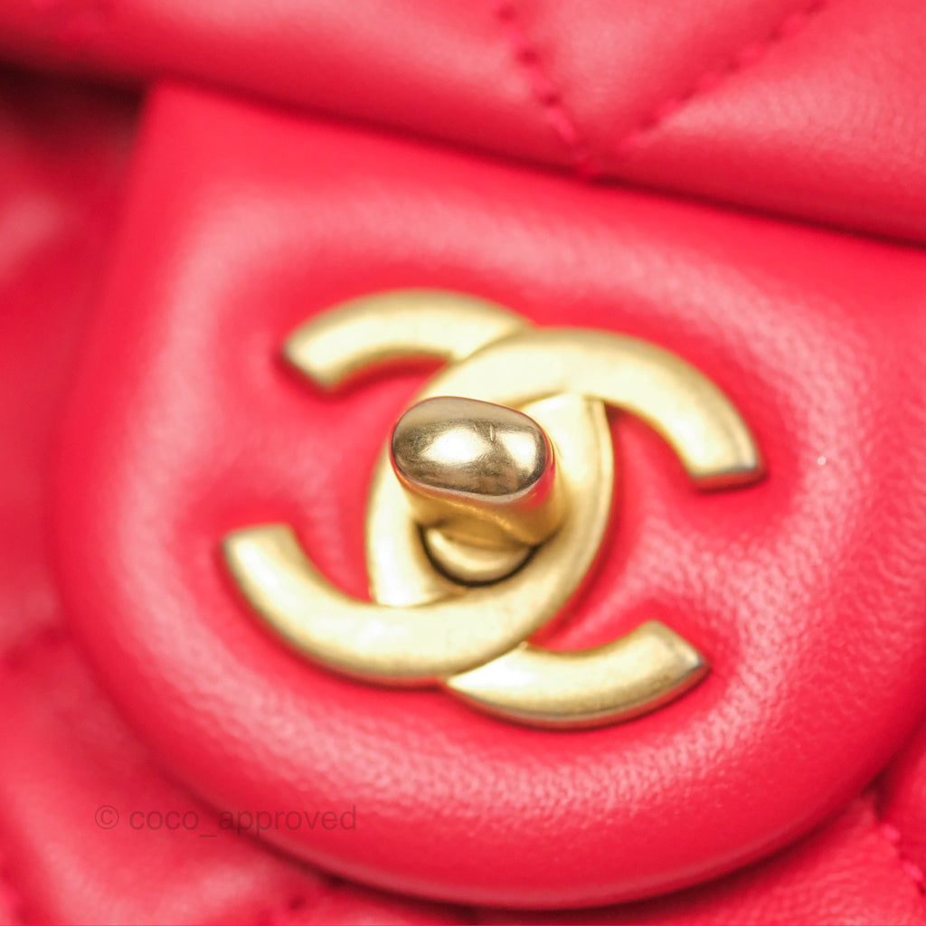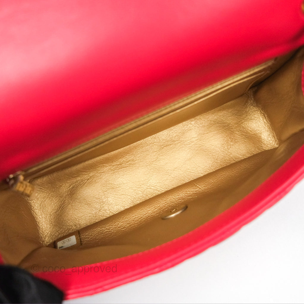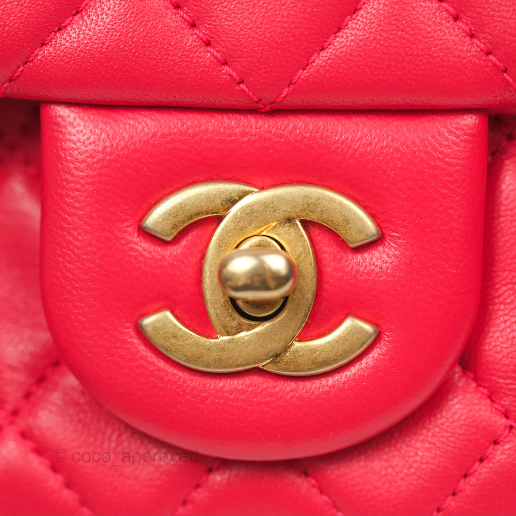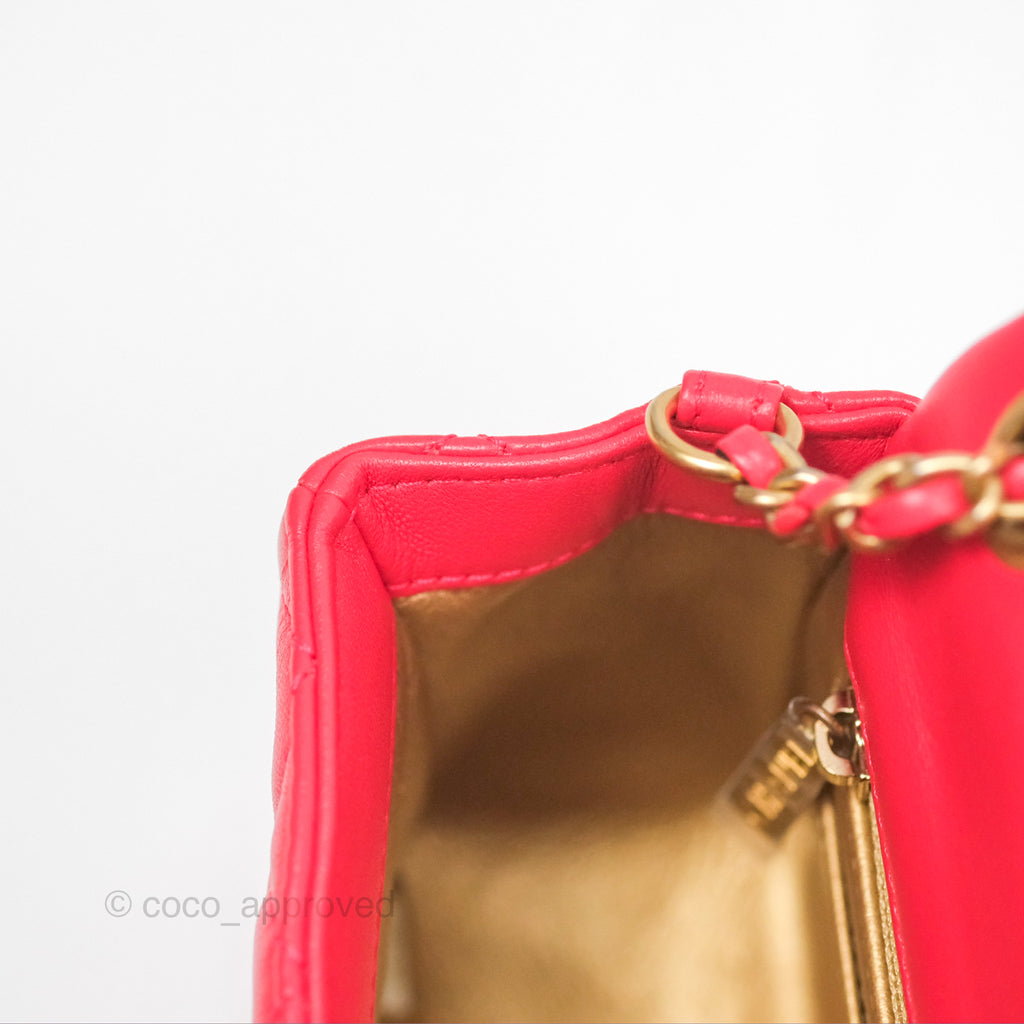 Chanel Mini Rectangular Pearl Crush Chilli Red Lambskin Aged Gold Hardware