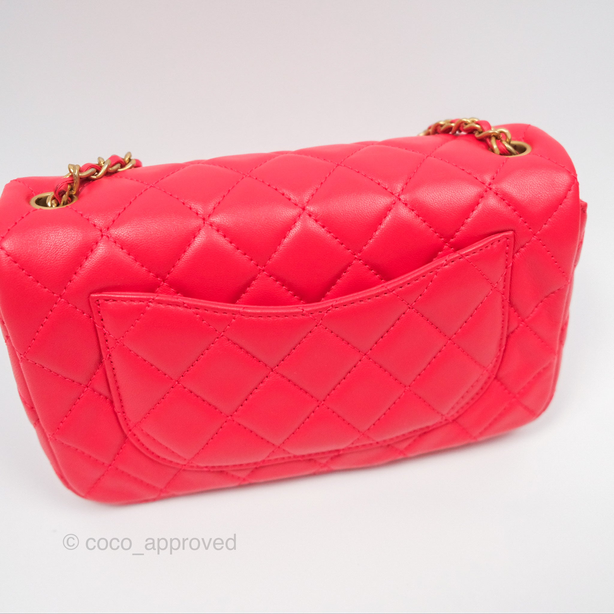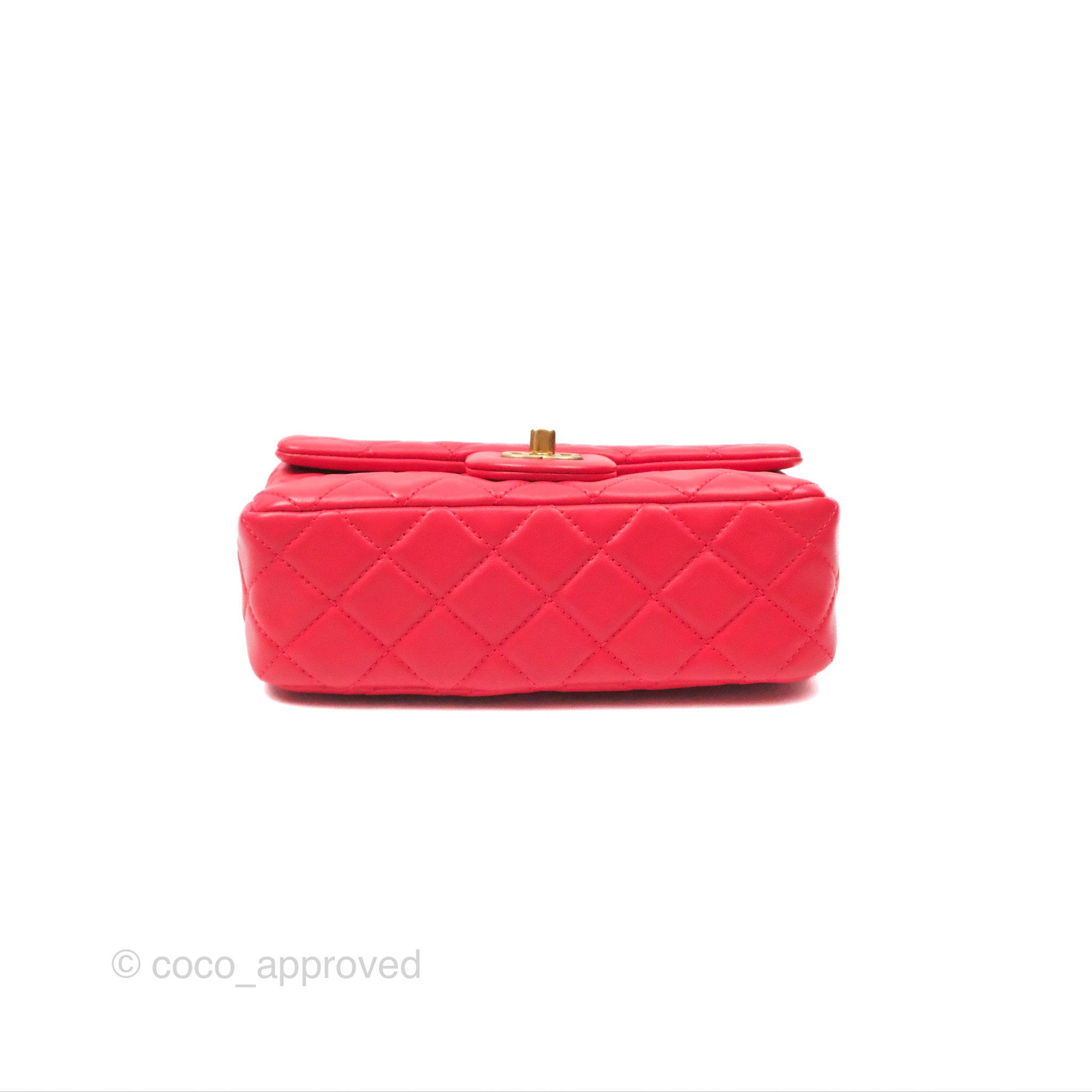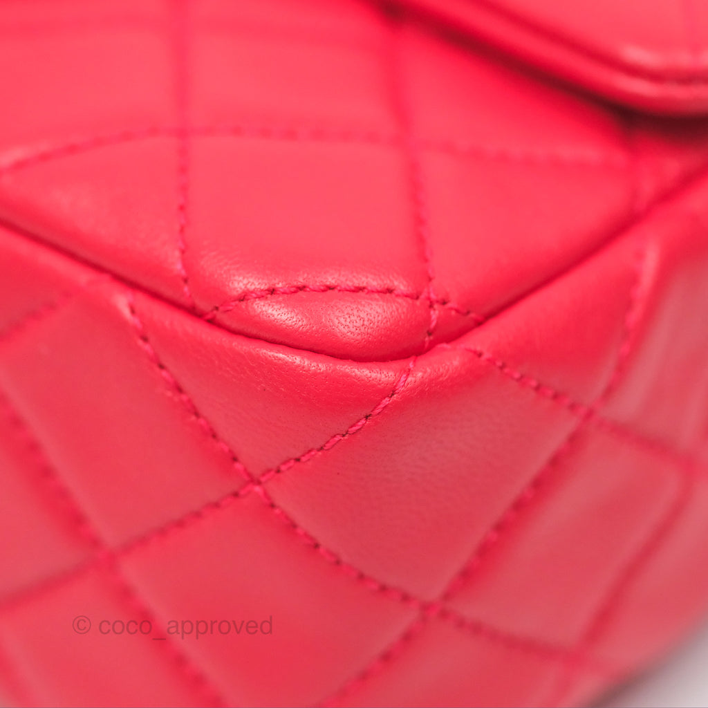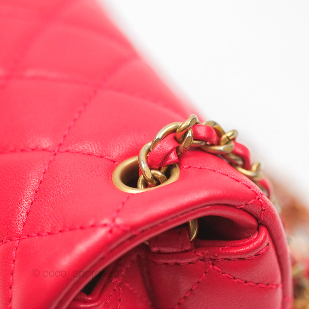 Chanel Mini Rectangular Pearl Crush Chilli Red Lambskin Aged Gold Hardware