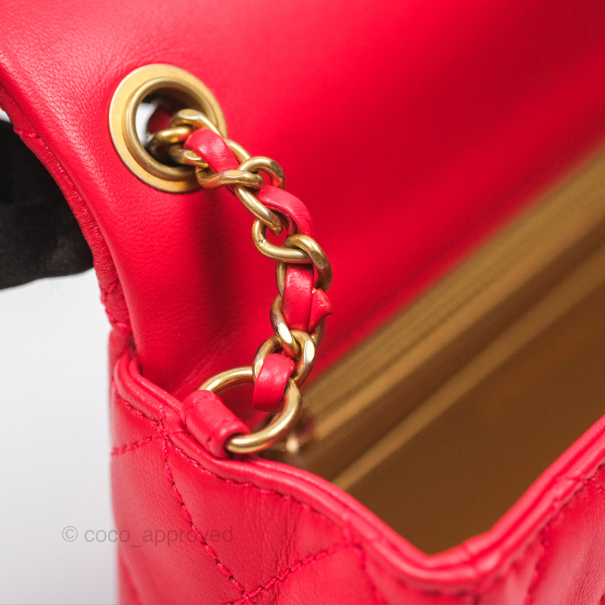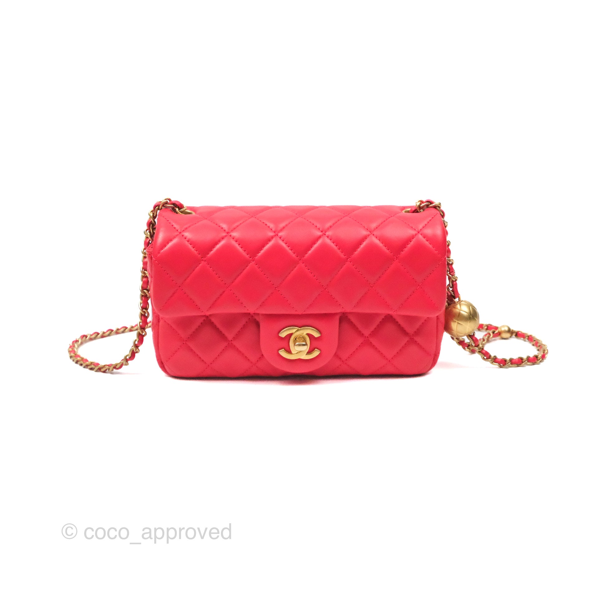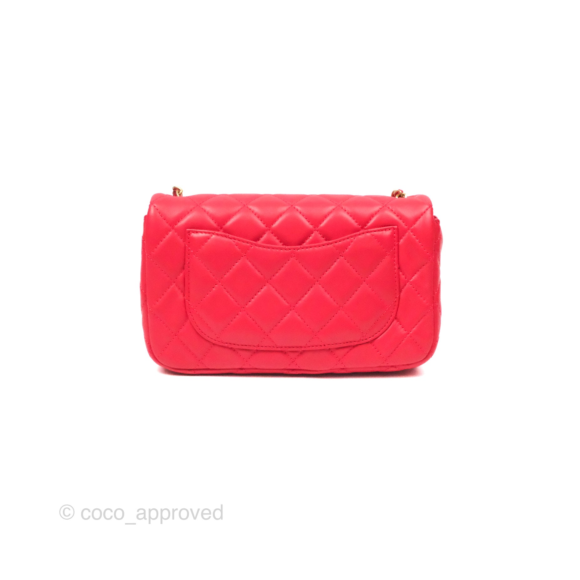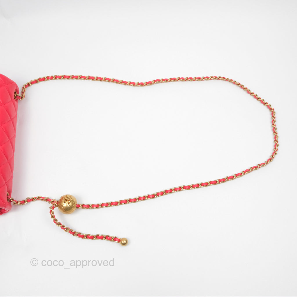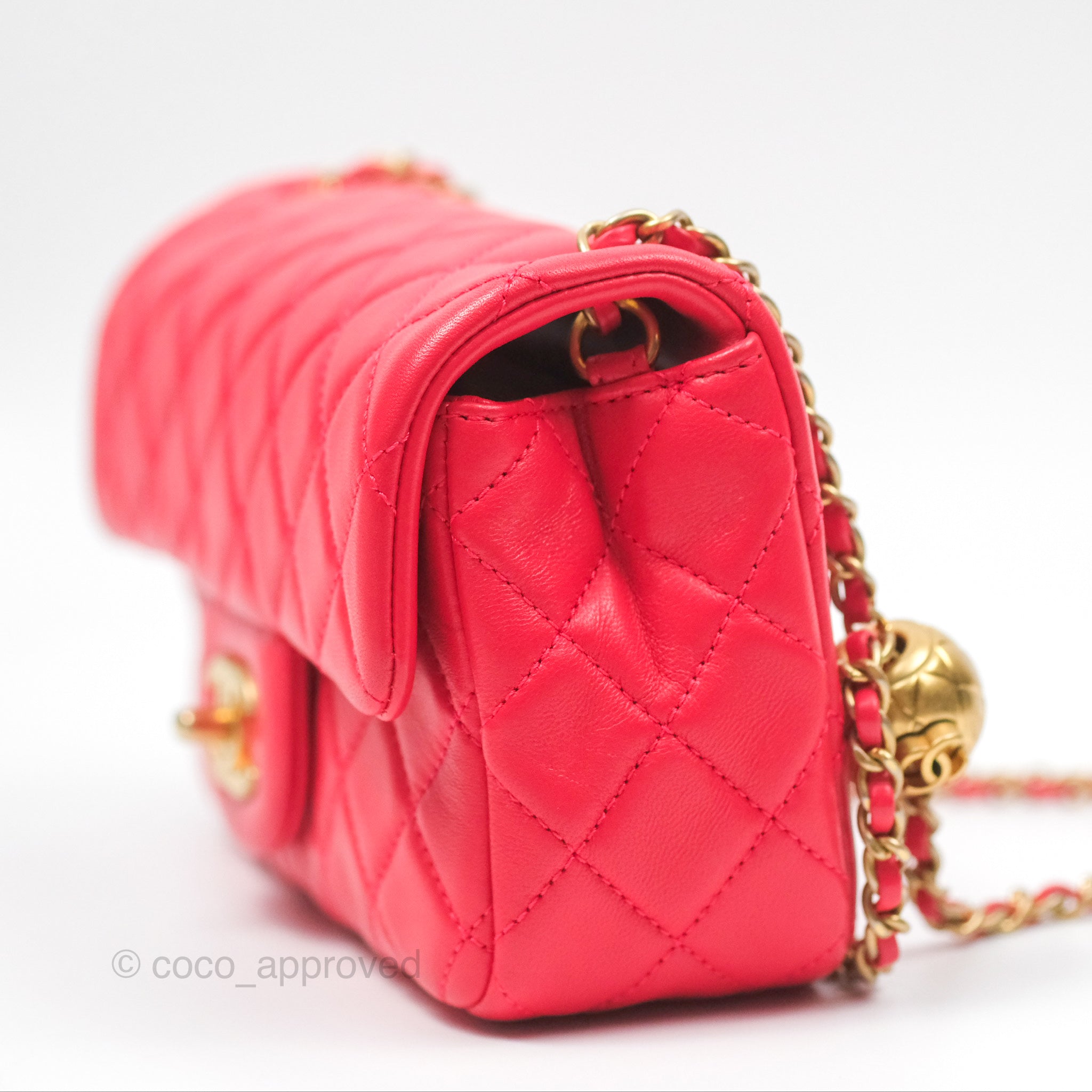 Chanel Mini Rectangular Pearl Crush Chilli Red Lambskin Aged Gold Hardware