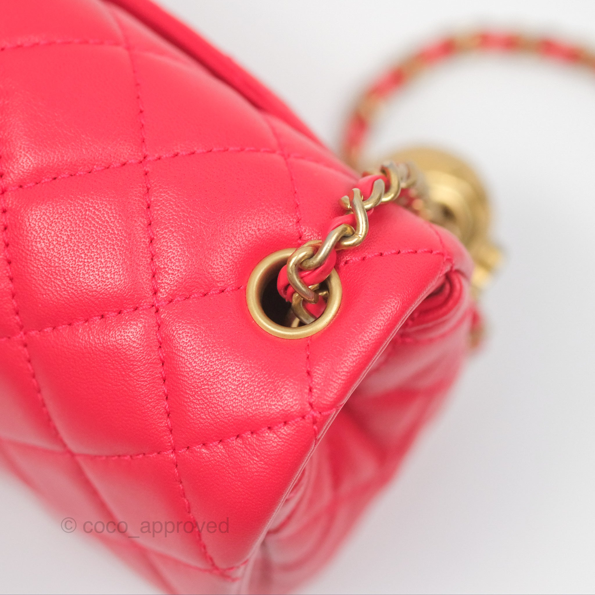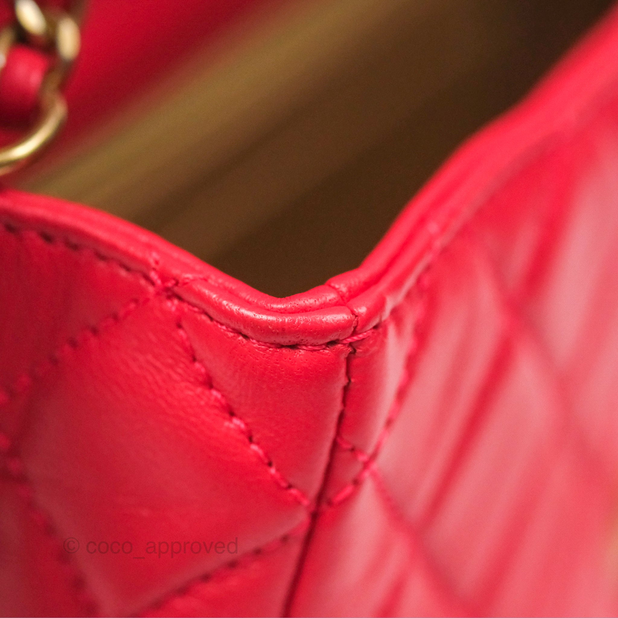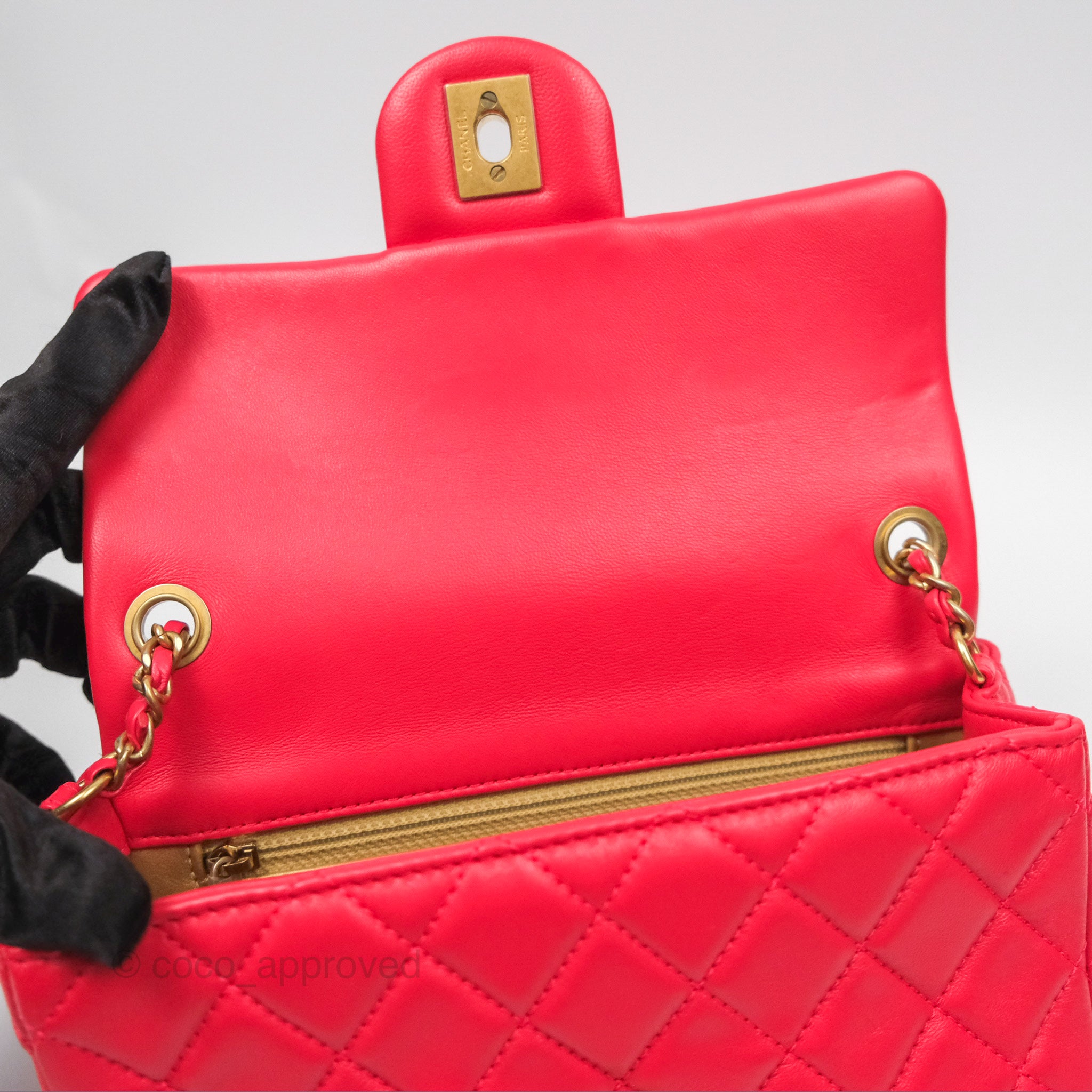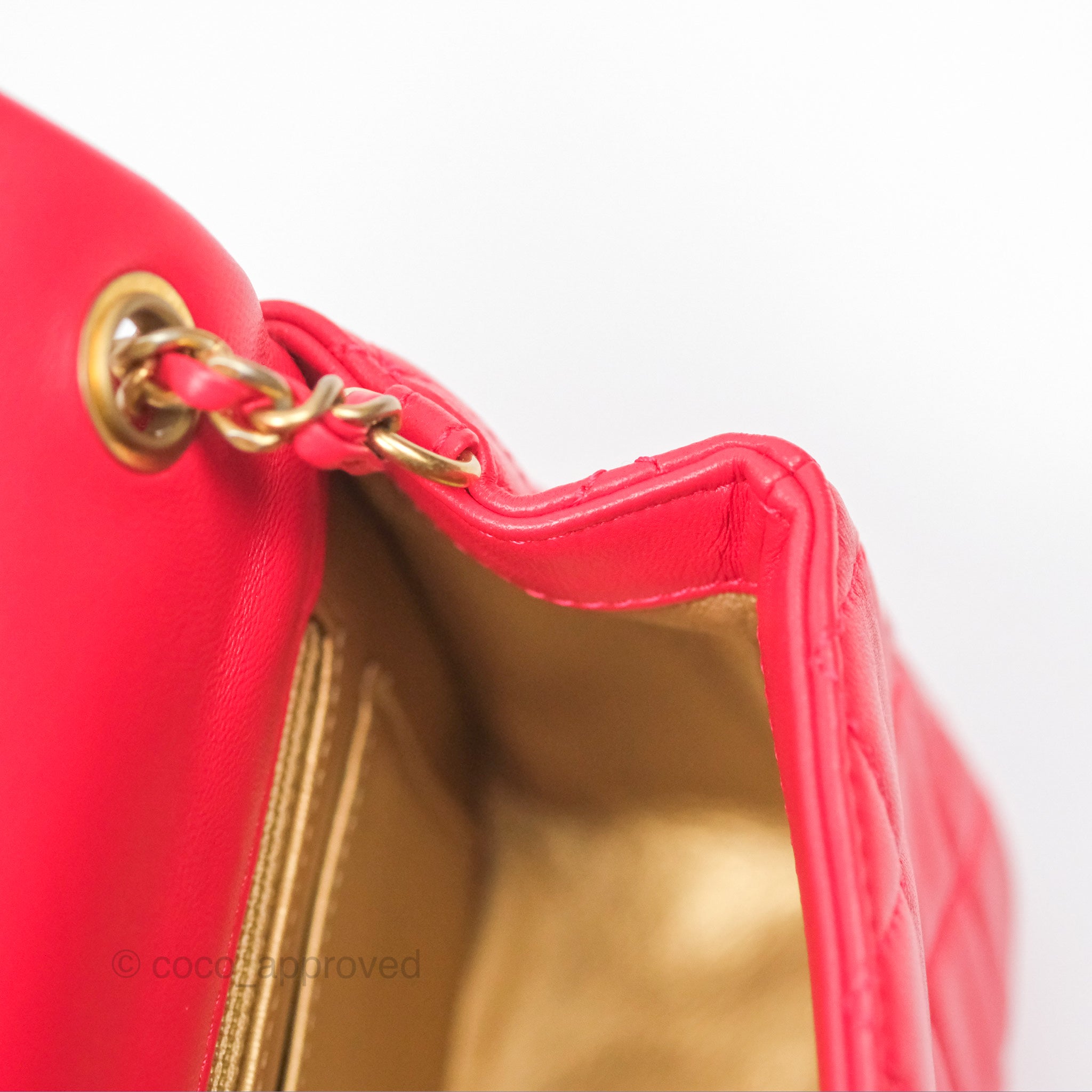 Chanel Mini Rectangular Pearl Crush Chilli Red Lambskin Aged Gold Hardware