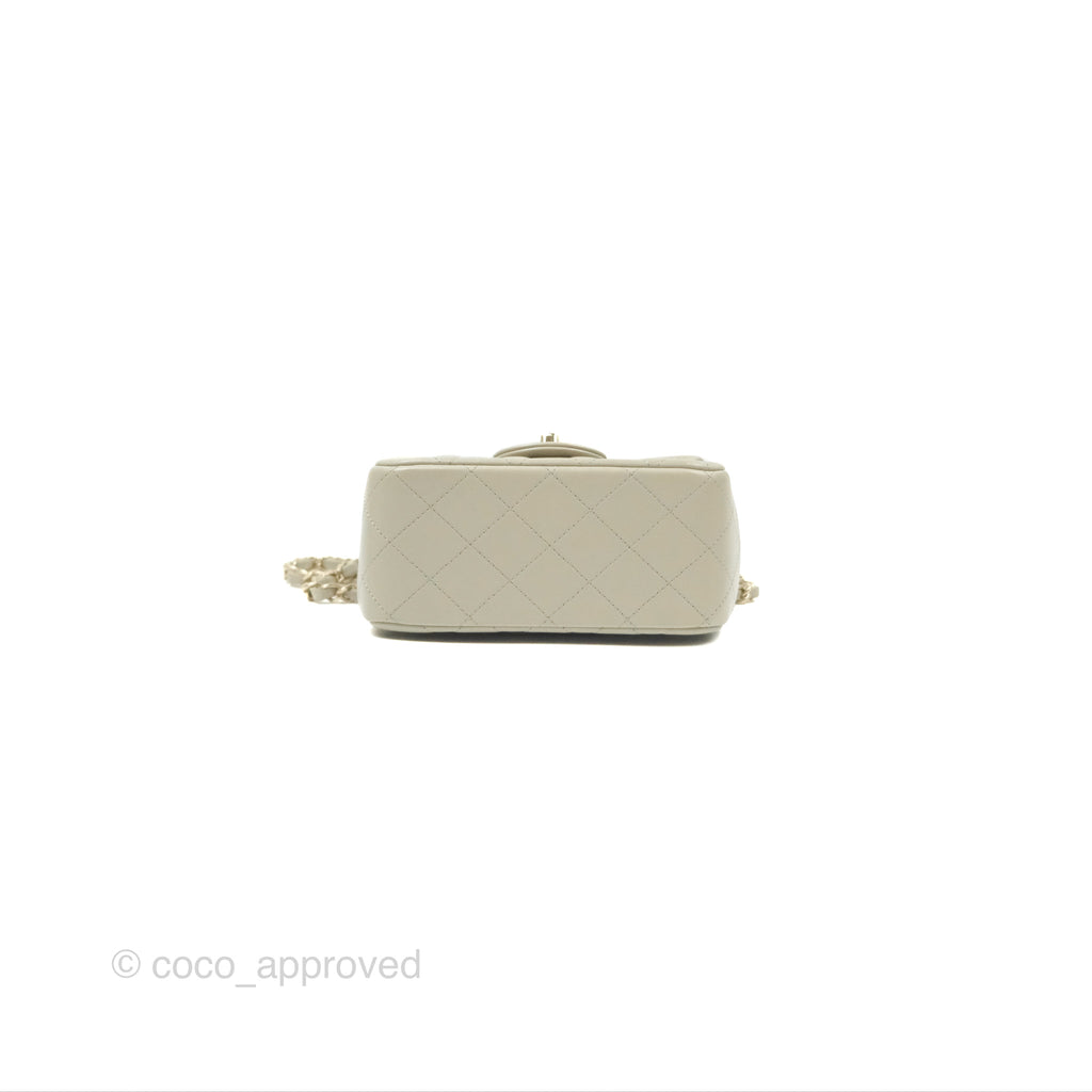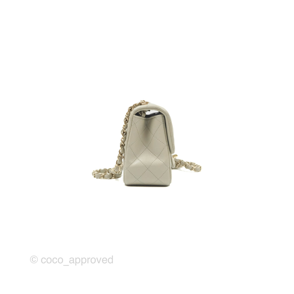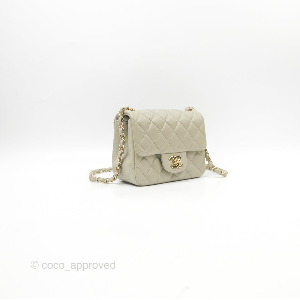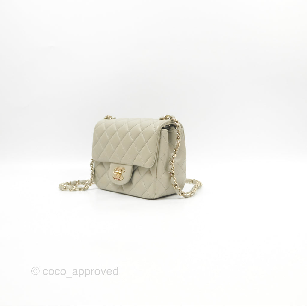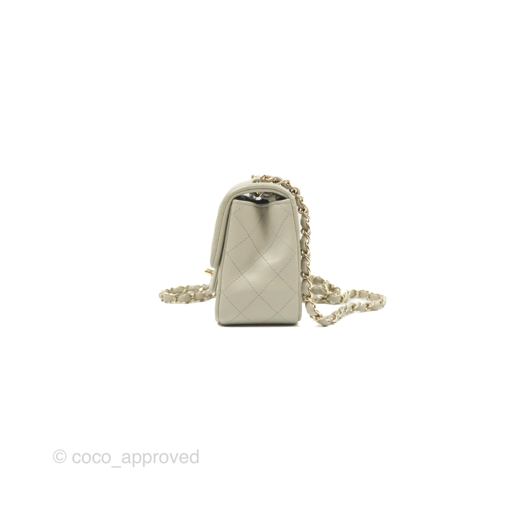 Chanel Mini Square Quilted Grey Lambskin Gold Hardware 22C
