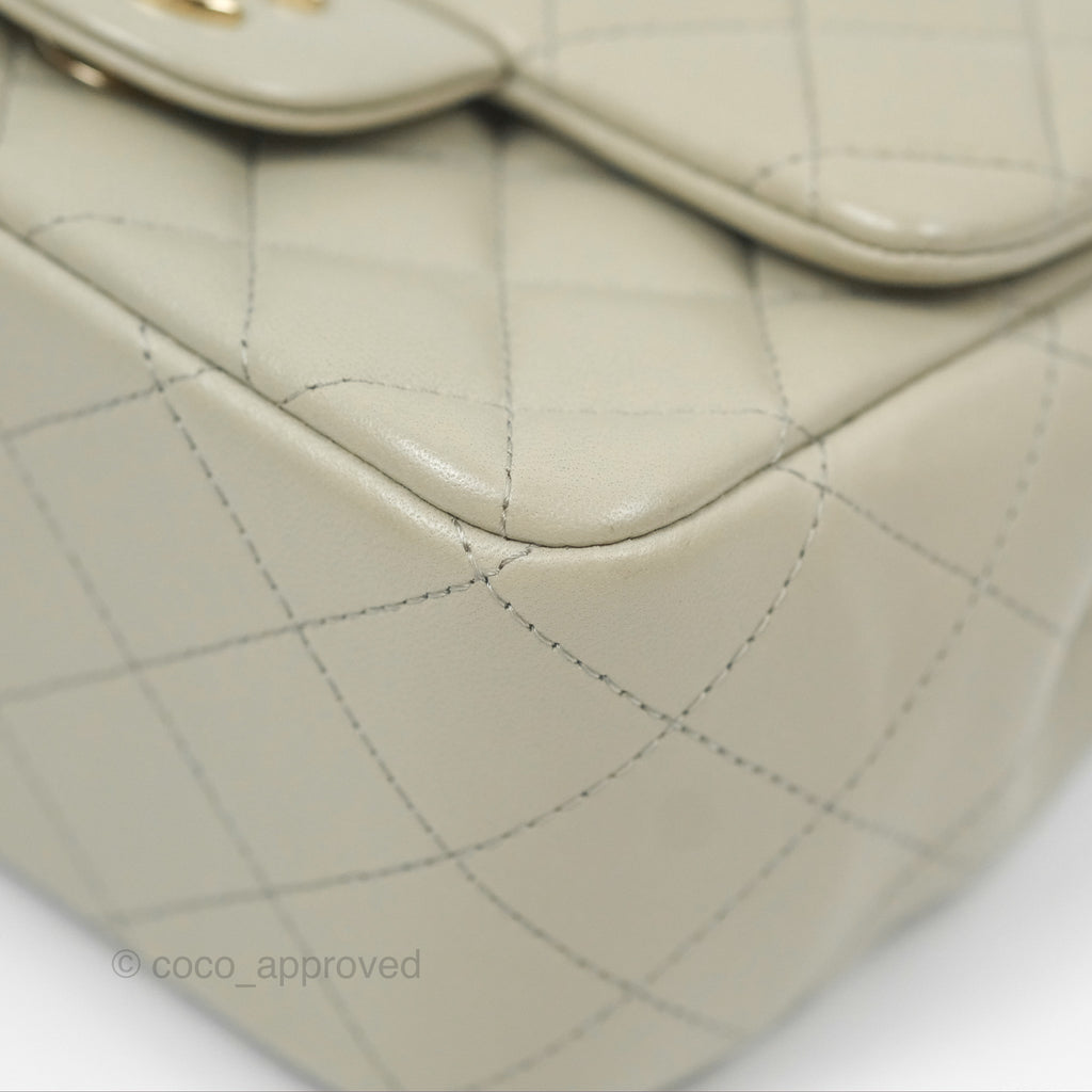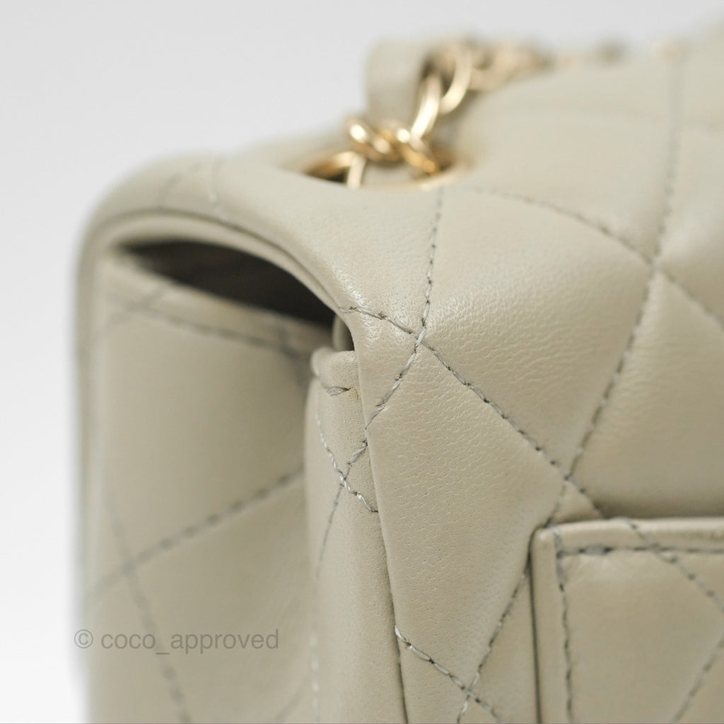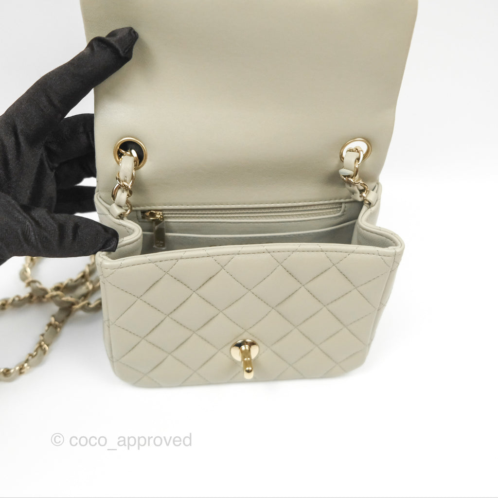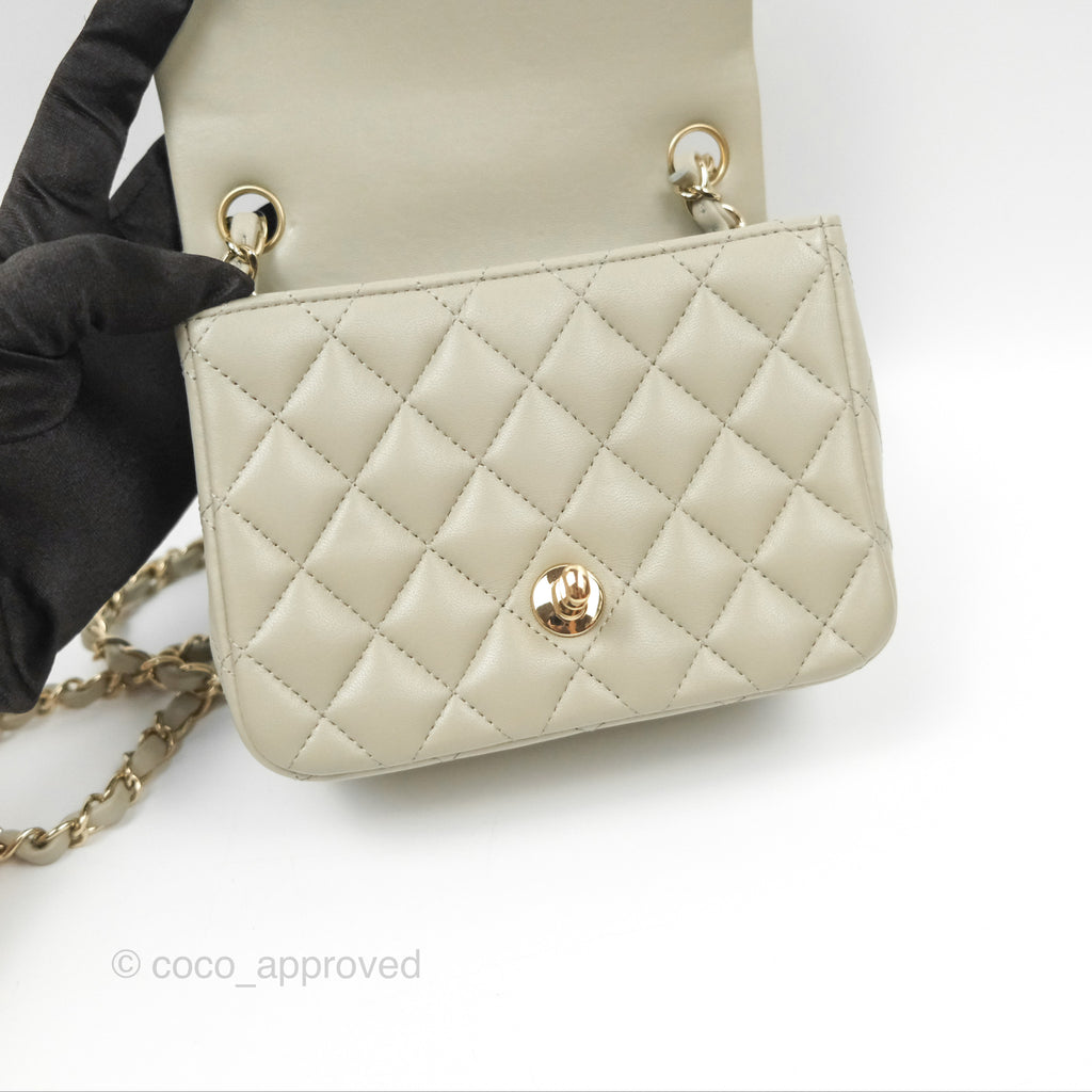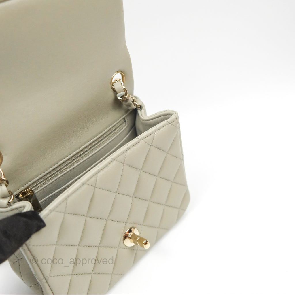 Chanel Mini Square Quilted Grey Lambskin Gold Hardware 22C