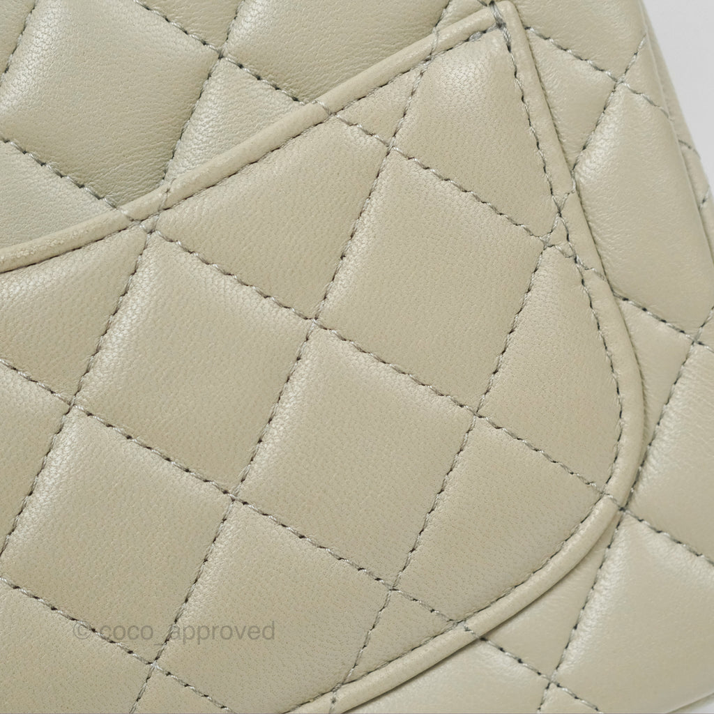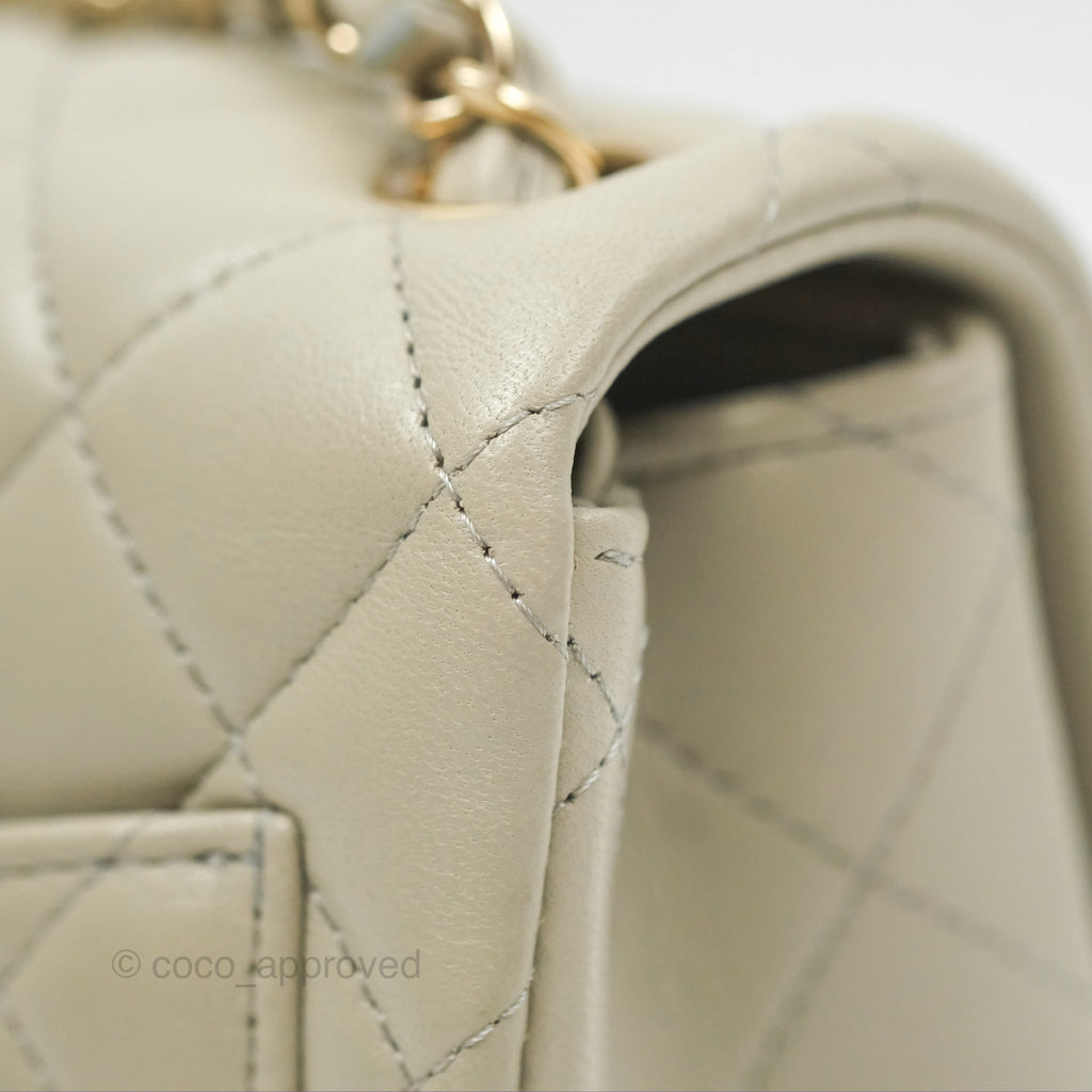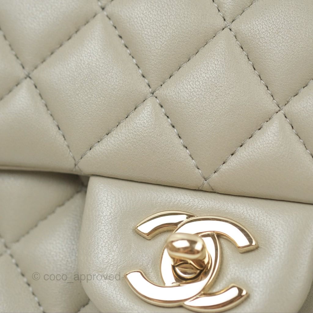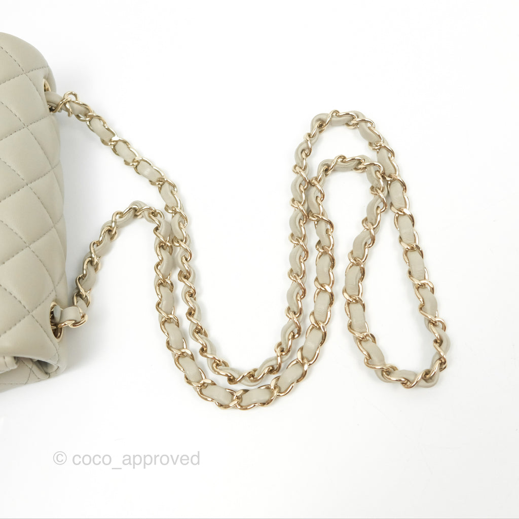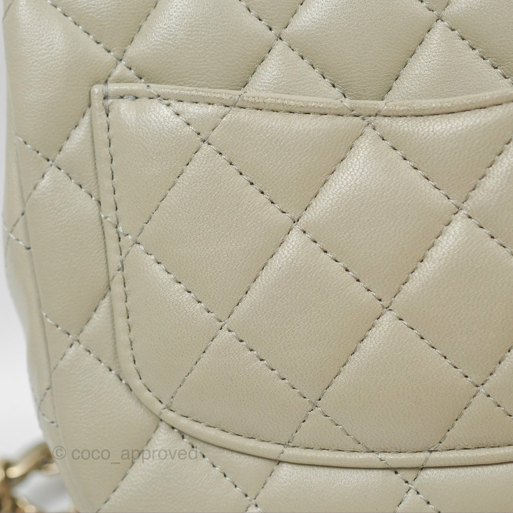 Chanel Mini Square Quilted Grey Lambskin Gold Hardware 22C