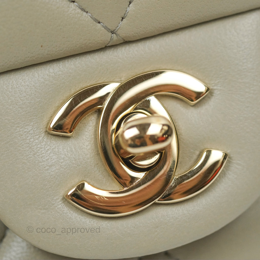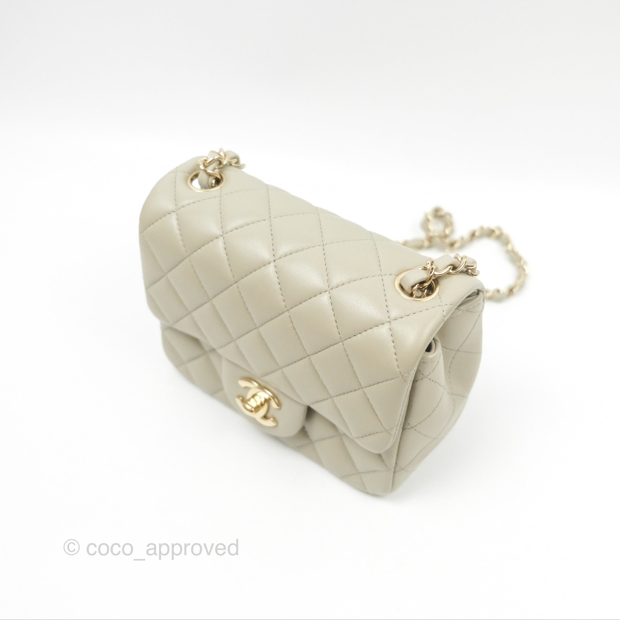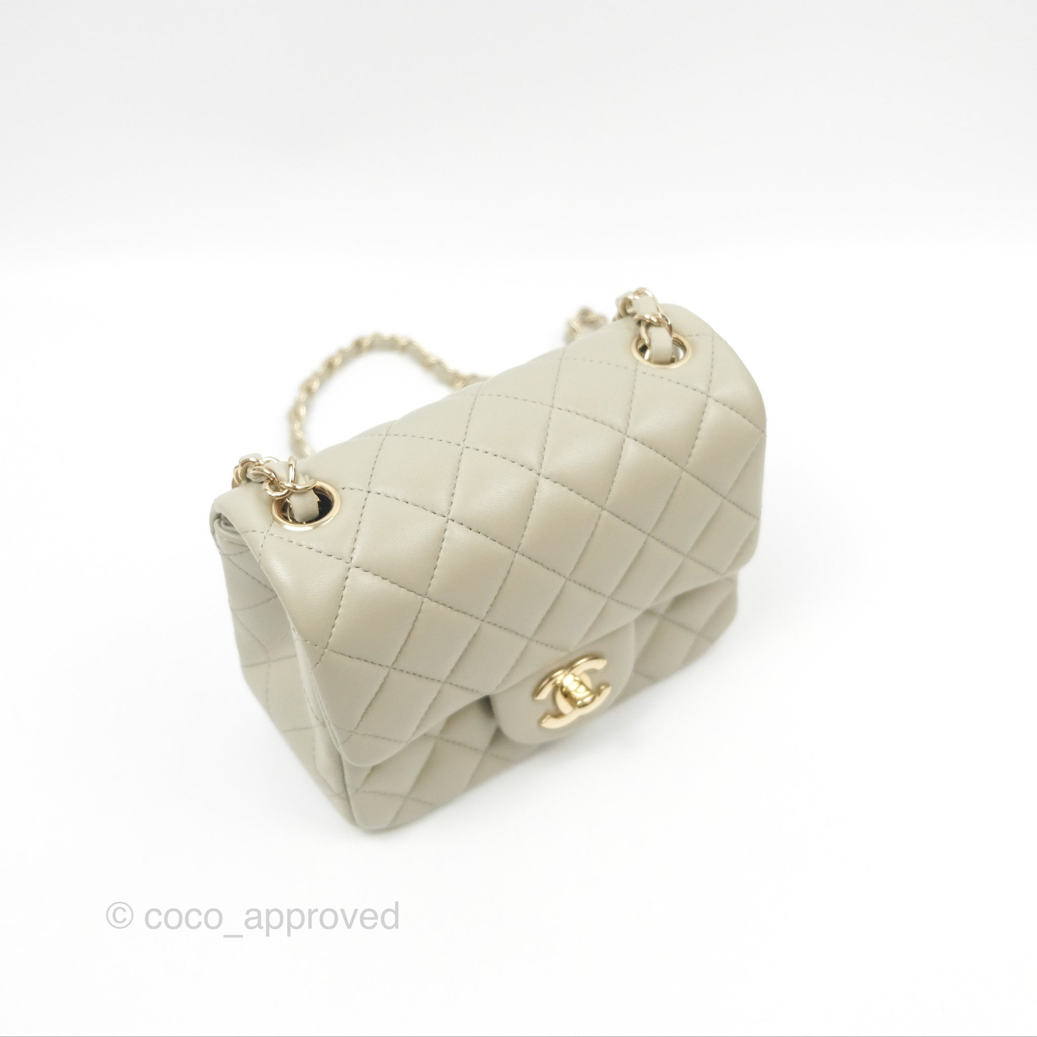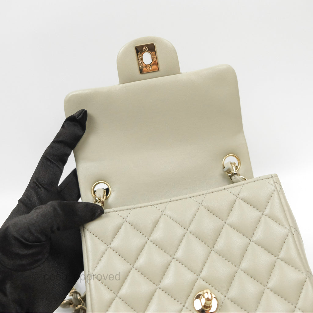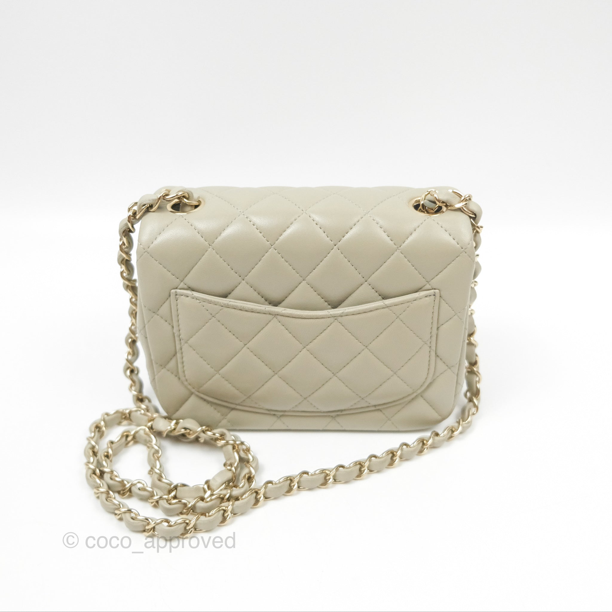 Chanel Mini Square Quilted Grey Lambskin Gold Hardware 22C