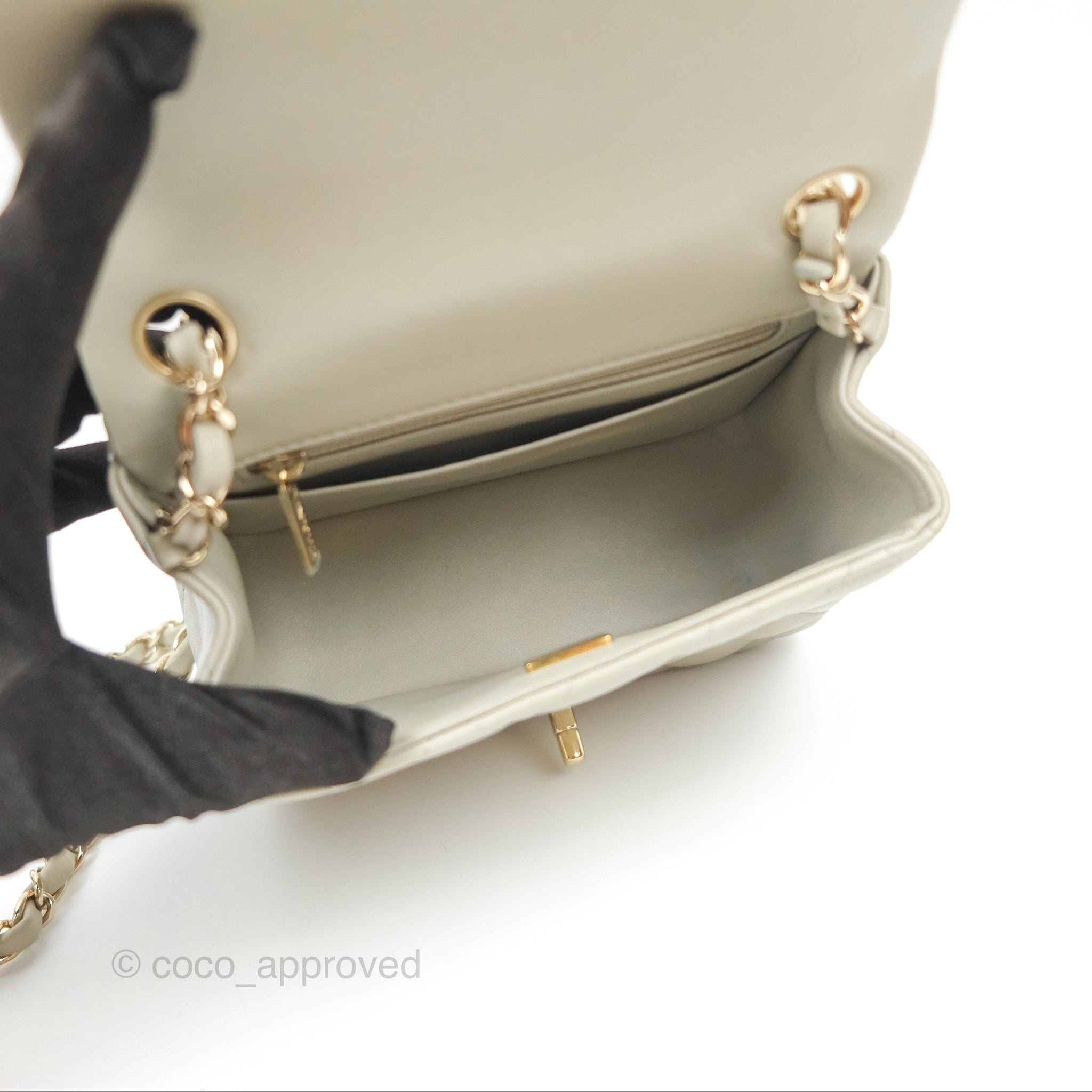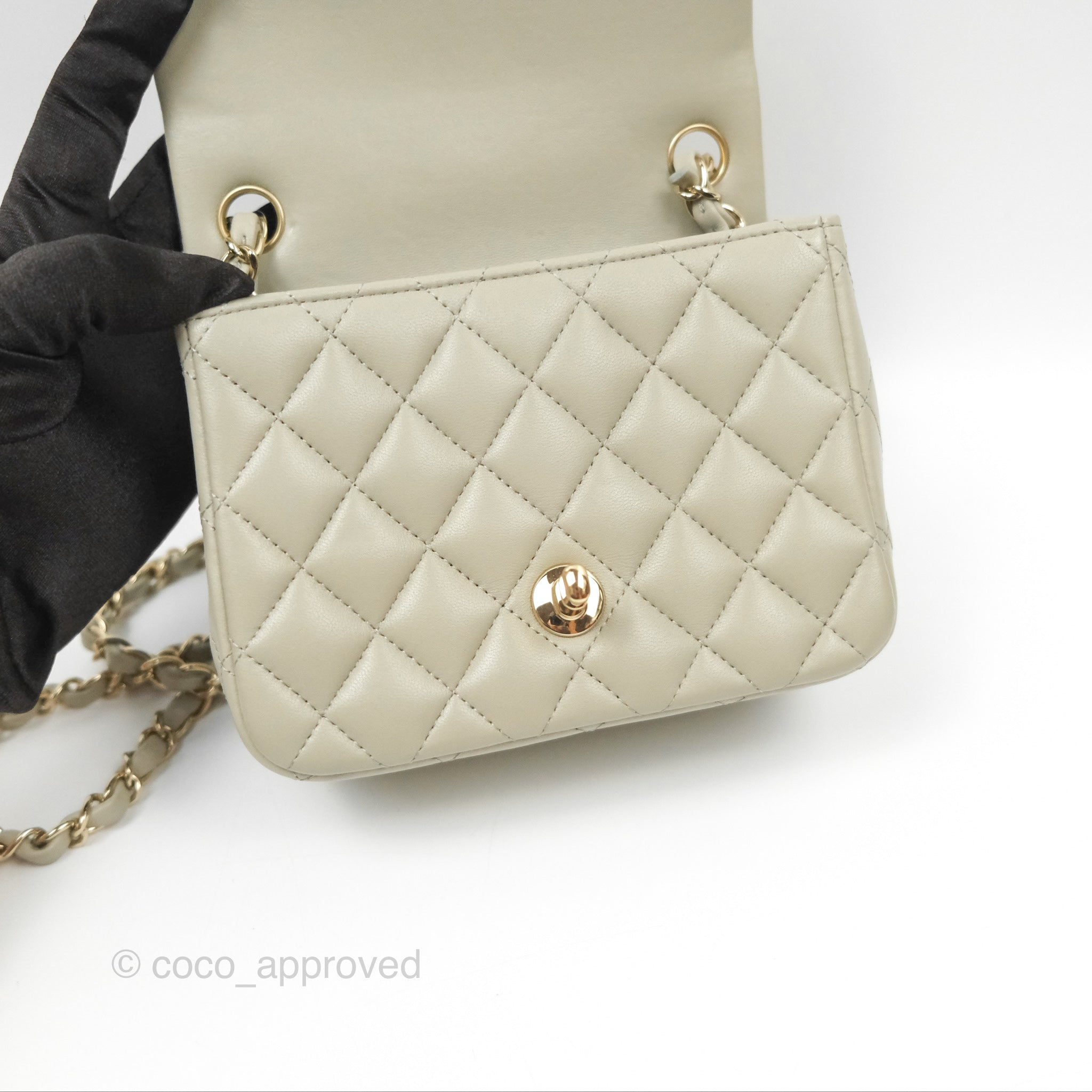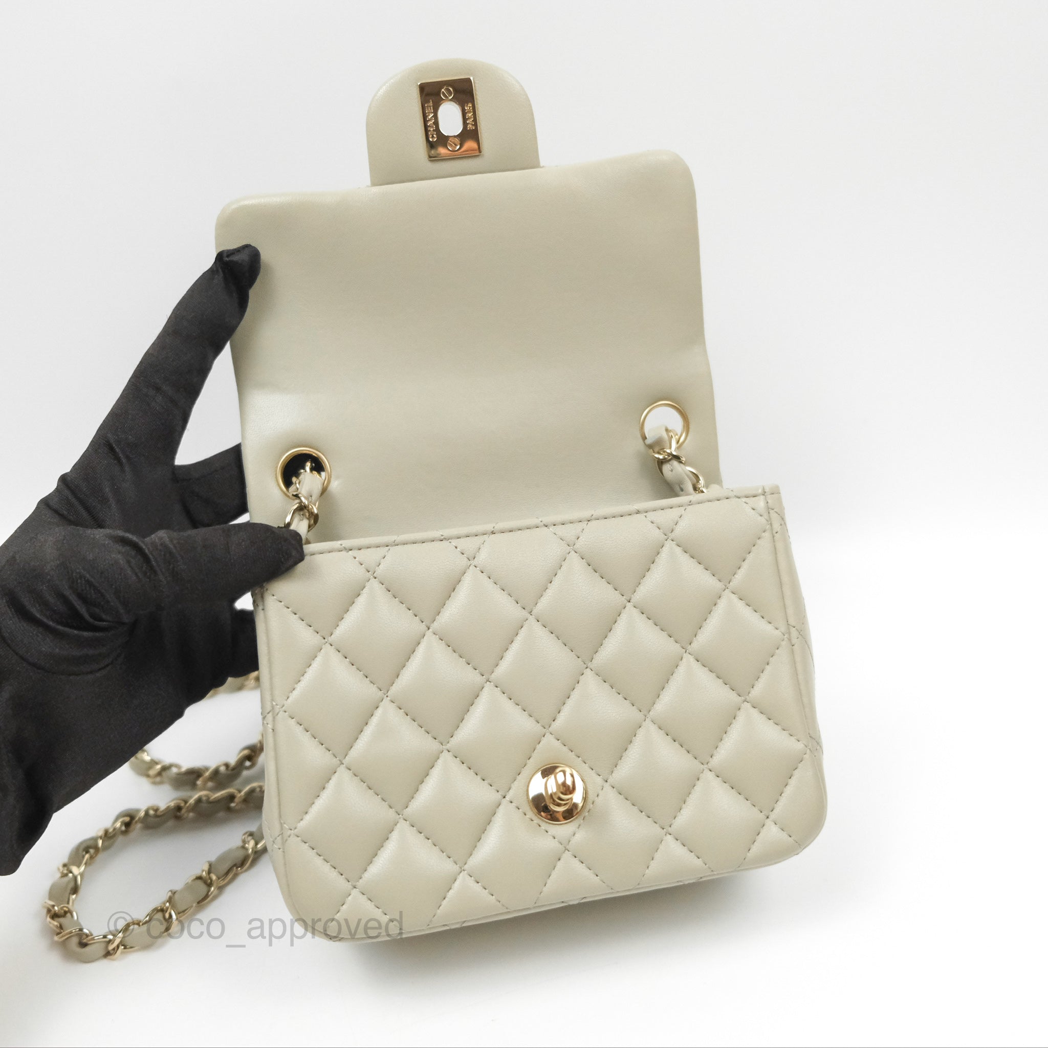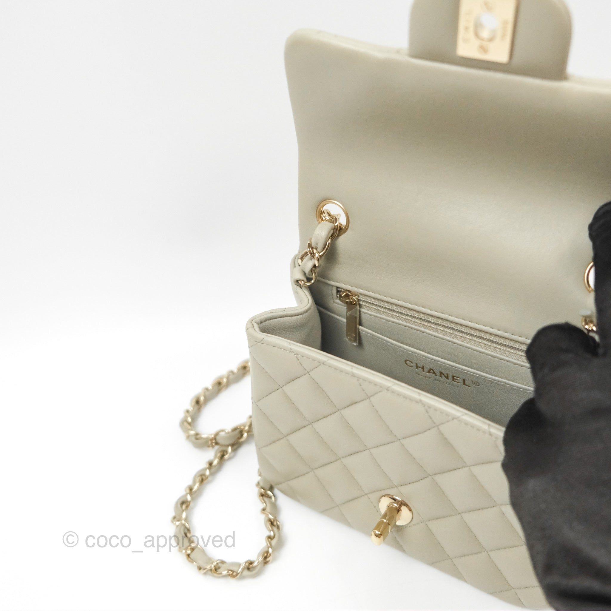 Chanel Mini Square Quilted Grey Lambskin Gold Hardware 22C