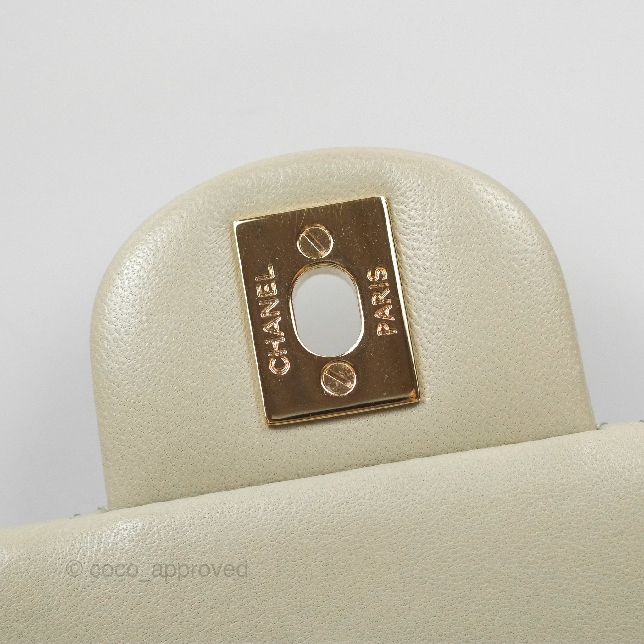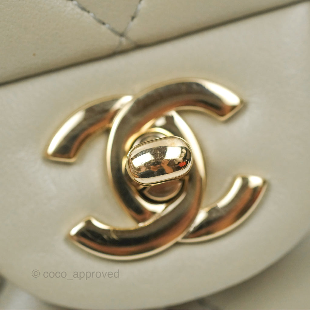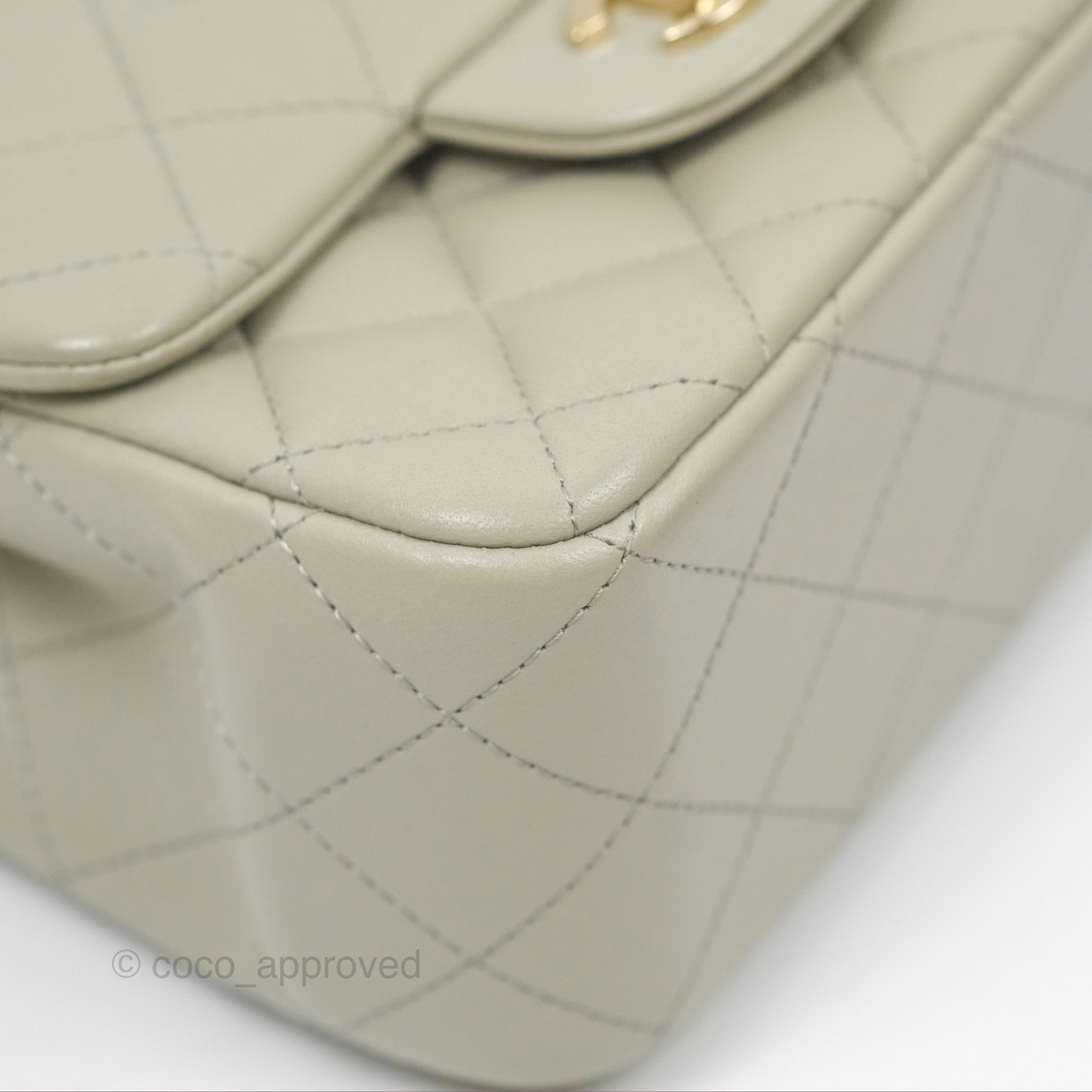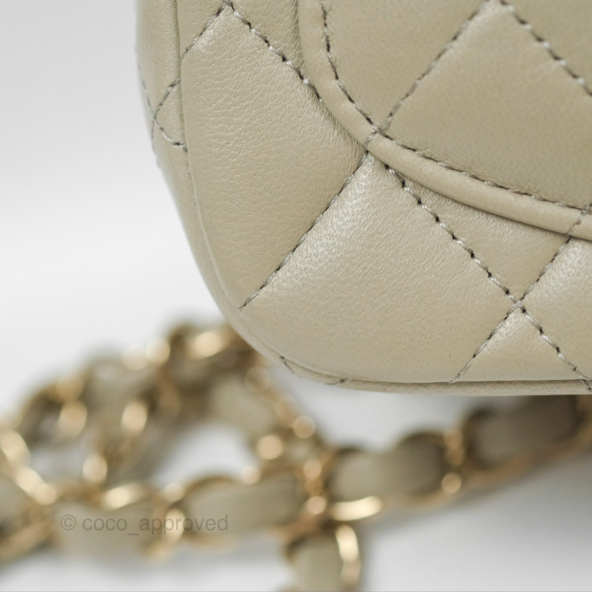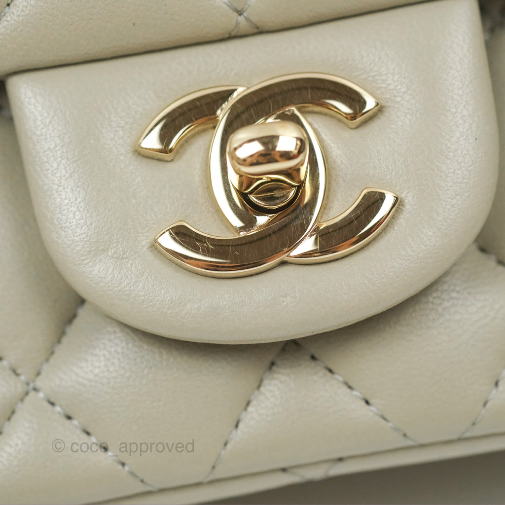 Chanel Mini Square Quilted Grey Lambskin Gold Hardware 22C