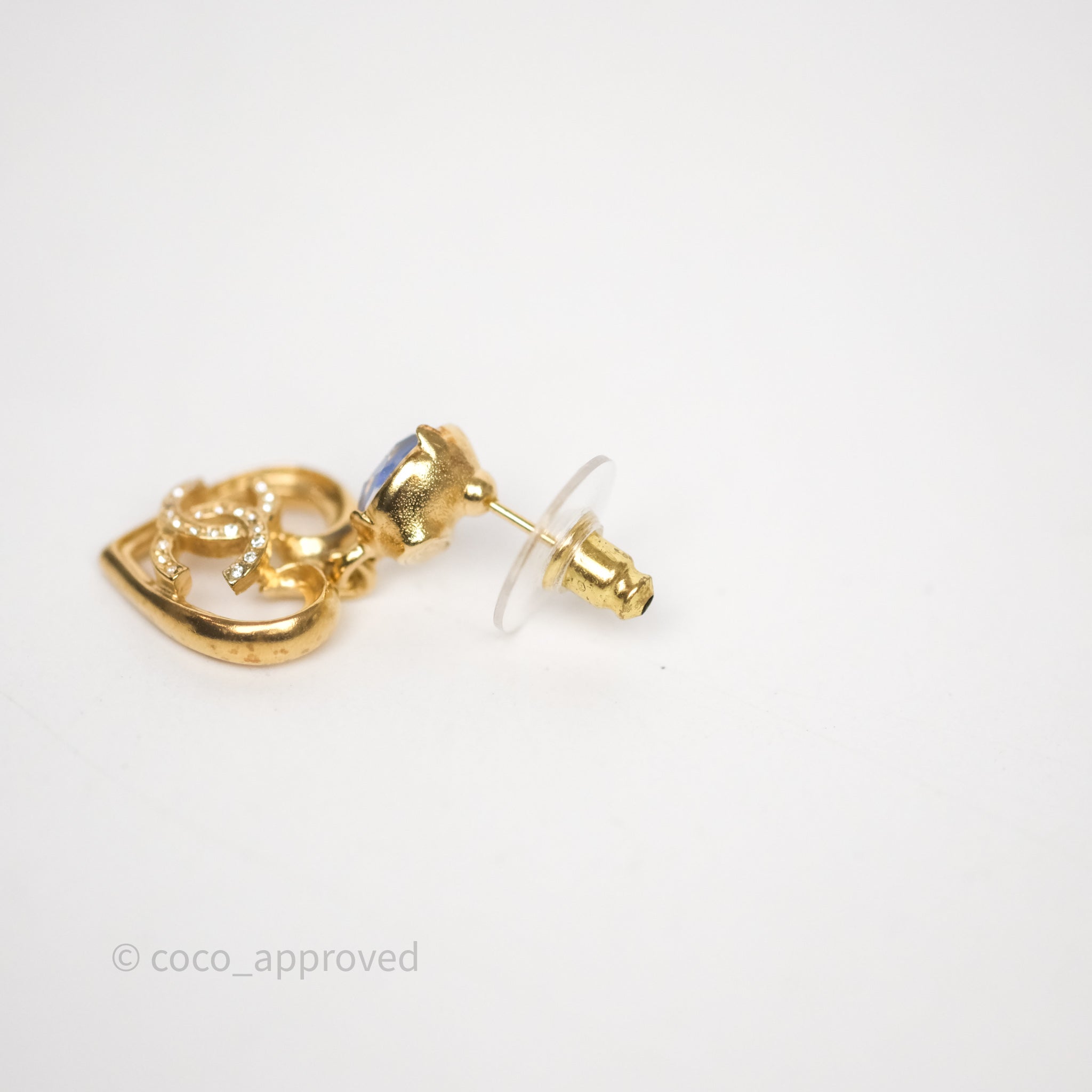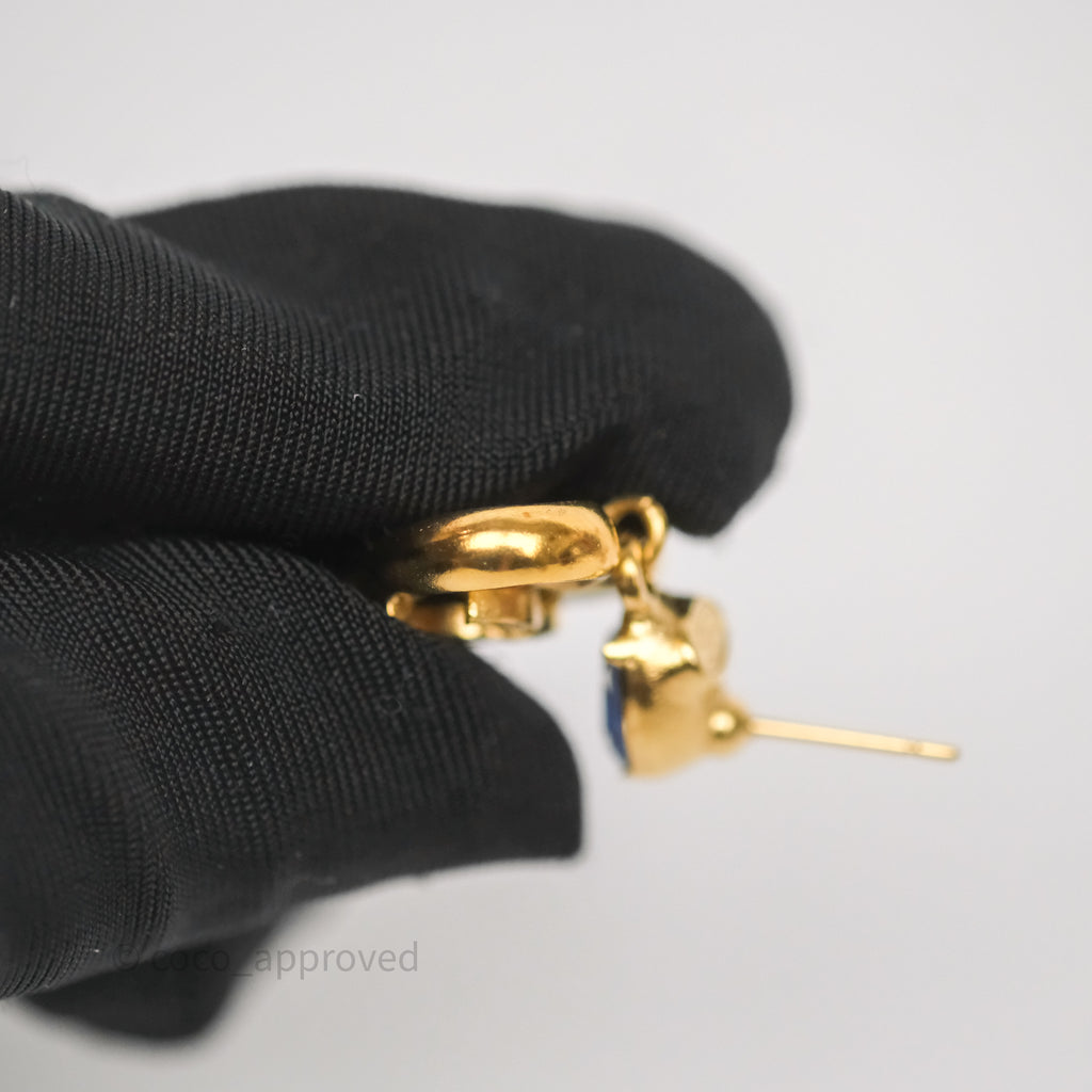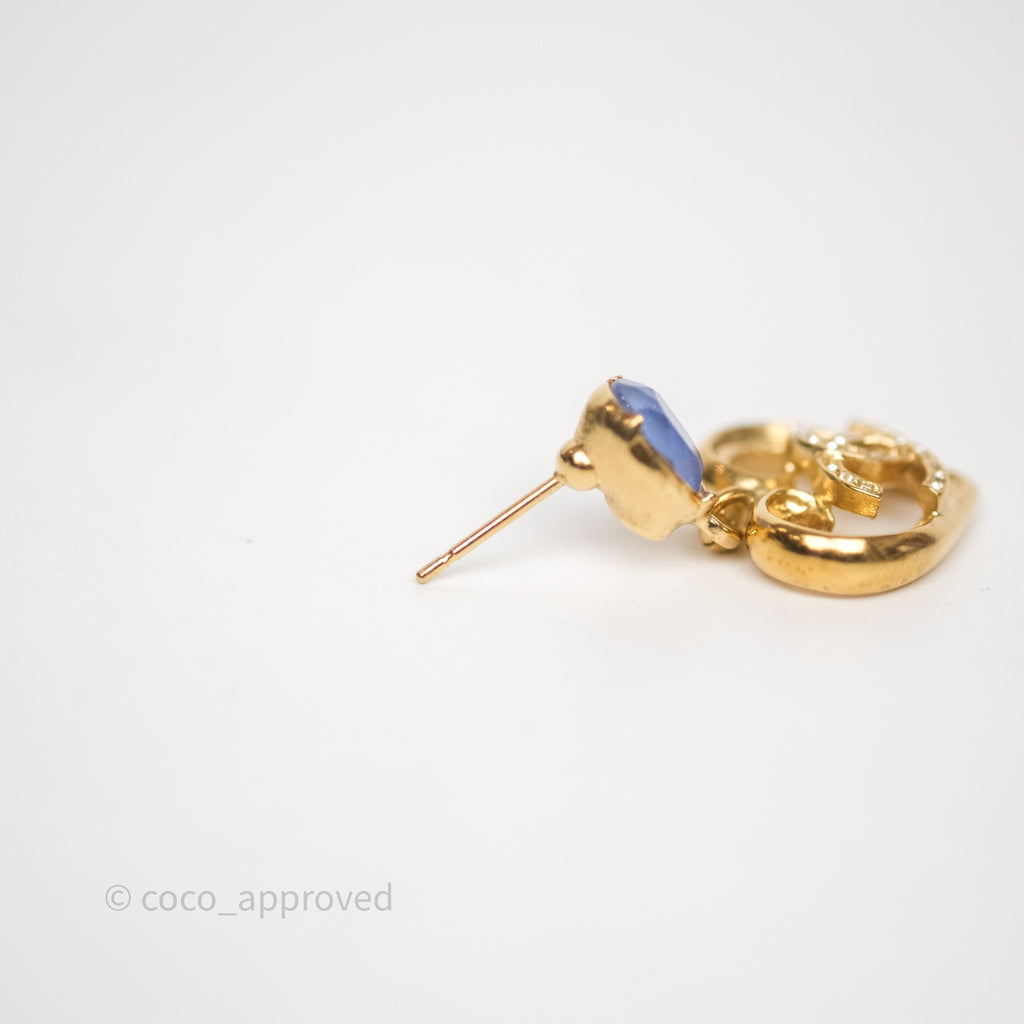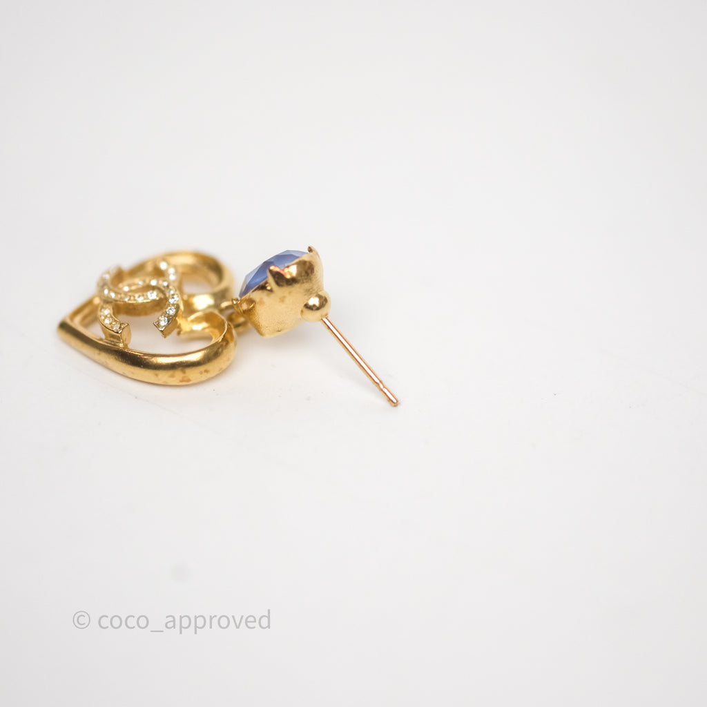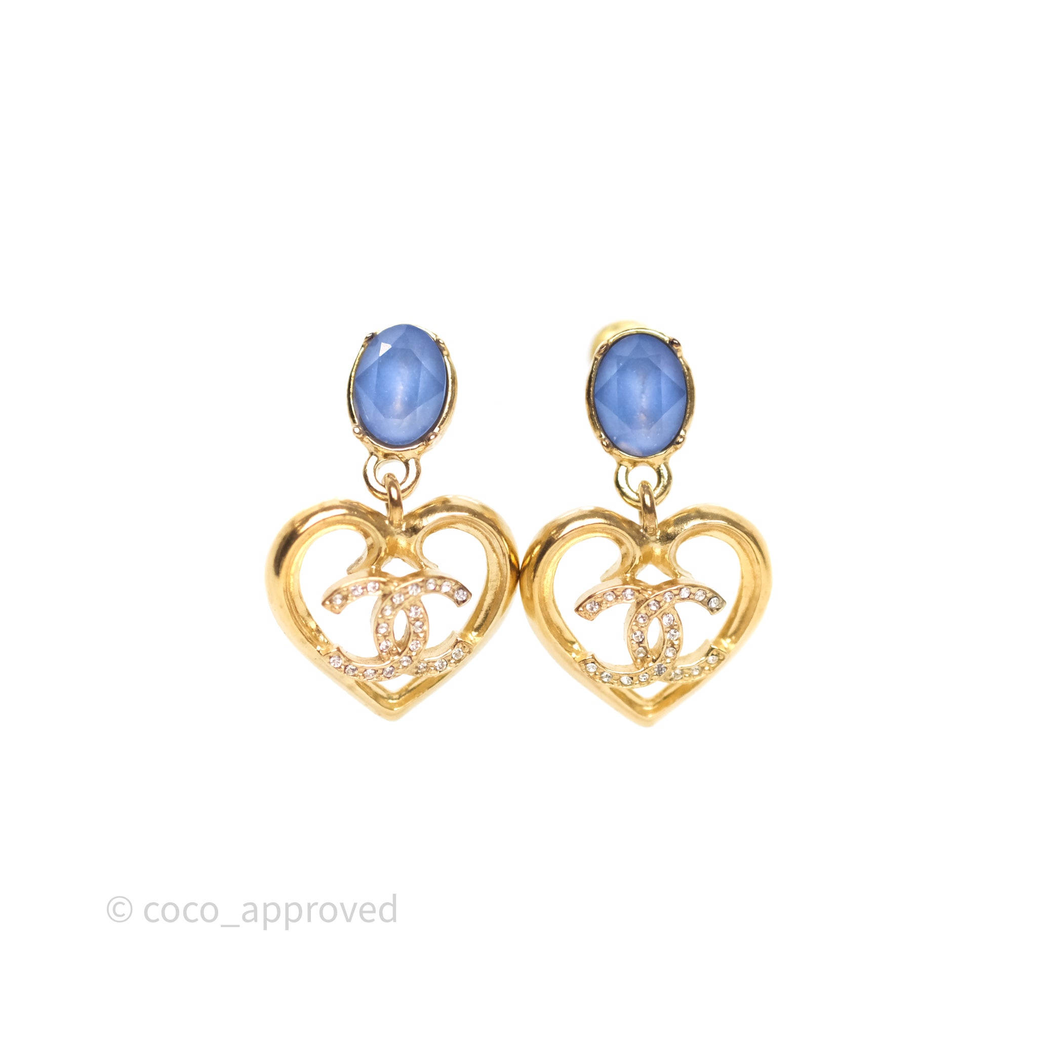 Chanel Oval Blue Resin Heart CC Drop Earrings Gold Tone 23C