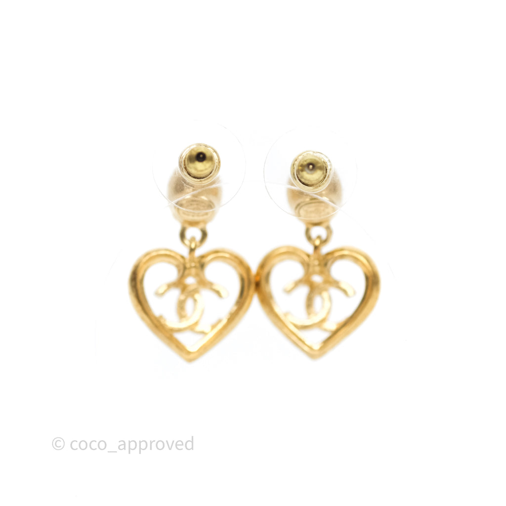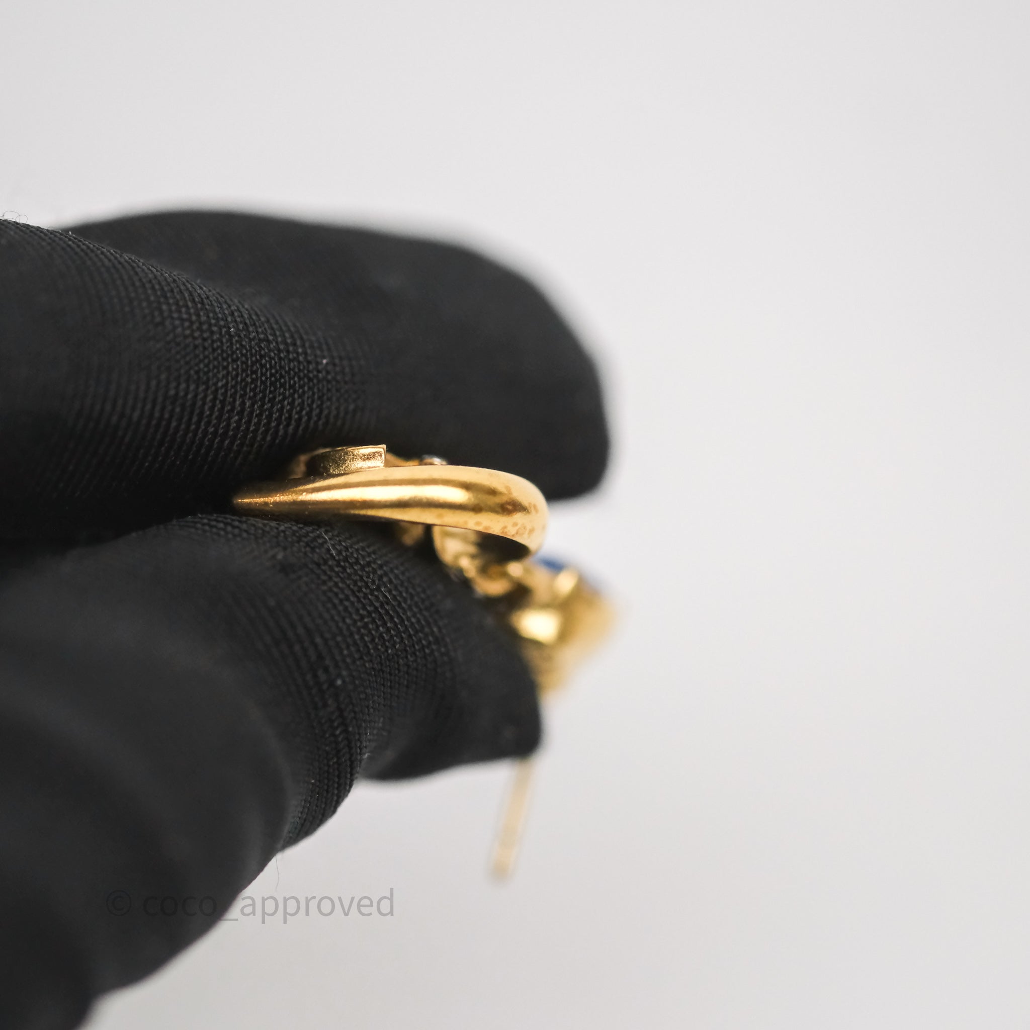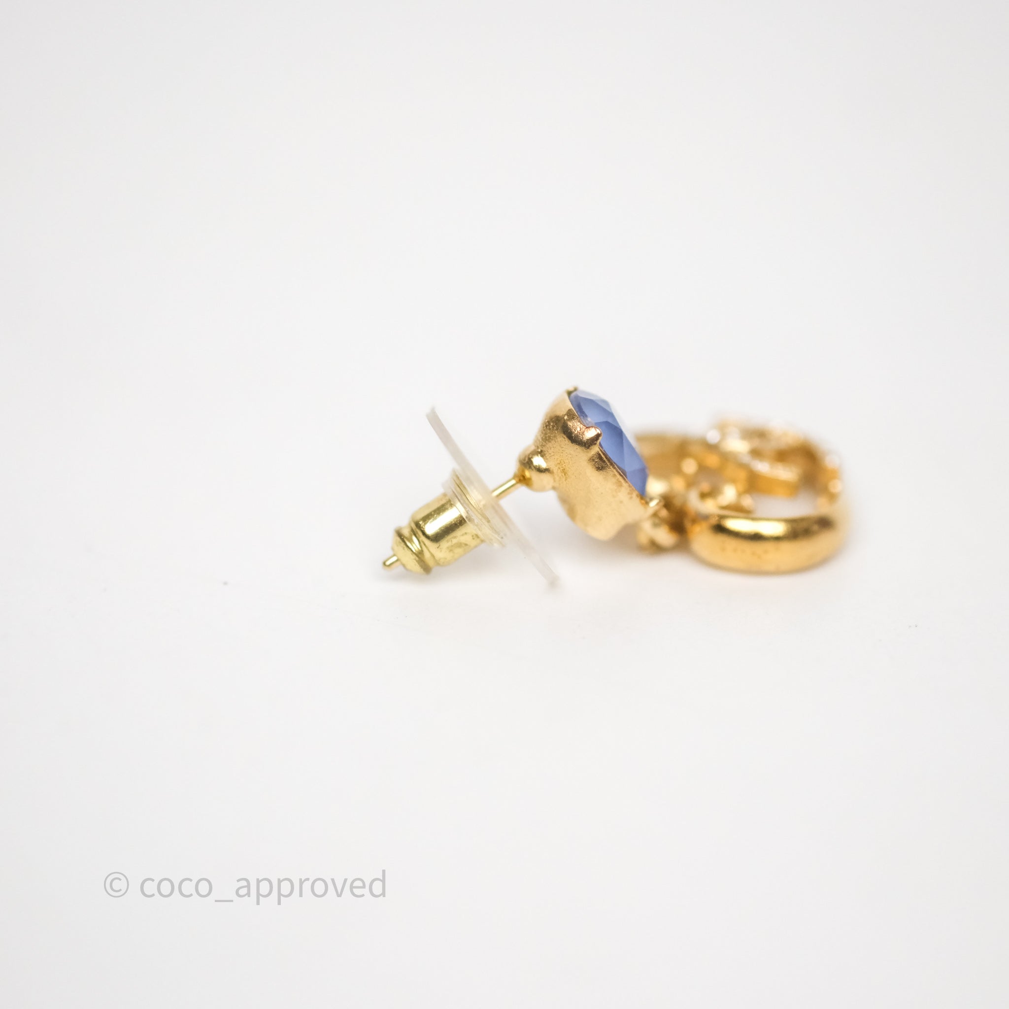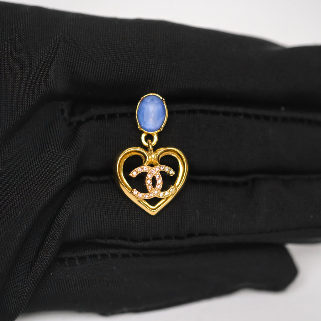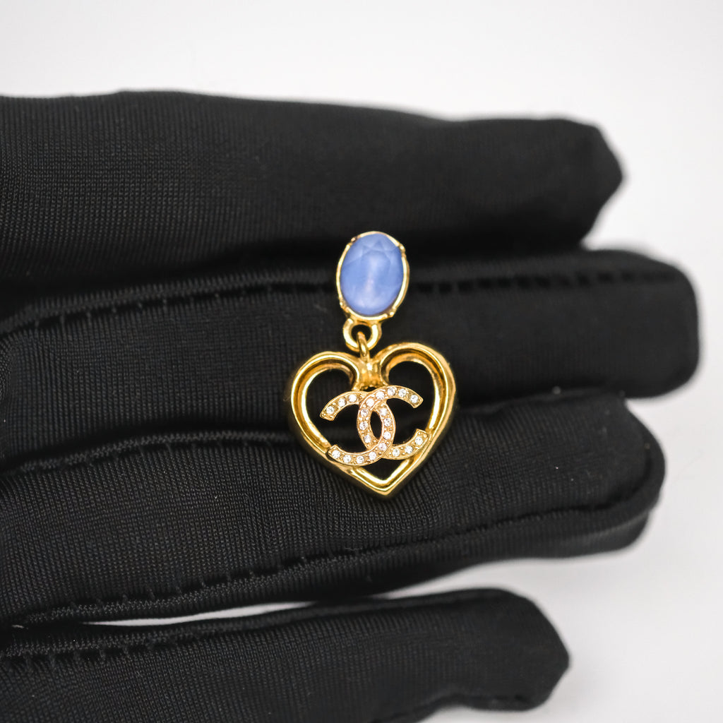Chanel Oval Blue Resin Heart CC Drop Earrings Gold Tone 23C