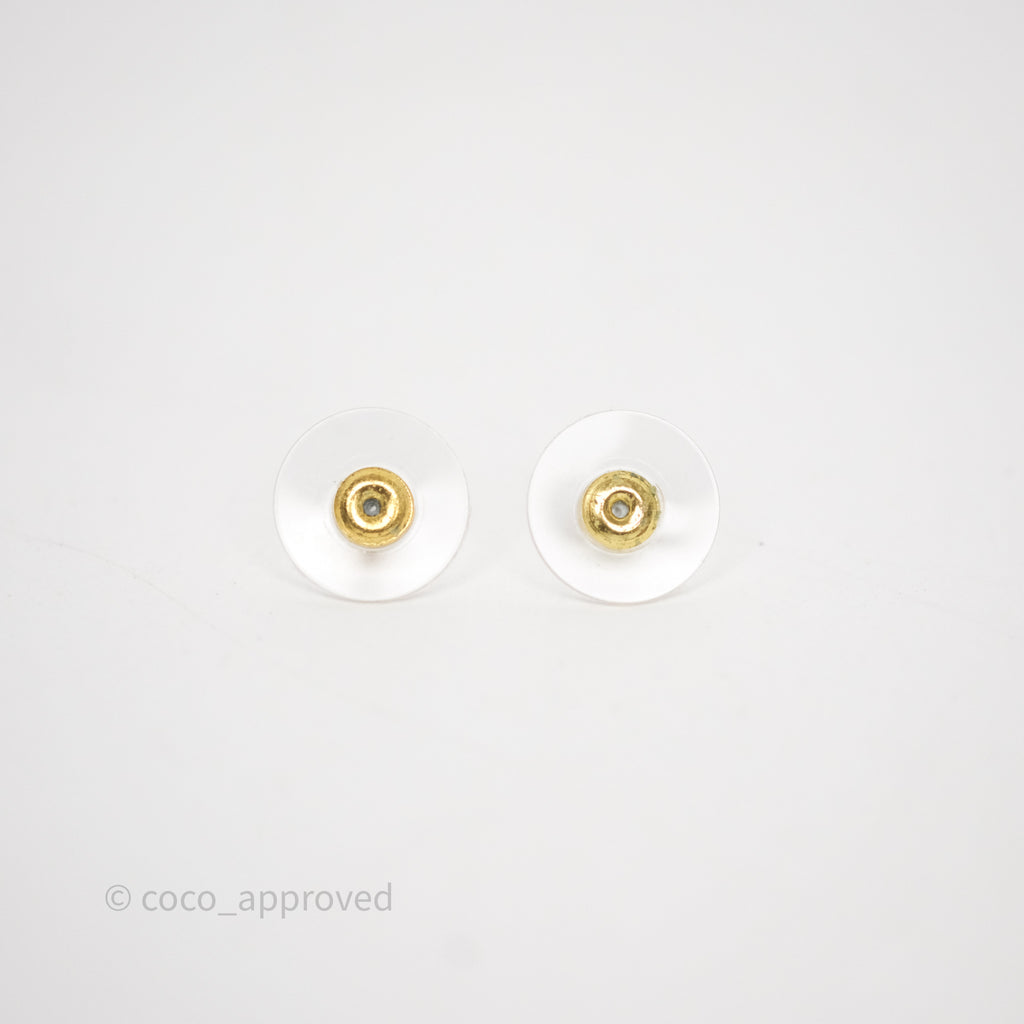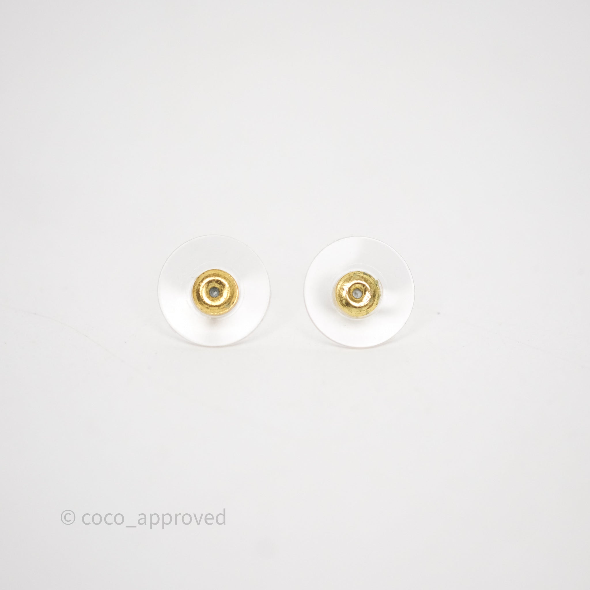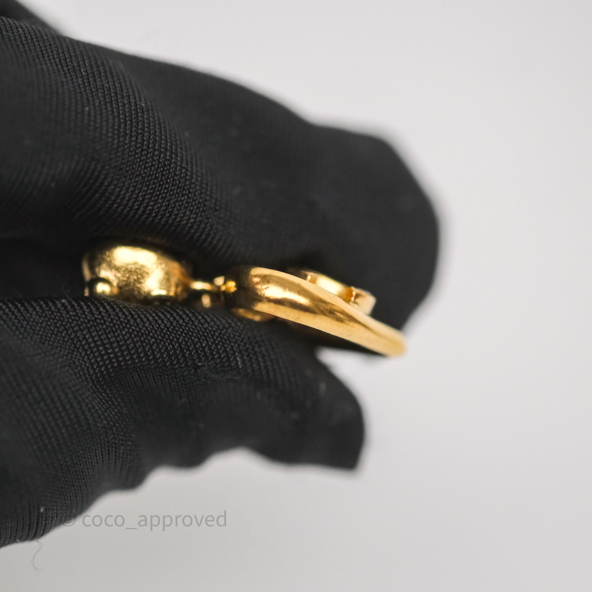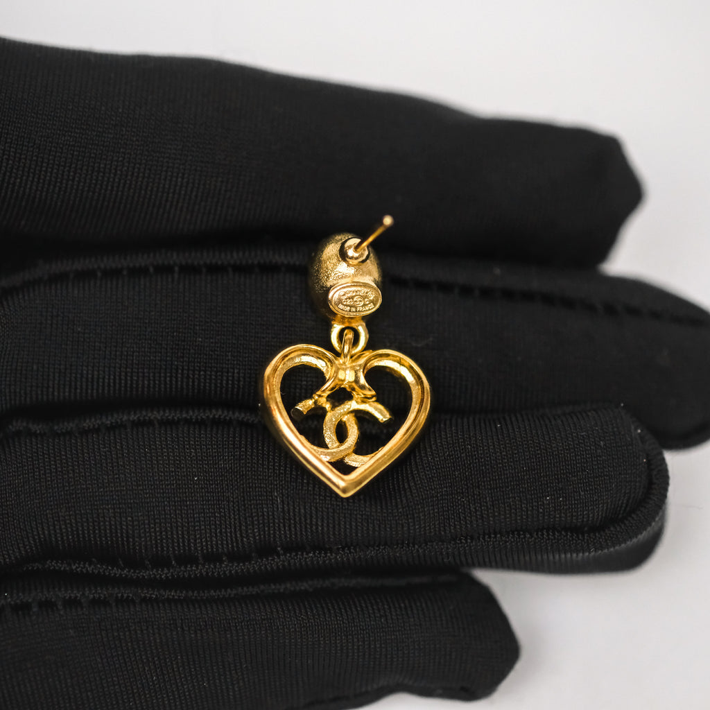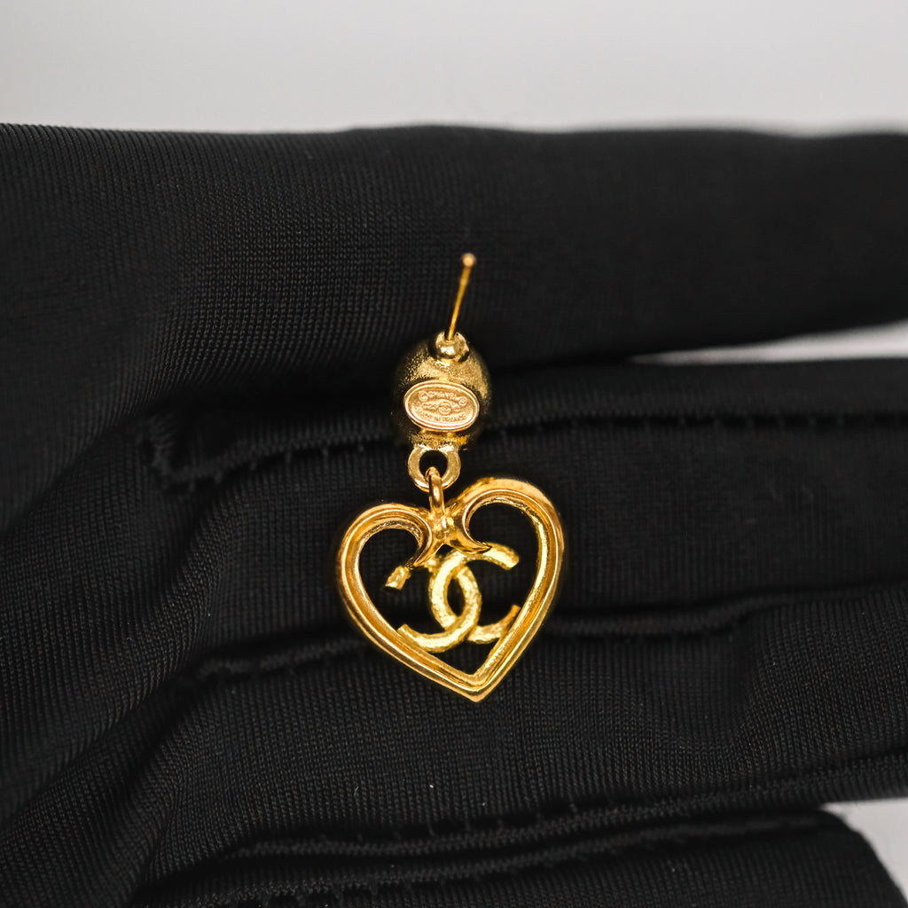 Chanel Oval Blue Resin Heart CC Drop Earrings Gold Tone 23C