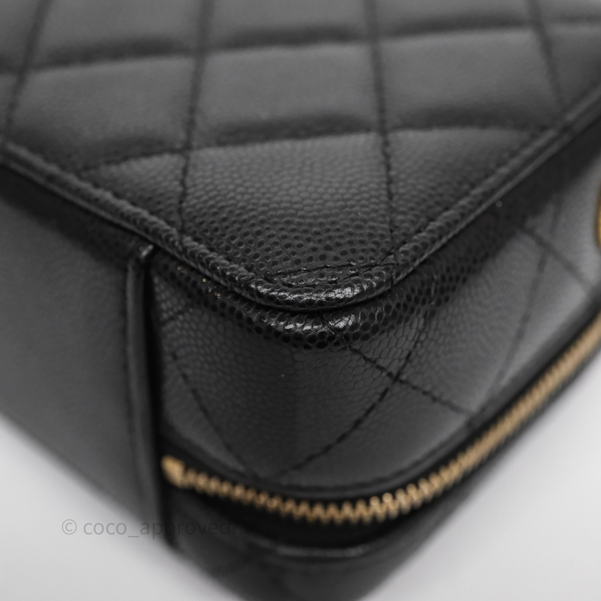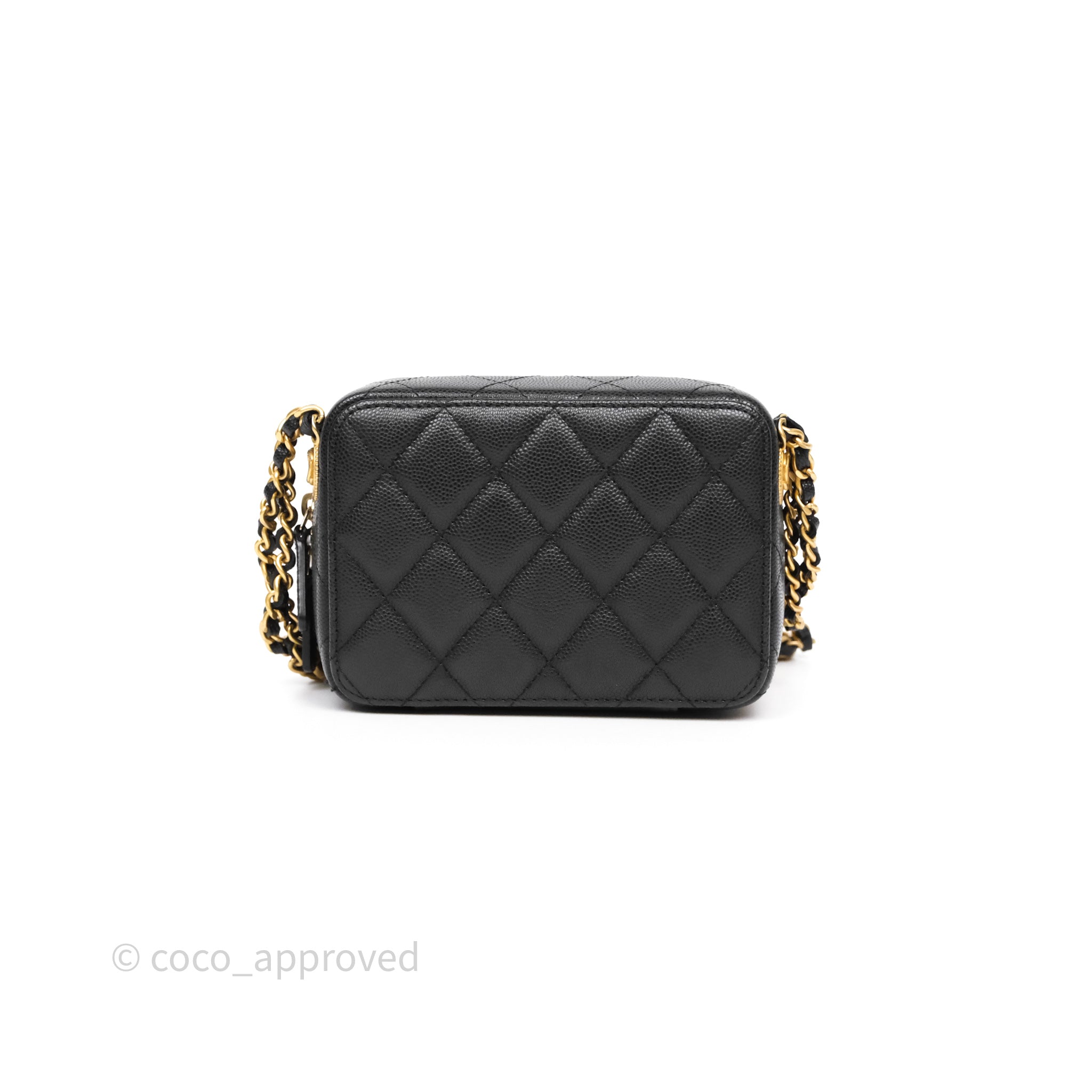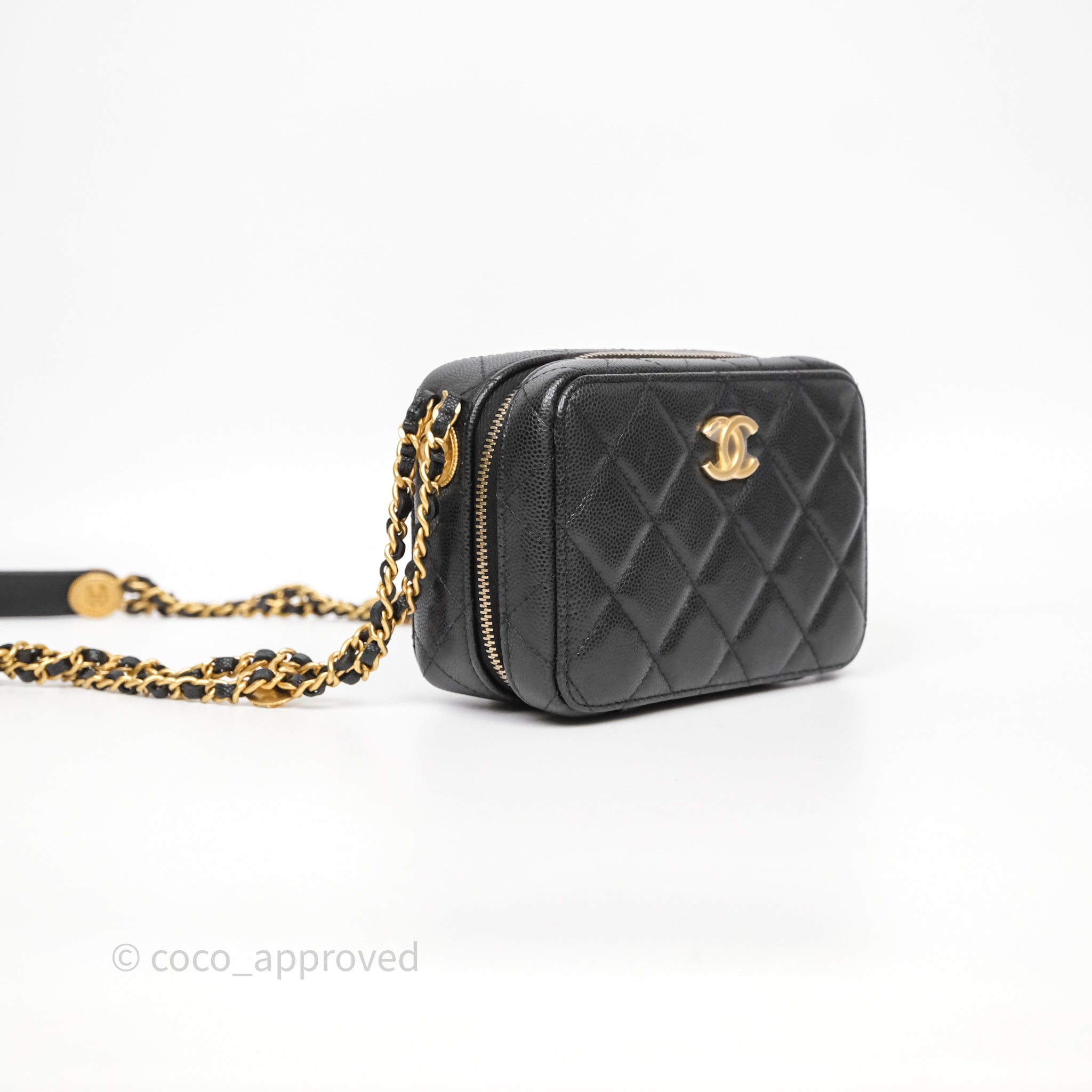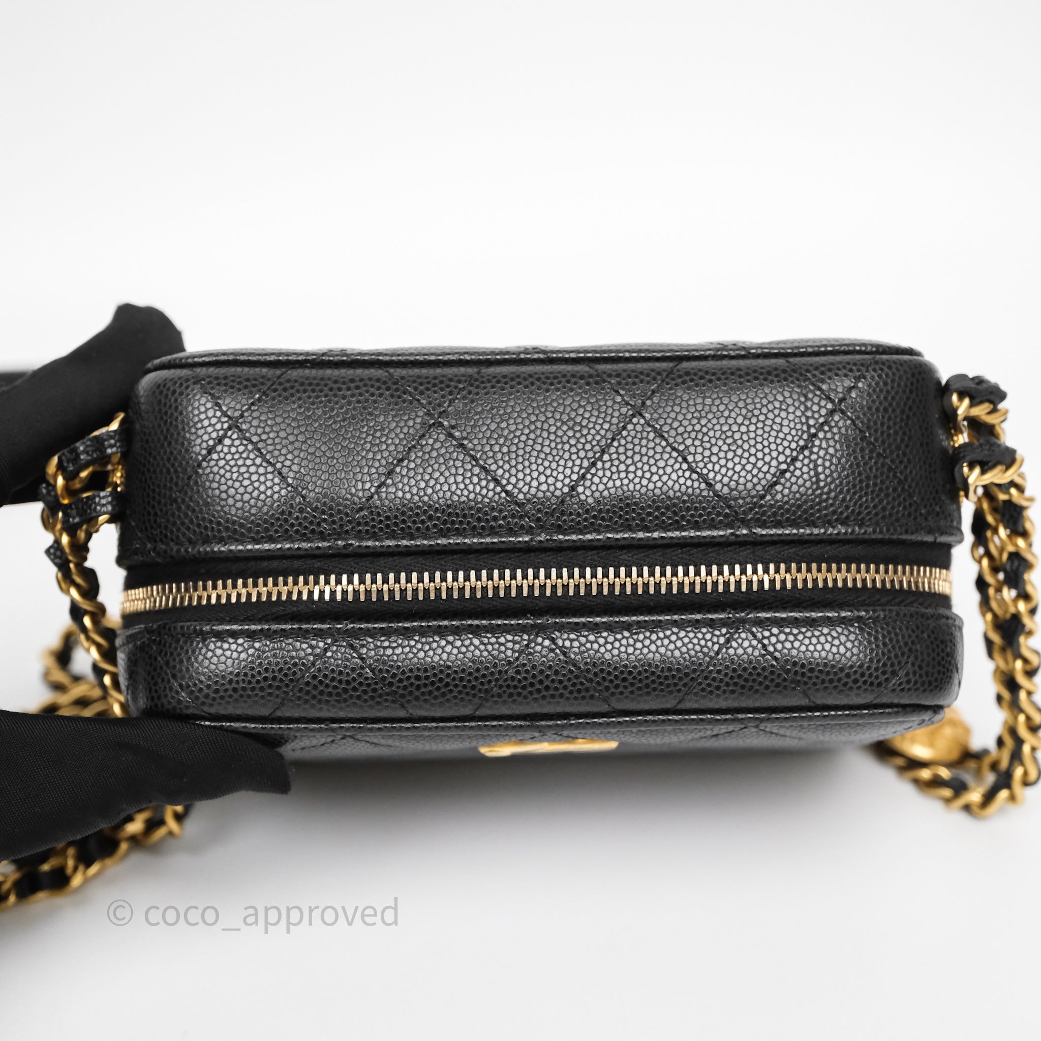 Chanel Quilted CC Coins Purse Chain Camera Case Black Caviar Aged Gold Hardware