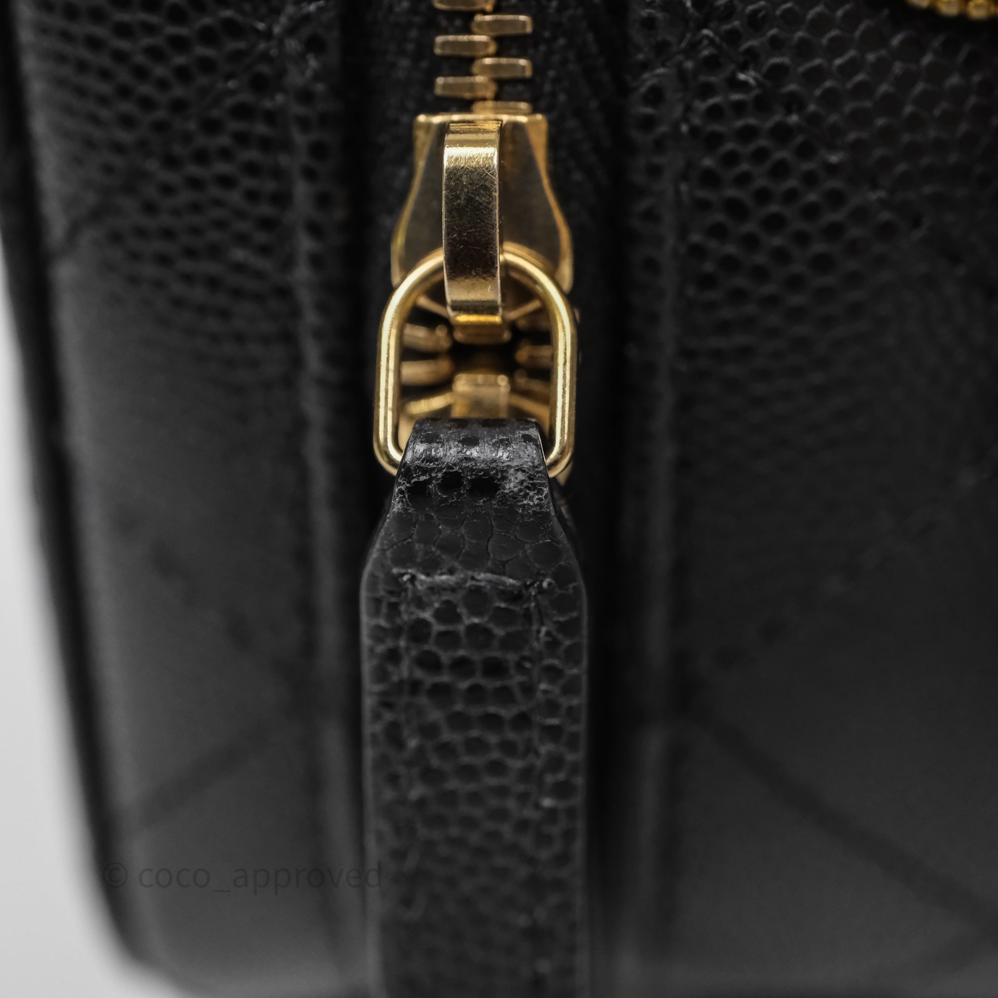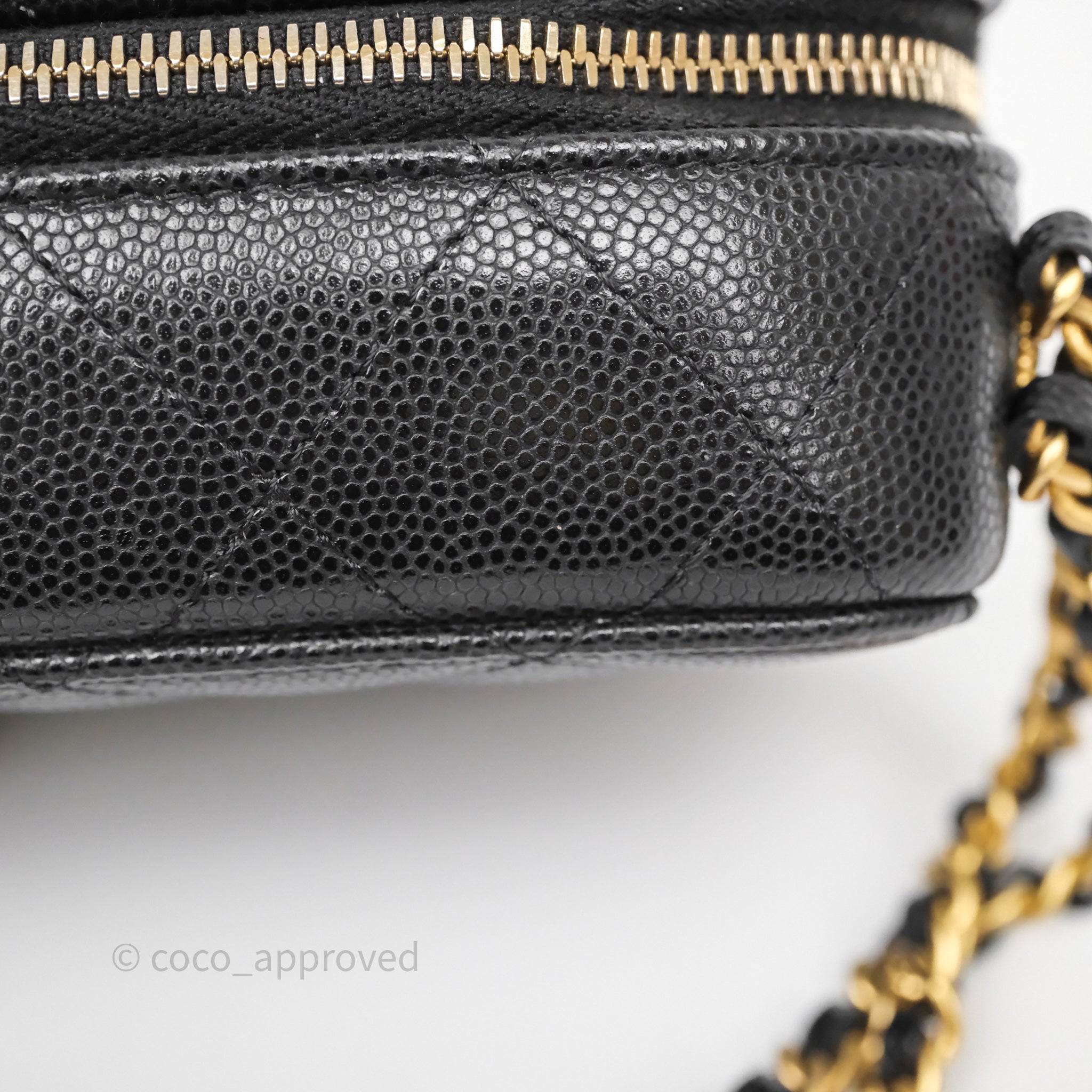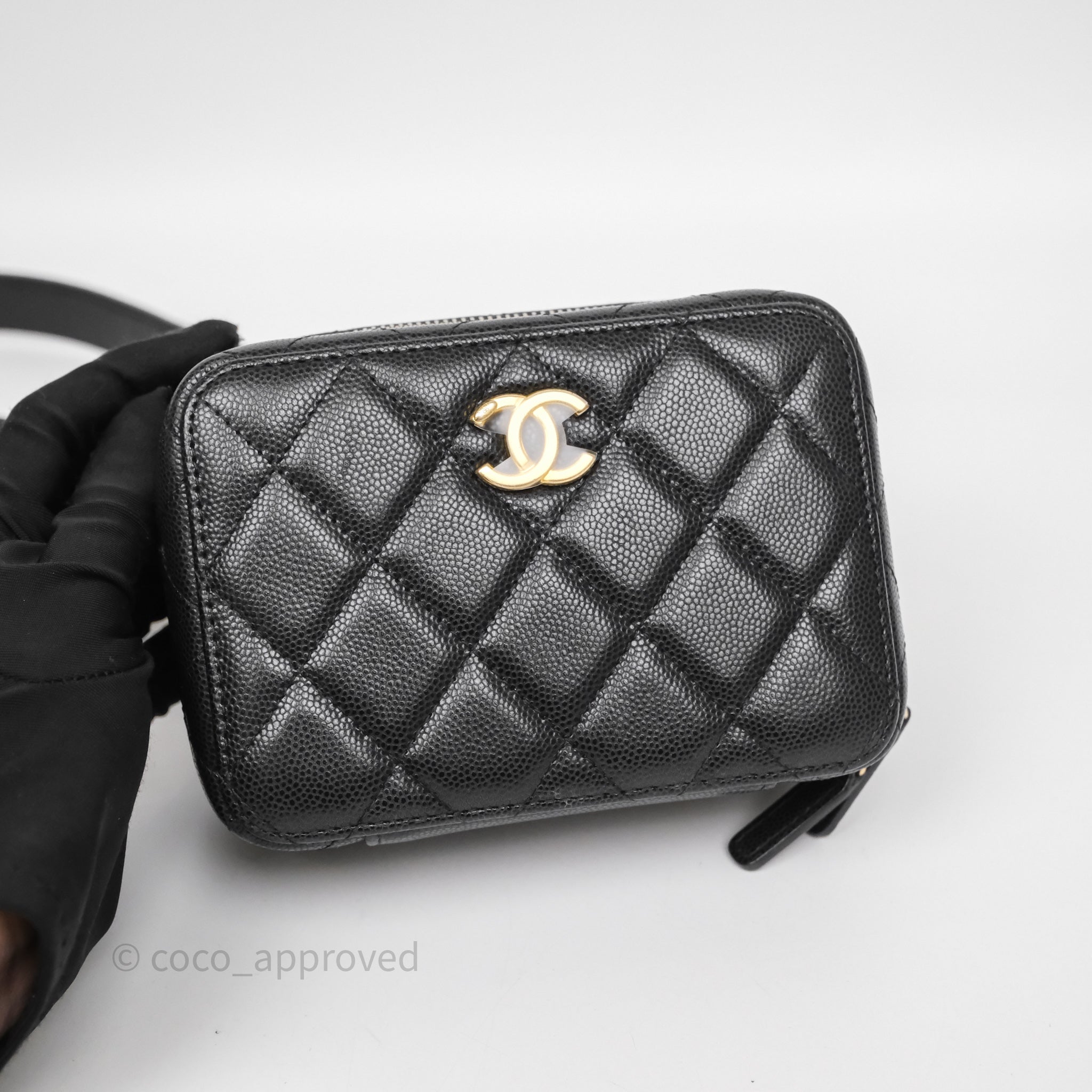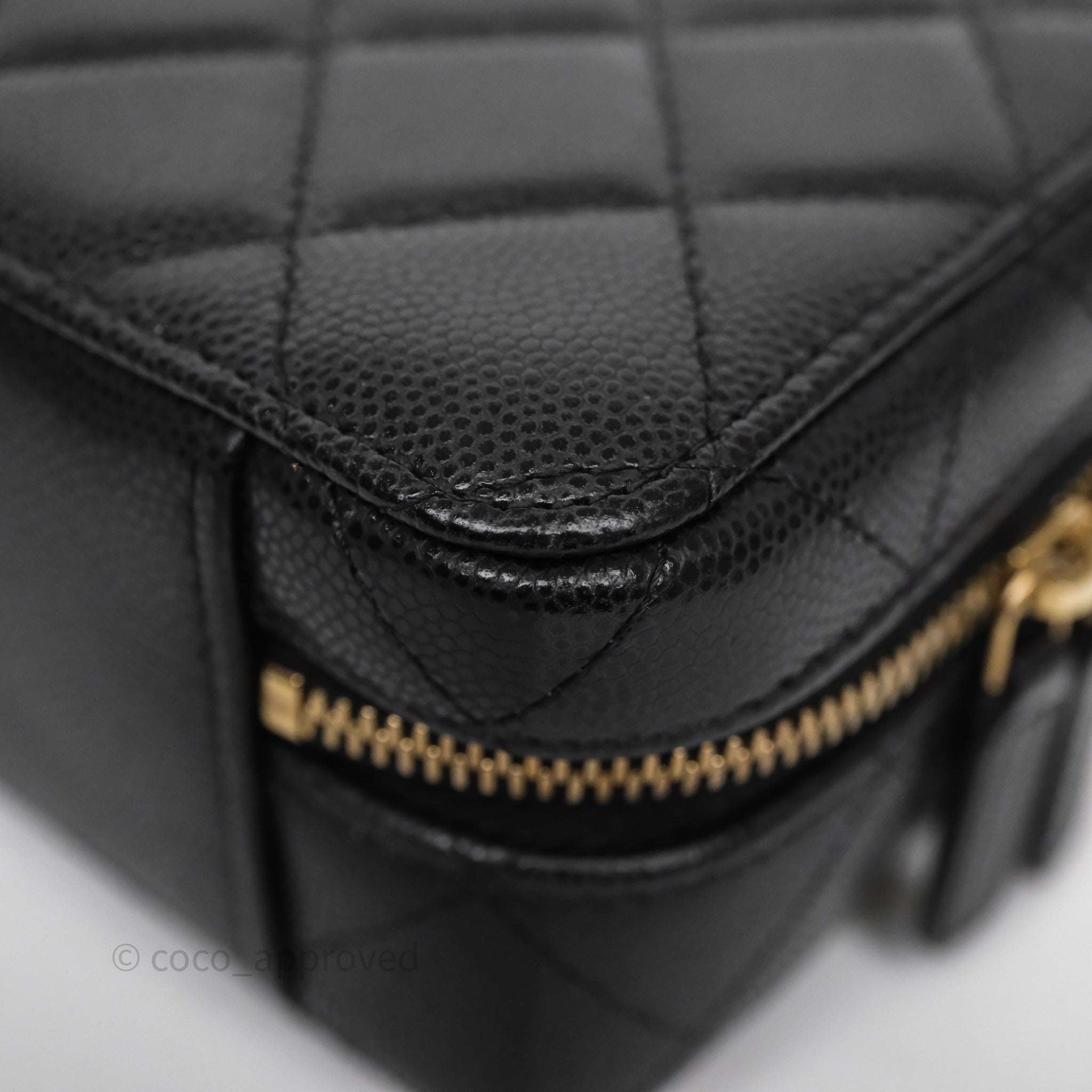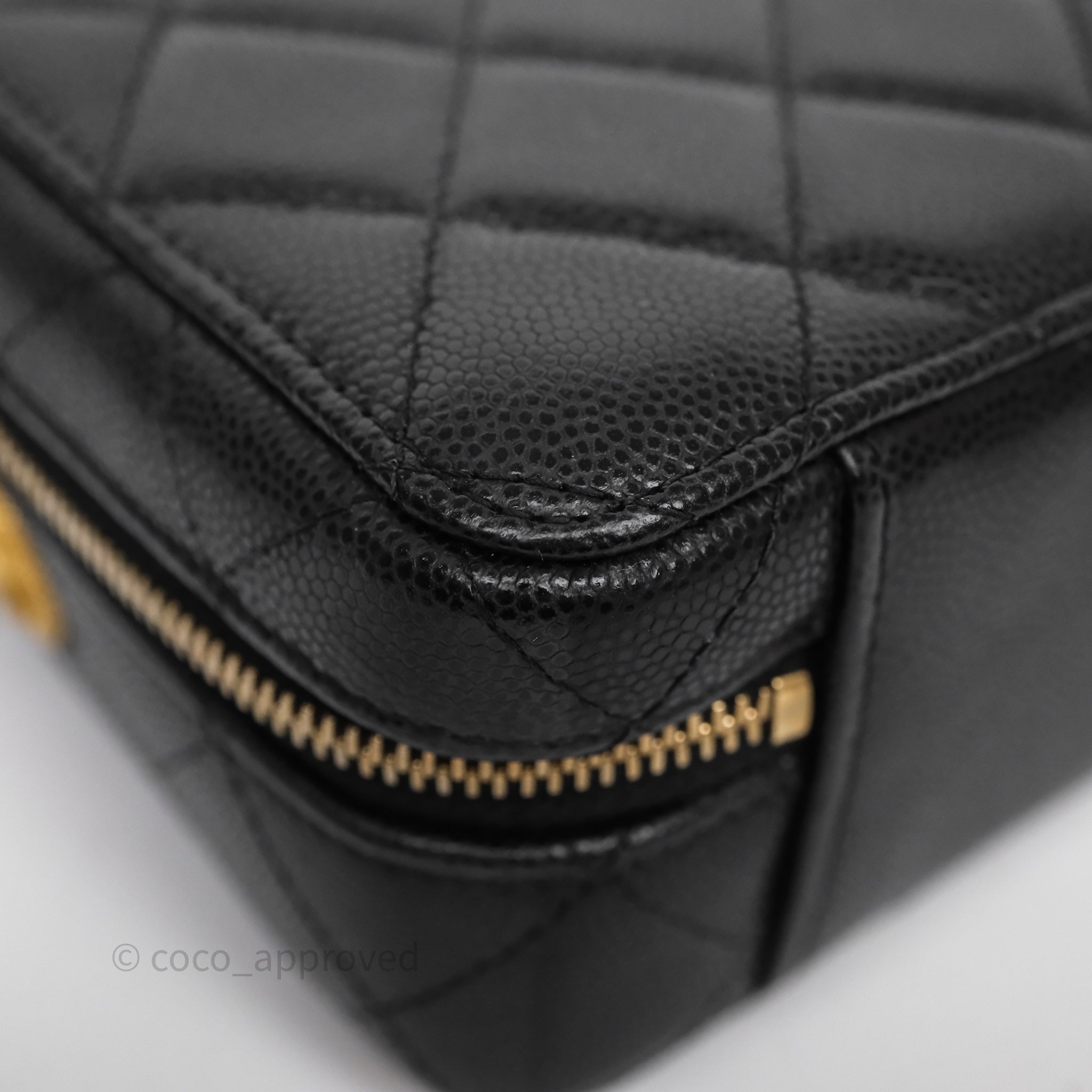 Chanel Quilted CC Coins Purse Chain Camera Case Black Caviar Aged Gold Hardware