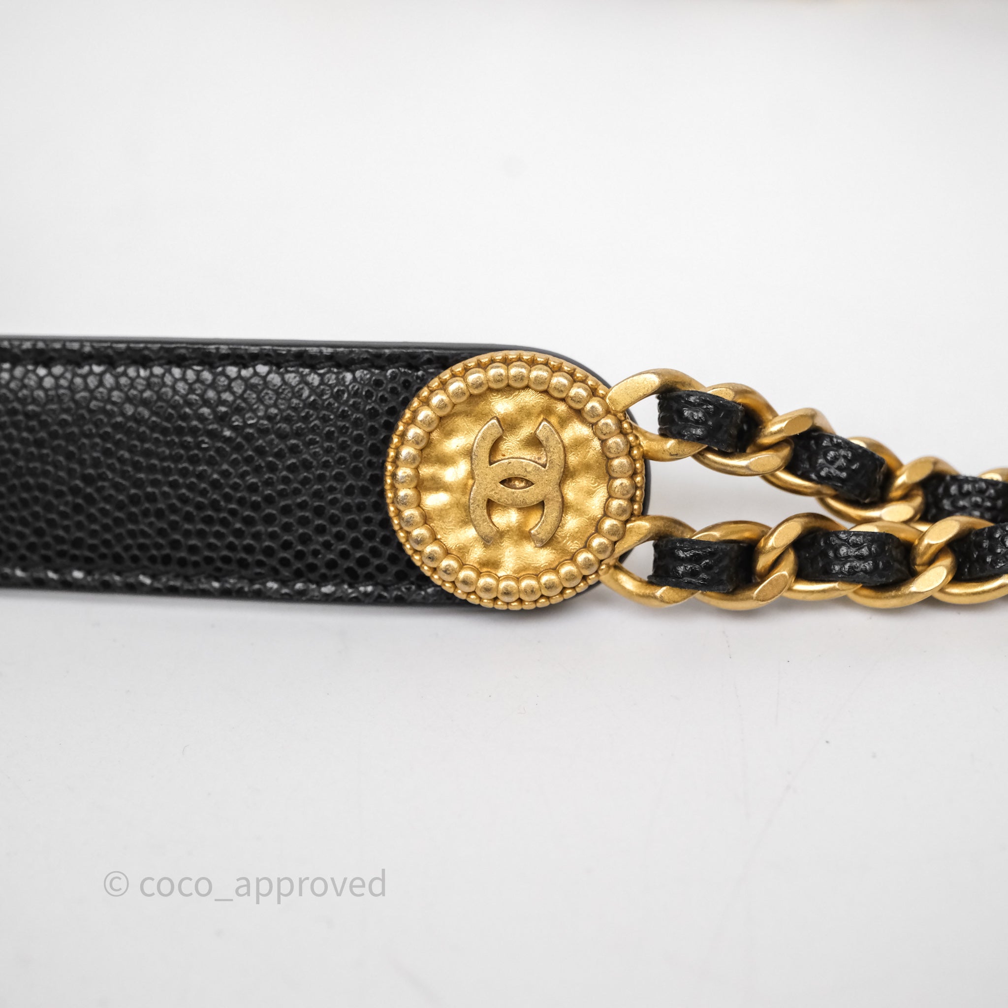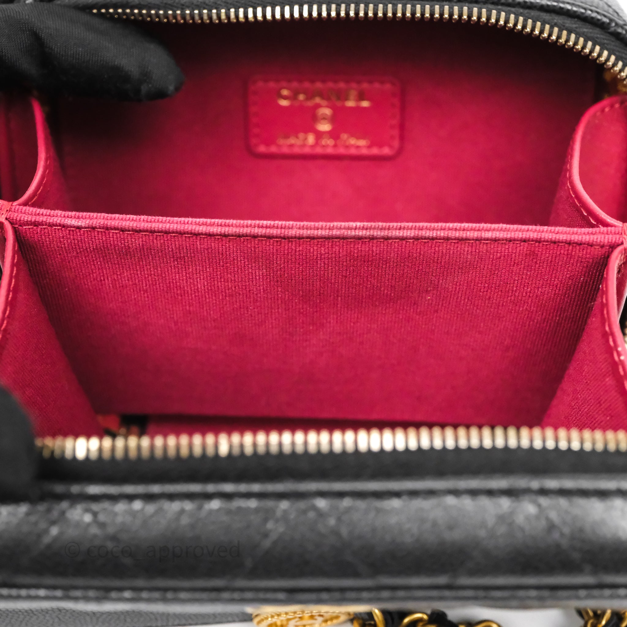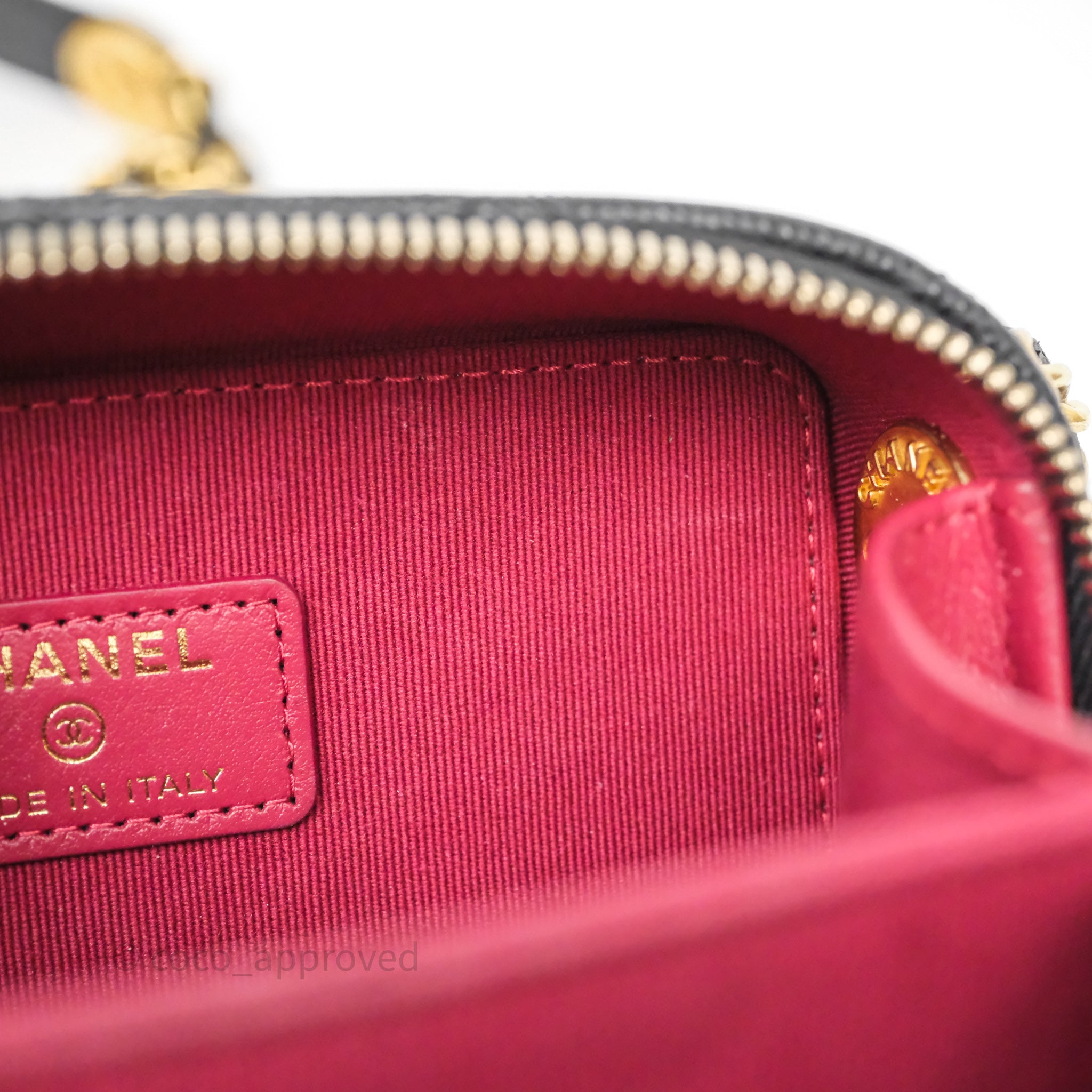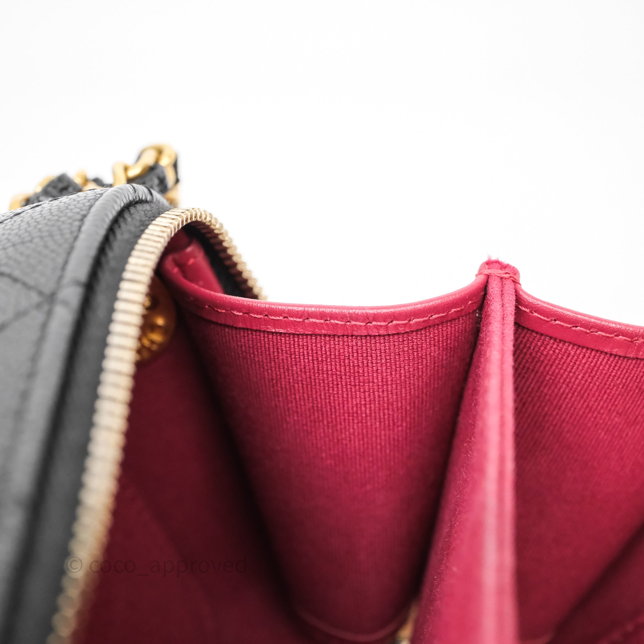 Chanel Quilted CC Coins Purse Chain Camera Case Black Caviar Aged Gold Hardware
