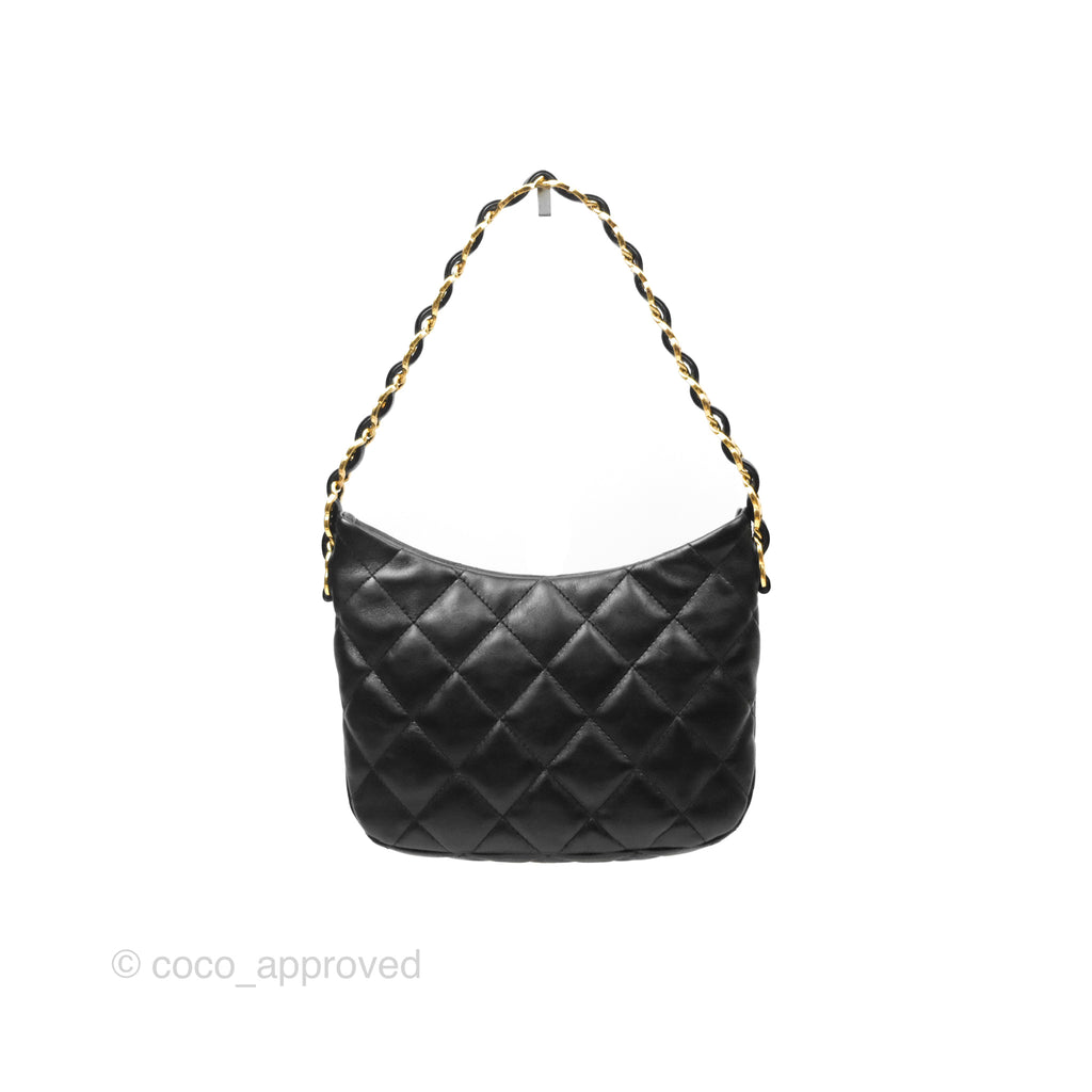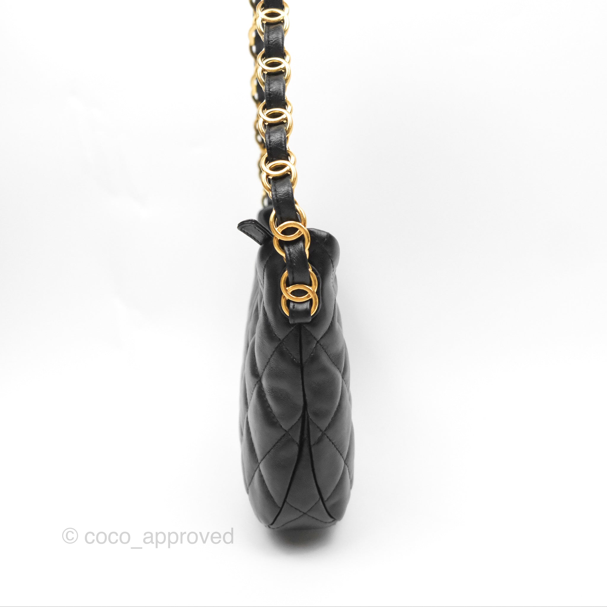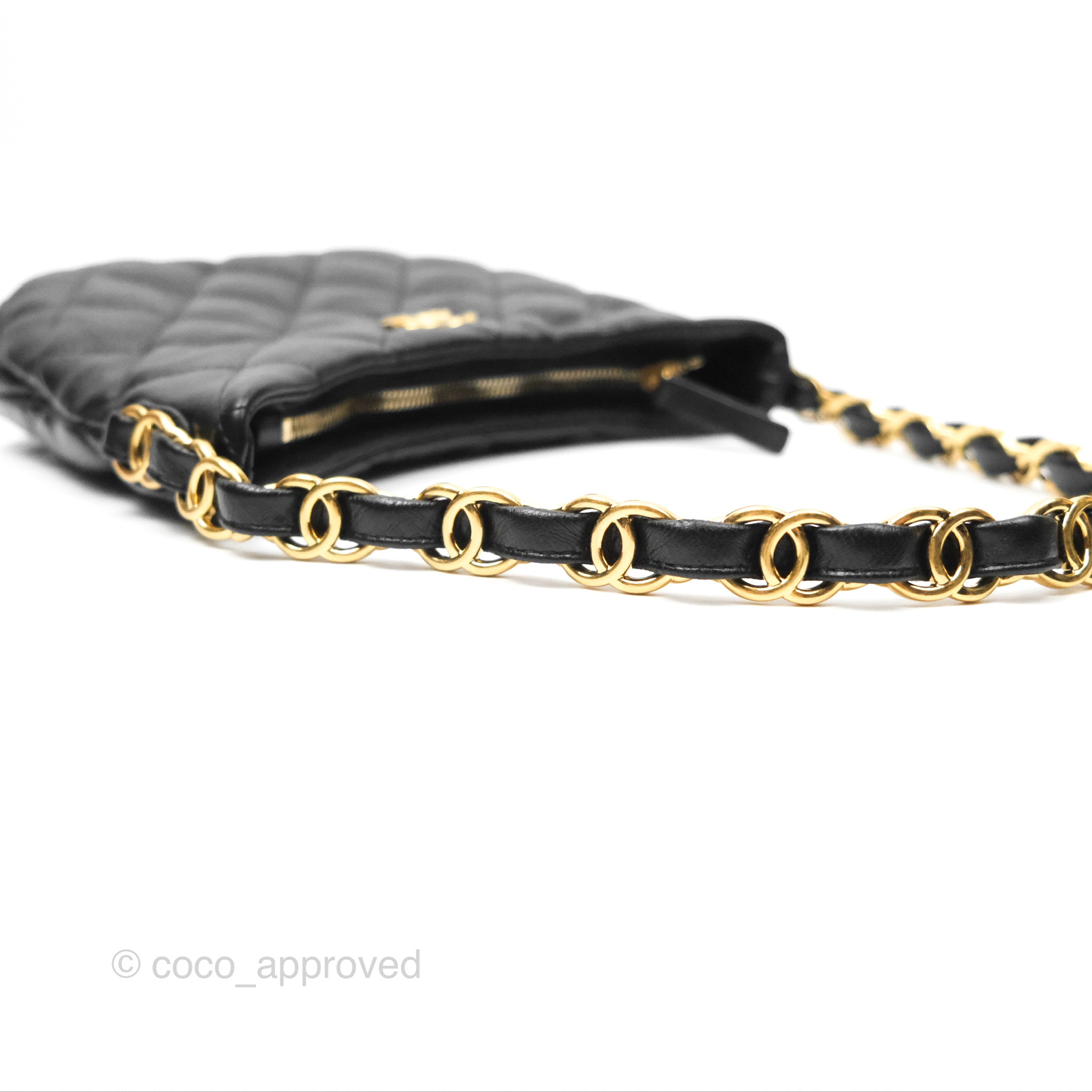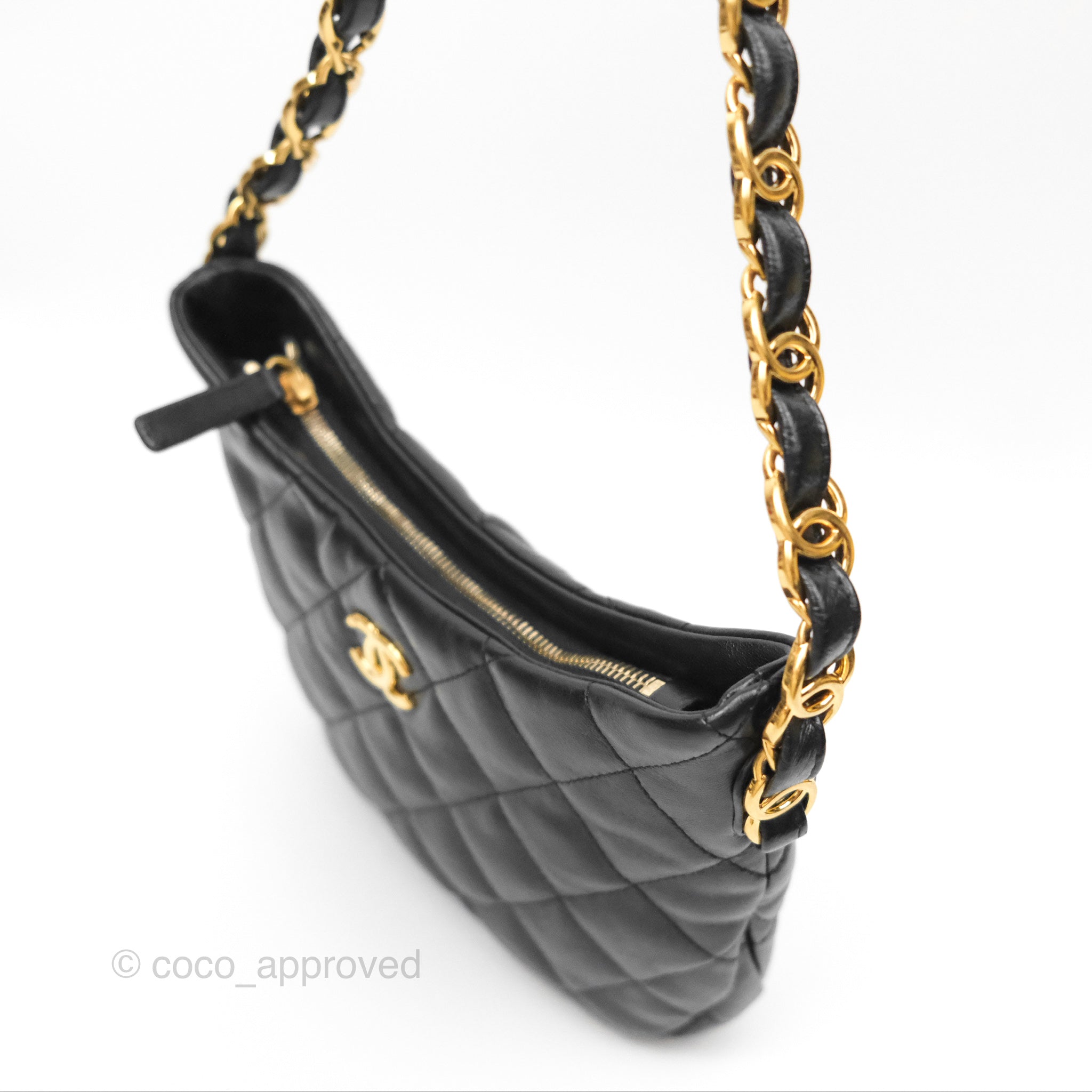 Chanel Small Hobo Bag CC Chain Black Calfskin Aged Gold Hardware 22K