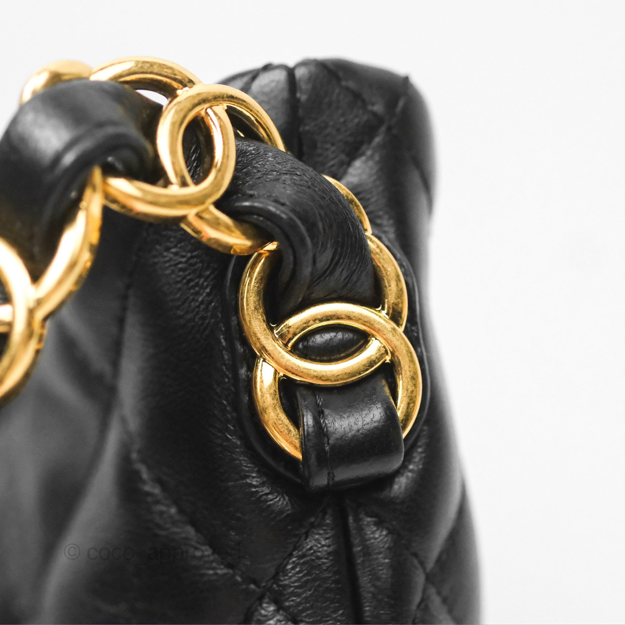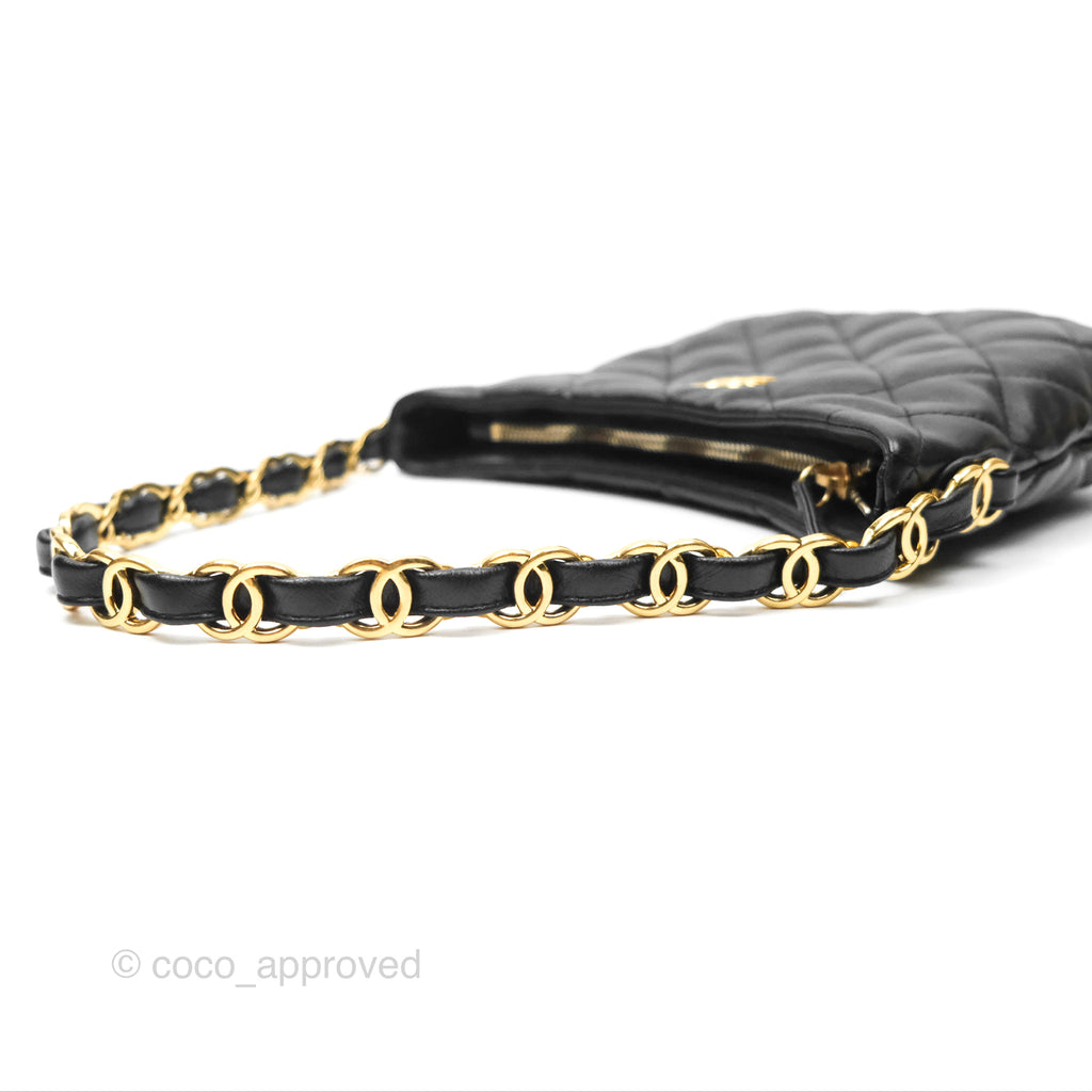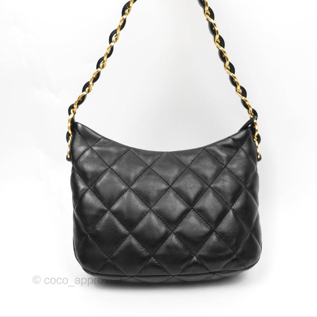 Chanel Small Hobo Bag CC Chain Black Calfskin Aged Gold Hardware 22K