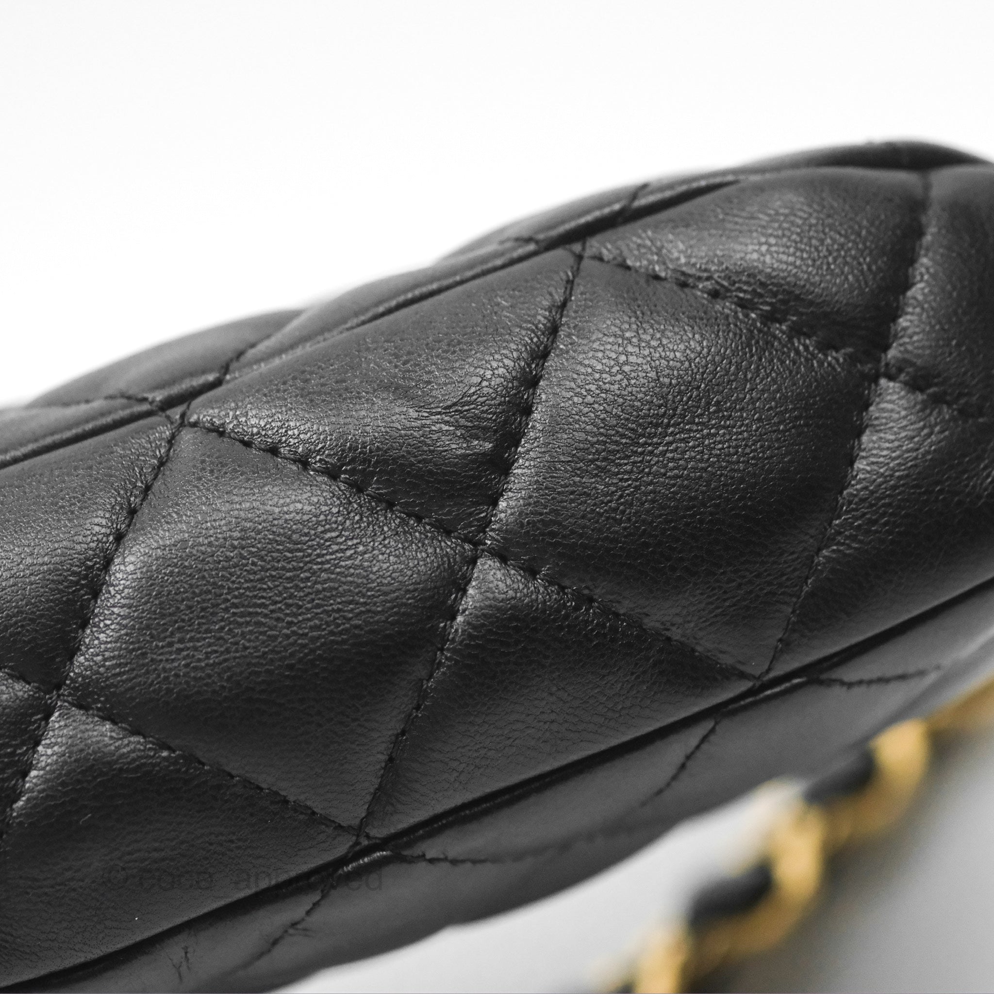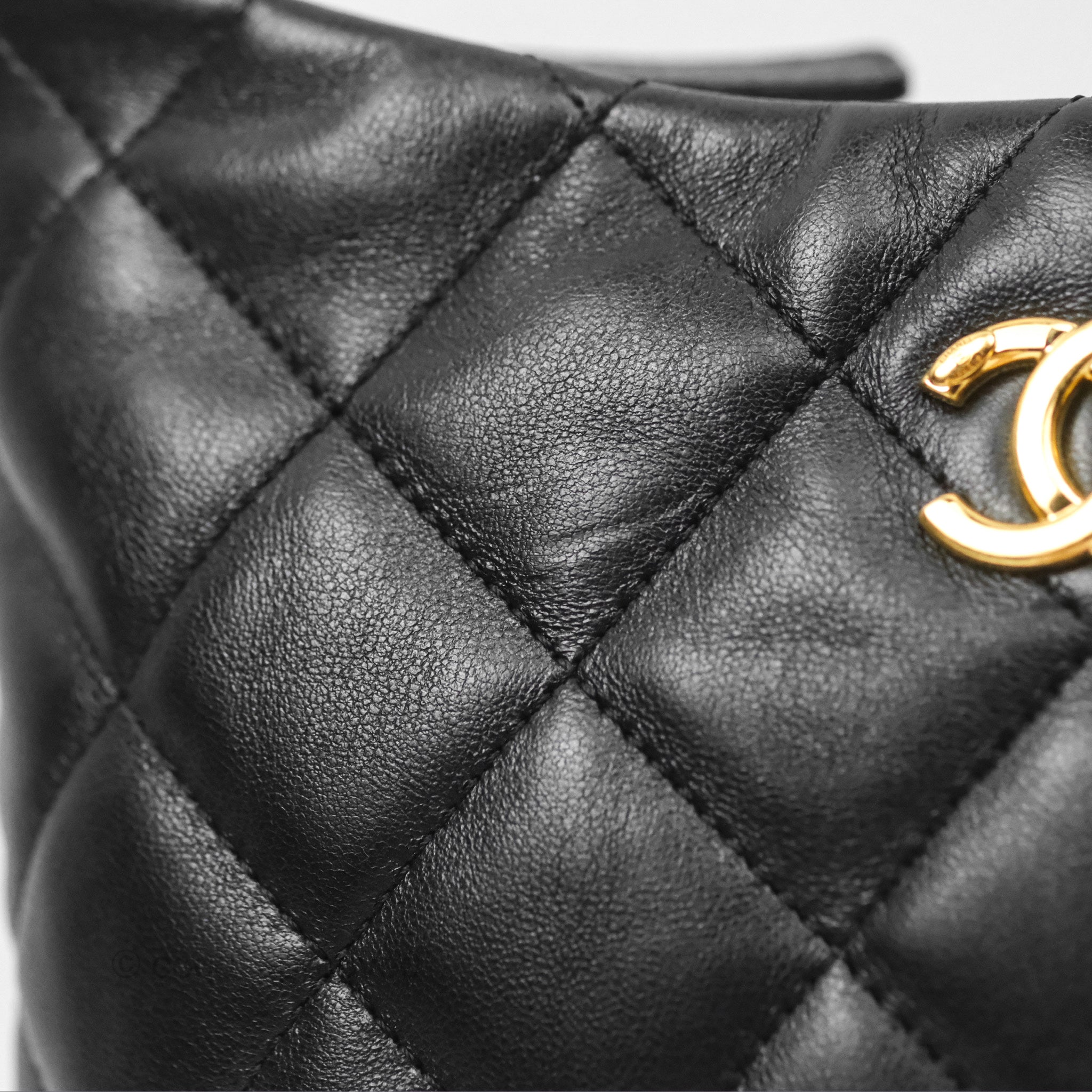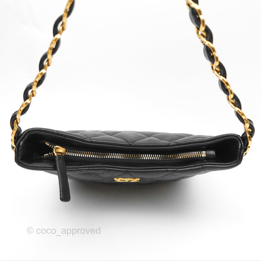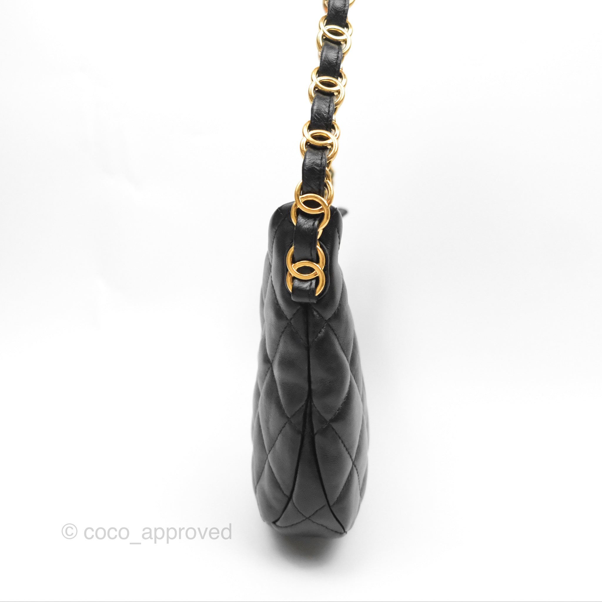 Chanel Small Hobo Bag CC Chain Black Calfskin Aged Gold Hardware 22K