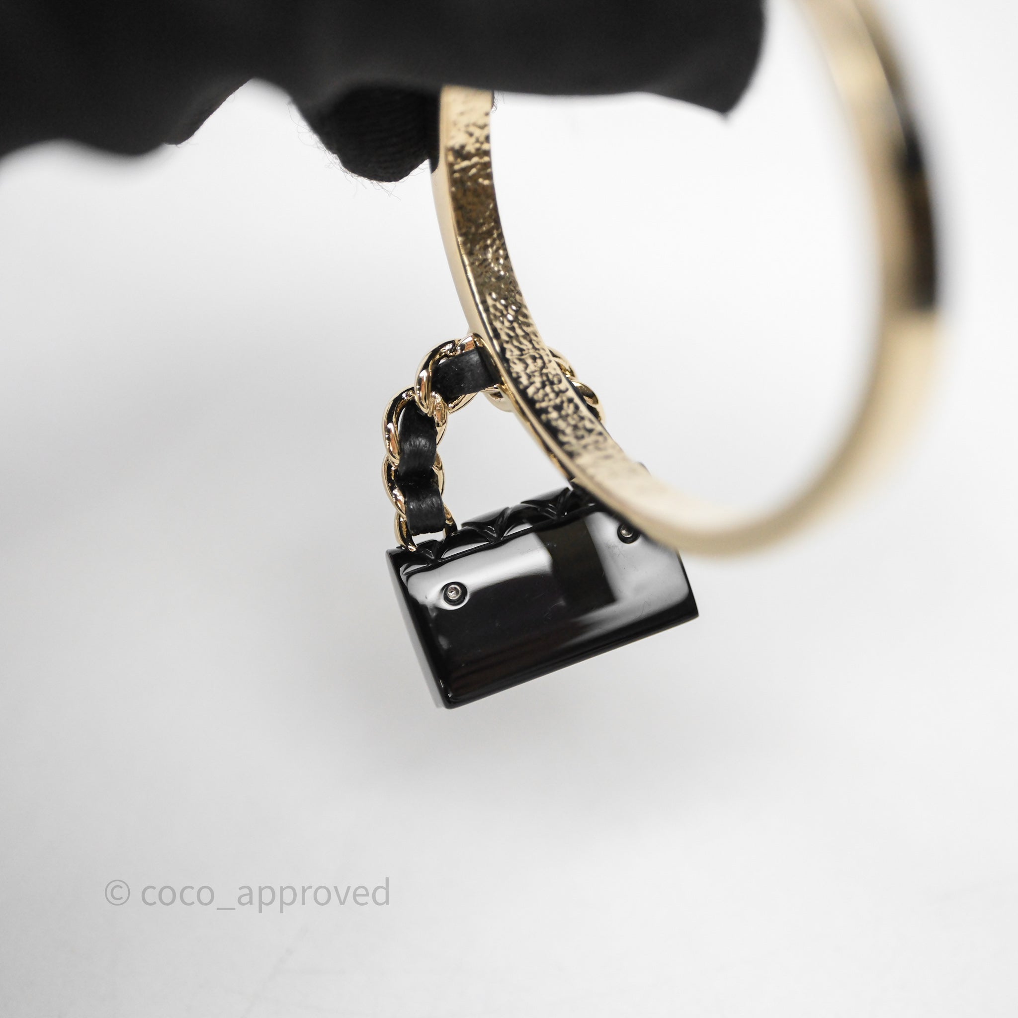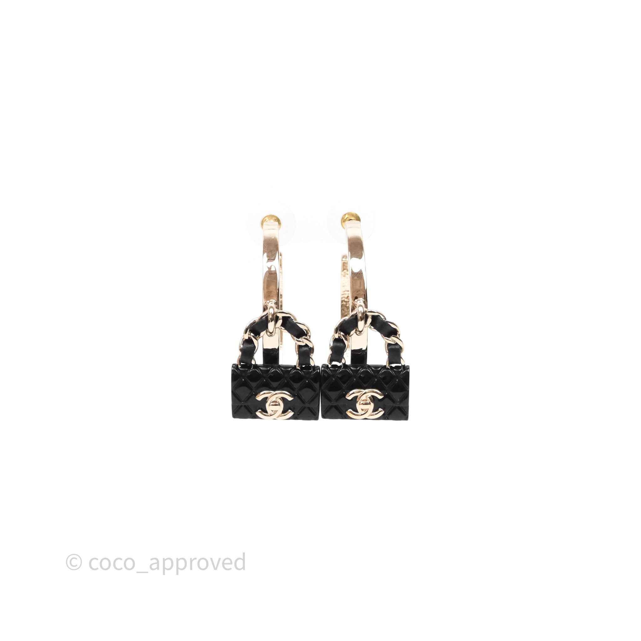 Chanel Turnlock Black Flap Bag Dangle Hoop Earrings