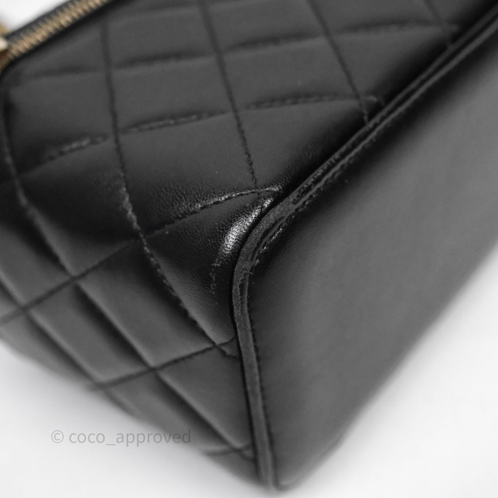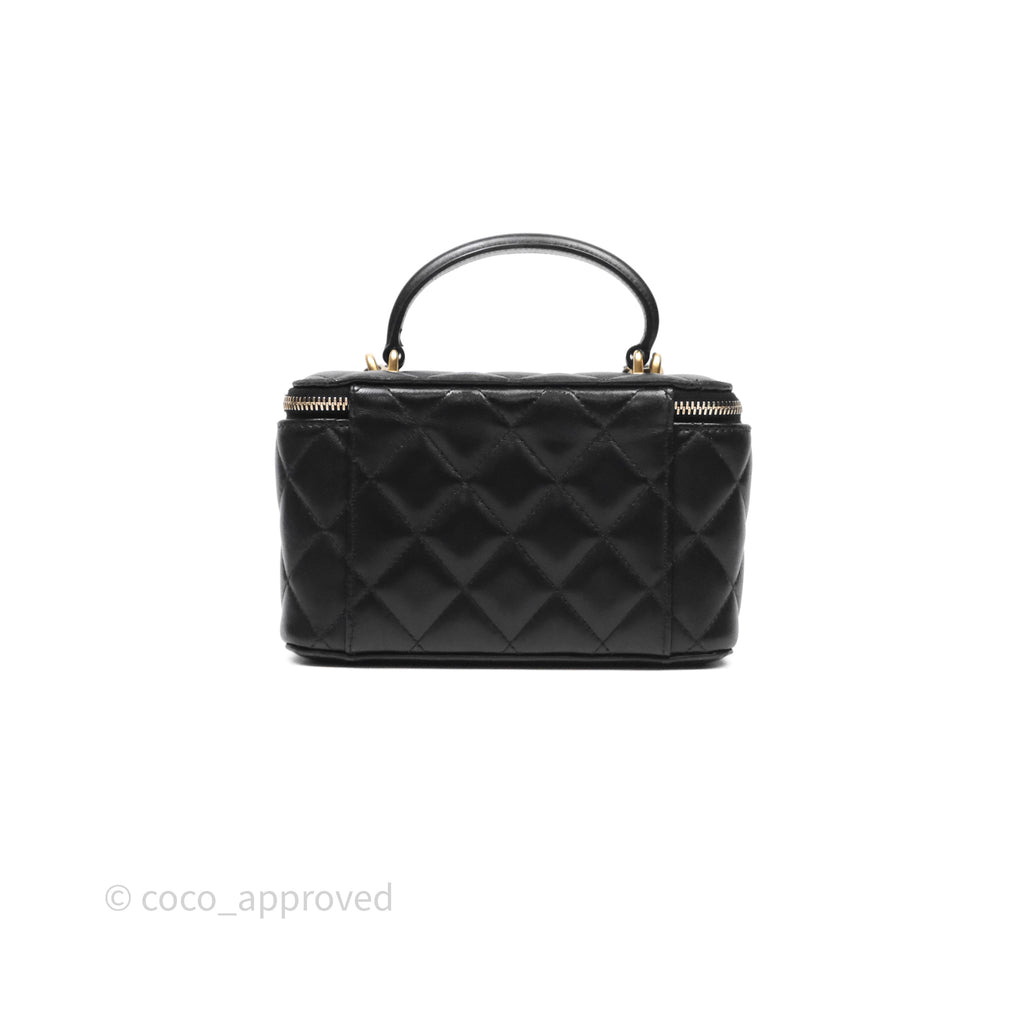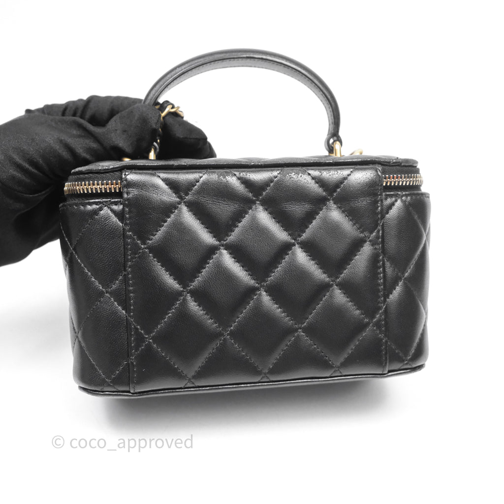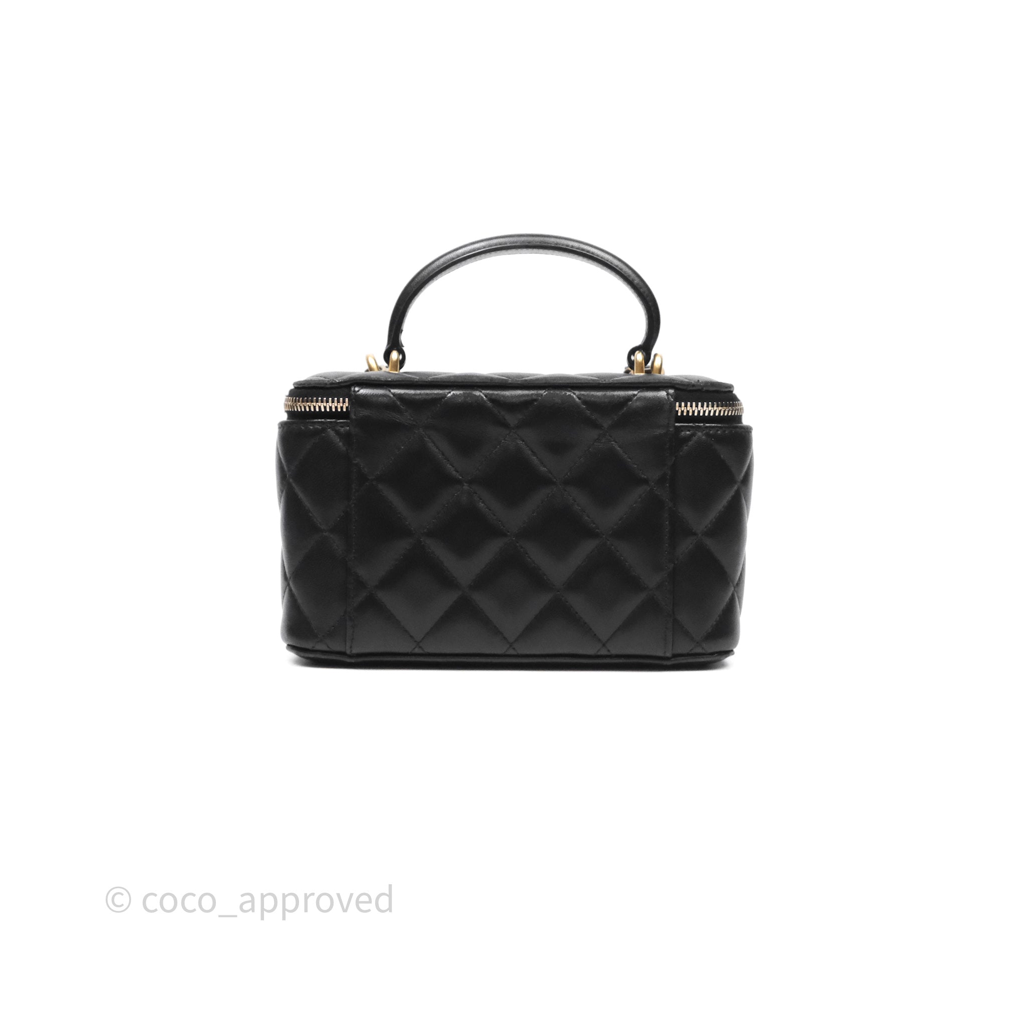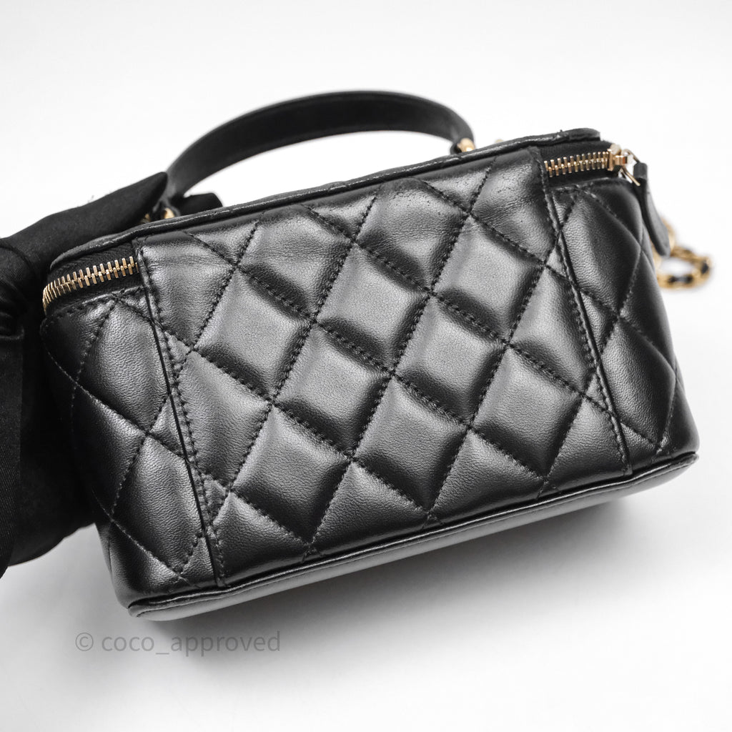 Chanel Vanity Rectangular Top Handle Black Lambskin Gold Hardware