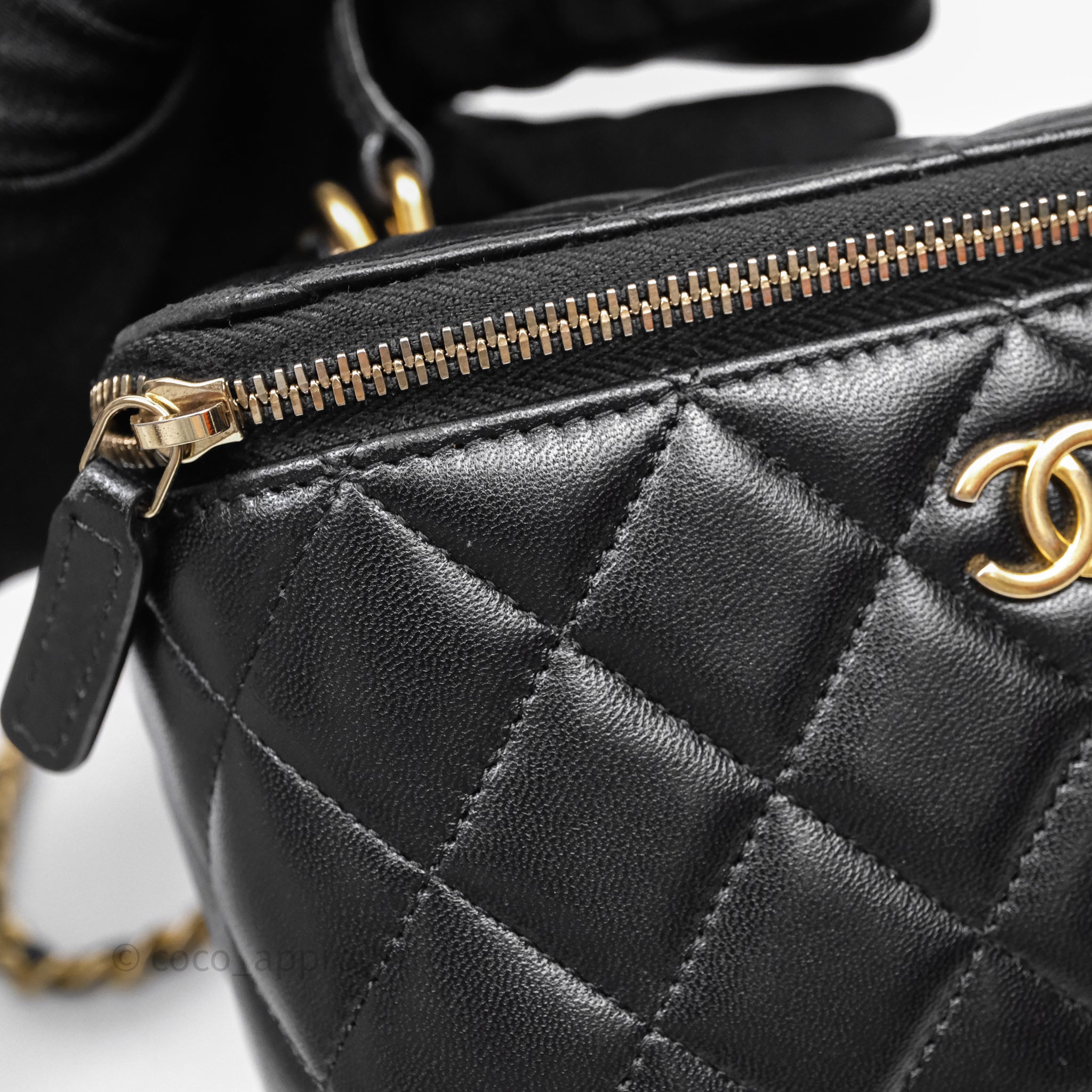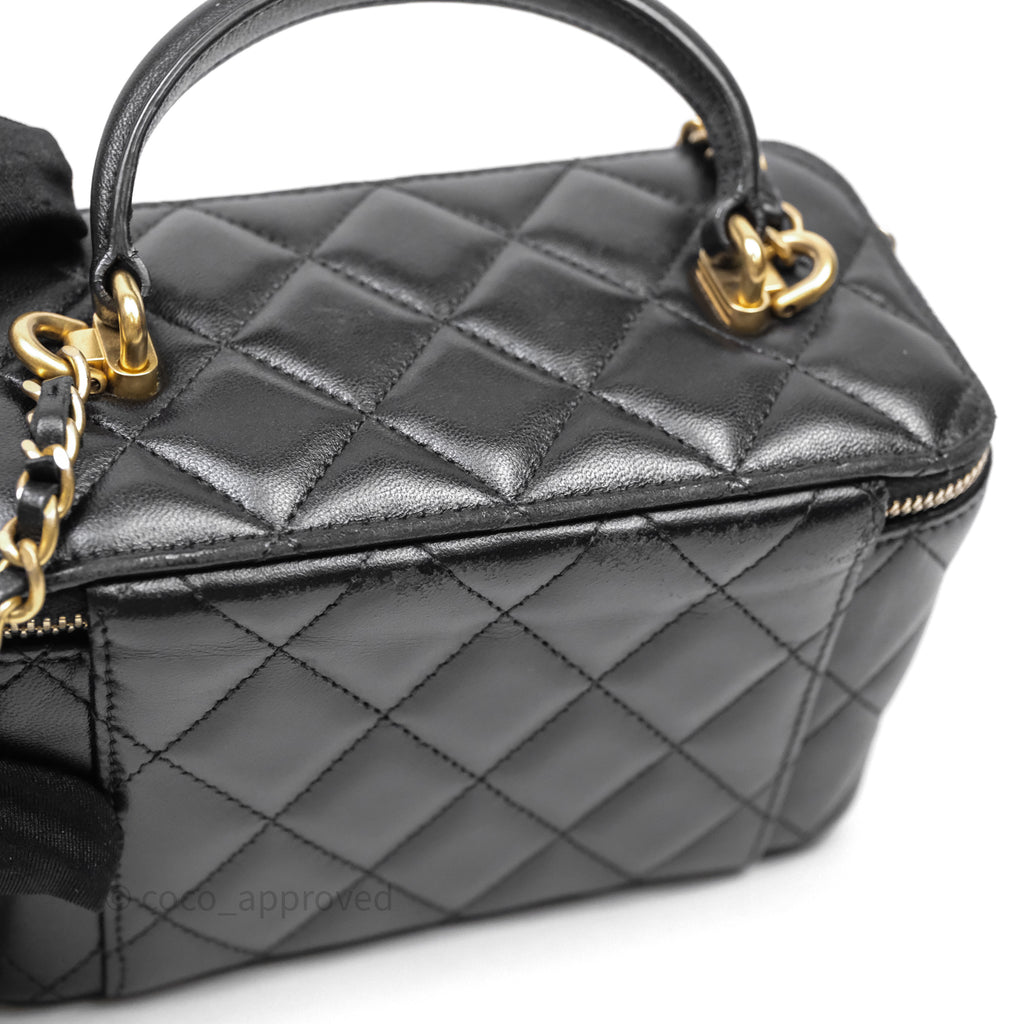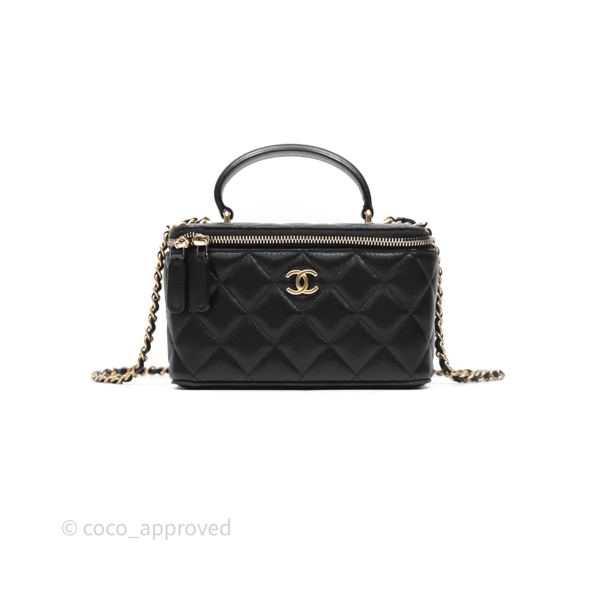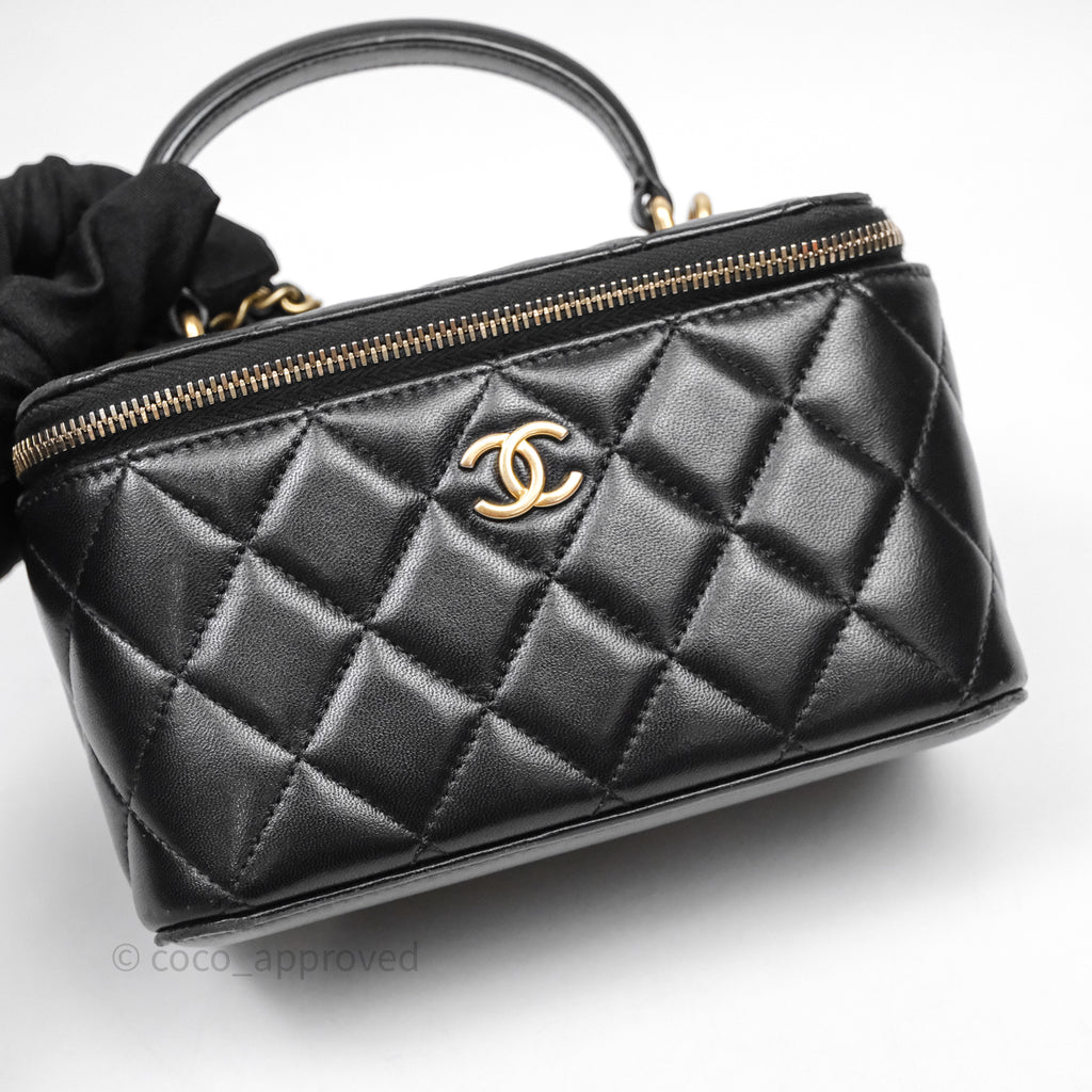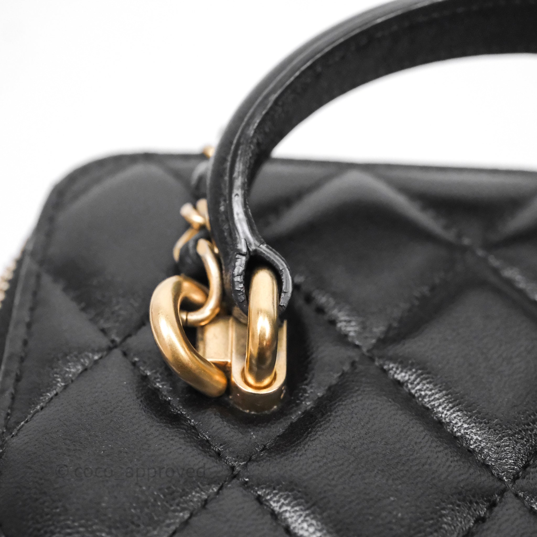 Chanel Vanity Rectangular Top Handle Black Lambskin Gold Hardware