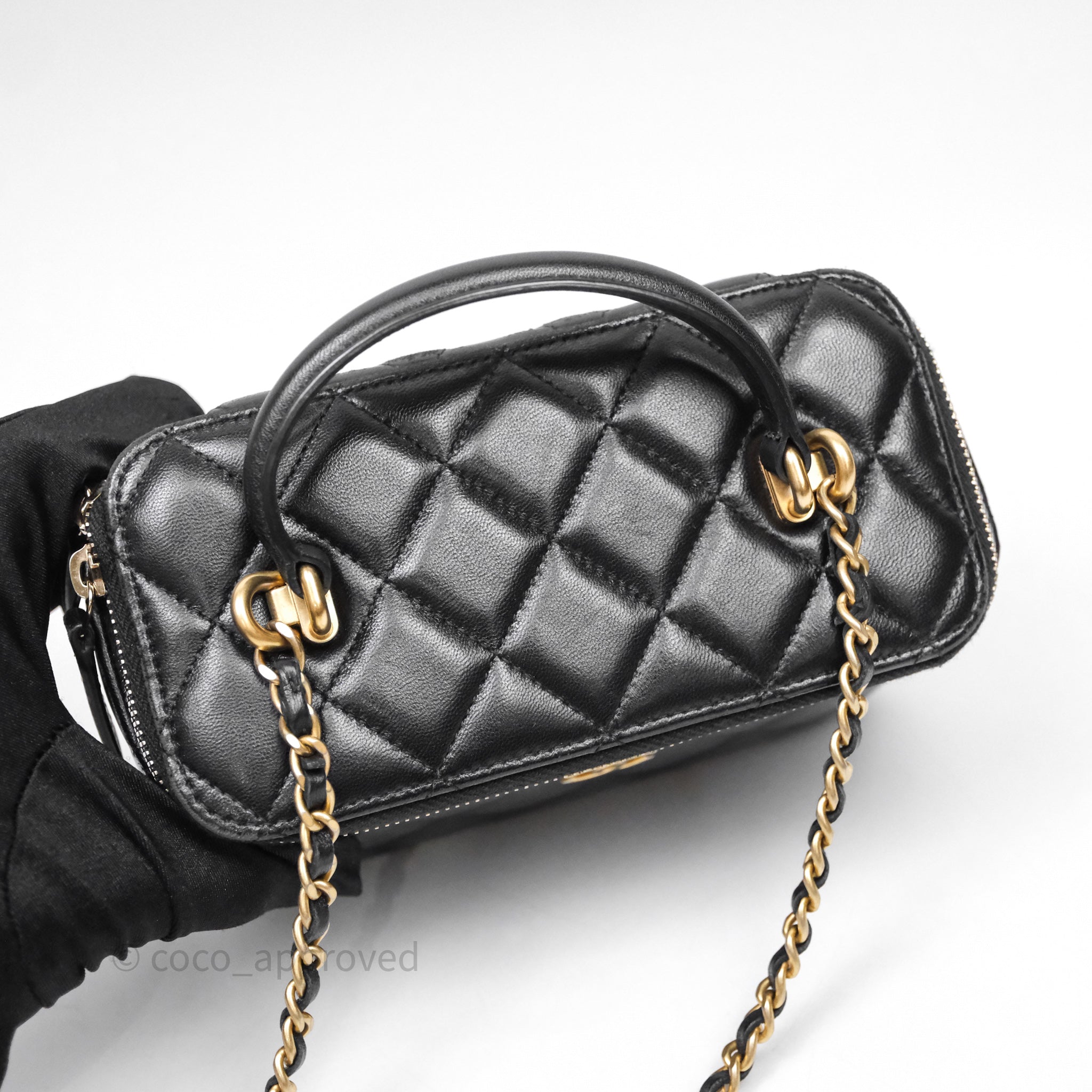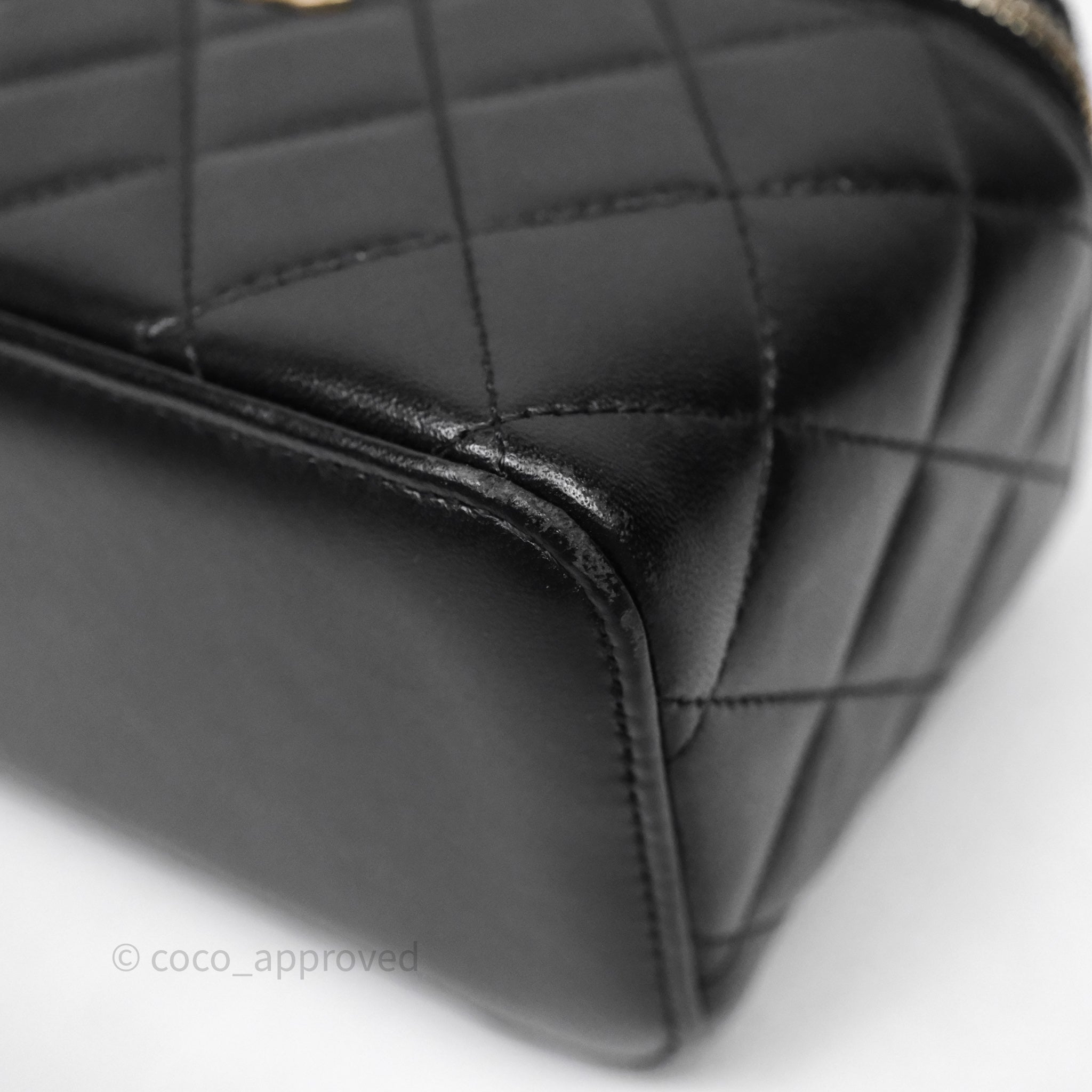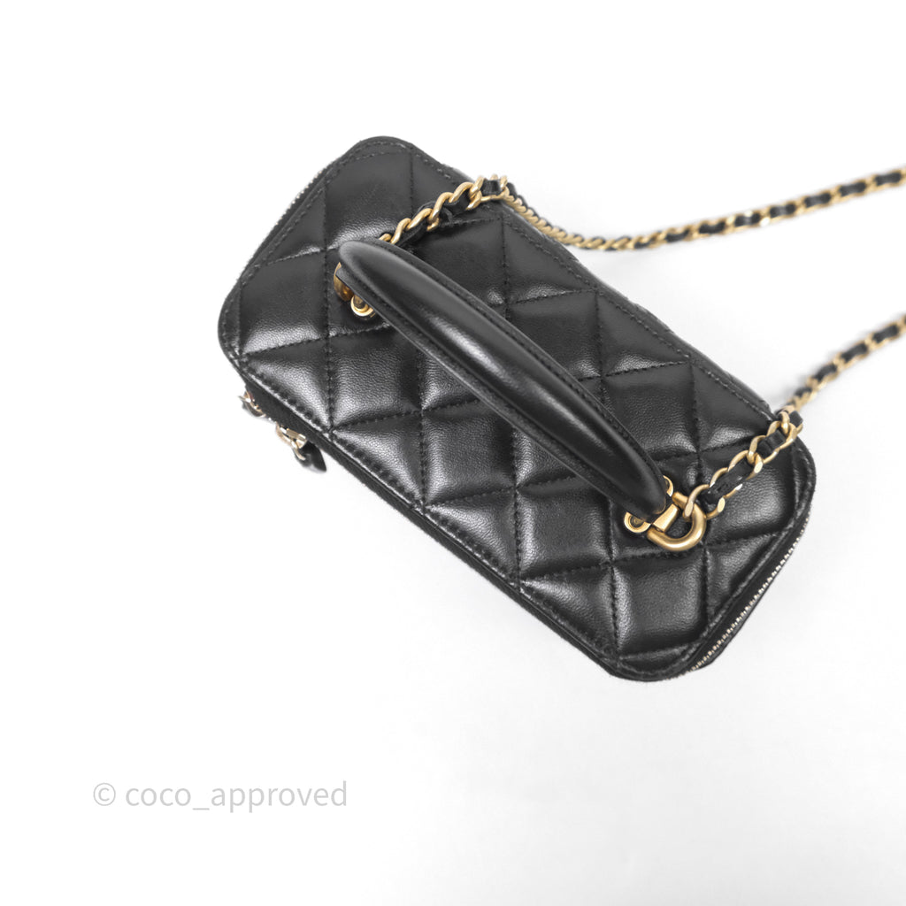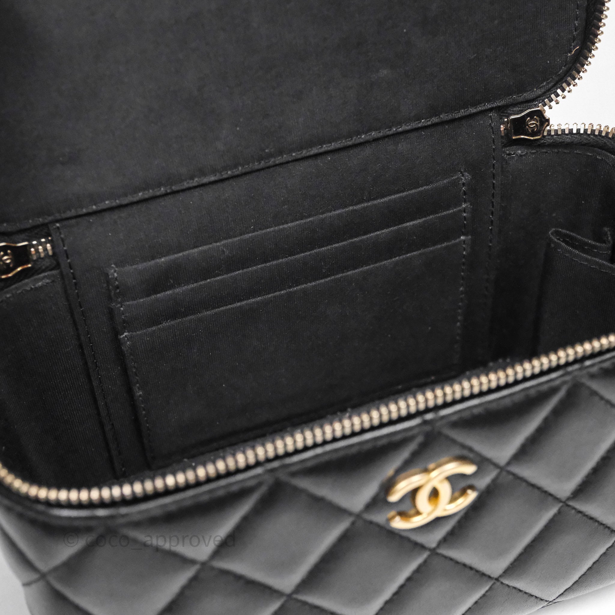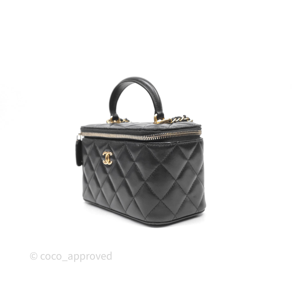 Chanel Vanity Rectangular Top Handle Black Lambskin Gold Hardware
