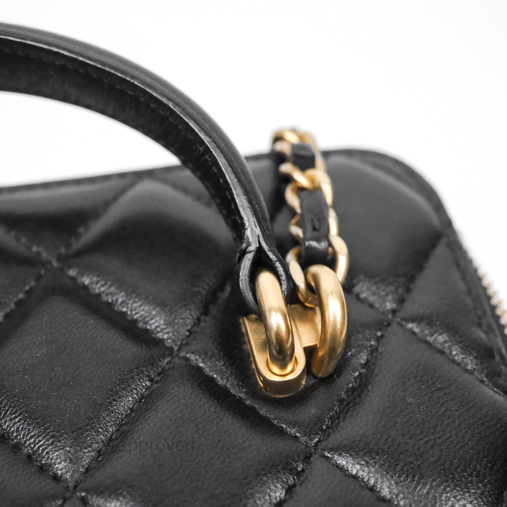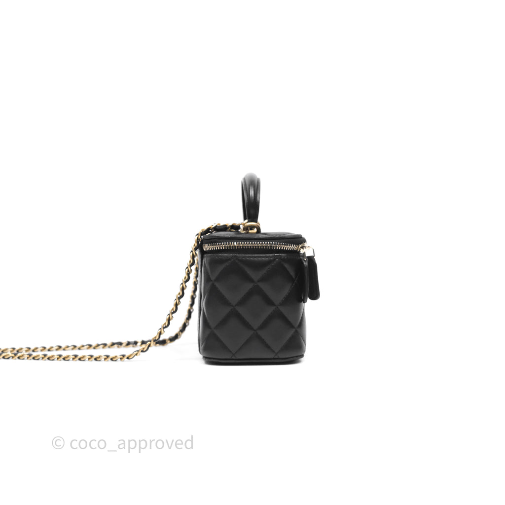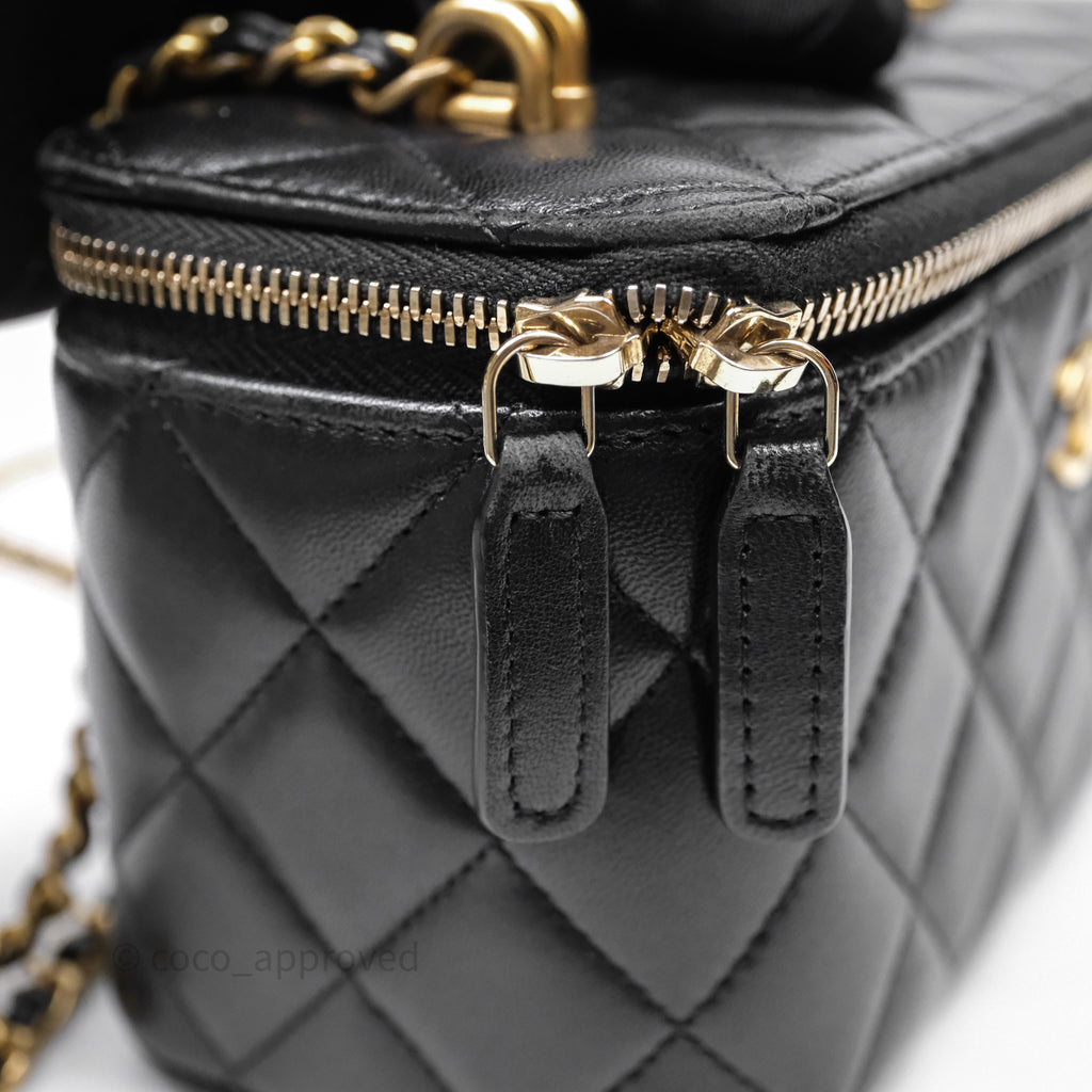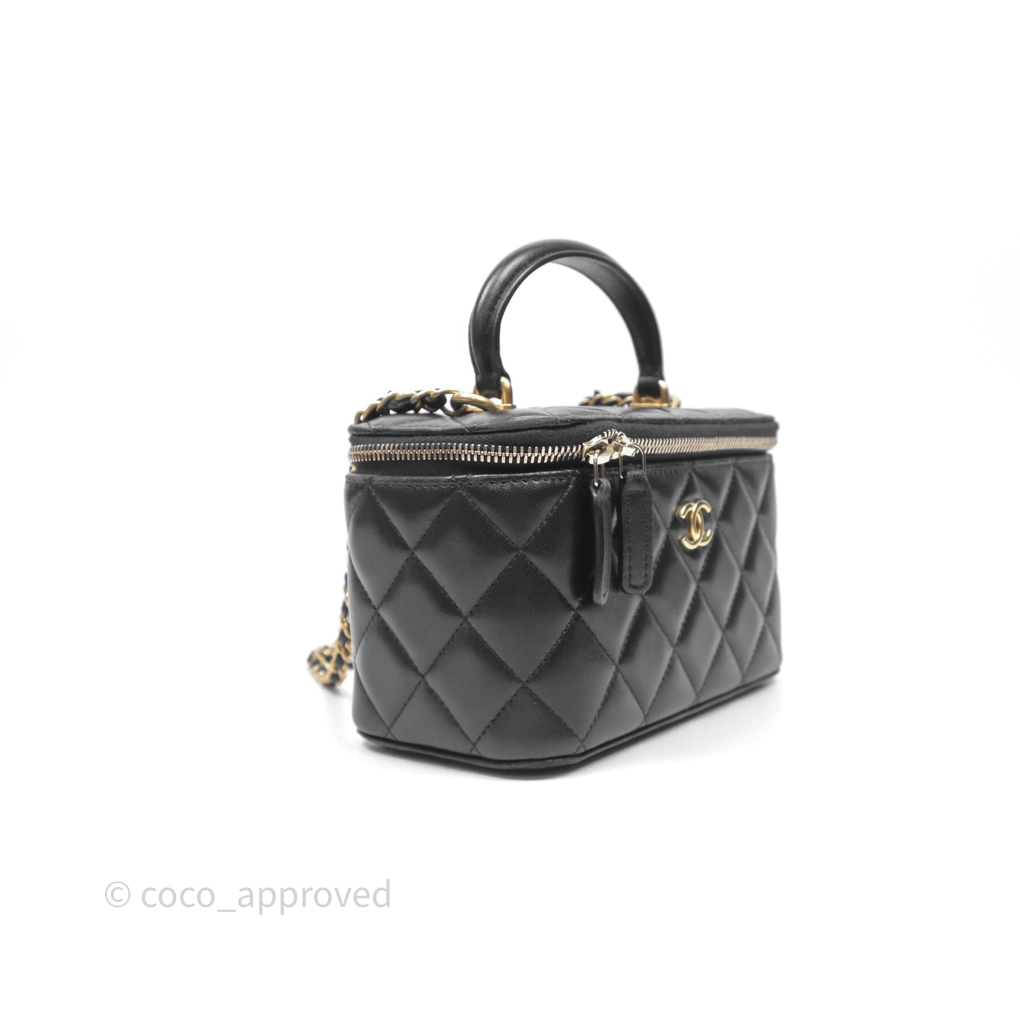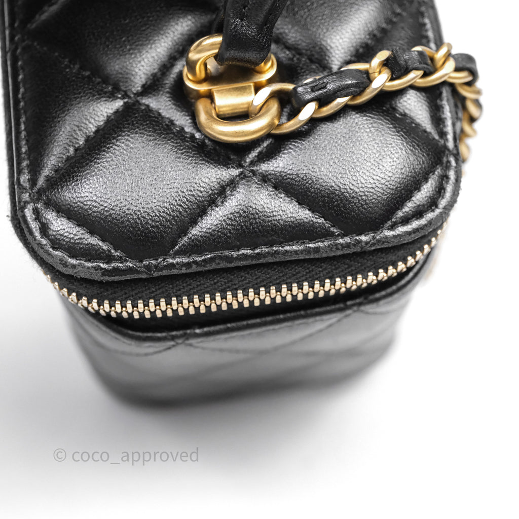 Chanel Vanity Rectangular Top Handle Black Lambskin Gold Hardware