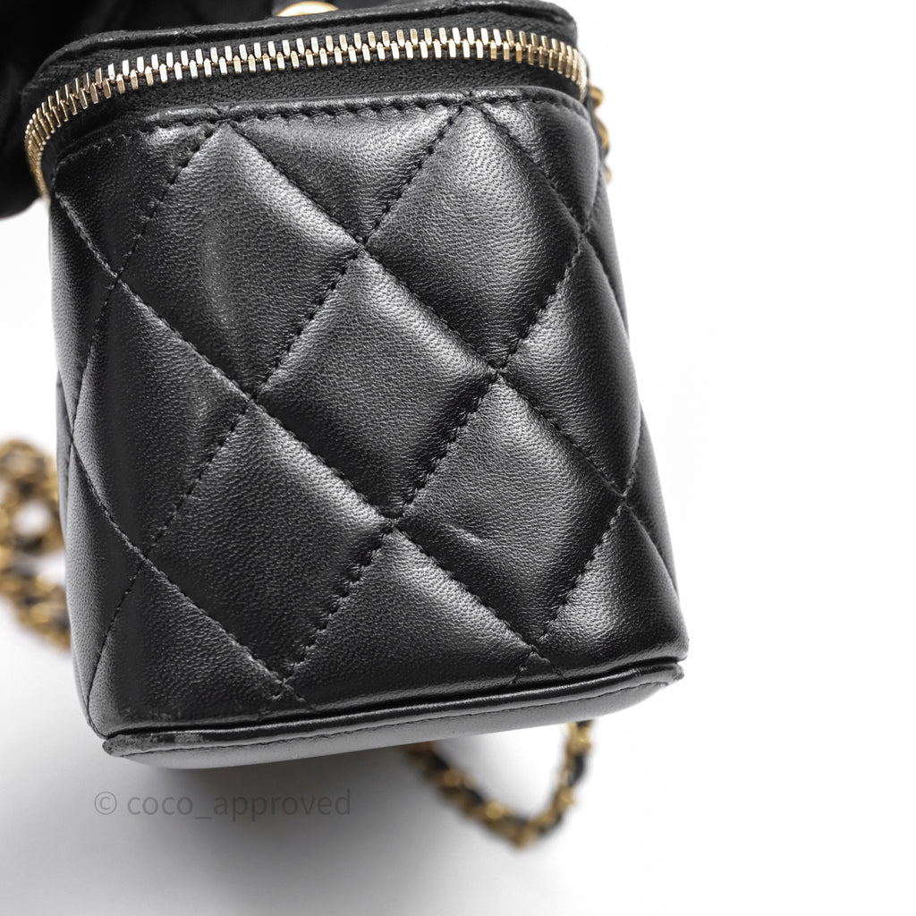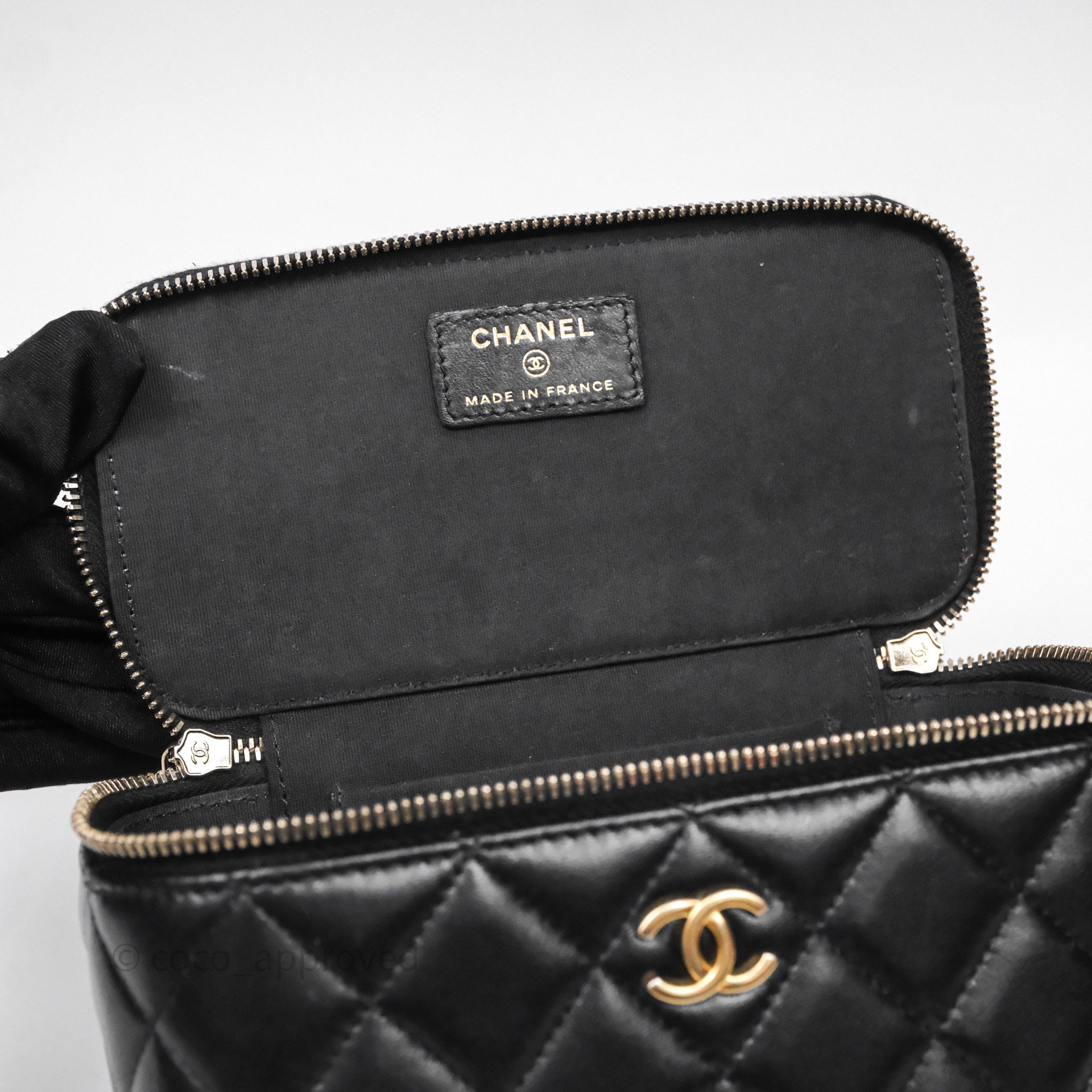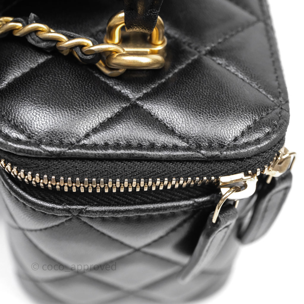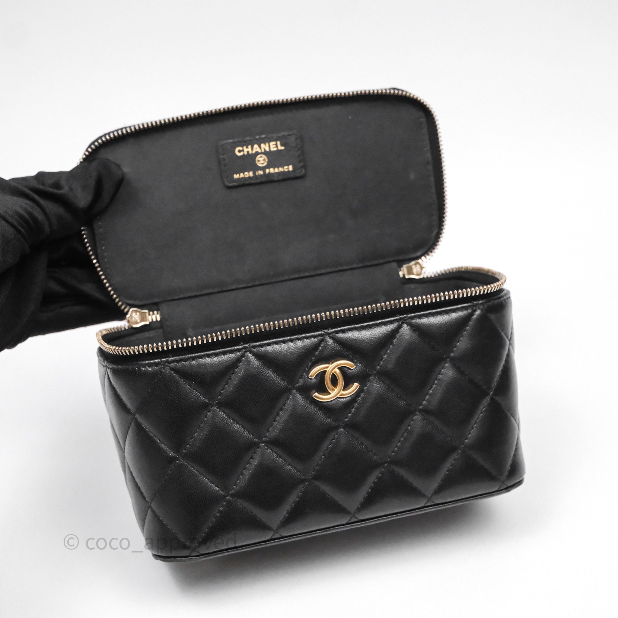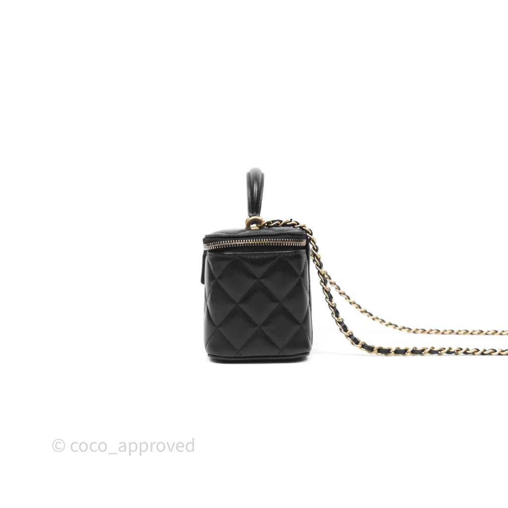 Chanel Vanity Rectangular Top Handle Black Lambskin Gold Hardware