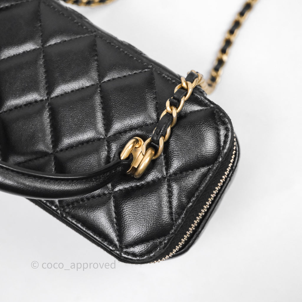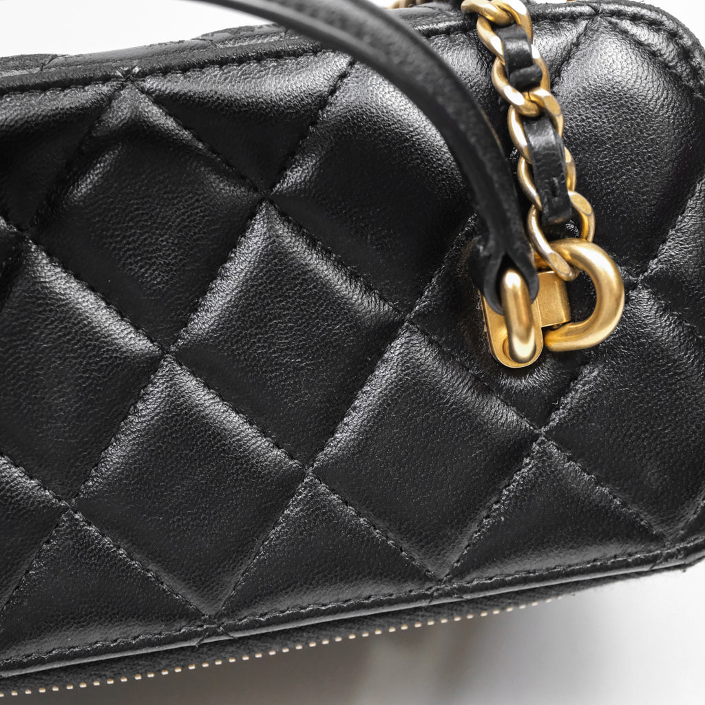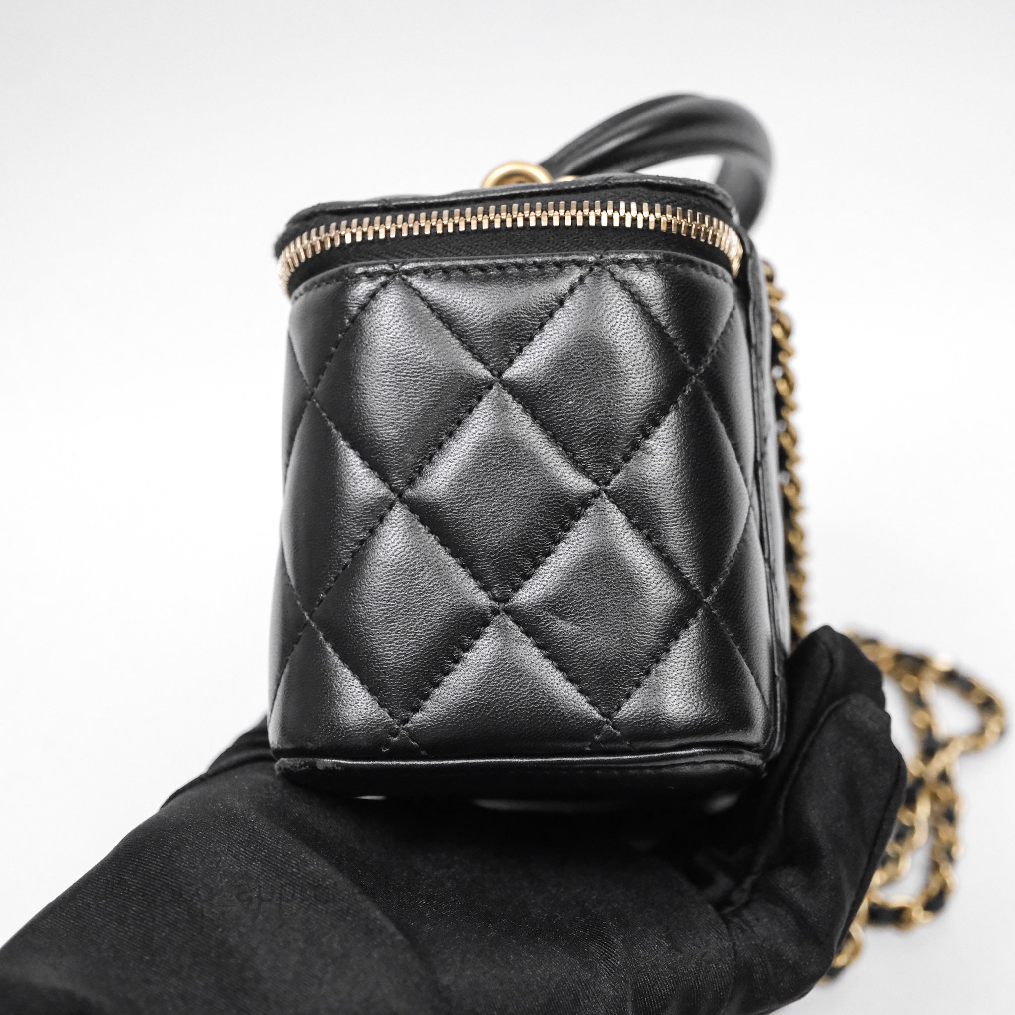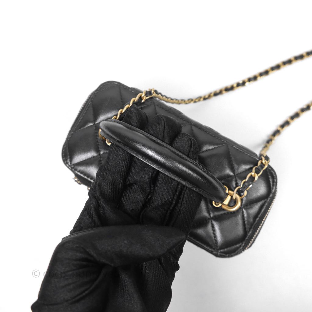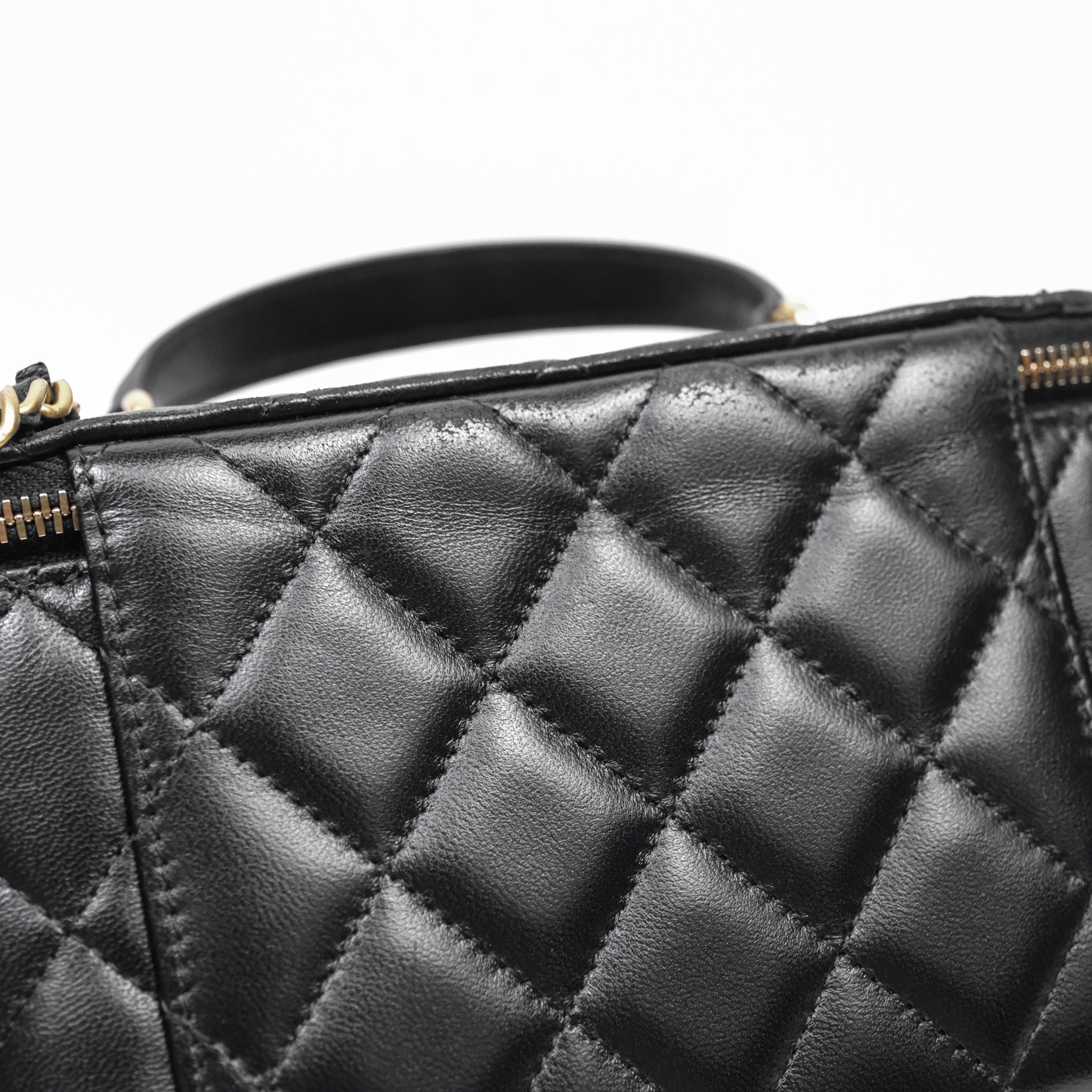 Chanel Vanity Rectangular Top Handle Black Lambskin Gold Hardware