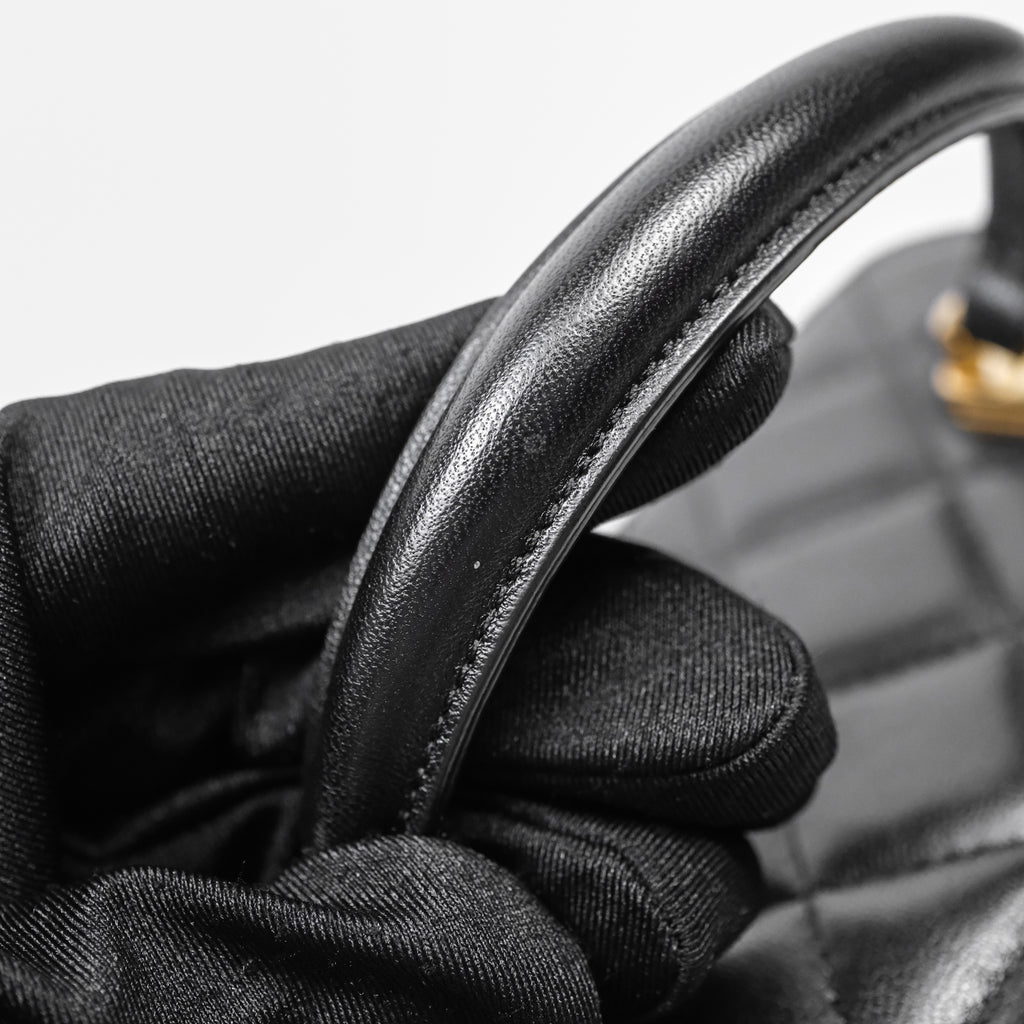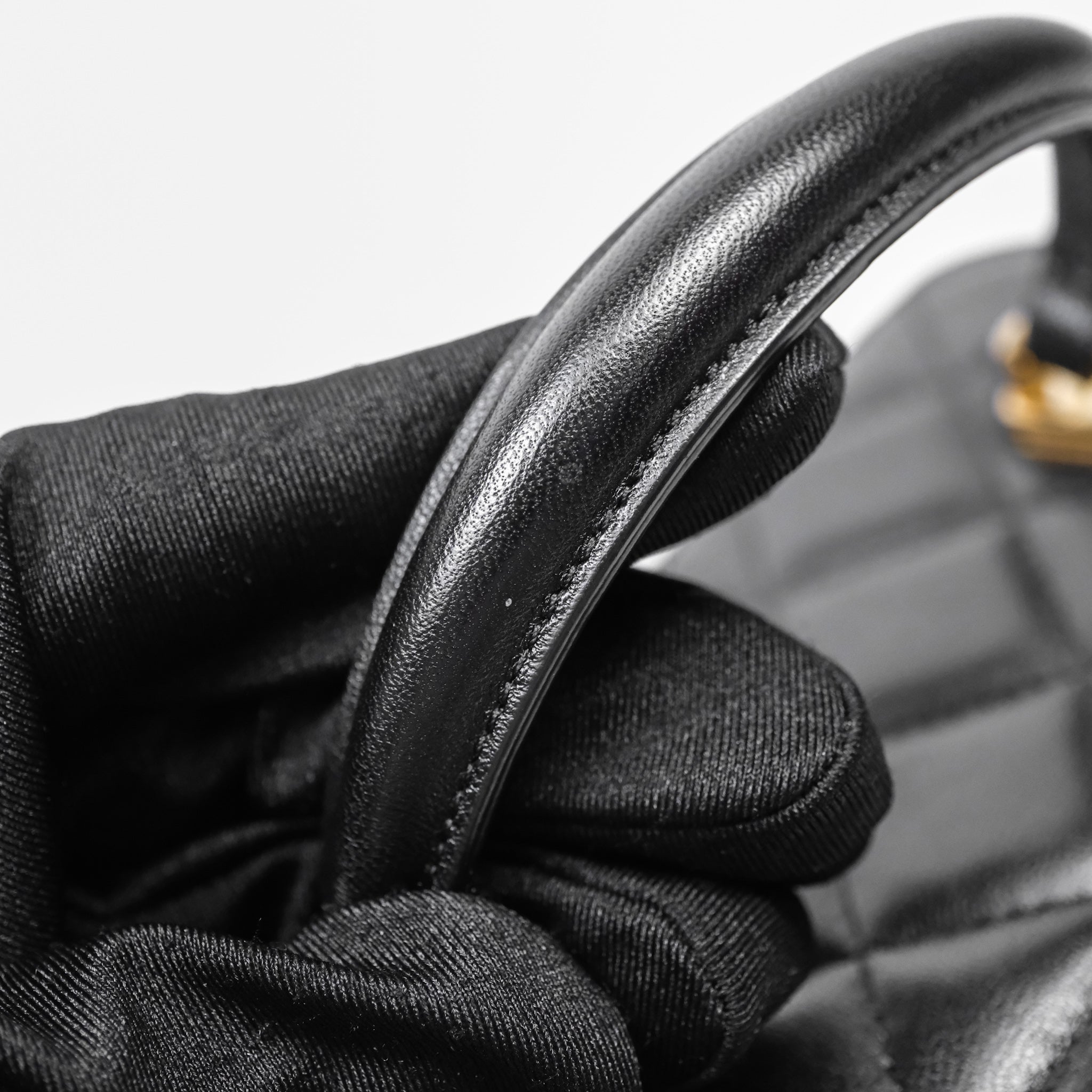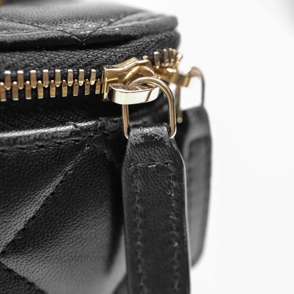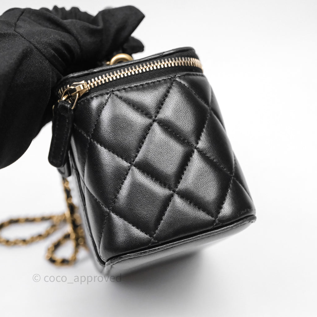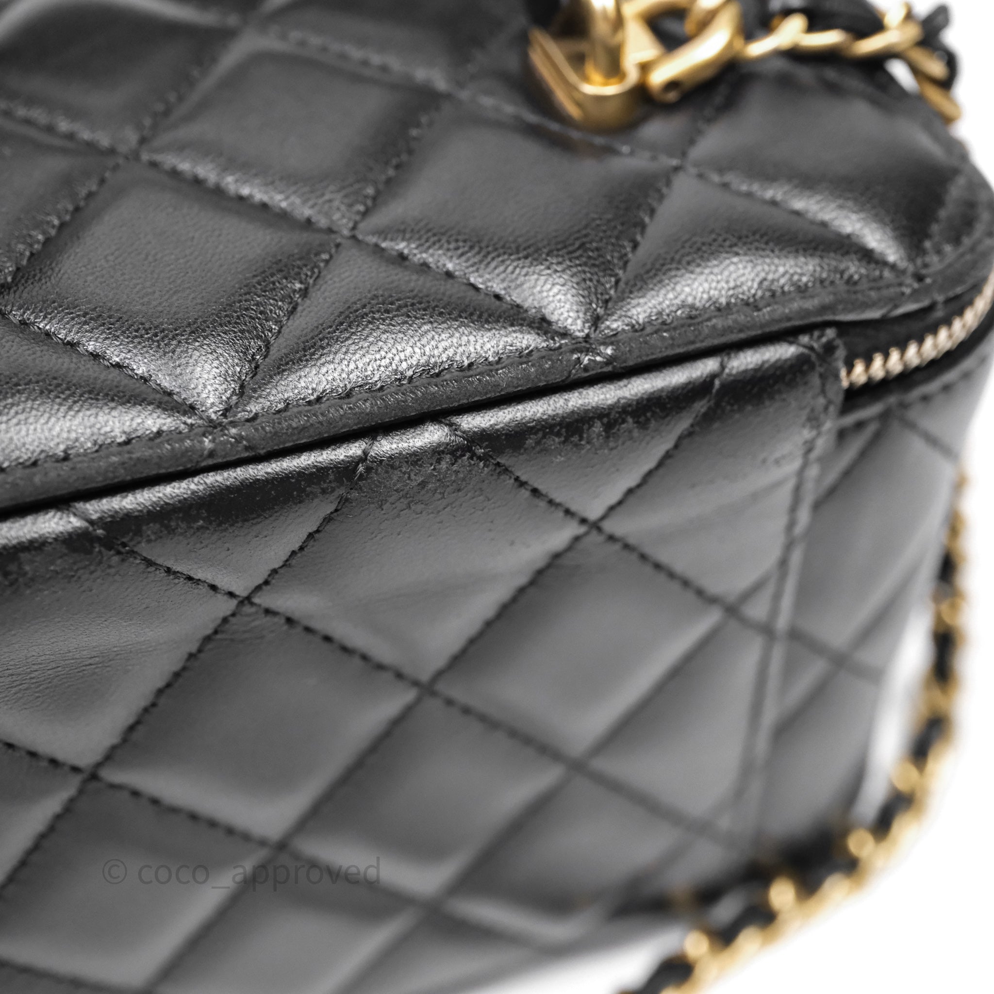 Chanel Vanity Rectangular Top Handle Black Lambskin Gold Hardware
