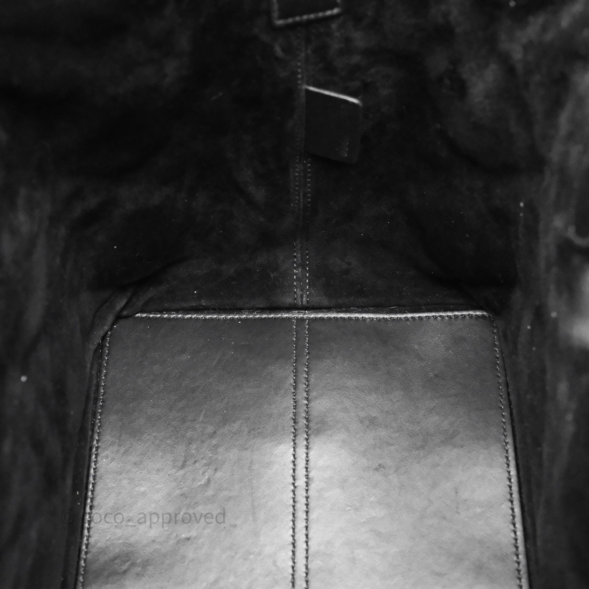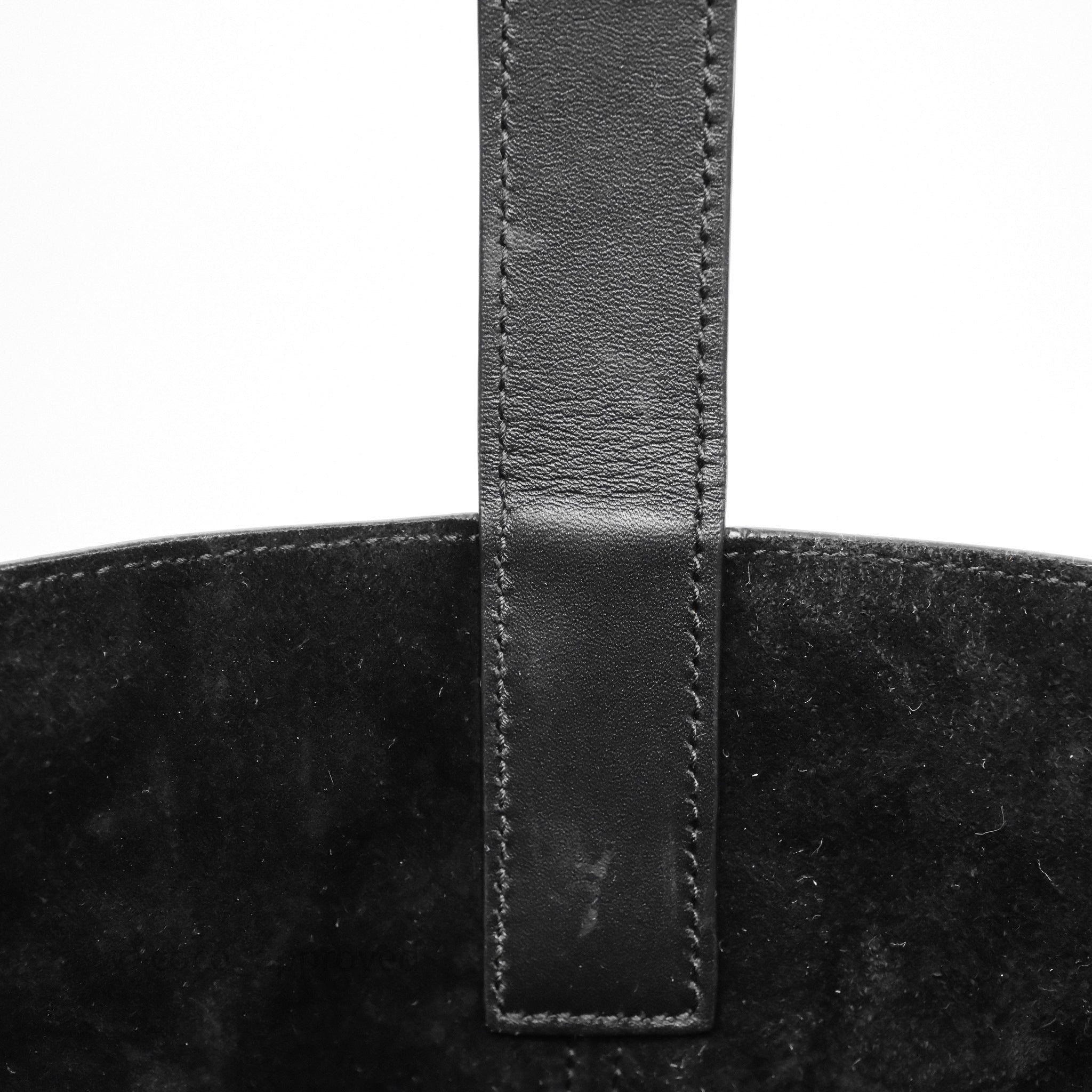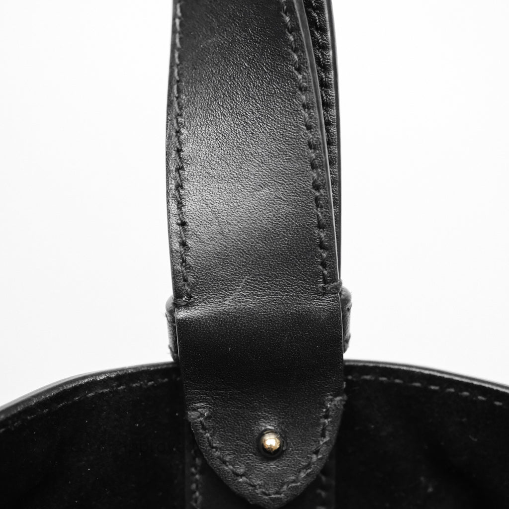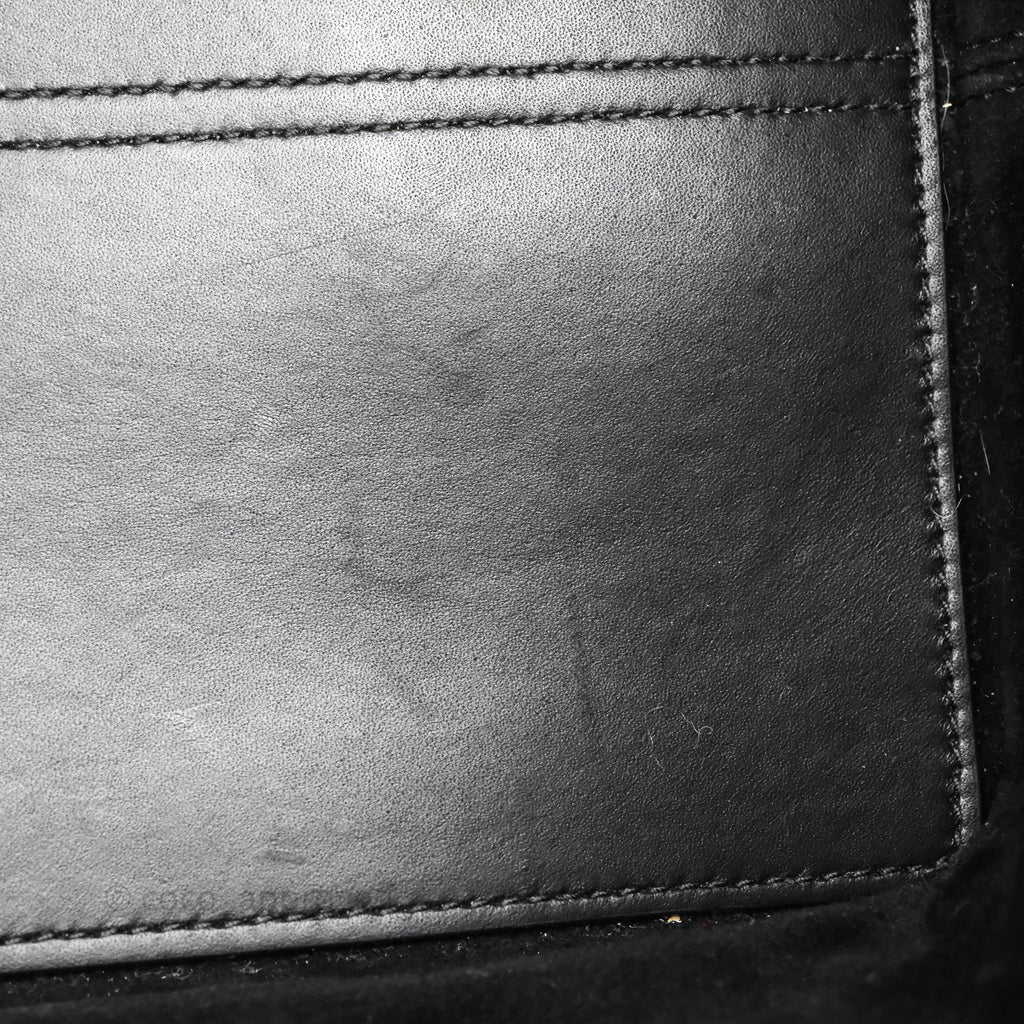 9.3/10 excellent condition. Hairlines on surface, interior, pouch and handle. Minor dent on interior. Hairlines on hardware.