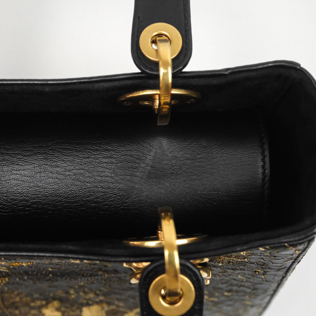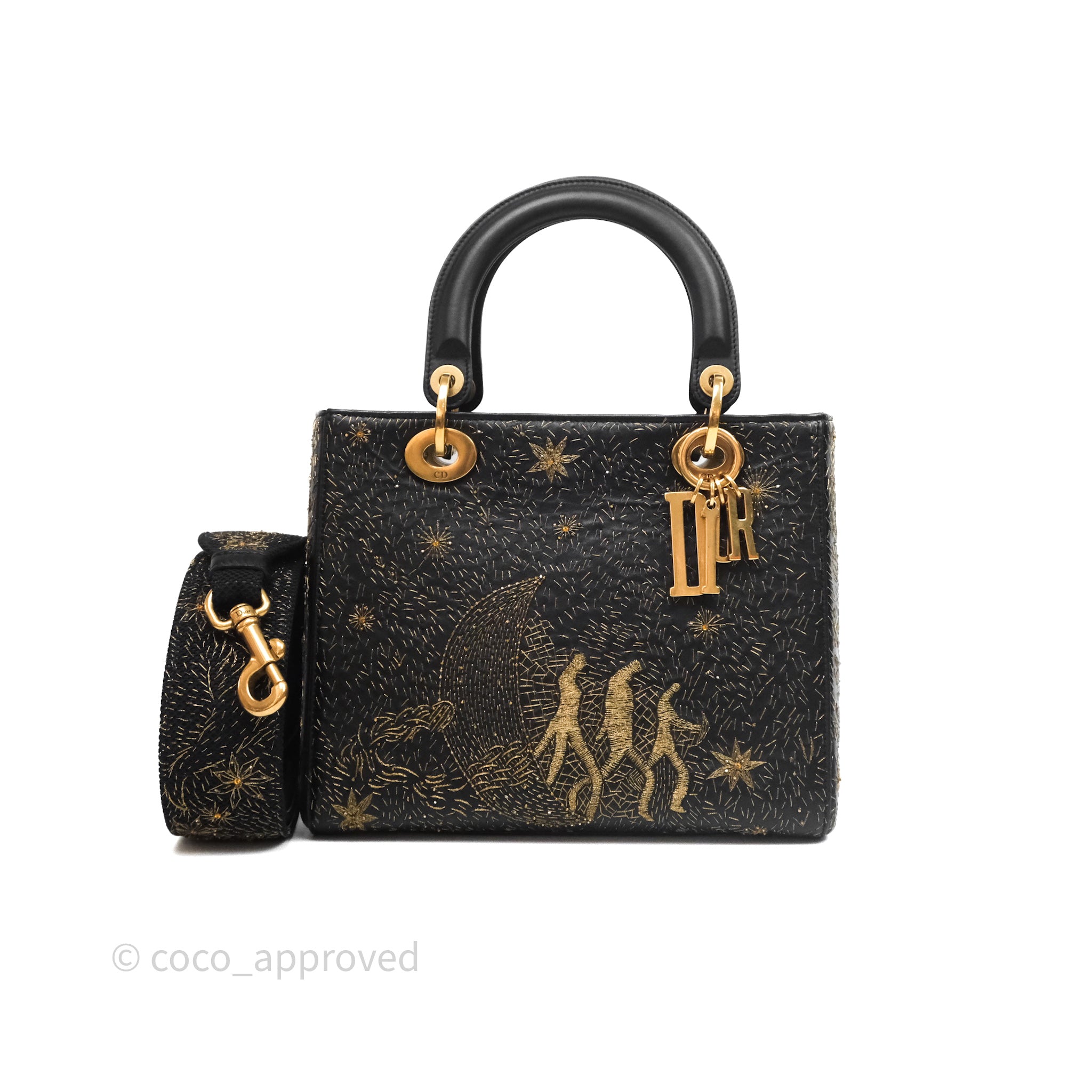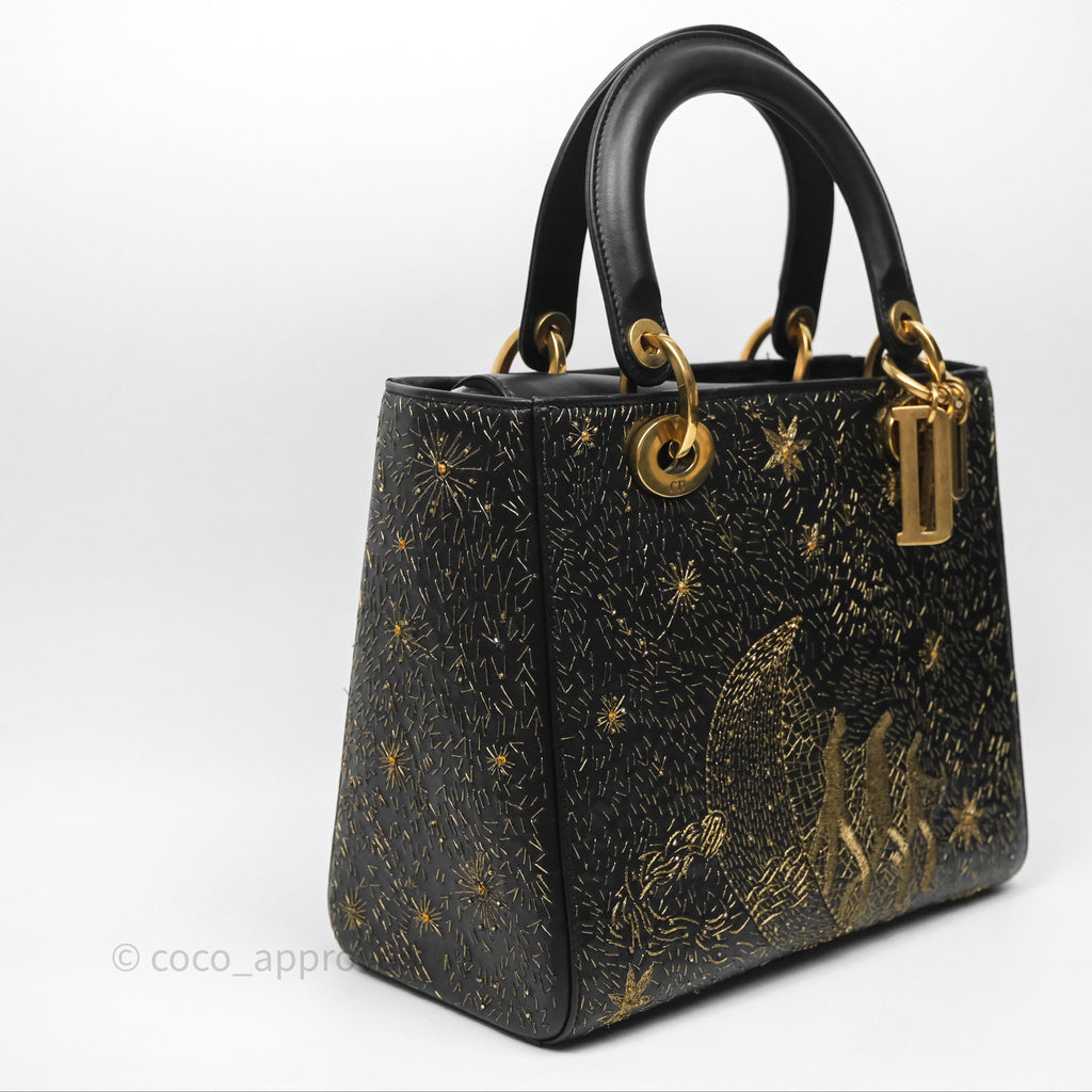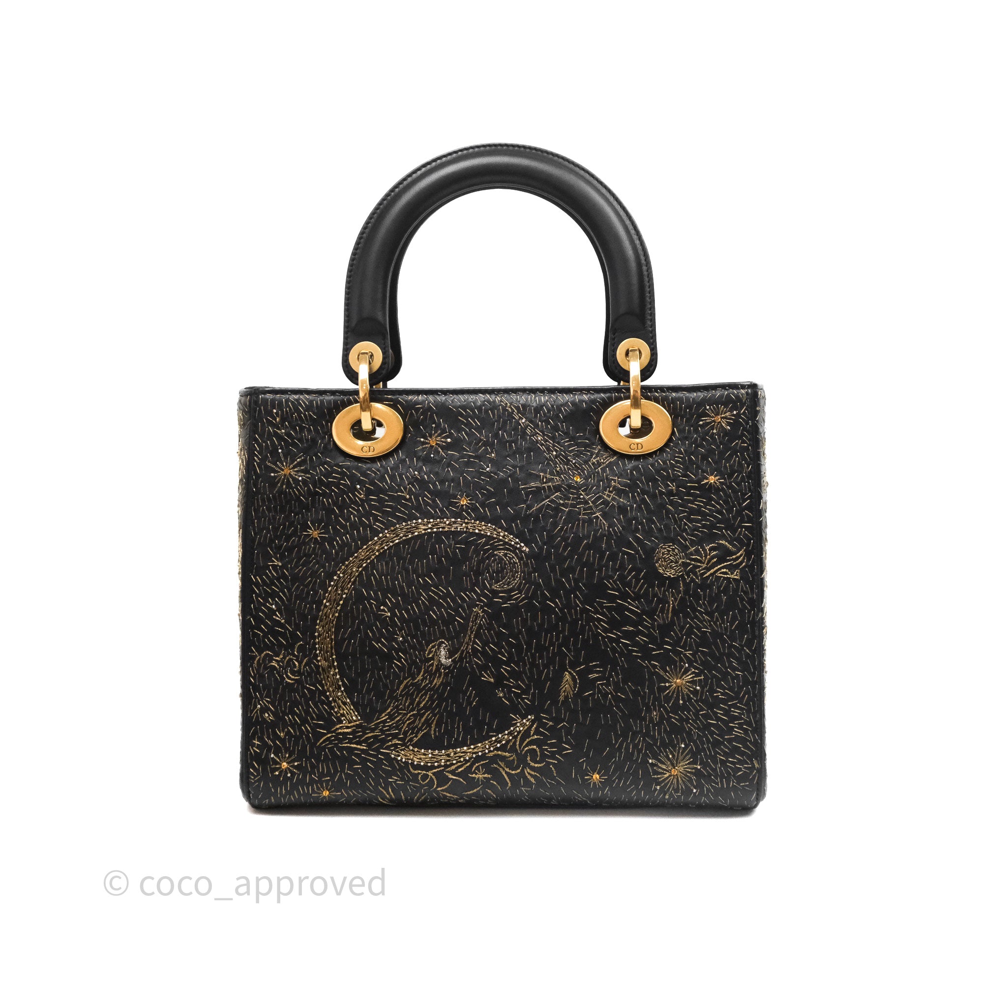 Christian Dior Medium Lady Dior Limited Edition The Moon In My EyesBag Black Calfskin Gold Hardware