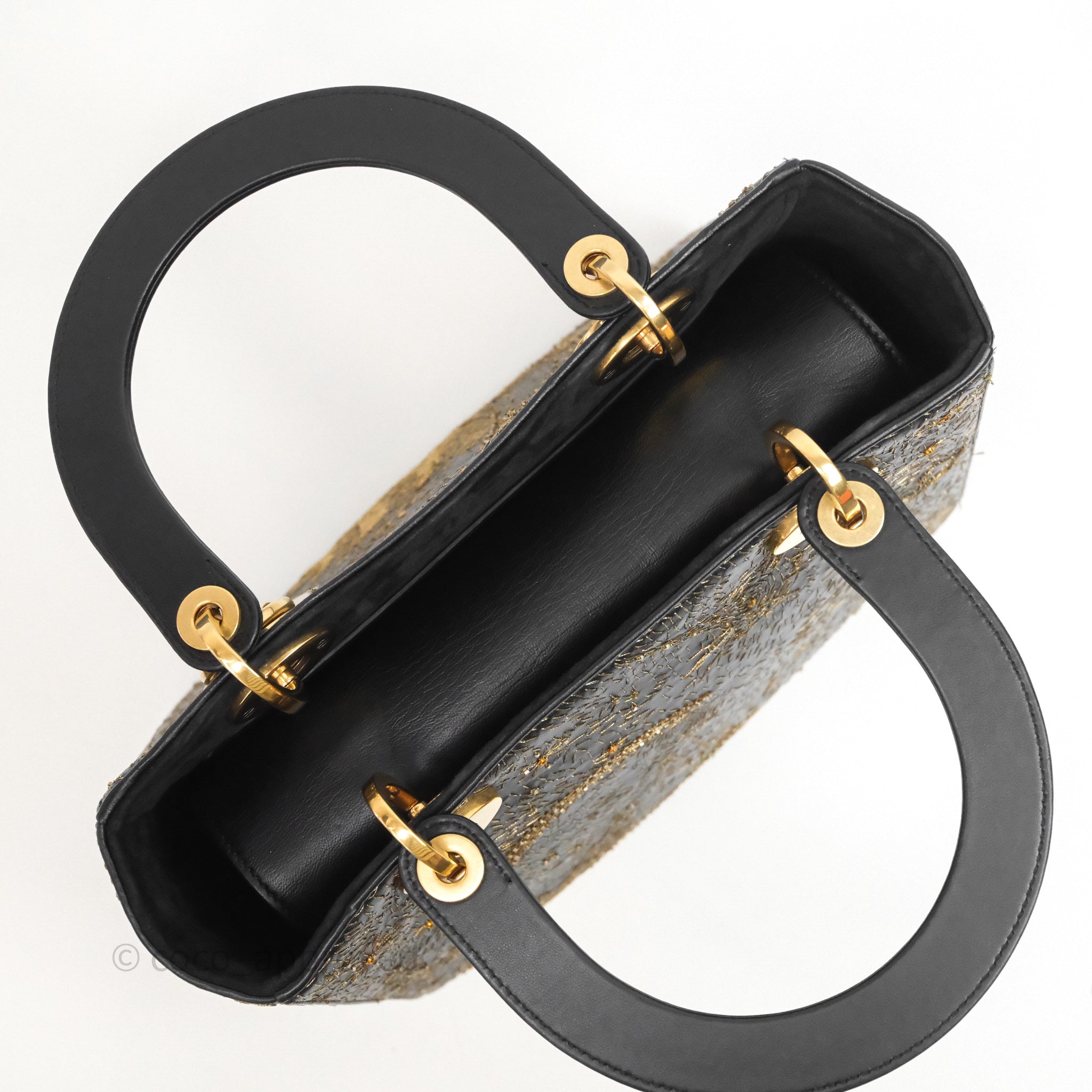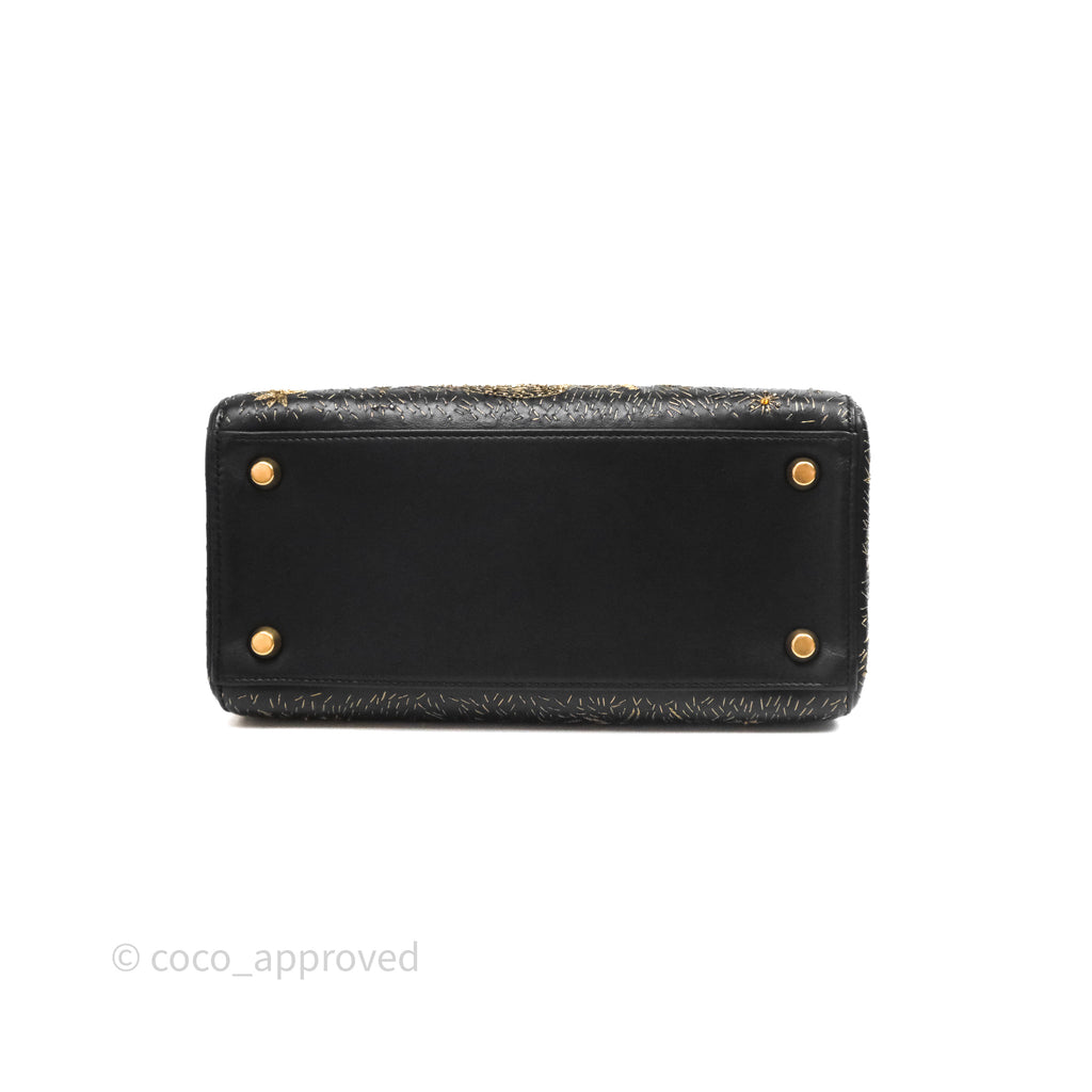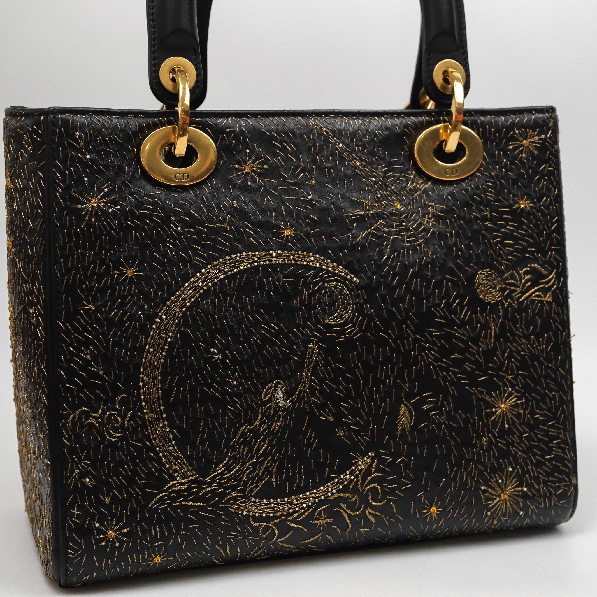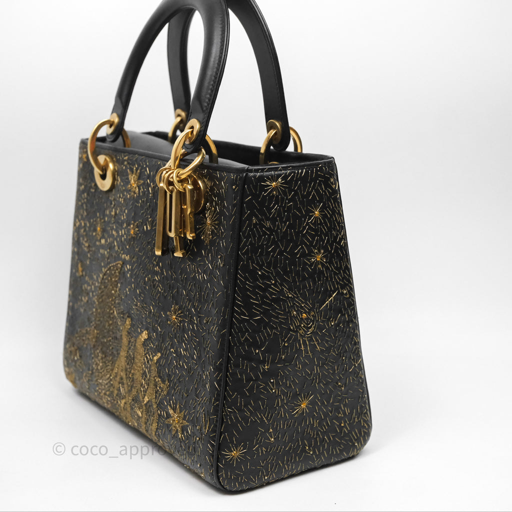 Christian Dior Medium Lady Dior Limited Edition The Moon In My EyesBag Black Calfskin Gold Hardware