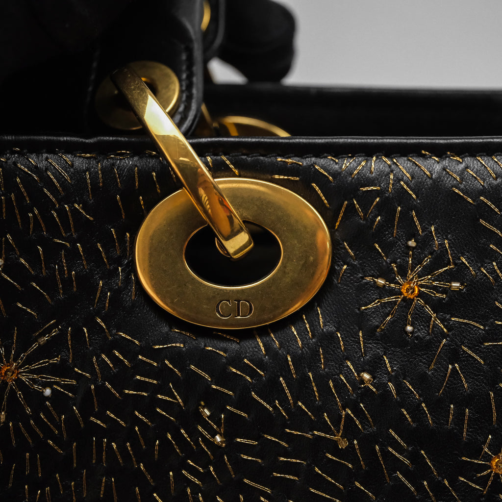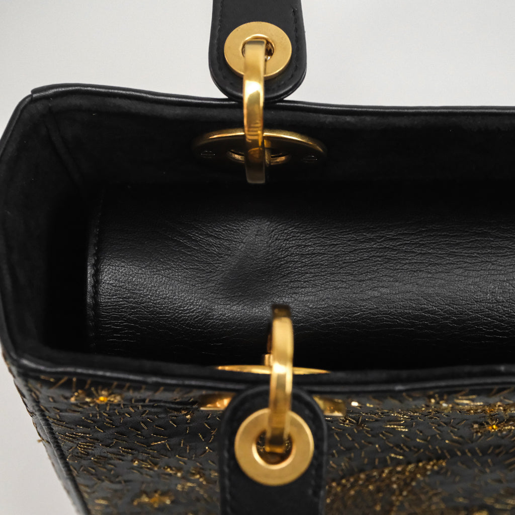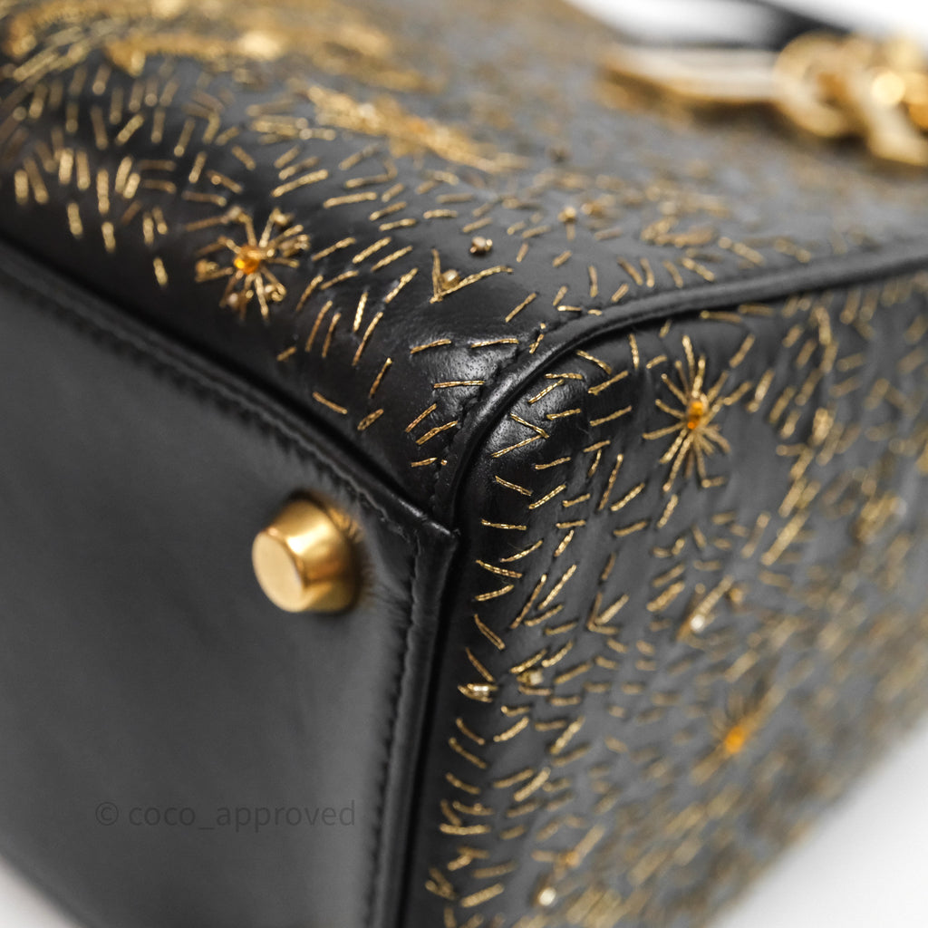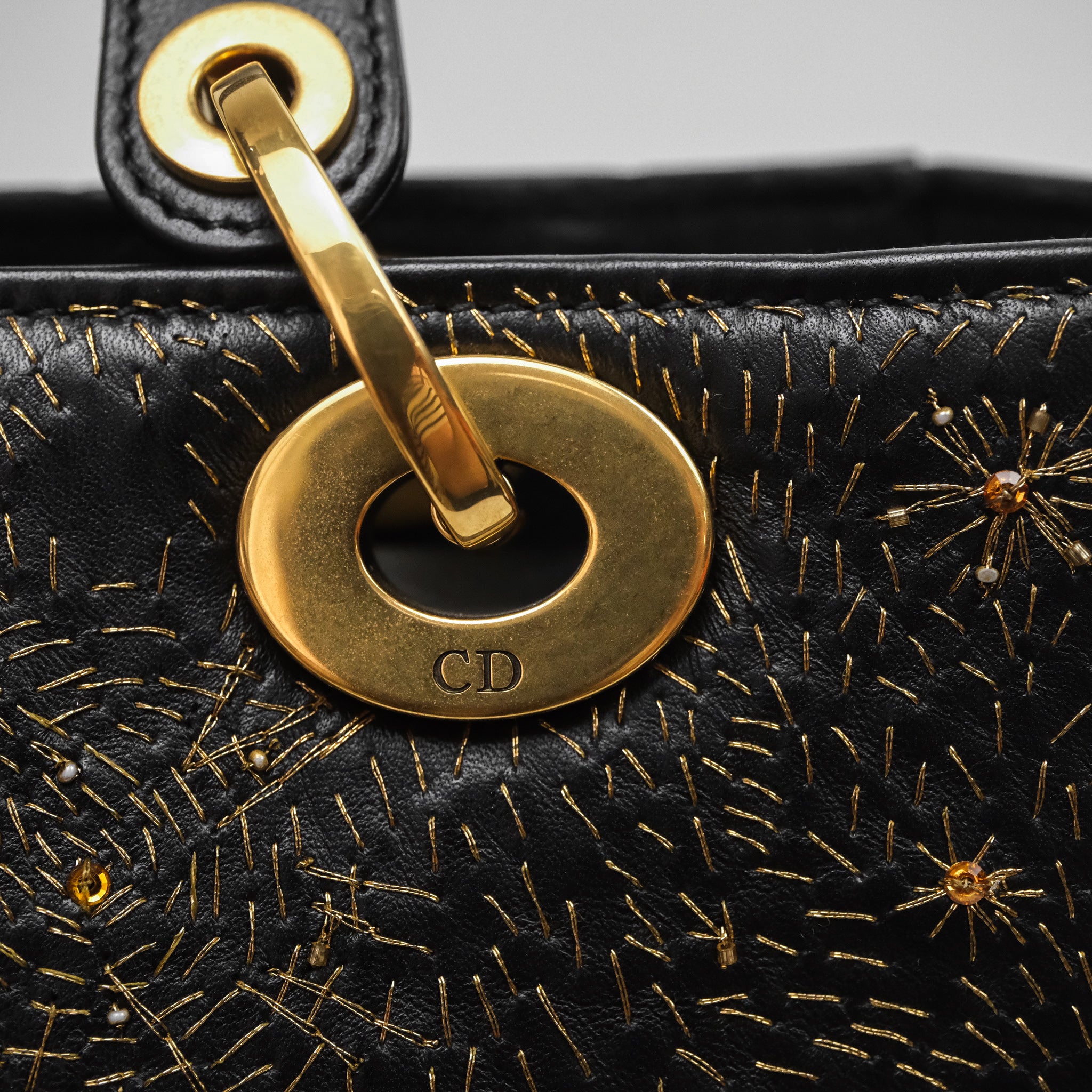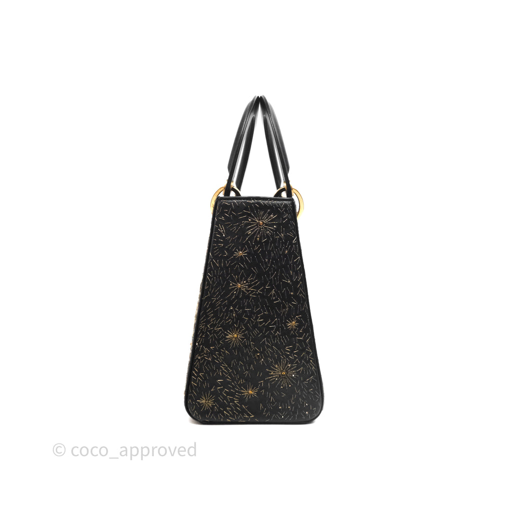 Christian Dior Medium Lady Dior Limited Edition The Moon In My EyesBag Black Calfskin Gold Hardware