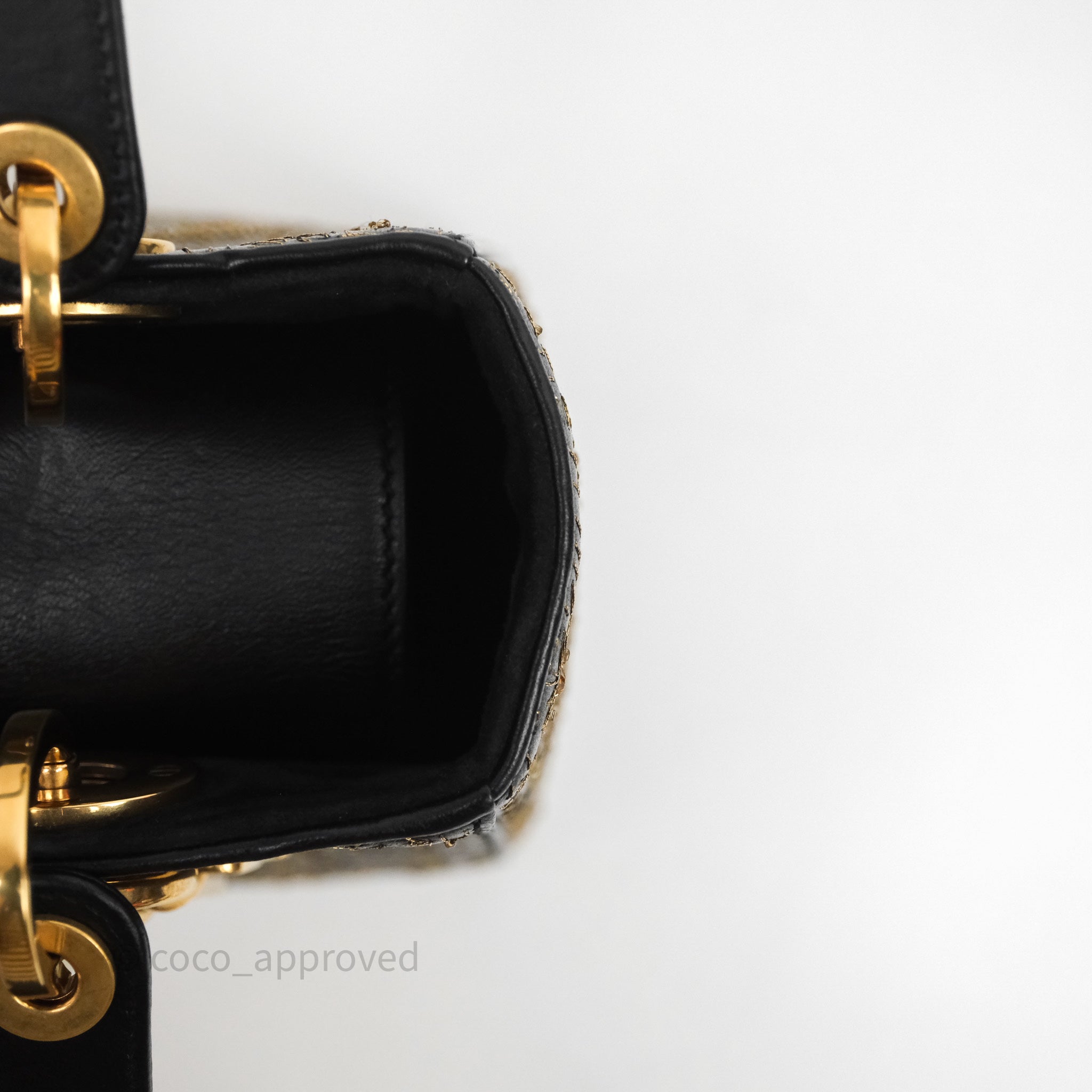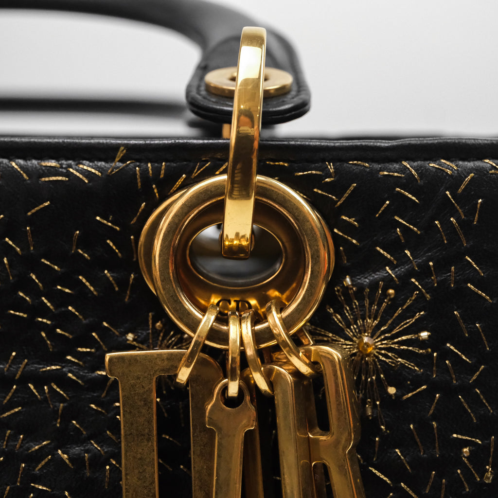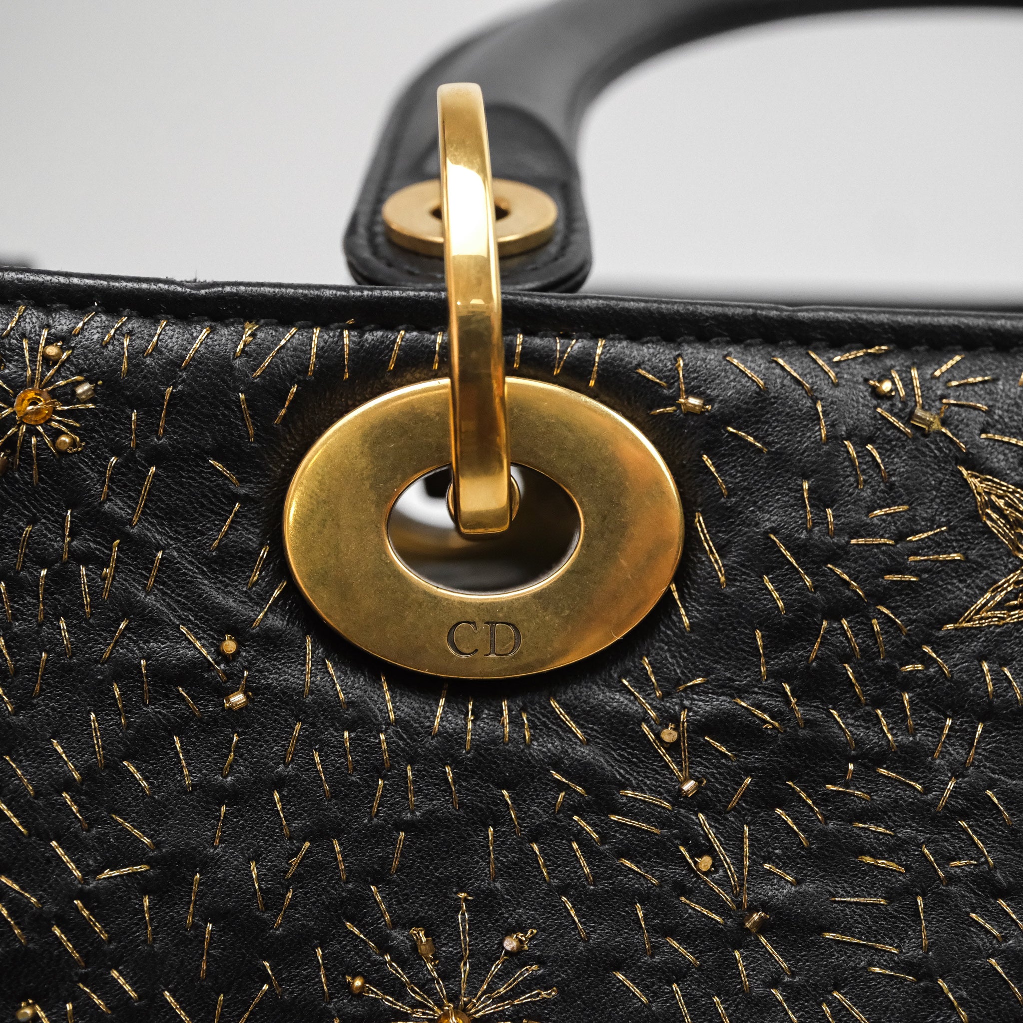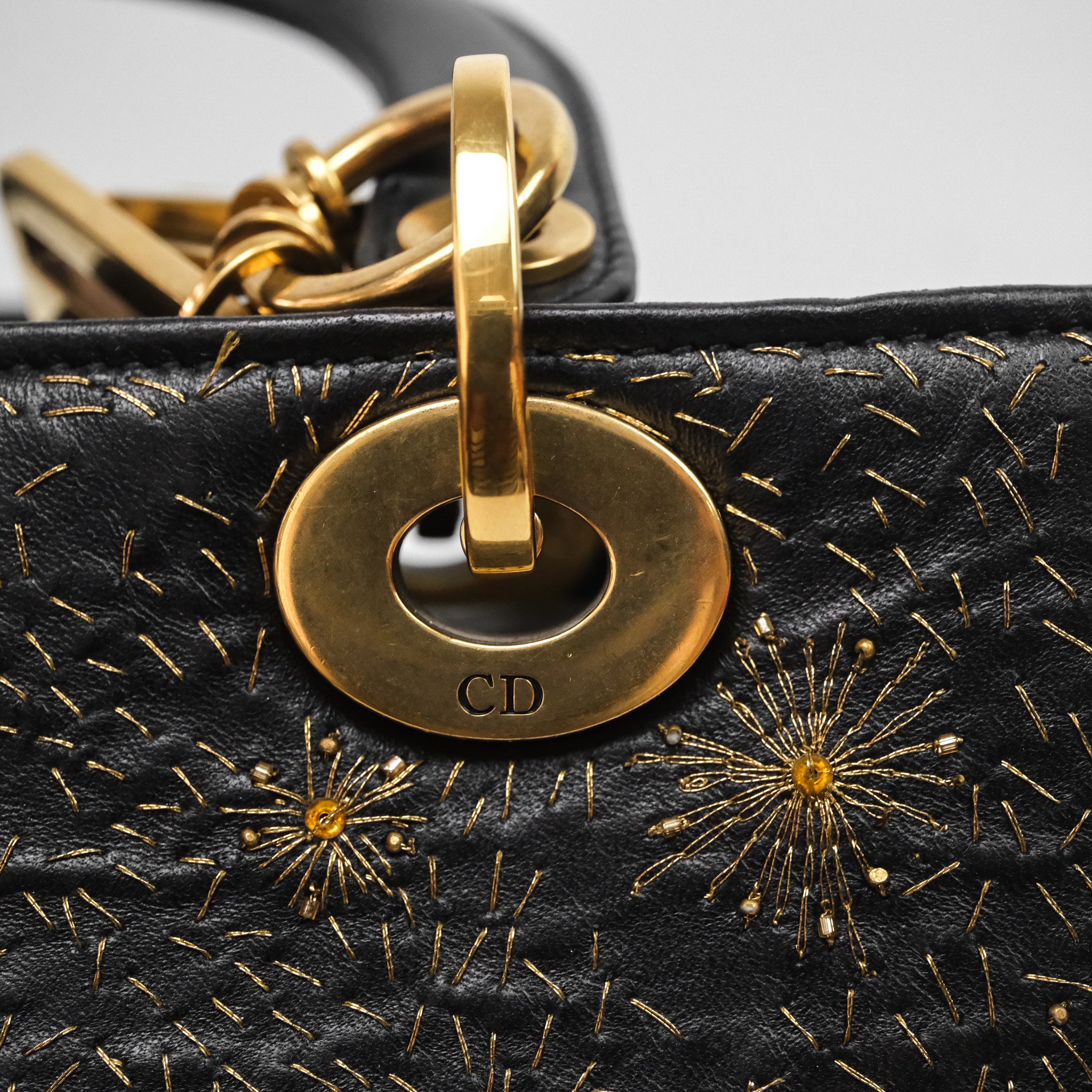 Christian Dior Medium Lady Dior Limited Edition The Moon In My EyesBag Black Calfskin Gold Hardware