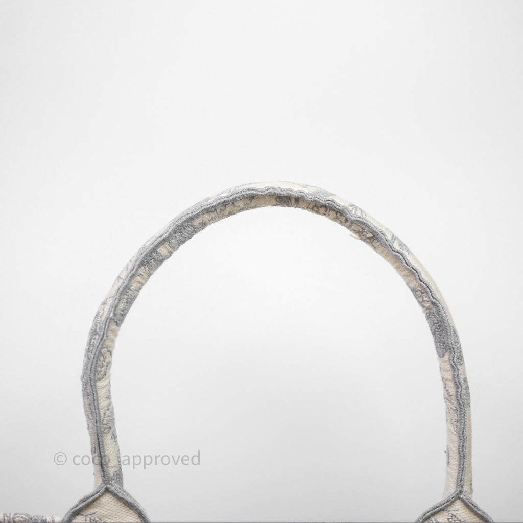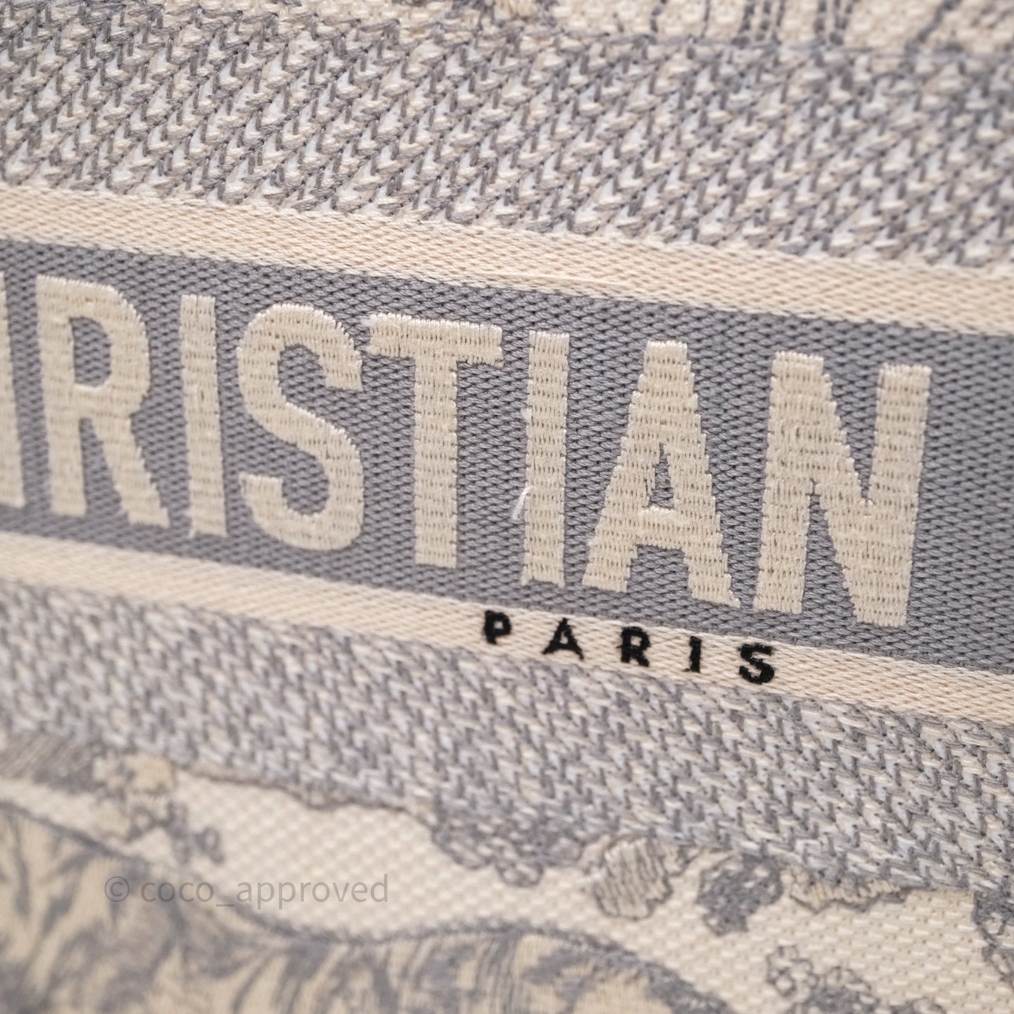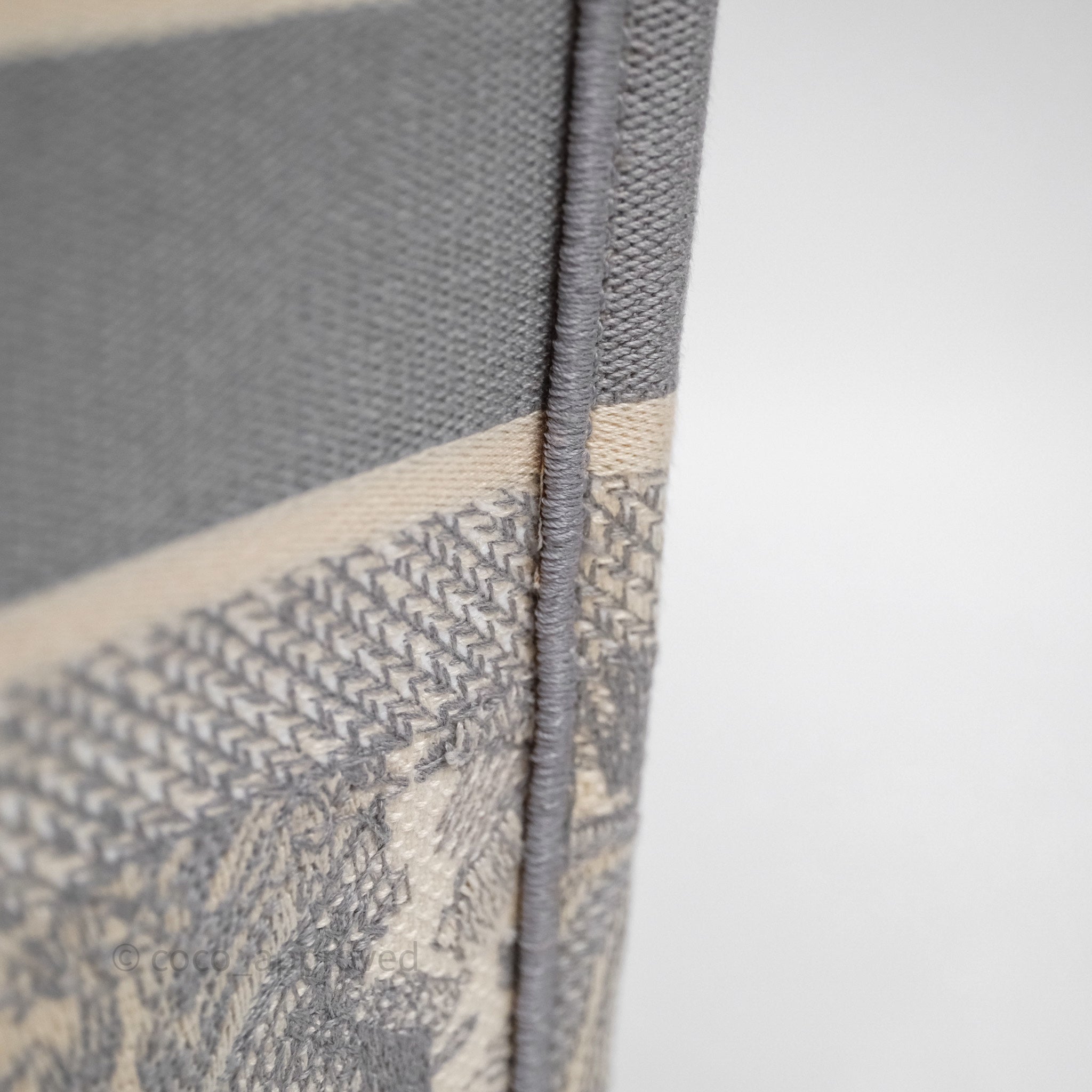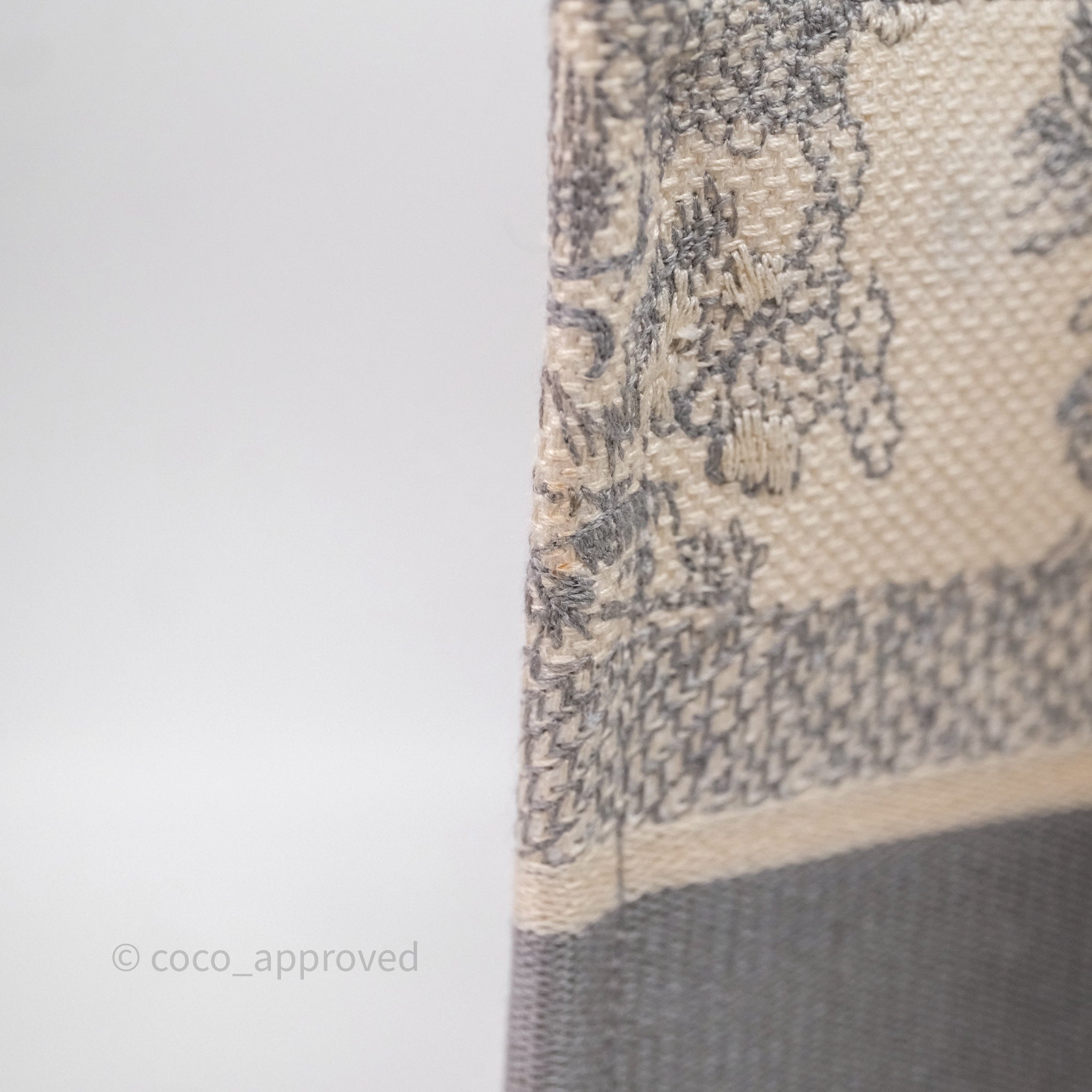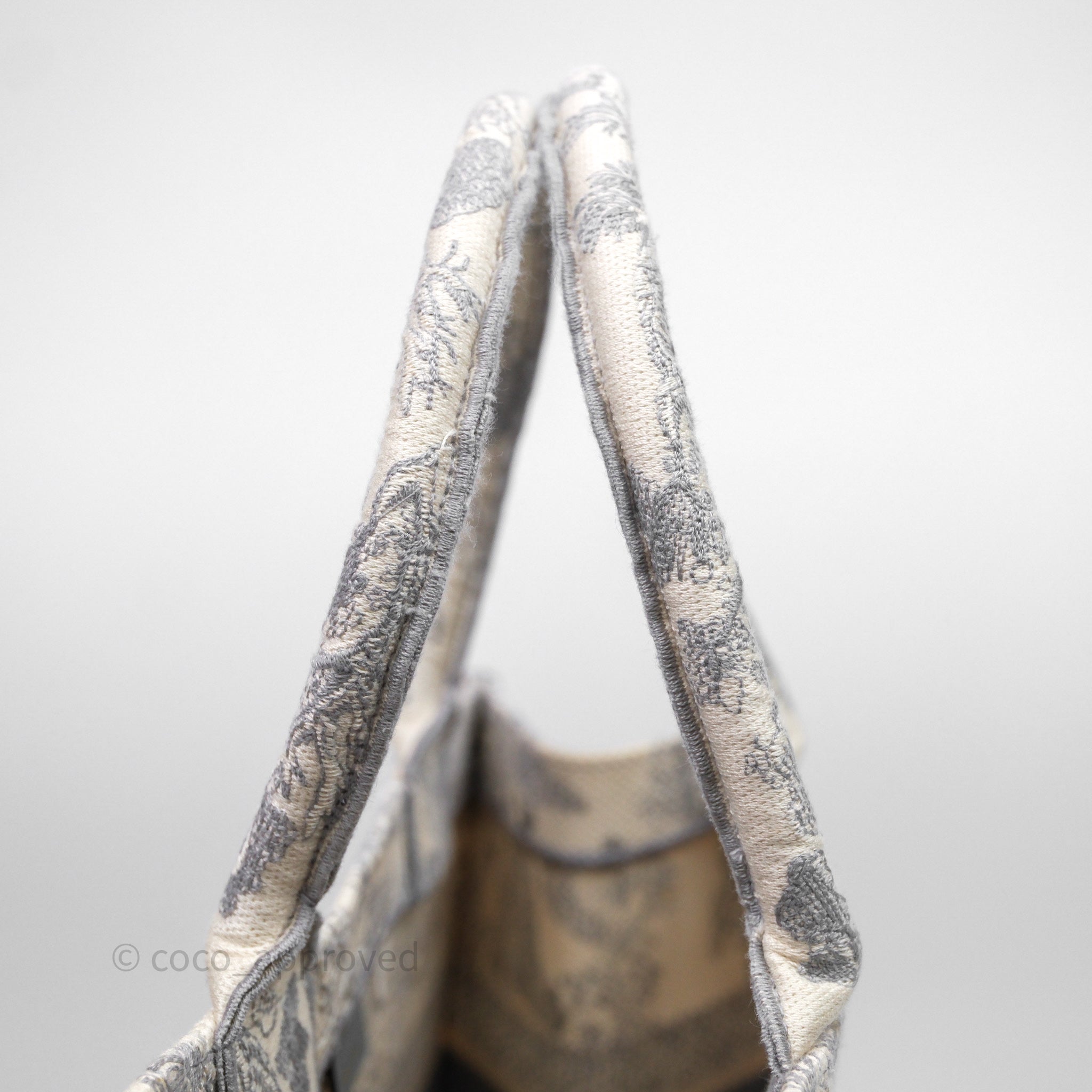Christian Dior Medium (Old Small) Embroidered Toile De Jouy Light Grey Canvas Book Tote