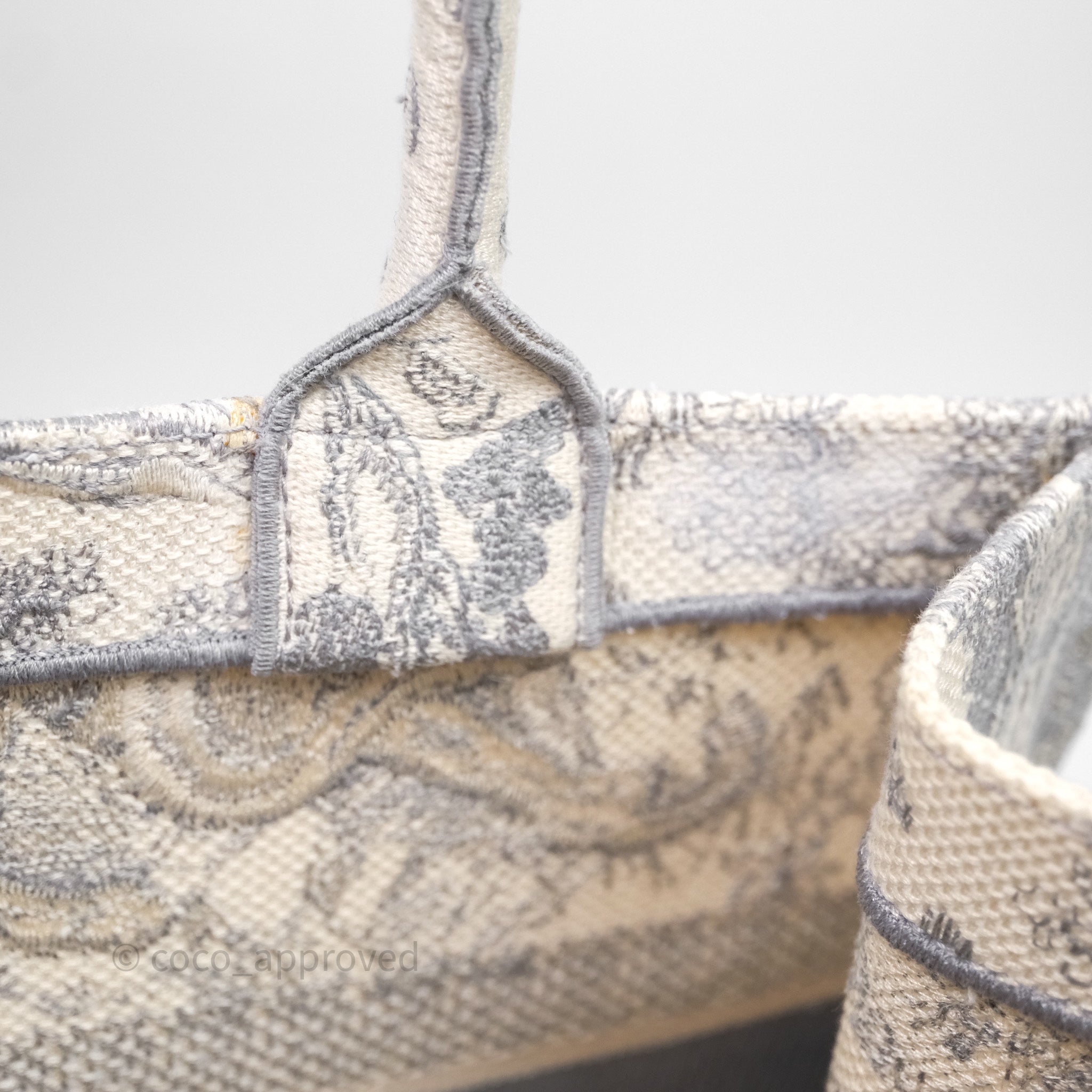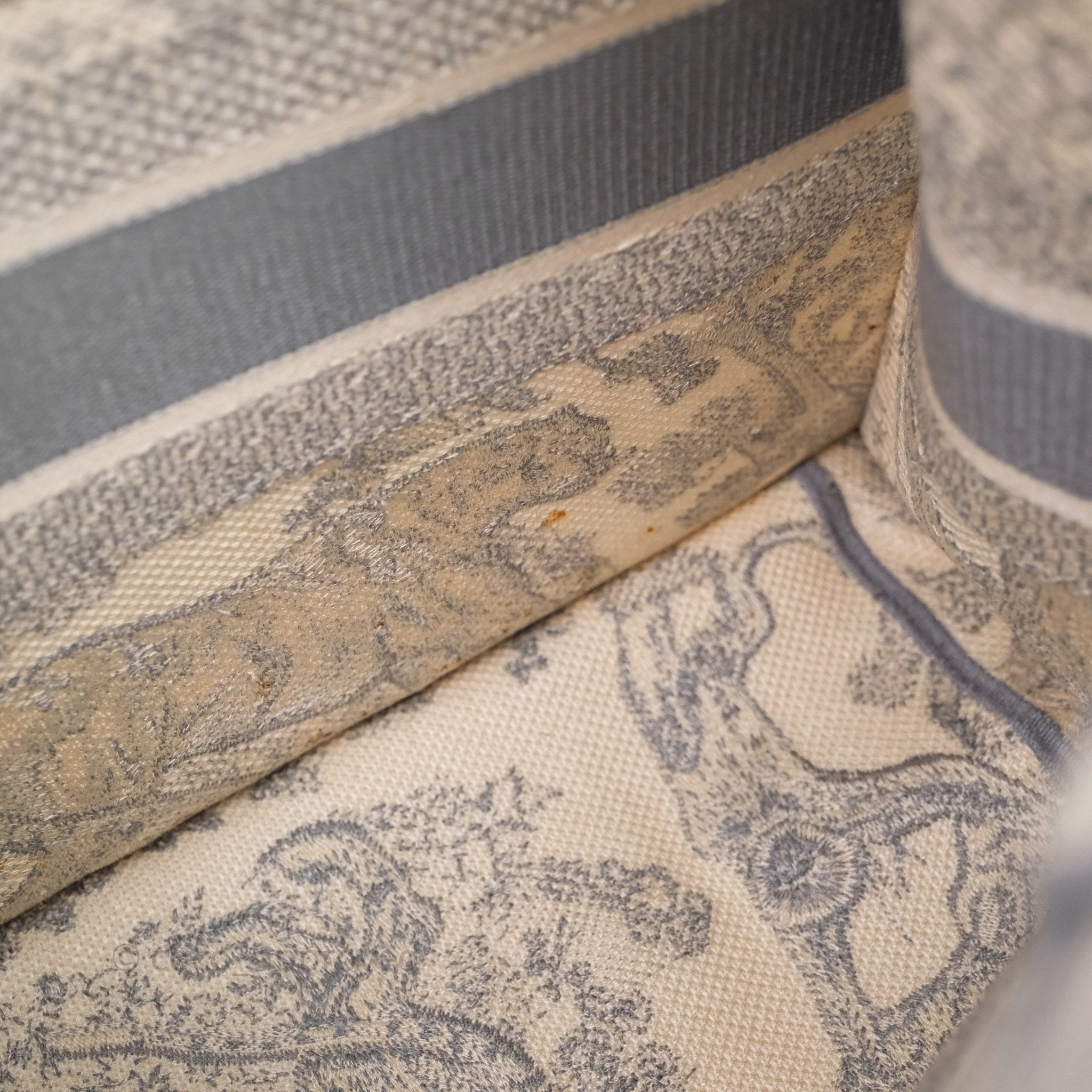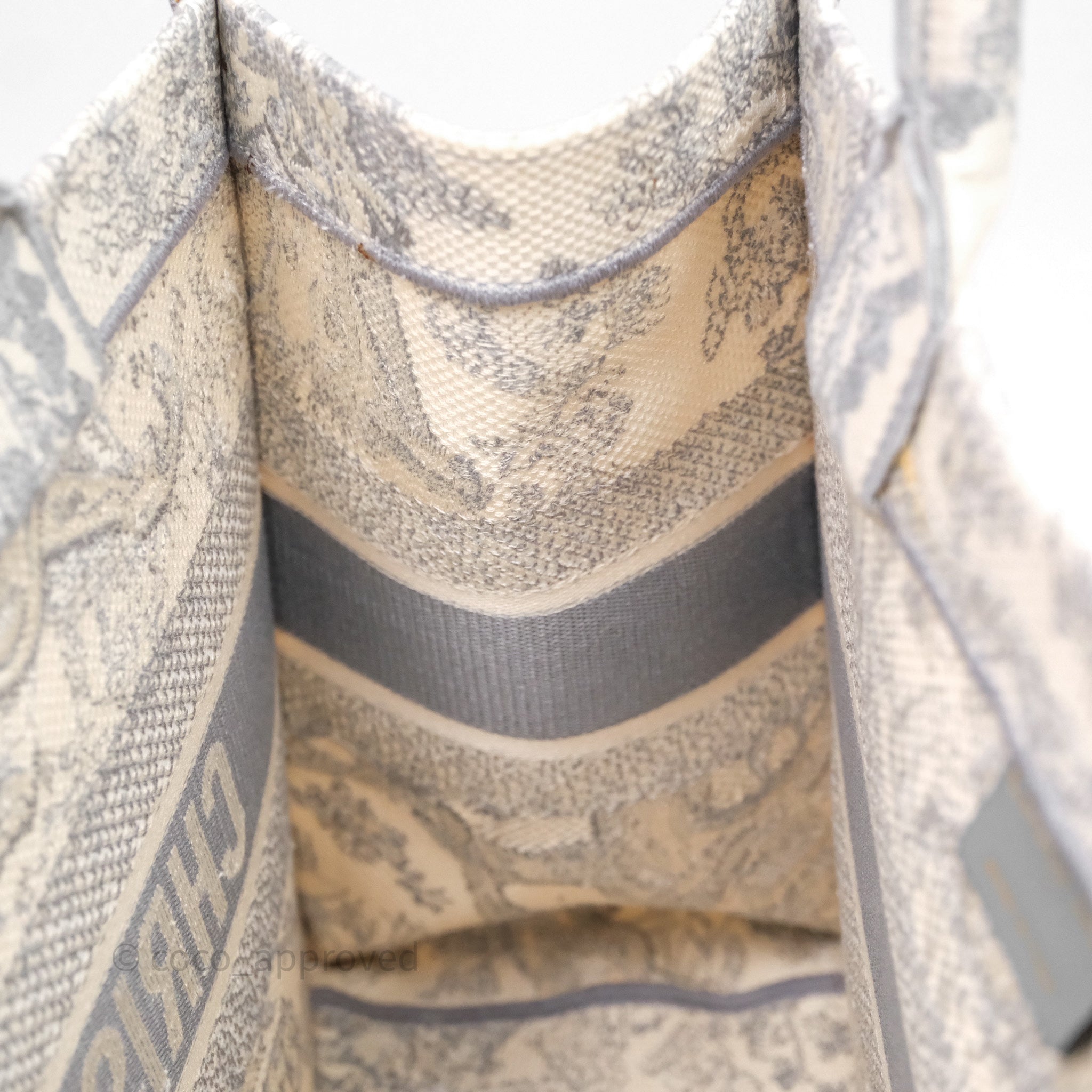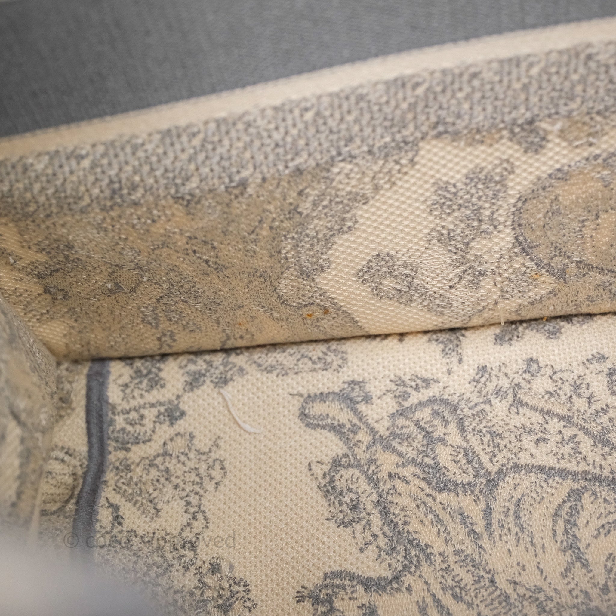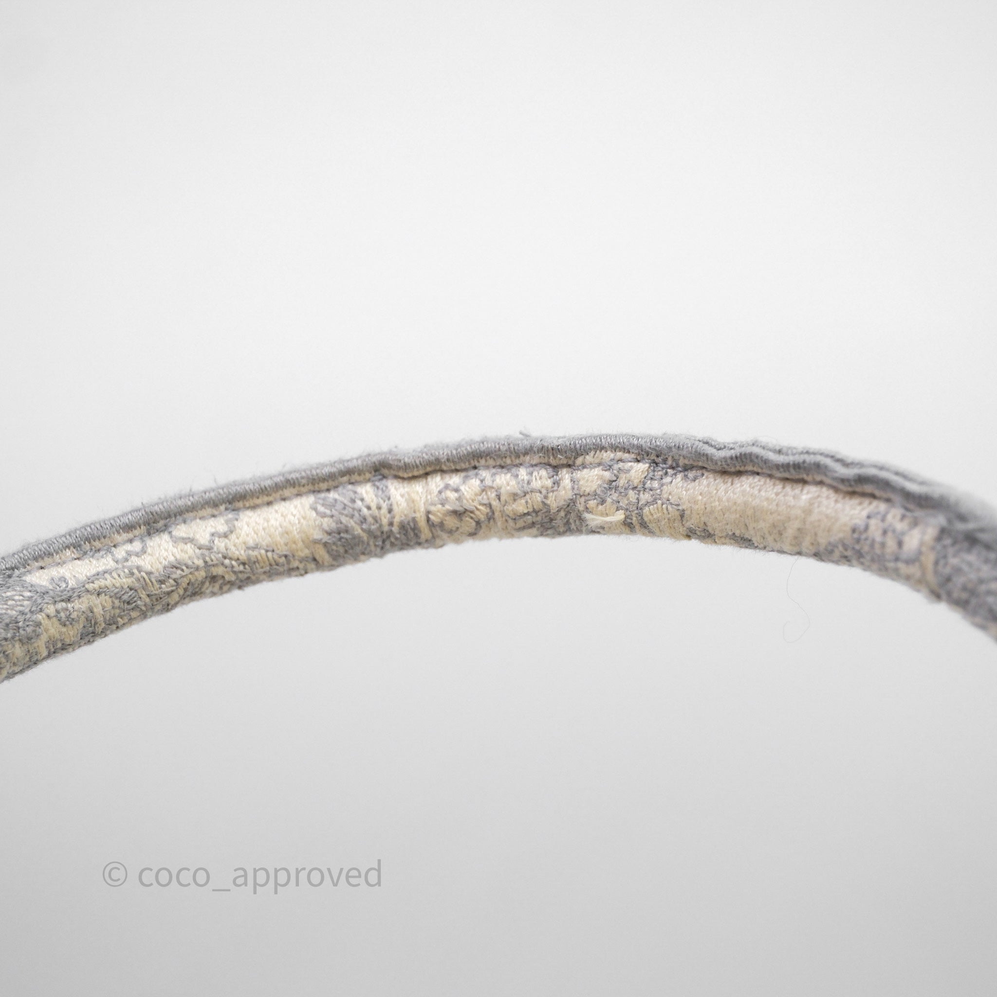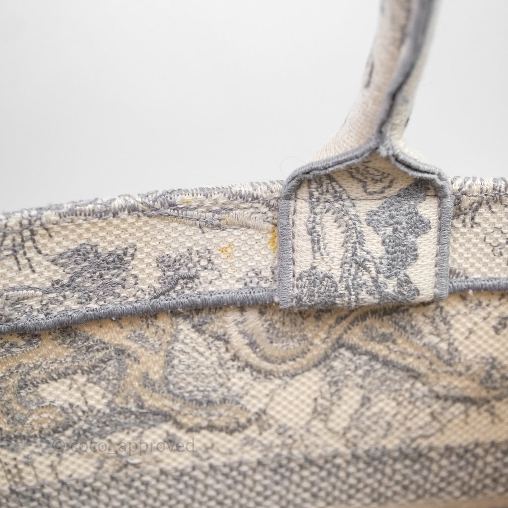 Christian Dior Medium (Old Small) Embroidered Toile De Jouy Light Grey Canvas Book Tote