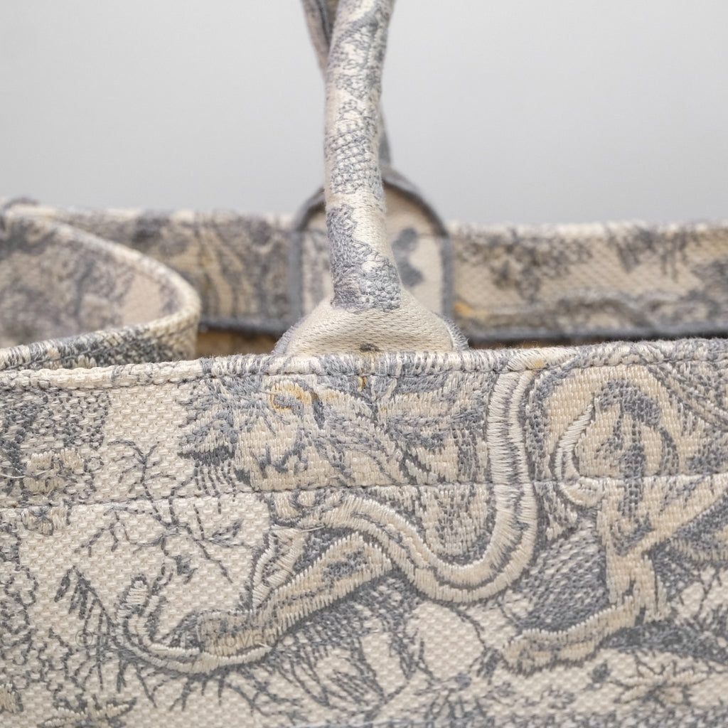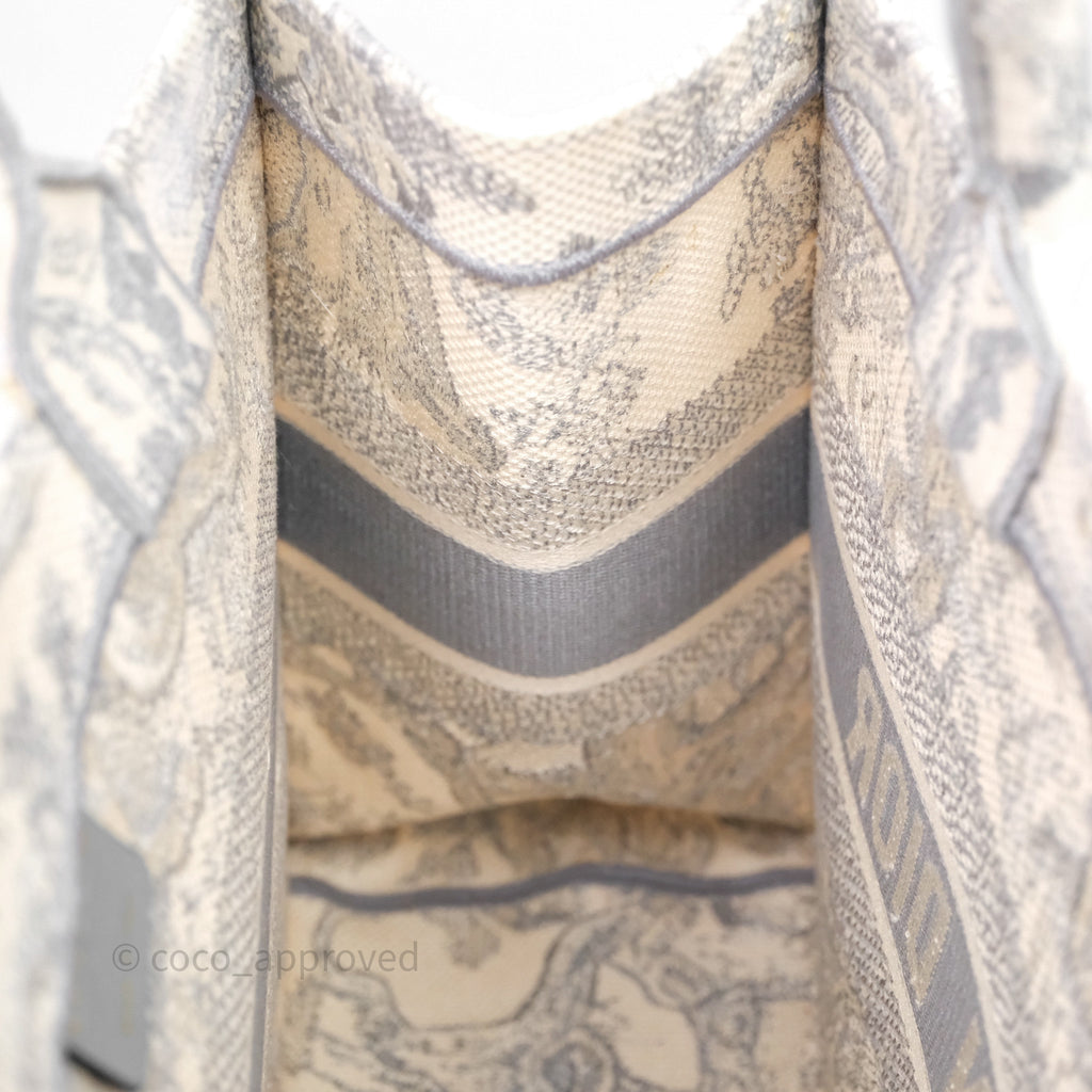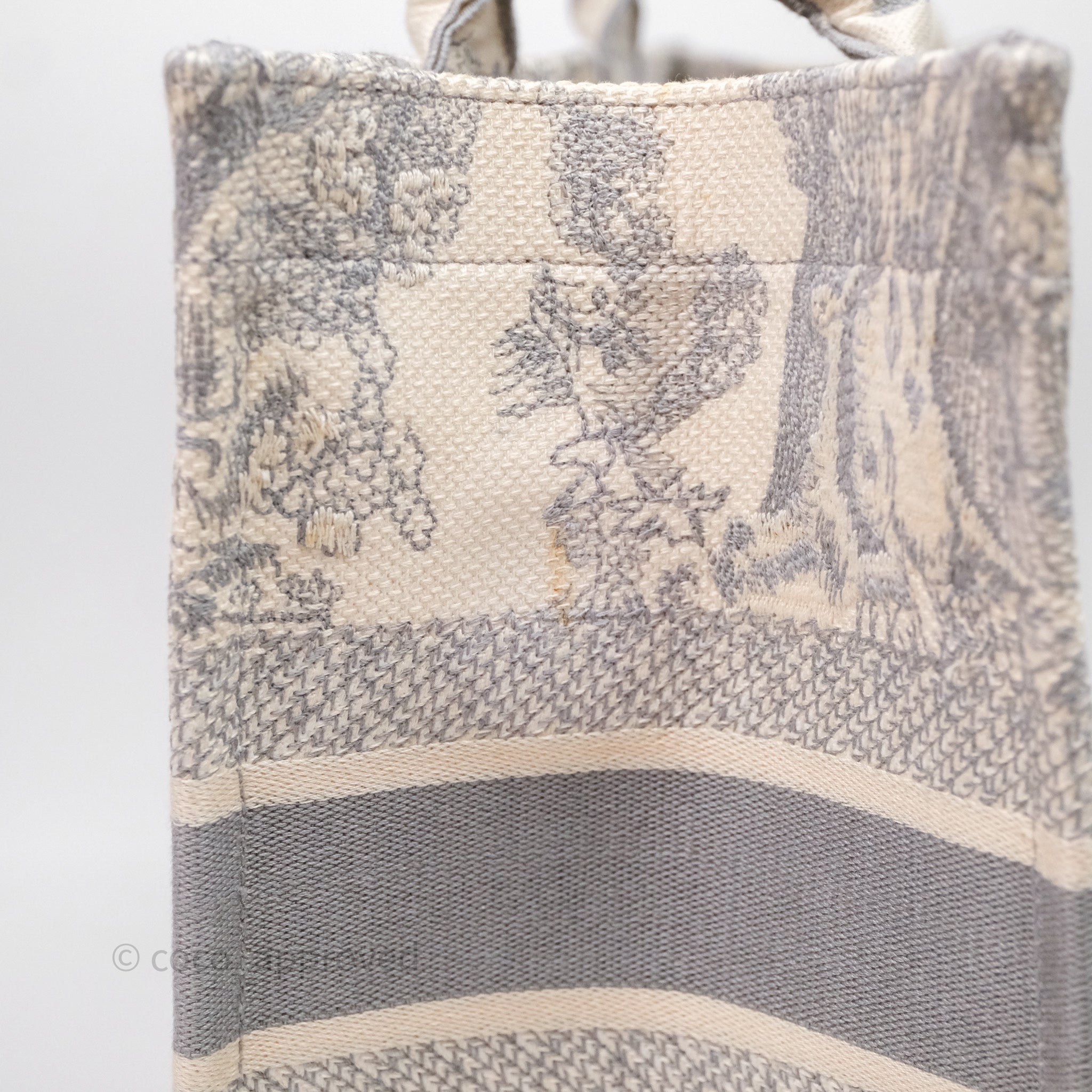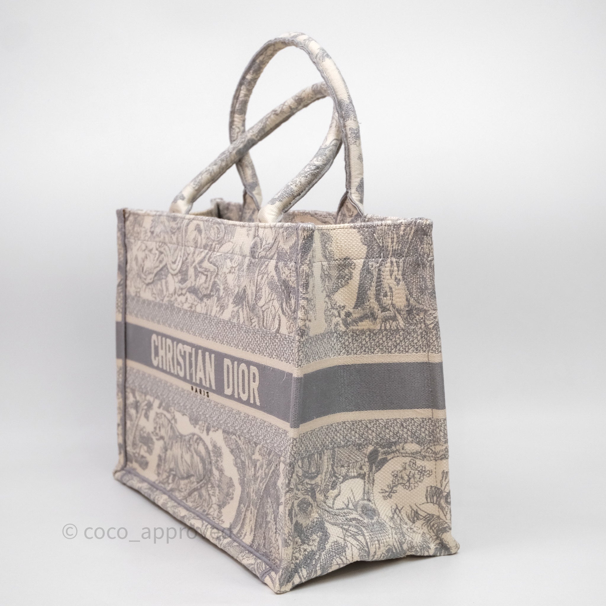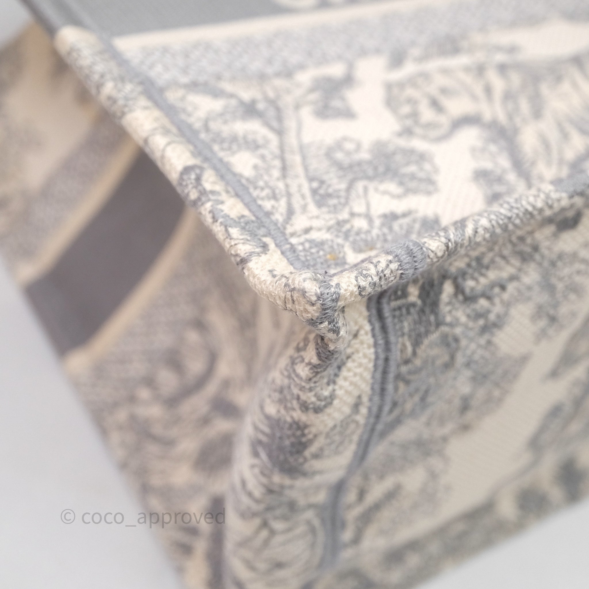 Christian Dior Medium (Old Small) Embroidered Toile De Jouy Light Grey Canvas Book Tote